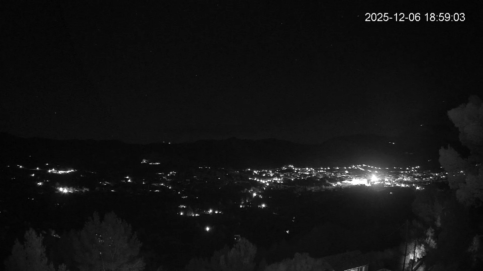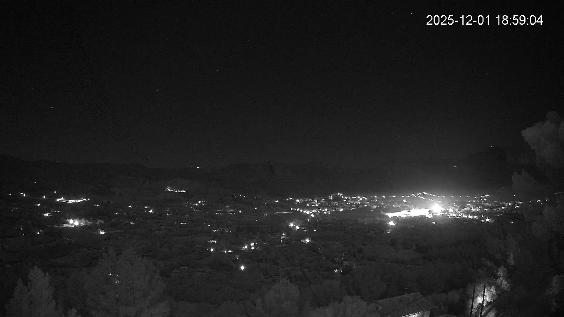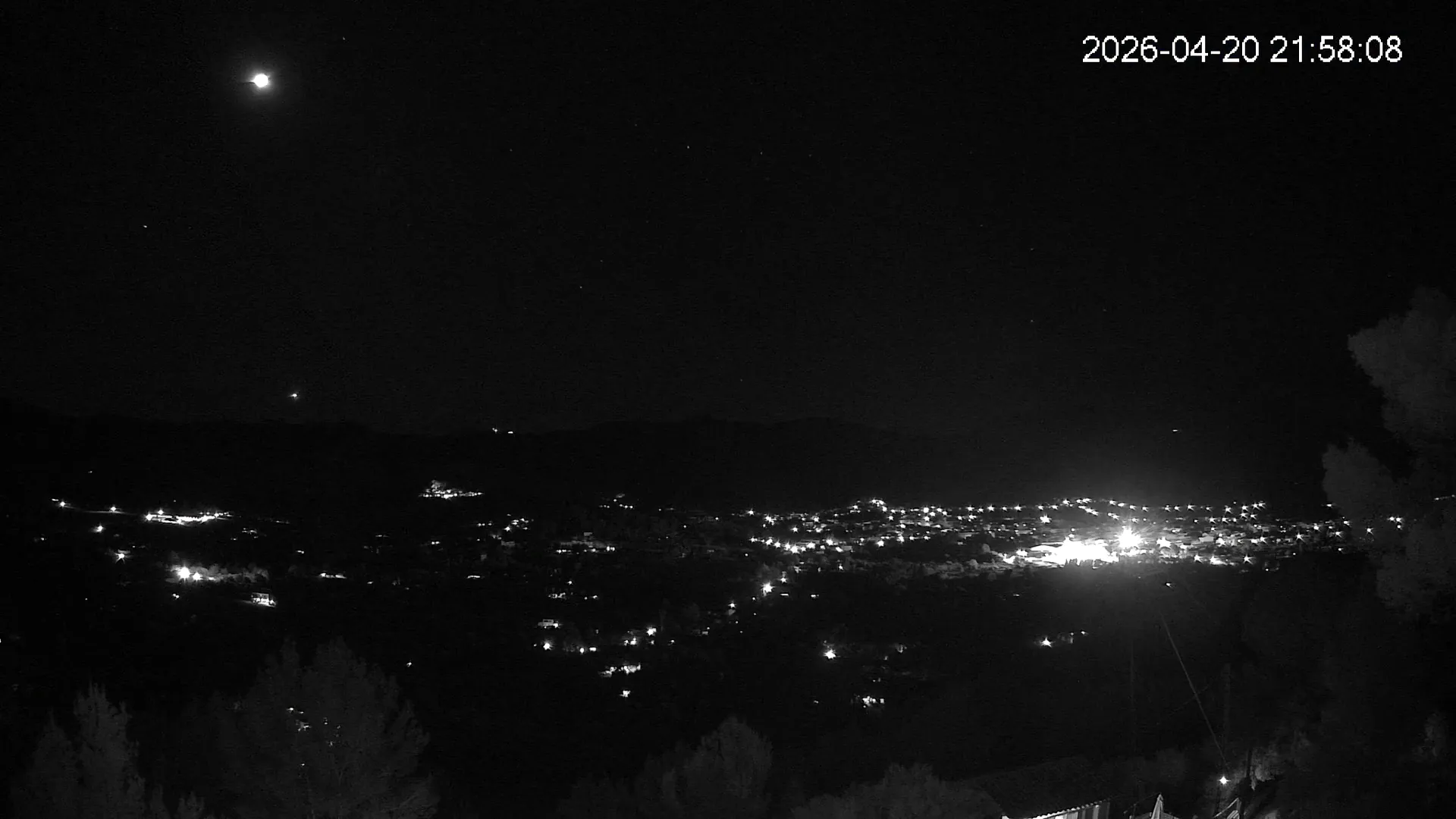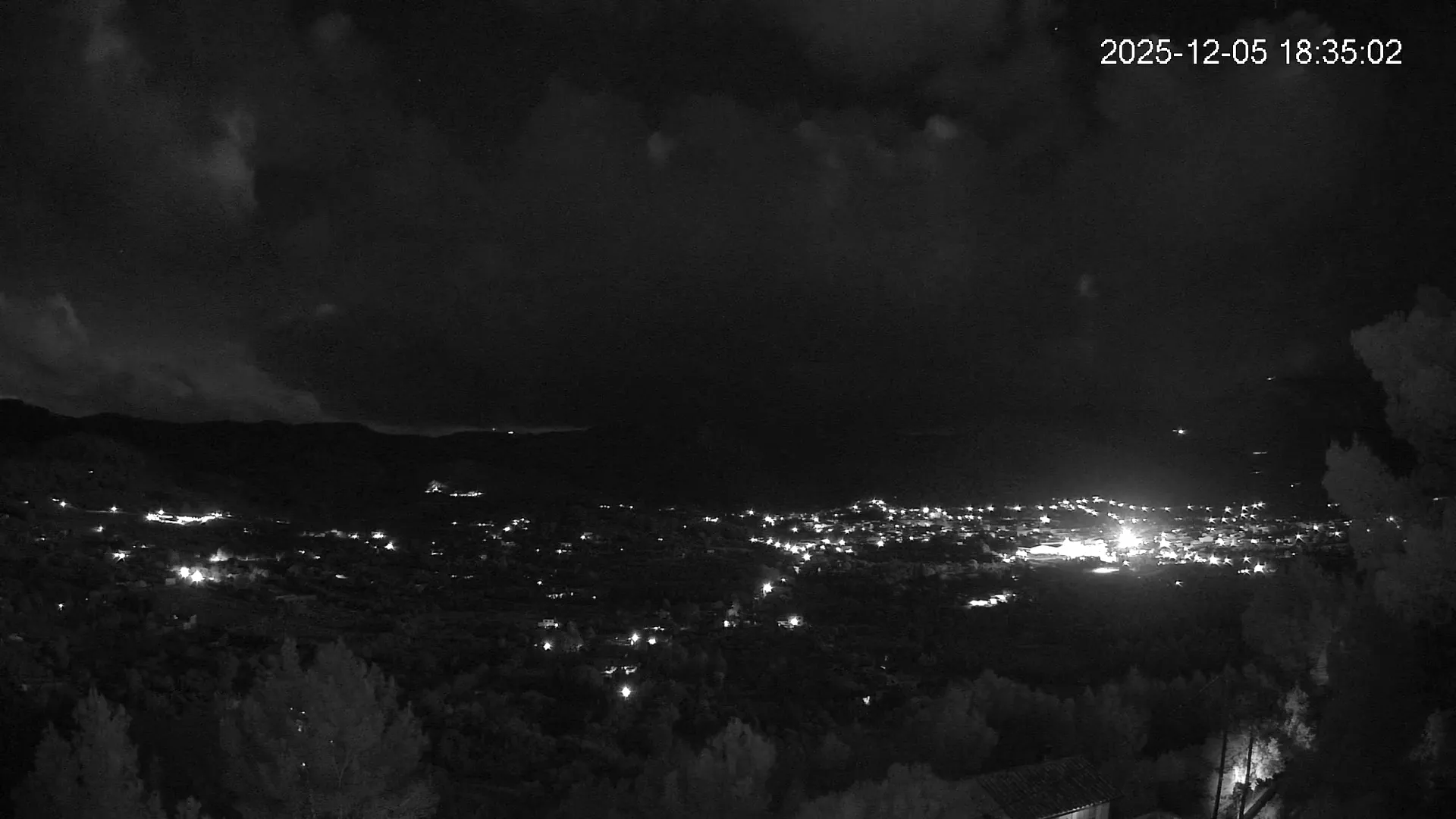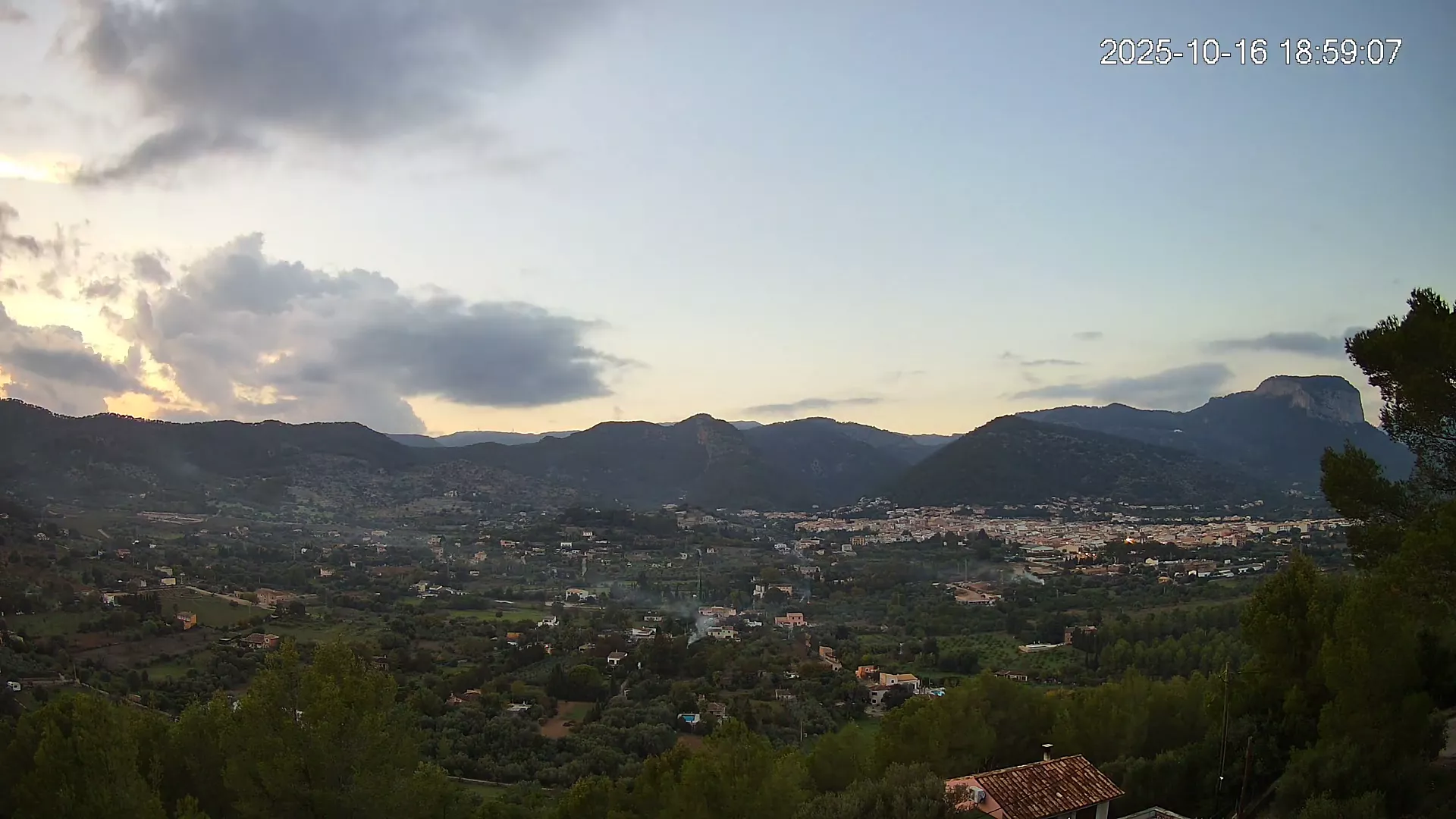 Esta cámara ofrece una hermosa vista del pueblo de Alaró, enclavado en la Serra de Tramuntana. A la derecha se distingue el imponente Castell d’Alaró, en lo alto de la montaña, dominando el paisaje y aportando un toque histórico a esta panorámica del interior de Mallorca.