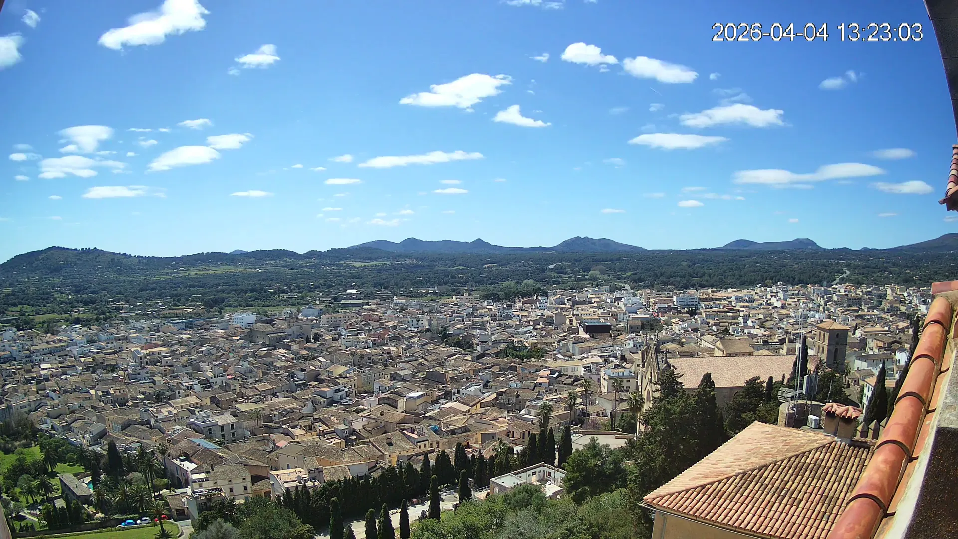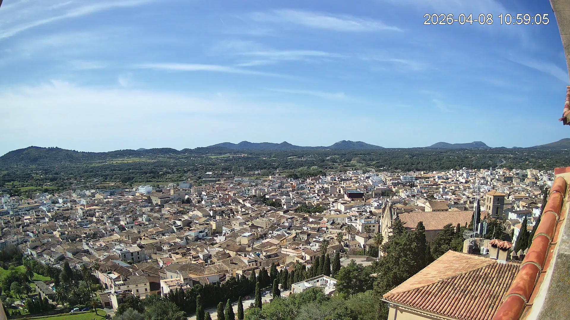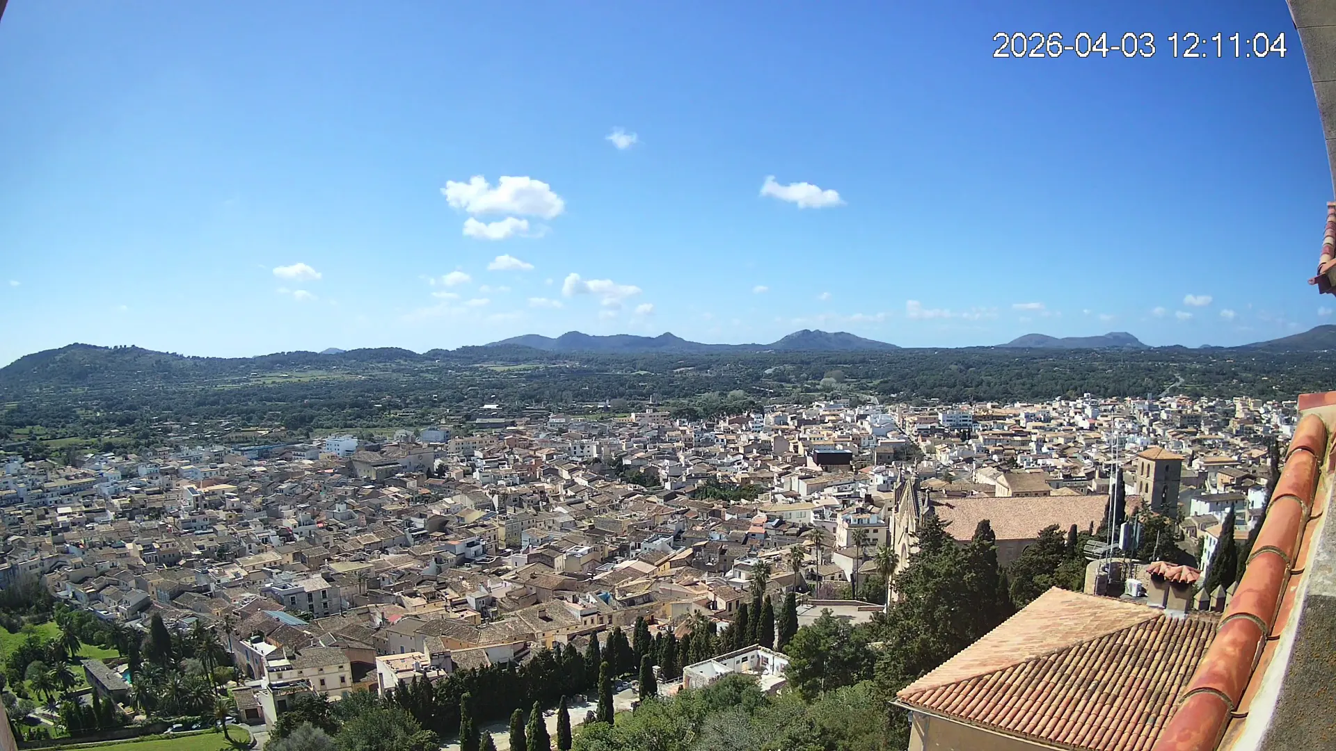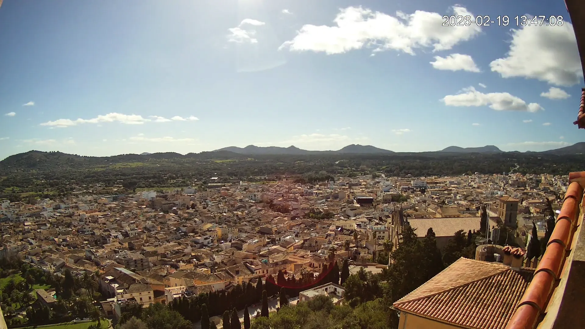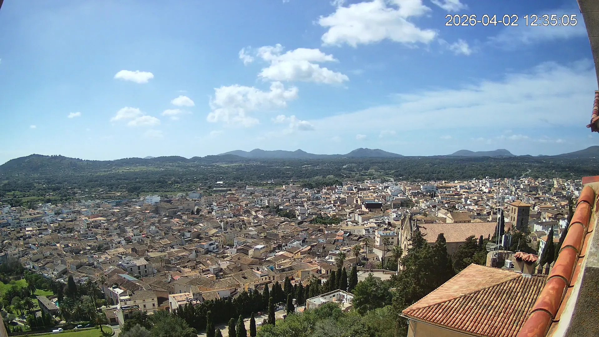 Desde lo alto del santuario de Sant Salvador, esta cámara observa con serenidad el pueblo de Artà extendido a sus pies, con sus tejados de teja árabe y el trazado de sus calles tradicionales. La imagen transmite un equilibrio entre veneración y panorámica urbana, reflejando la belleza tranquila de este rincón emblemático del Llevant mallorquín.