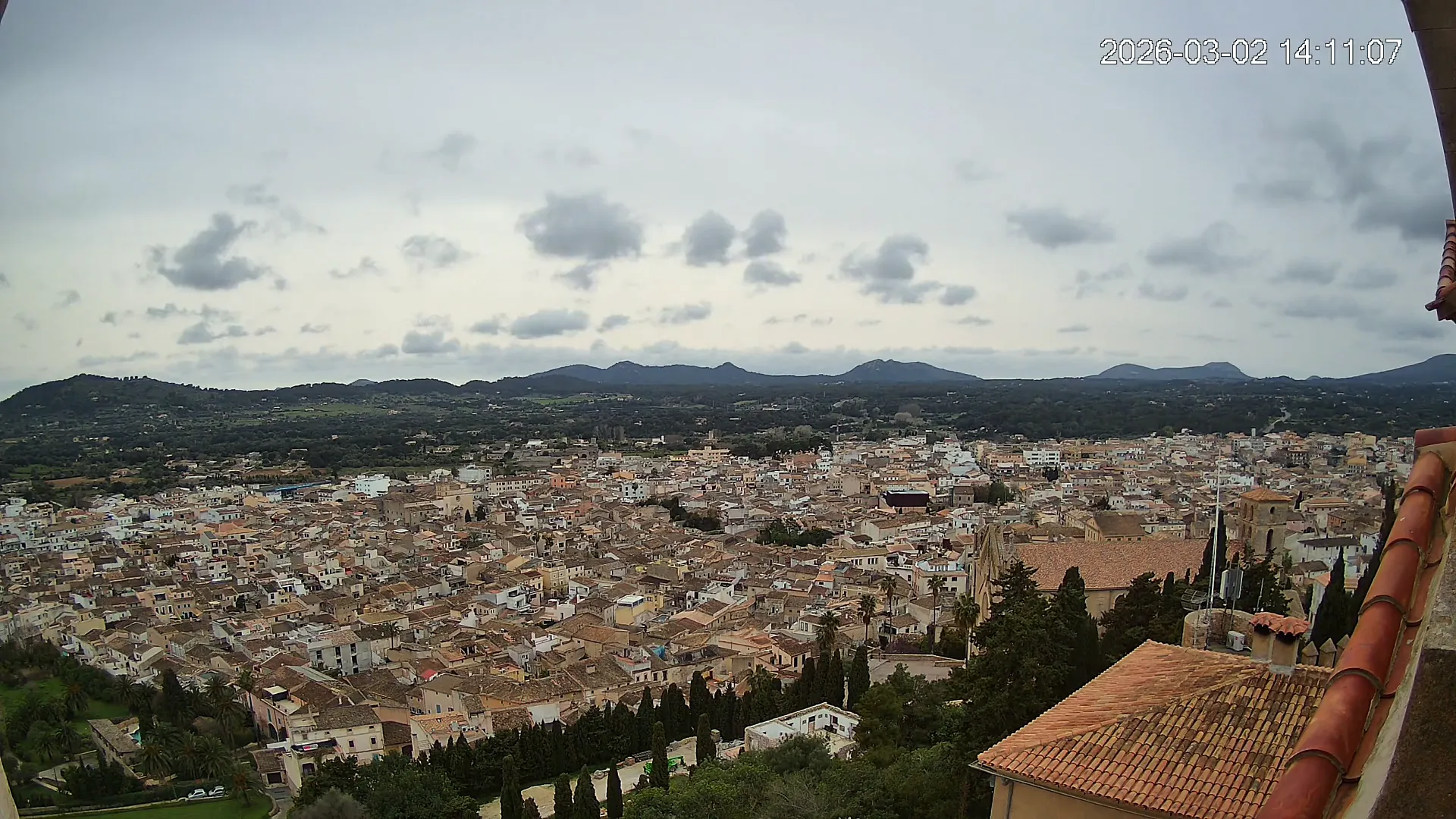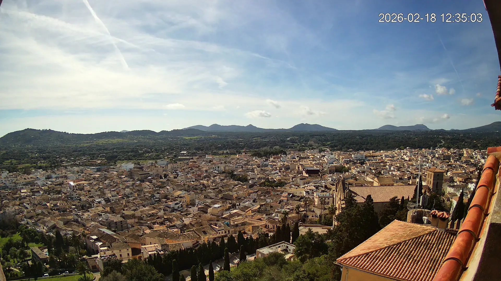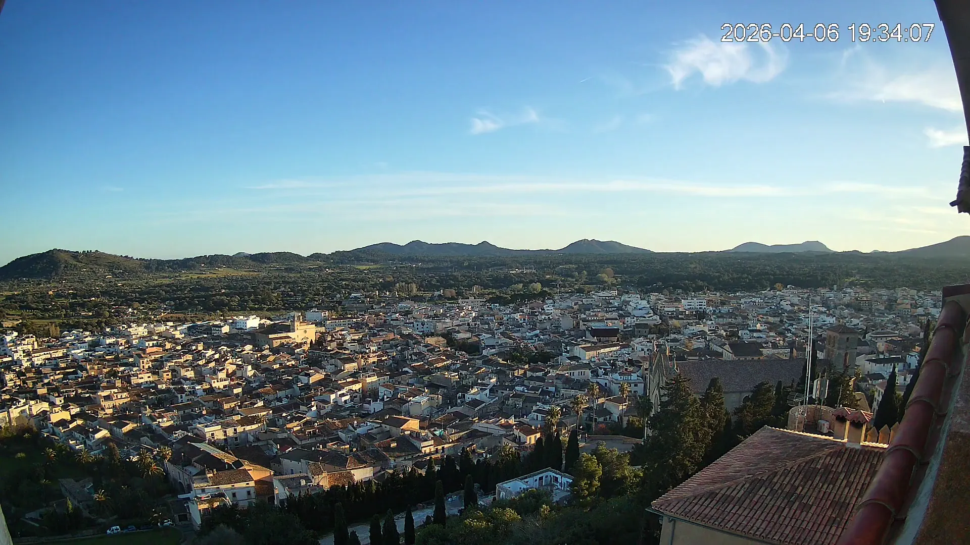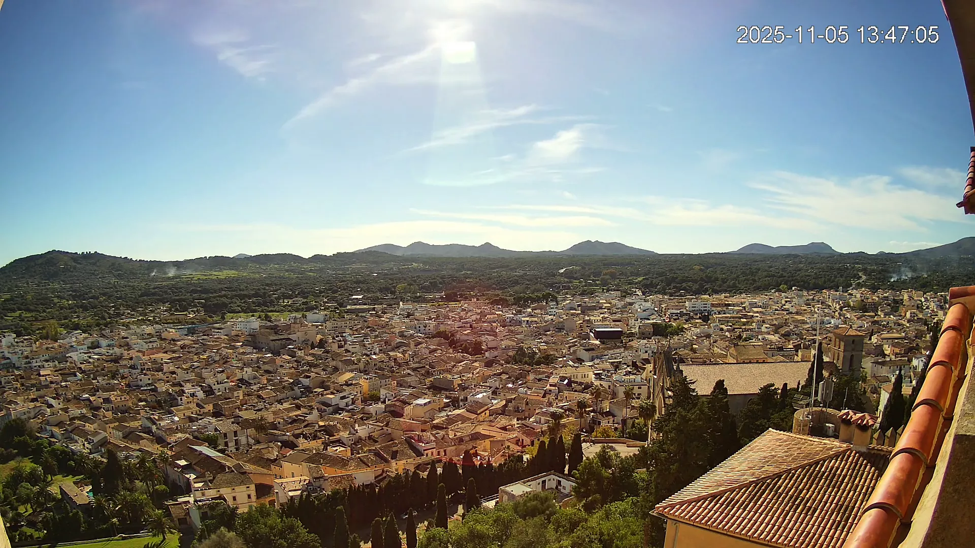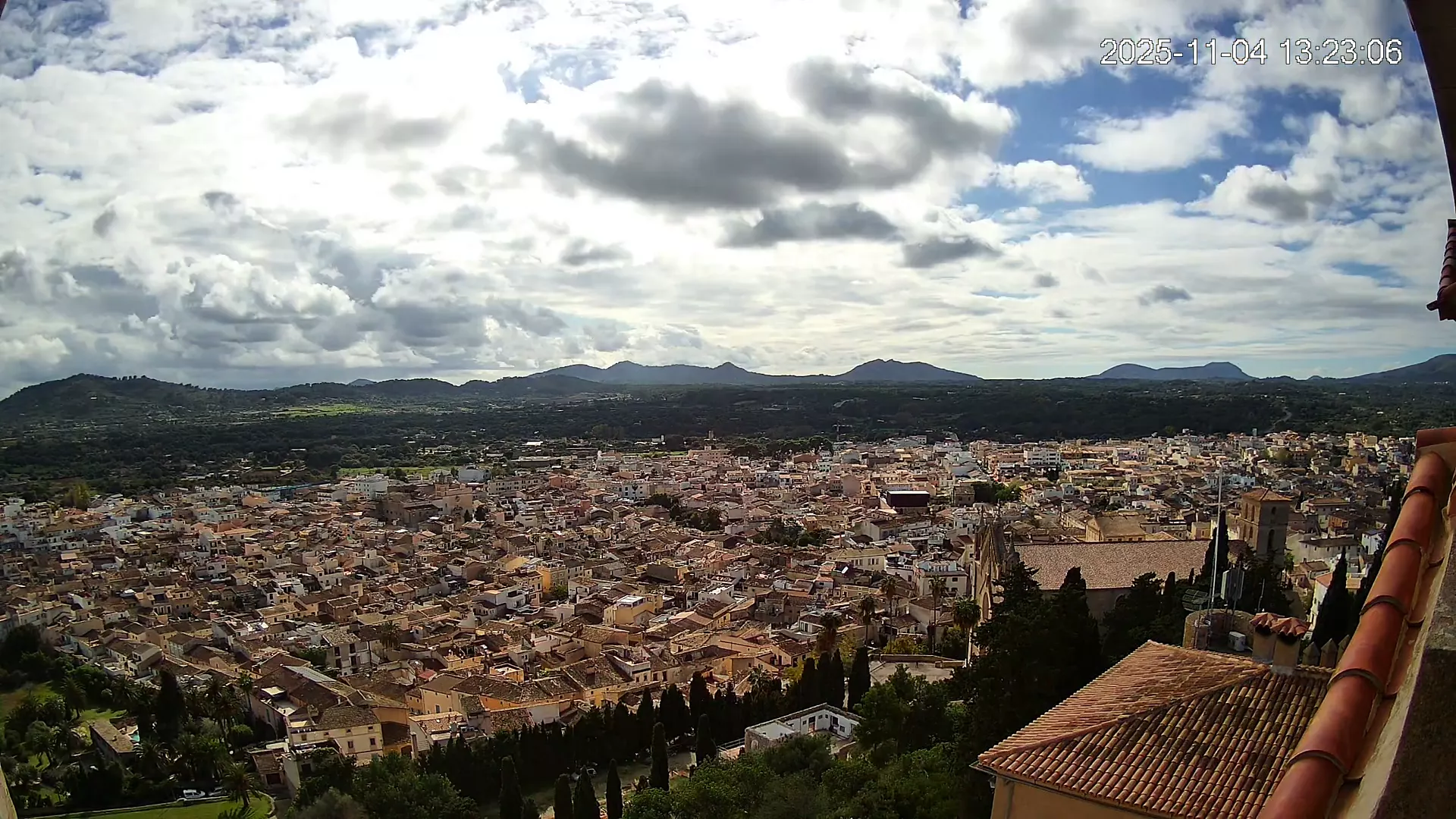 Desde lo alto del santuario de Sant Salvador, esta cámara observa con serenidad el pueblo de Artà extendido a sus pies, con sus tejados de teja árabe y el trazado de sus calles tradicionales. La imagen transmite un equilibrio entre veneración y panorámica urbana, reflejando la belleza tranquila de este rincón emblemático del Llevant mallorquín.