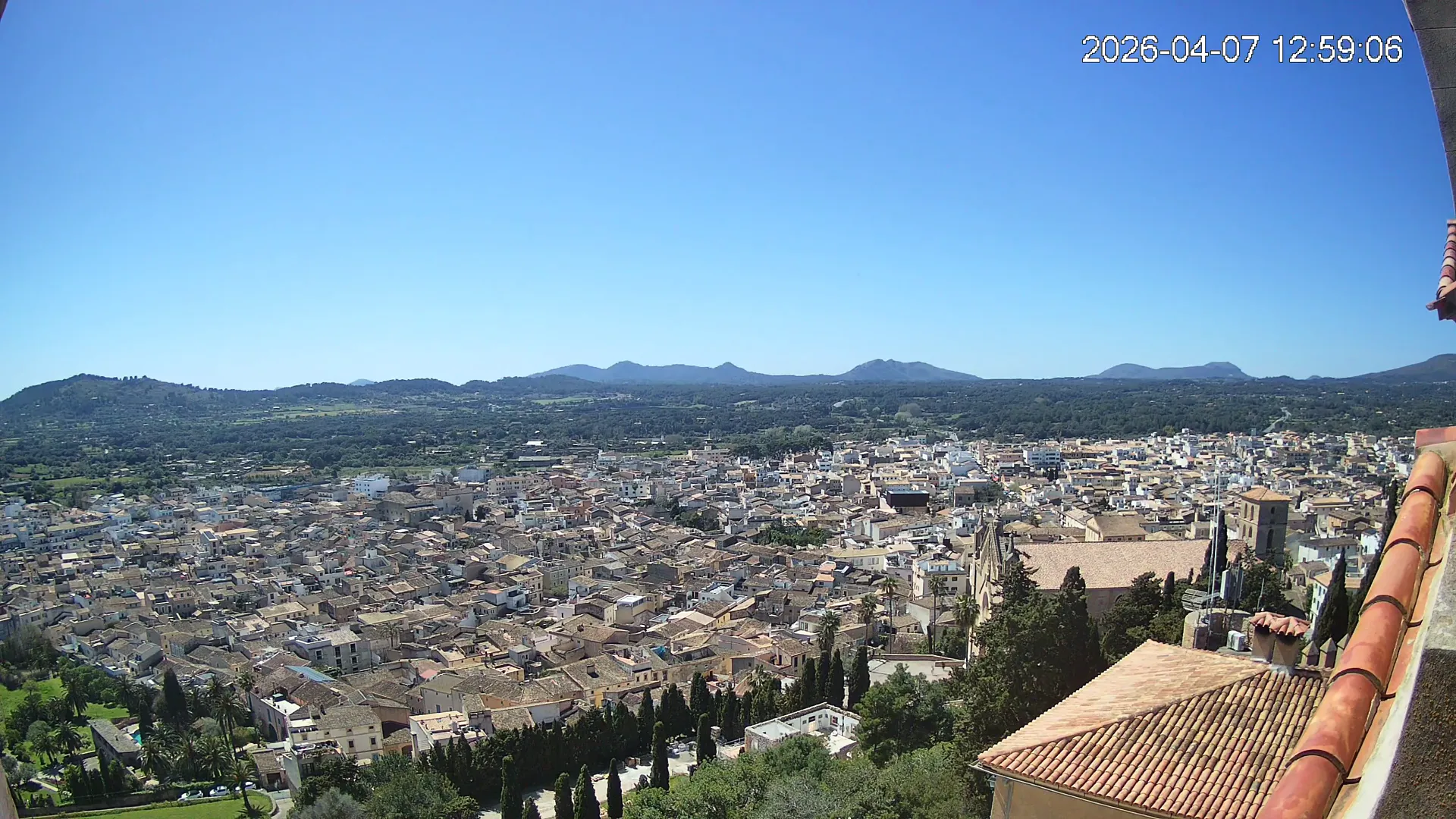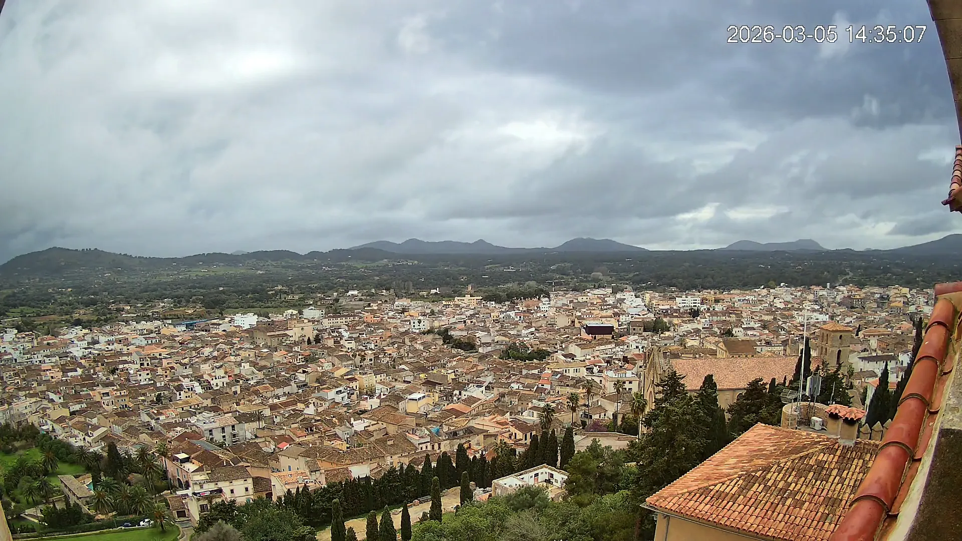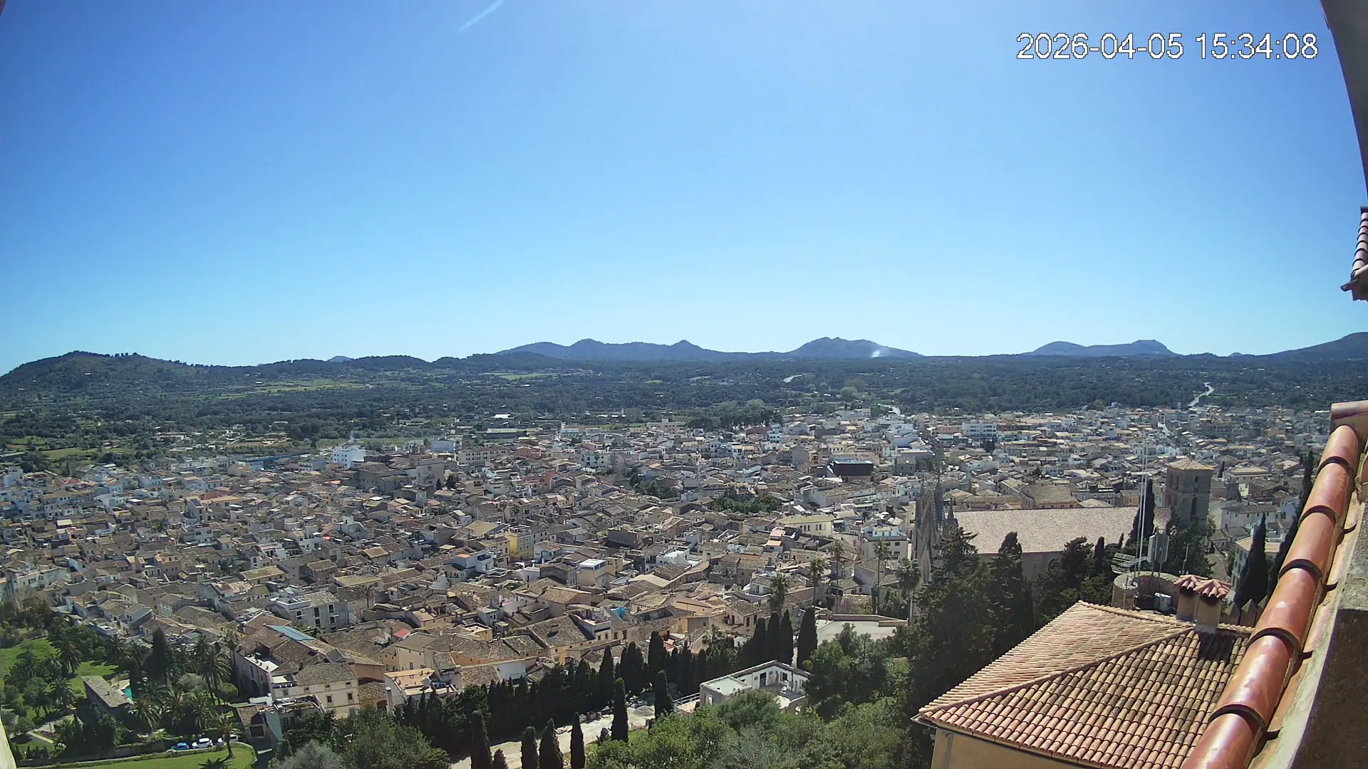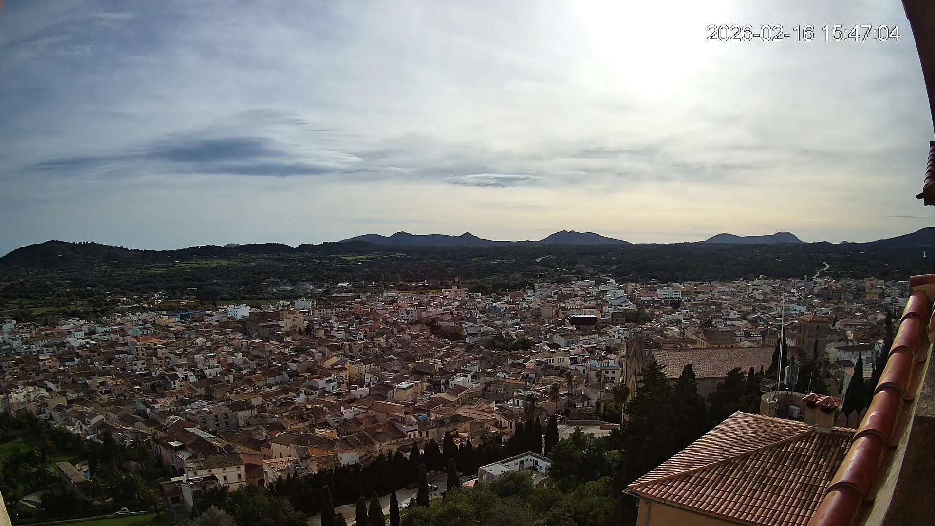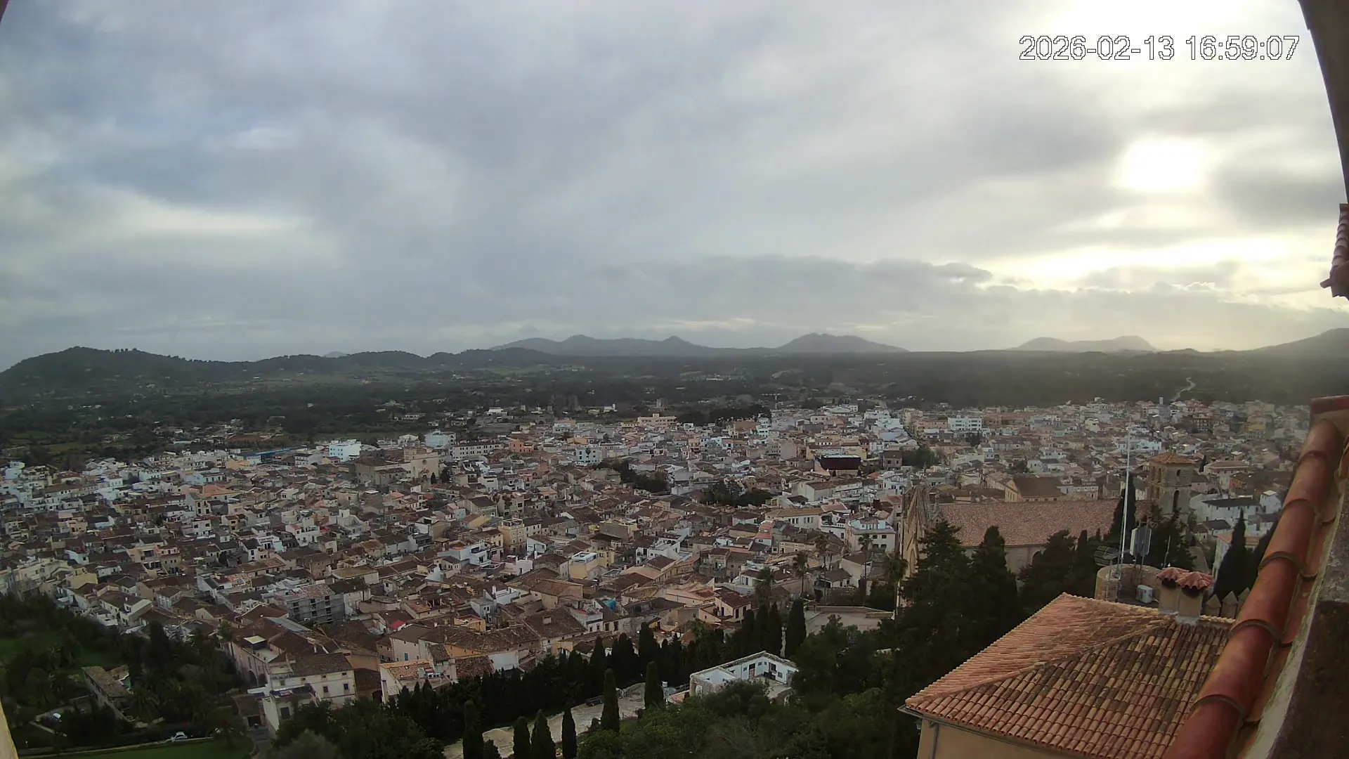 Desde lo alto del santuario de Sant Salvador, esta cámara observa con serenidad el pueblo de Artà extendido a sus pies, con sus tejados de teja árabe y el trazado de sus calles tradicionales. La imagen transmite un equilibrio entre veneración y panorámica urbana, reflejando la belleza tranquila de este rincón emblemático del Llevant mallorquín.