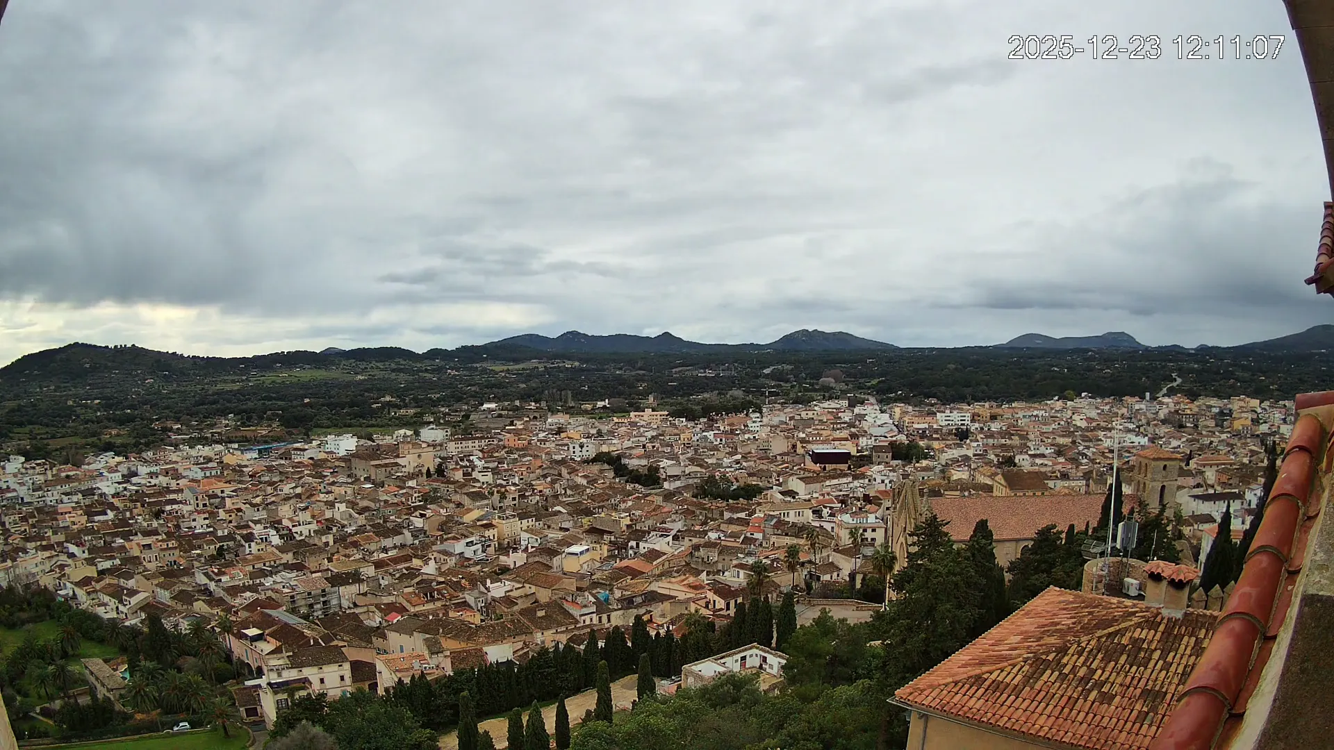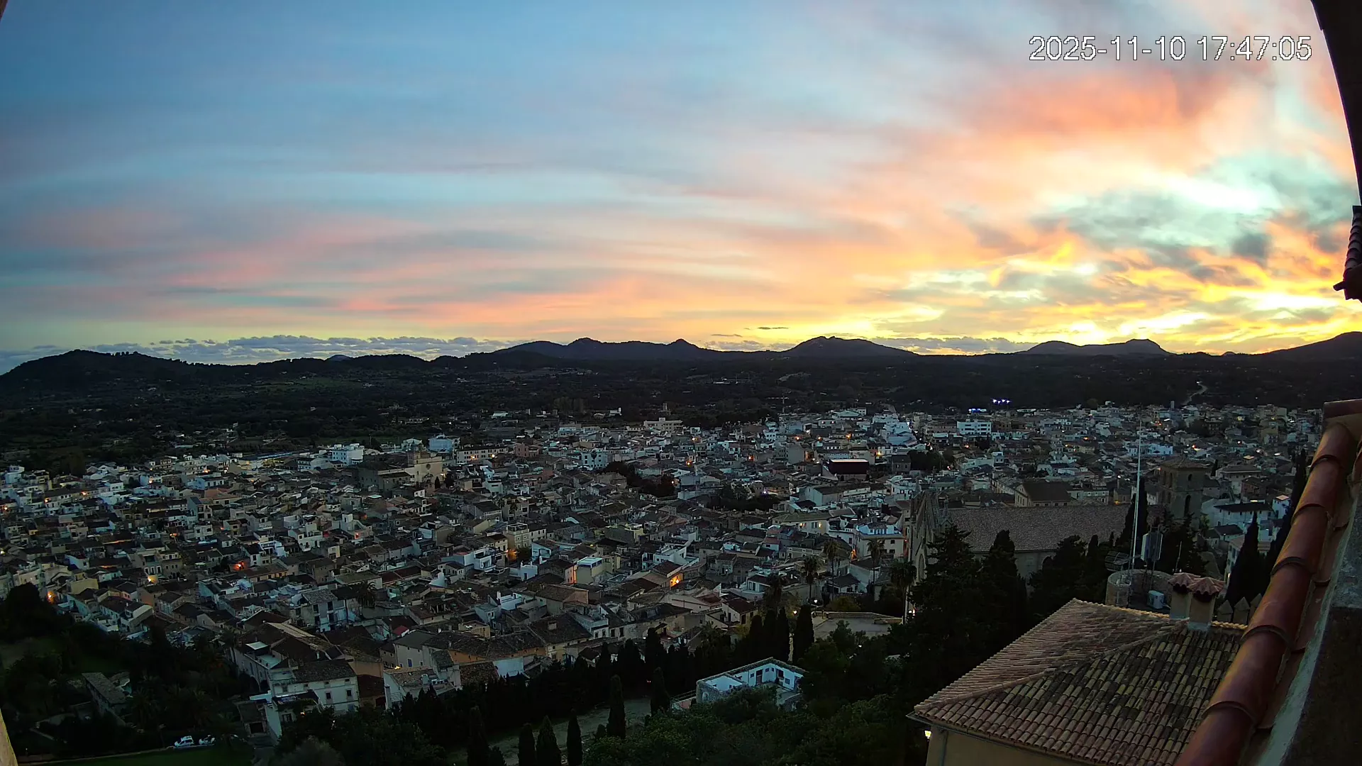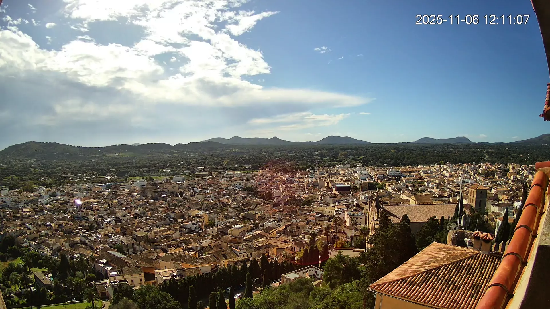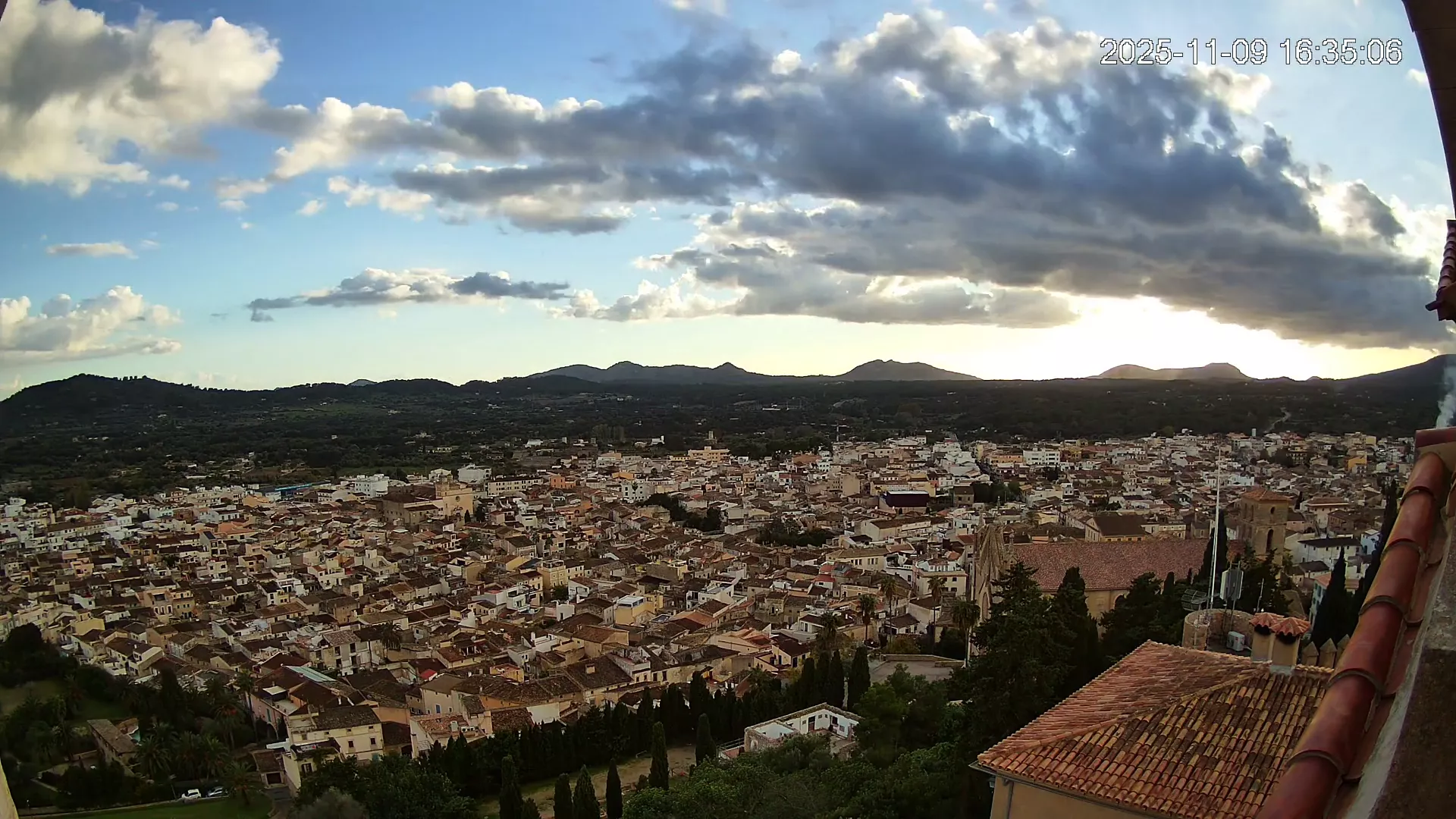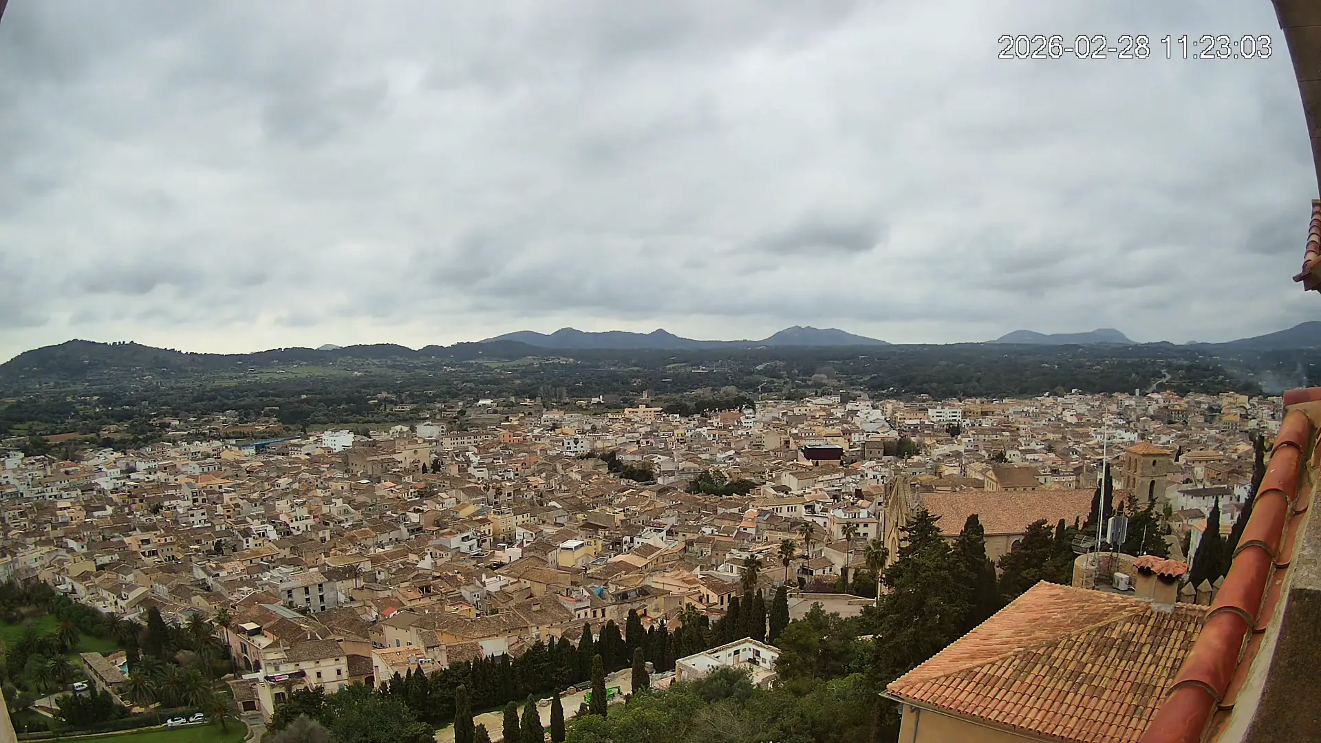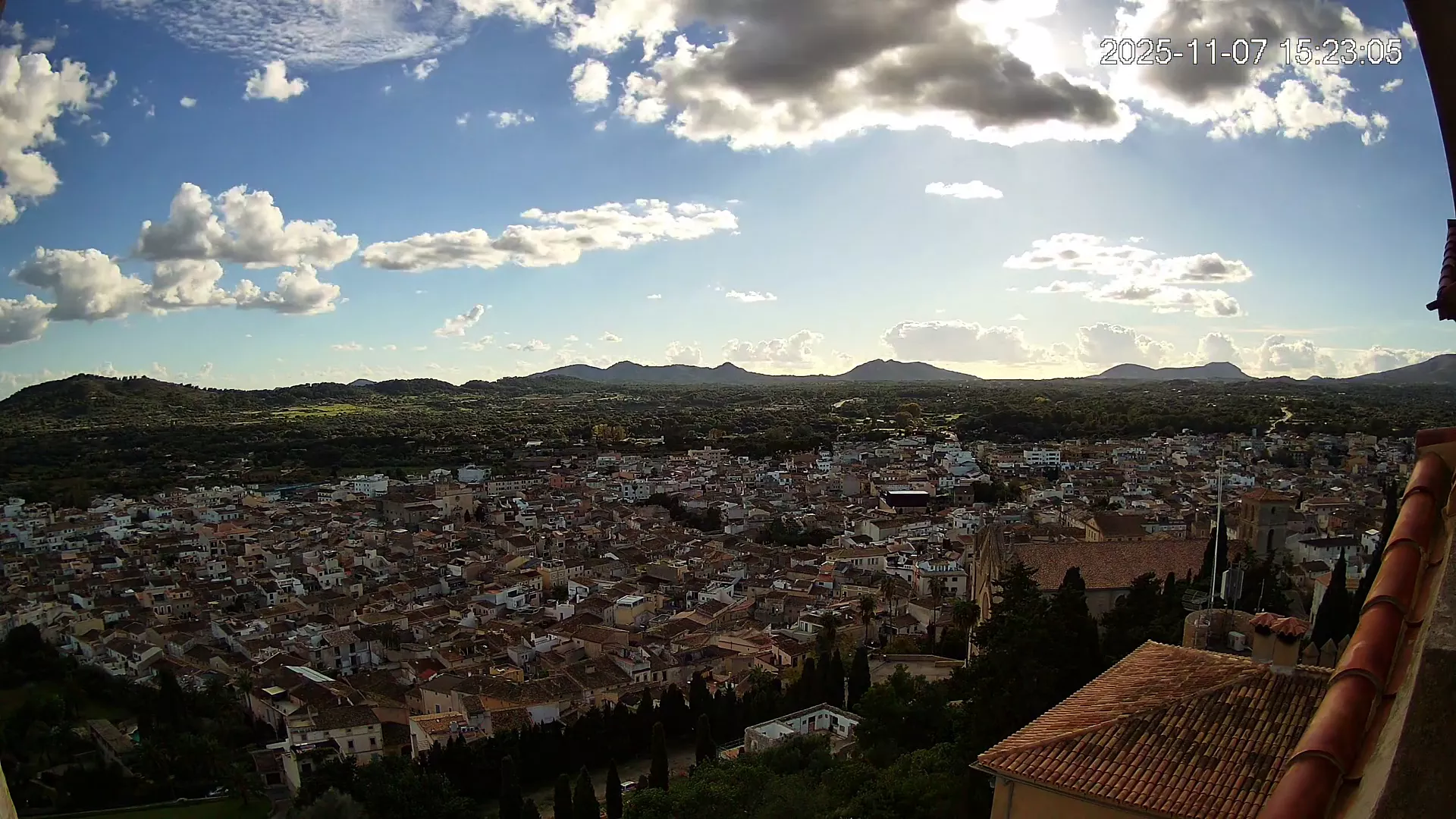 Desde lo alto del santuario de Sant Salvador, esta cámara observa con serenidad el pueblo de Artà extendido a sus pies, con sus tejados de teja árabe y el trazado de sus calles tradicionales. La imagen transmite un equilibrio entre veneración y panorámica urbana, reflejando la belleza tranquila de este rincón emblemático del Llevant mallorquín.