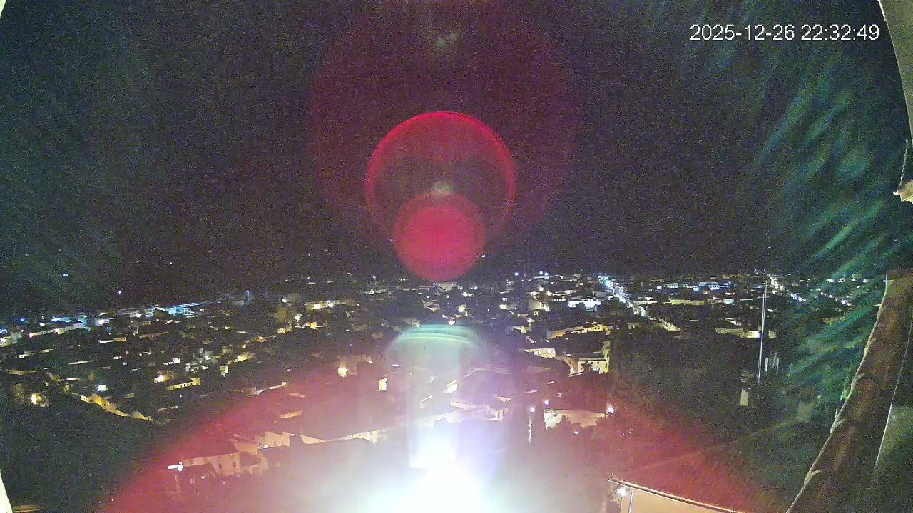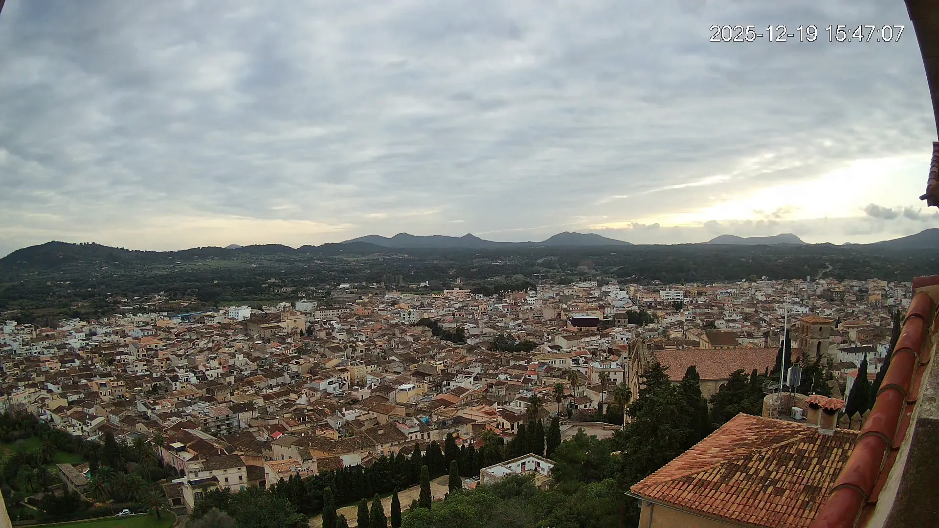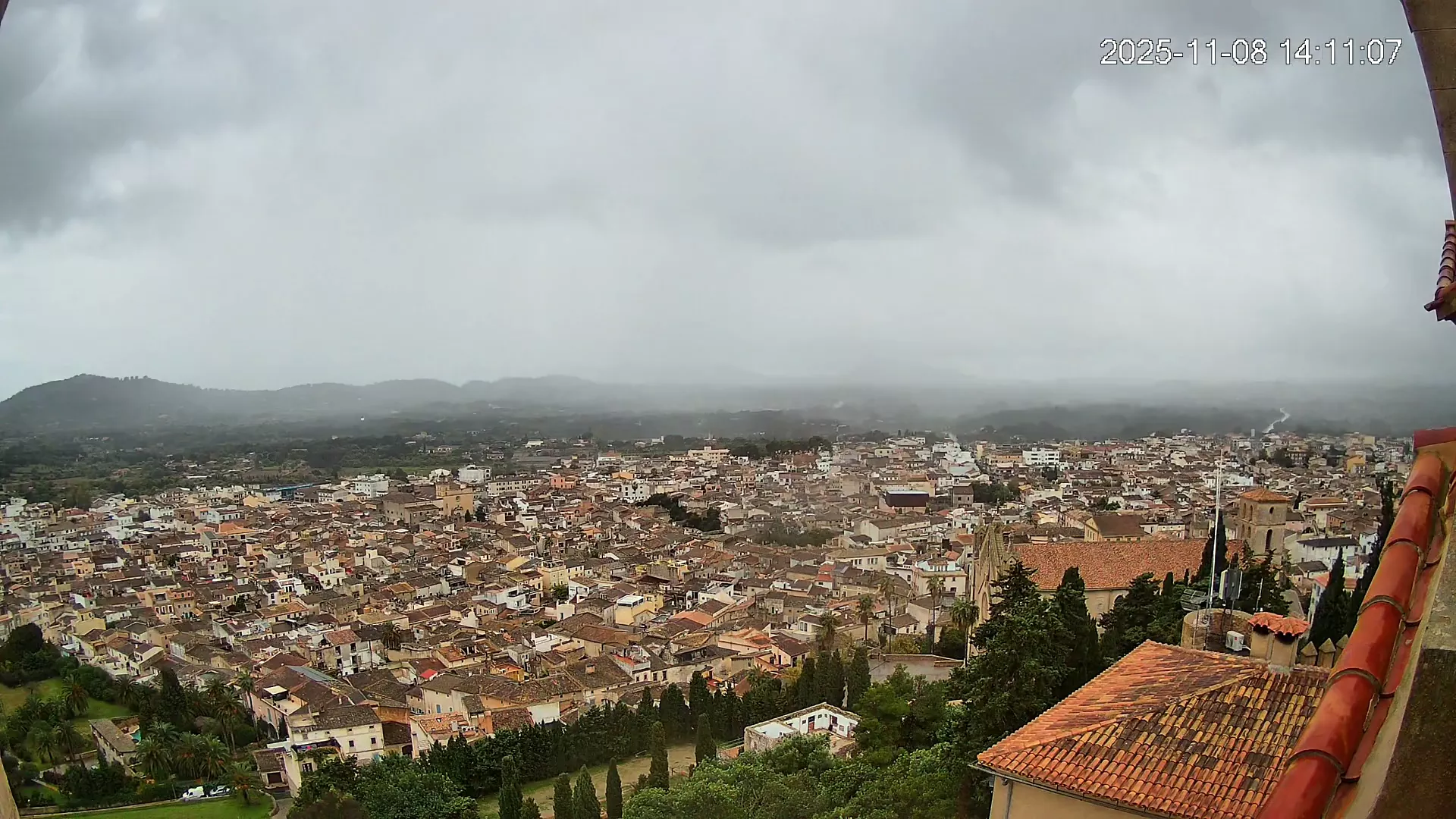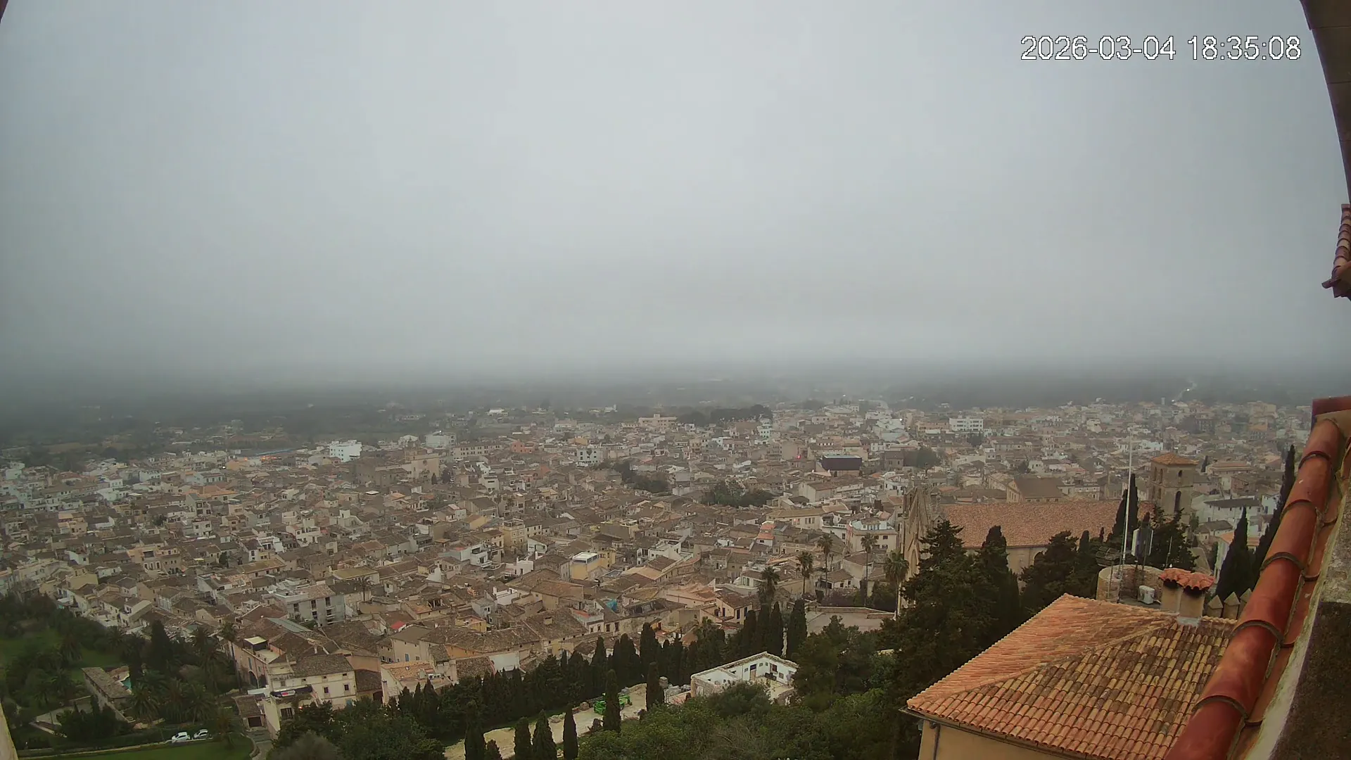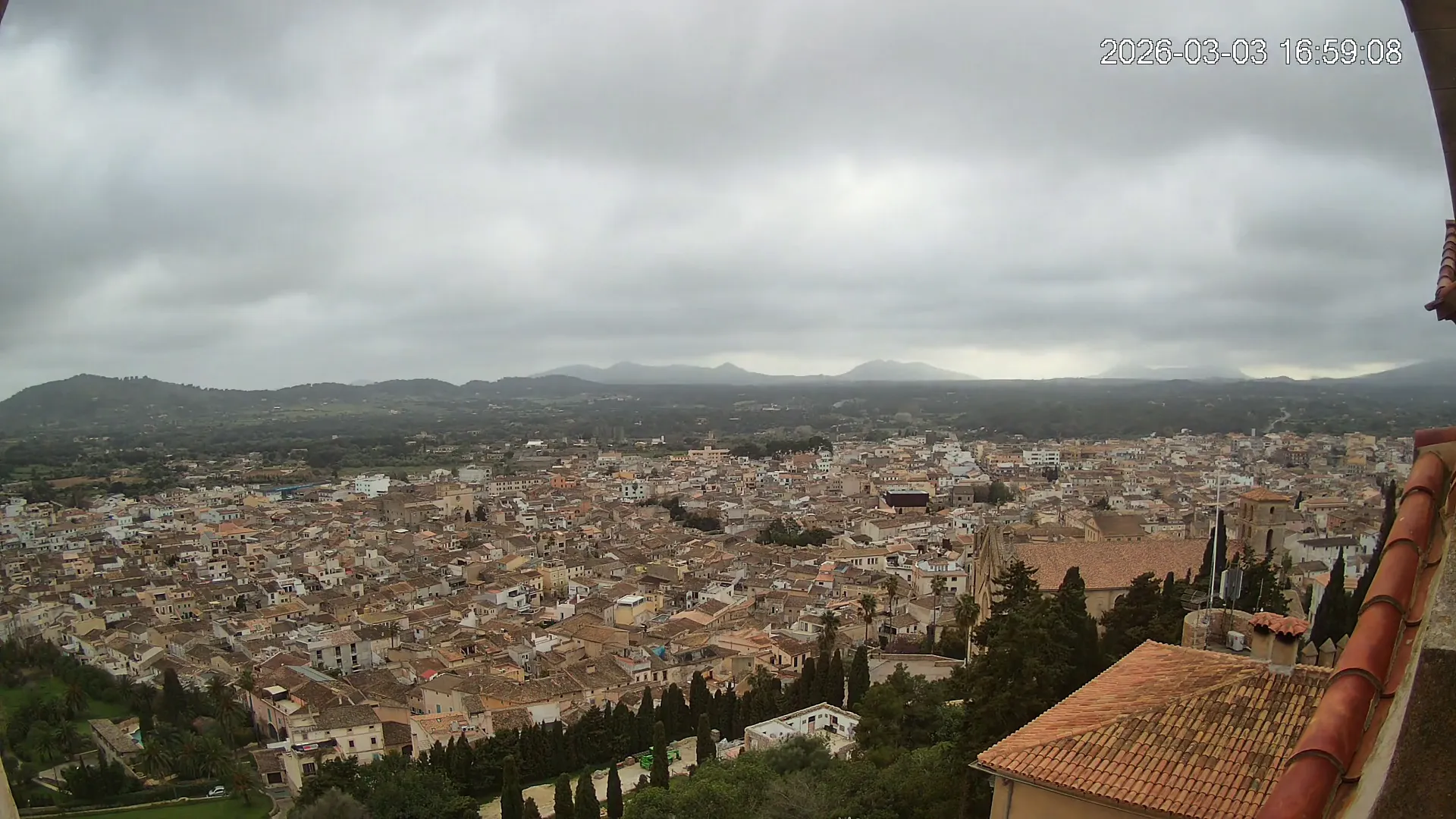 Desde lo alto del santuario de Sant Salvador, esta cámara observa con serenidad el pueblo de Artà extendido a sus pies, con sus tejados de teja árabe y el trazado de sus calles tradicionales. La imagen transmite un equilibrio entre veneración y panorámica urbana, reflejando la belleza tranquila de este rincón emblemático del Llevant mallorquín.