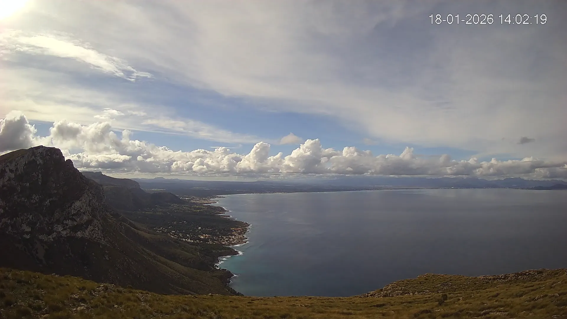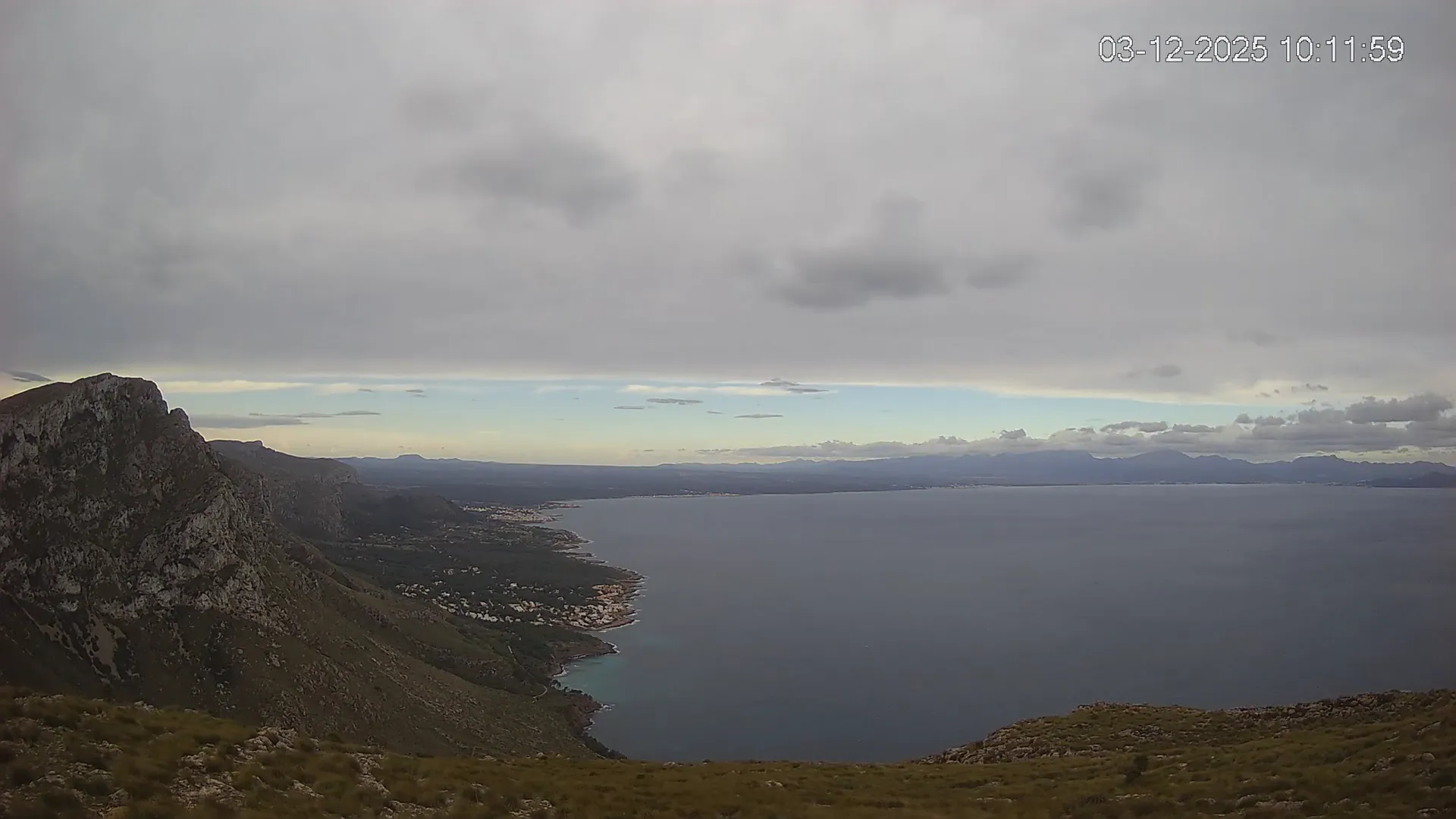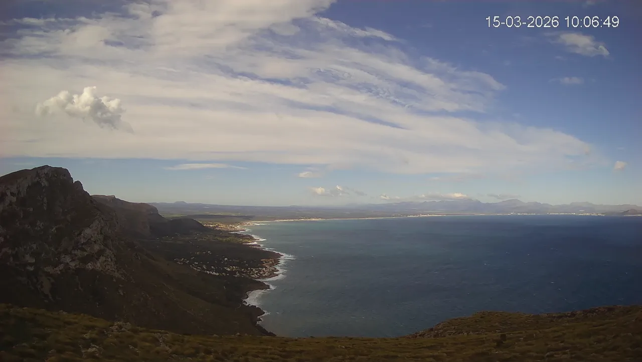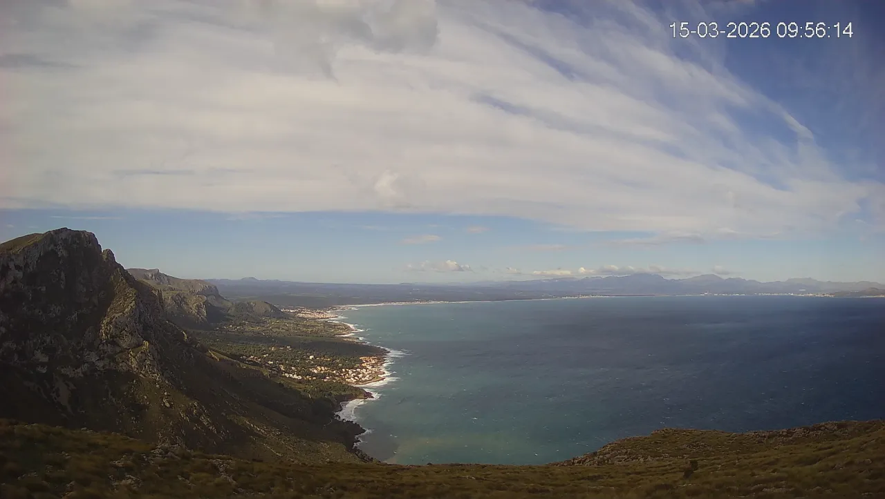 Ubicada en Puig de Sa Tudossa, esta cámara ofrece una vista privilegiada de la Bahía de Alcúdia, una de las más grandes y emblemáticas de Mallorca. Desde este punto elevado, puedes observar el contraste entre el mar y el paisaje montañoso, así como la evolución del tiempo en tiempo real. Consulta los timelapses de la última semana para ver la transformación del paisaje a lo largo del día, desde los primeros rayos de sol sobre el Mediterráneo hasta la caída de la noche. Observa los cambios en el estado del mar, la nubosidad y la iluminación natural a lo largo de la jornada.