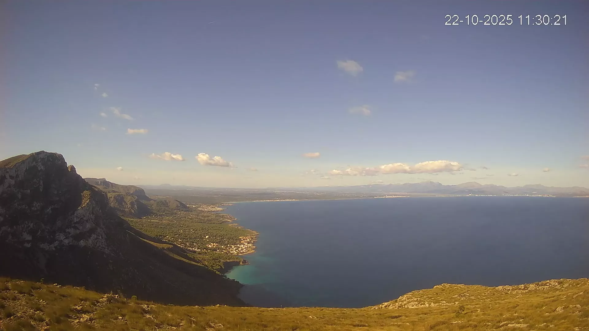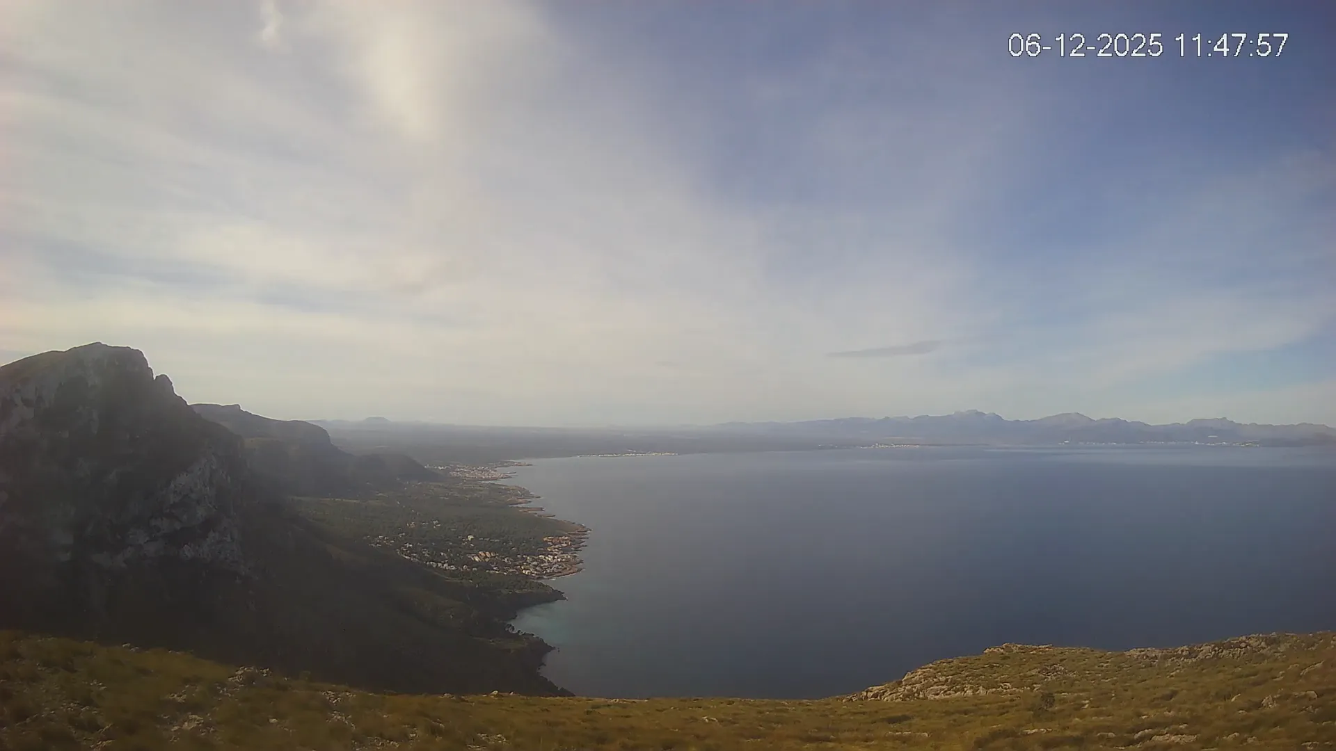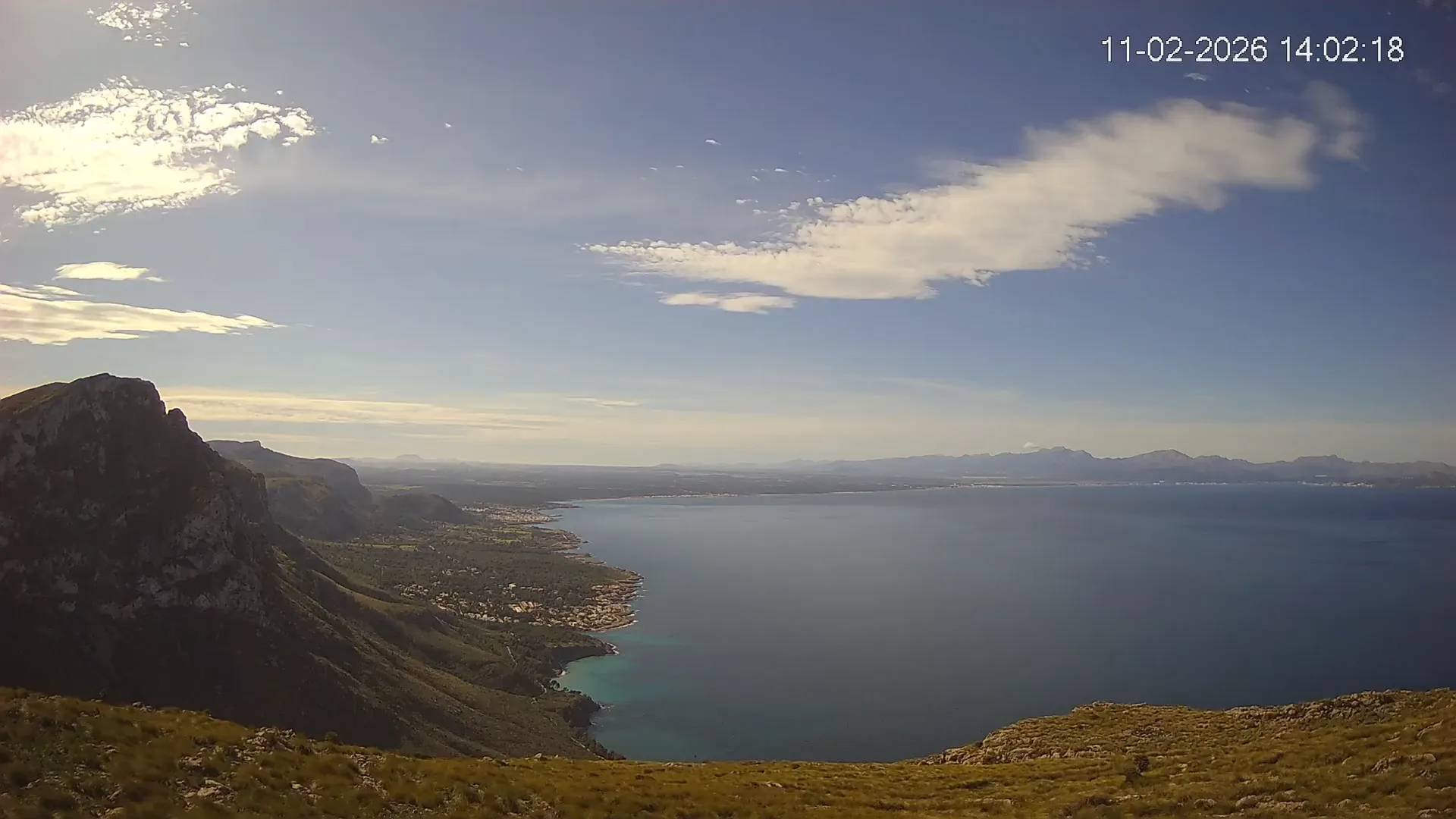 Ubicada en Puig de Sa Tudossa, esta cámara ofrece una vista privilegiada de la Bahía de Alcúdia, una de las más grandes y emblemáticas de Mallorca. Desde este punto elevado, puedes observar el contraste entre el mar y el paisaje montañoso, así como la evolución del tiempo en tiempo real. Consulta los timelapses de la última semana para ver la transformación del paisaje a lo largo del día, desde los primeros rayos de sol sobre el Mediterráneo hasta la caída de la noche. Observa los cambios en el estado del mar, la nubosidad y la iluminación natural a lo largo de la jornada.