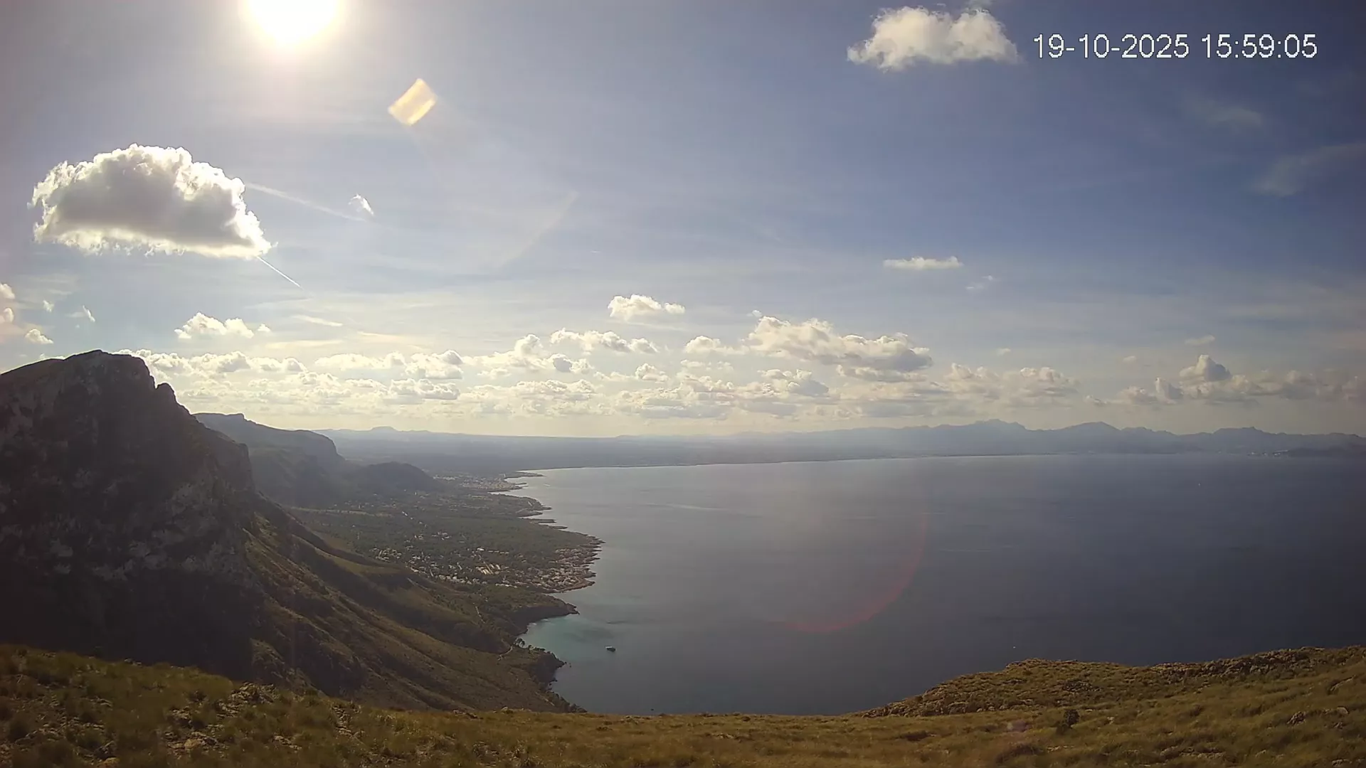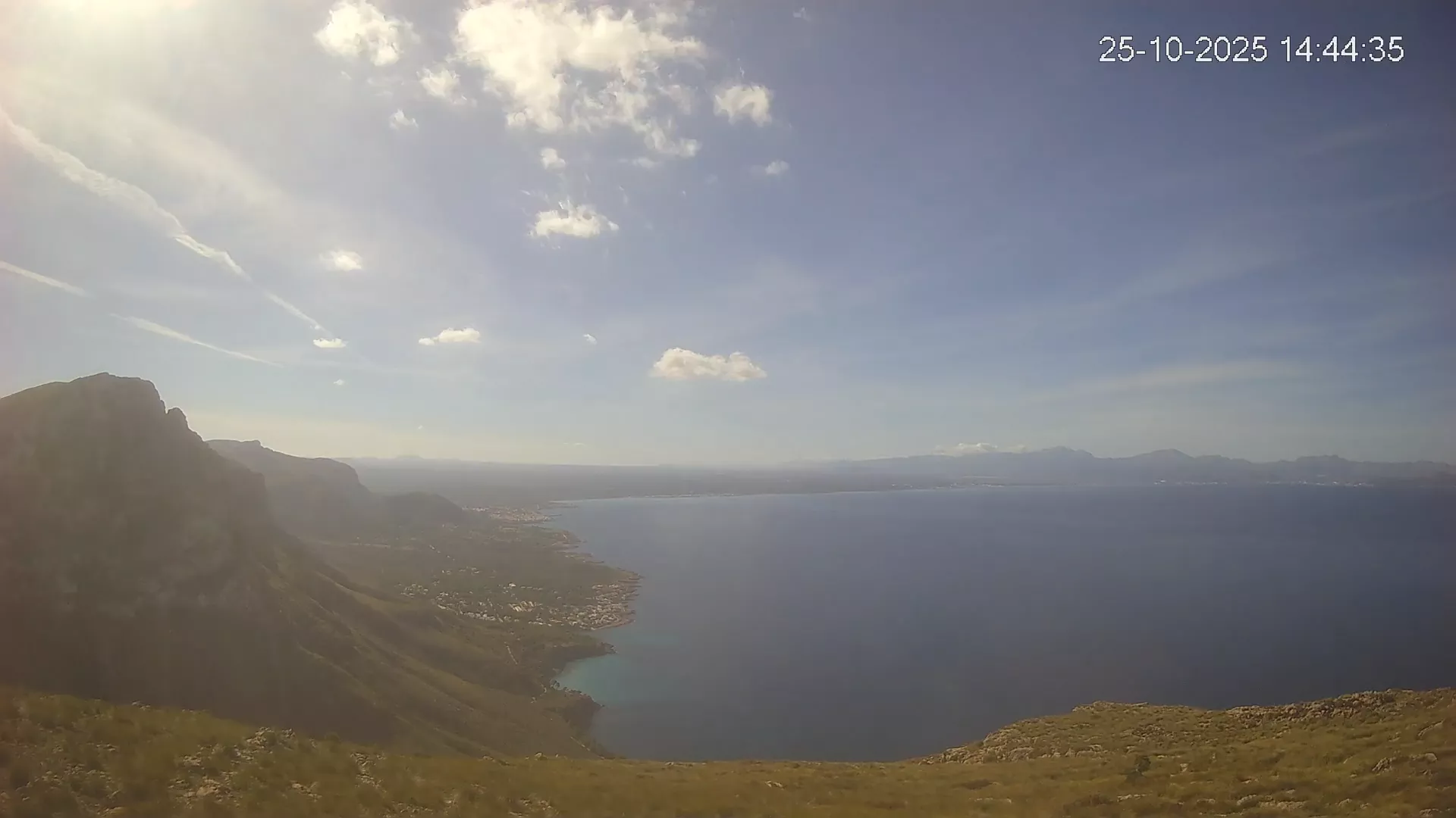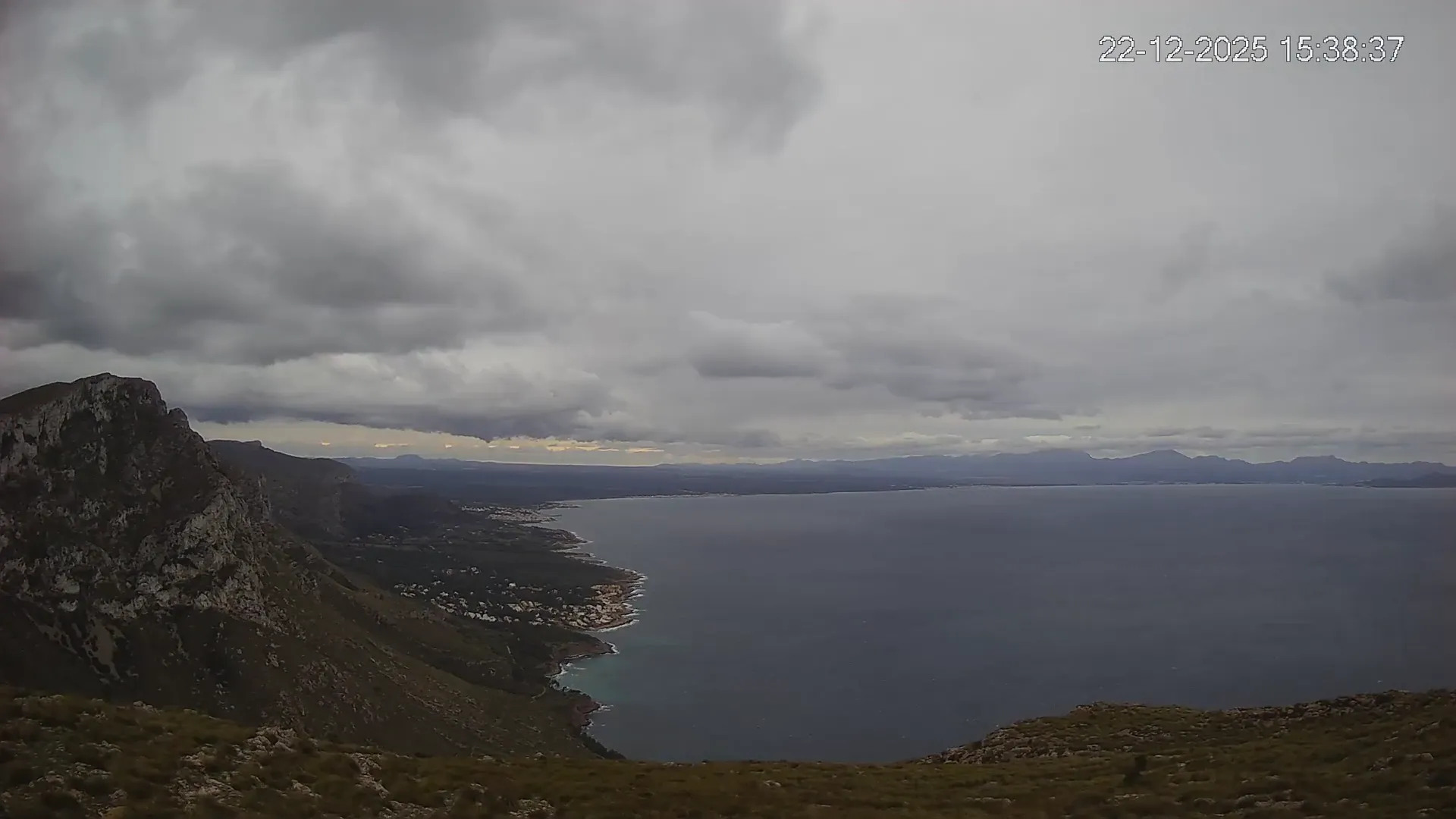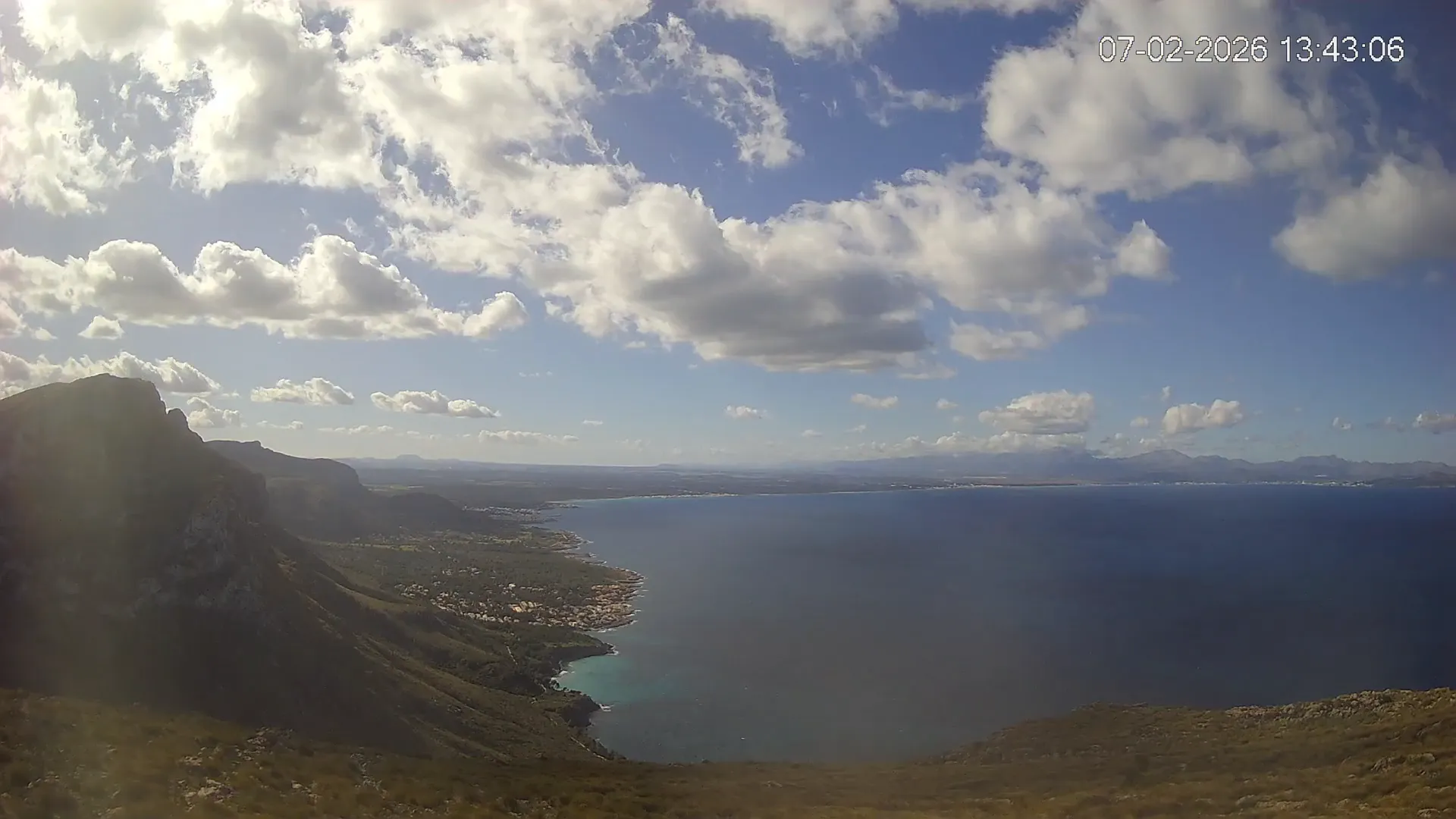 Ubicada en Puig de Sa Tudossa, esta cámara ofrece una vista privilegiada de la Bahía de Alcúdia, una de las más grandes y emblemáticas de Mallorca. Desde este punto elevado, puedes observar el contraste entre el mar y el paisaje montañoso, así como la evolución del tiempo en tiempo real. Consulta los timelapses de la última semana para ver la transformación del paisaje a lo largo del día, desde los primeros rayos de sol sobre el Mediterráneo hasta la caída de la noche. Observa los cambios en el estado del mar, la nubosidad y la iluminación natural a lo largo de la jornada.