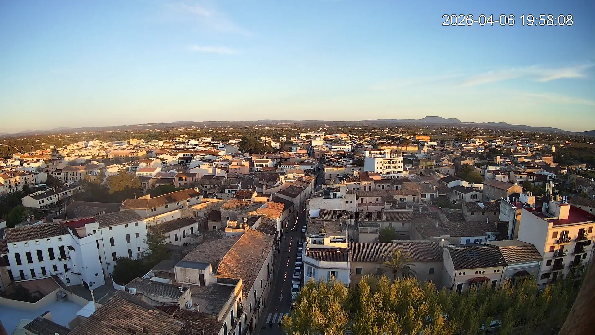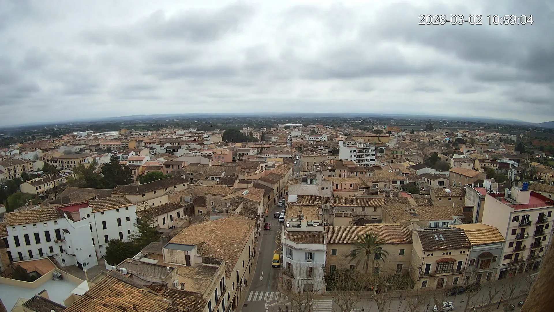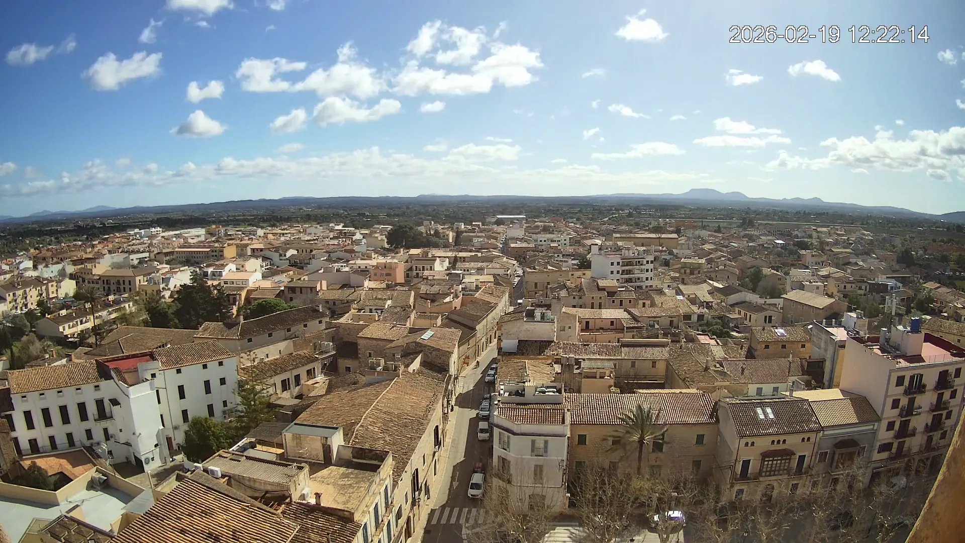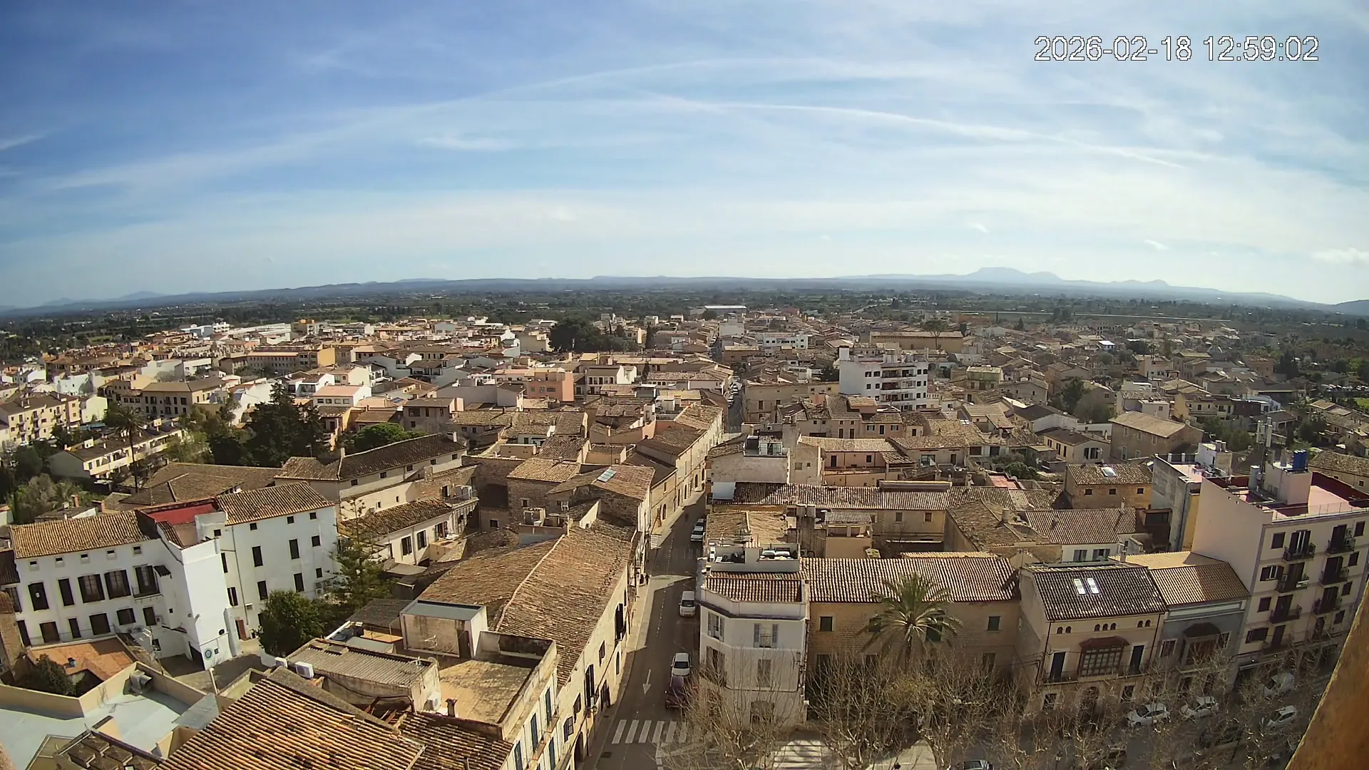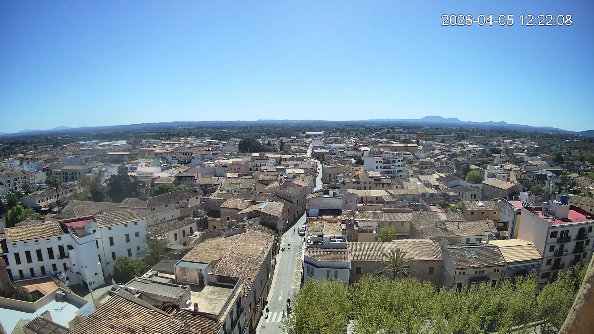 Desde lo alto del campanario de Binissalem, se ofrece una vista elevada del pueblo, donde predominan los tejados de teja árabe que se extienden entre calles estrechas, rodeados por el paisaje agrícola del Pla de Mallorca. Esta perspectiva refleja la esencia de Binissalem, un pueblo con profunda tradición vinícola y carácter auténtico mallorquín.