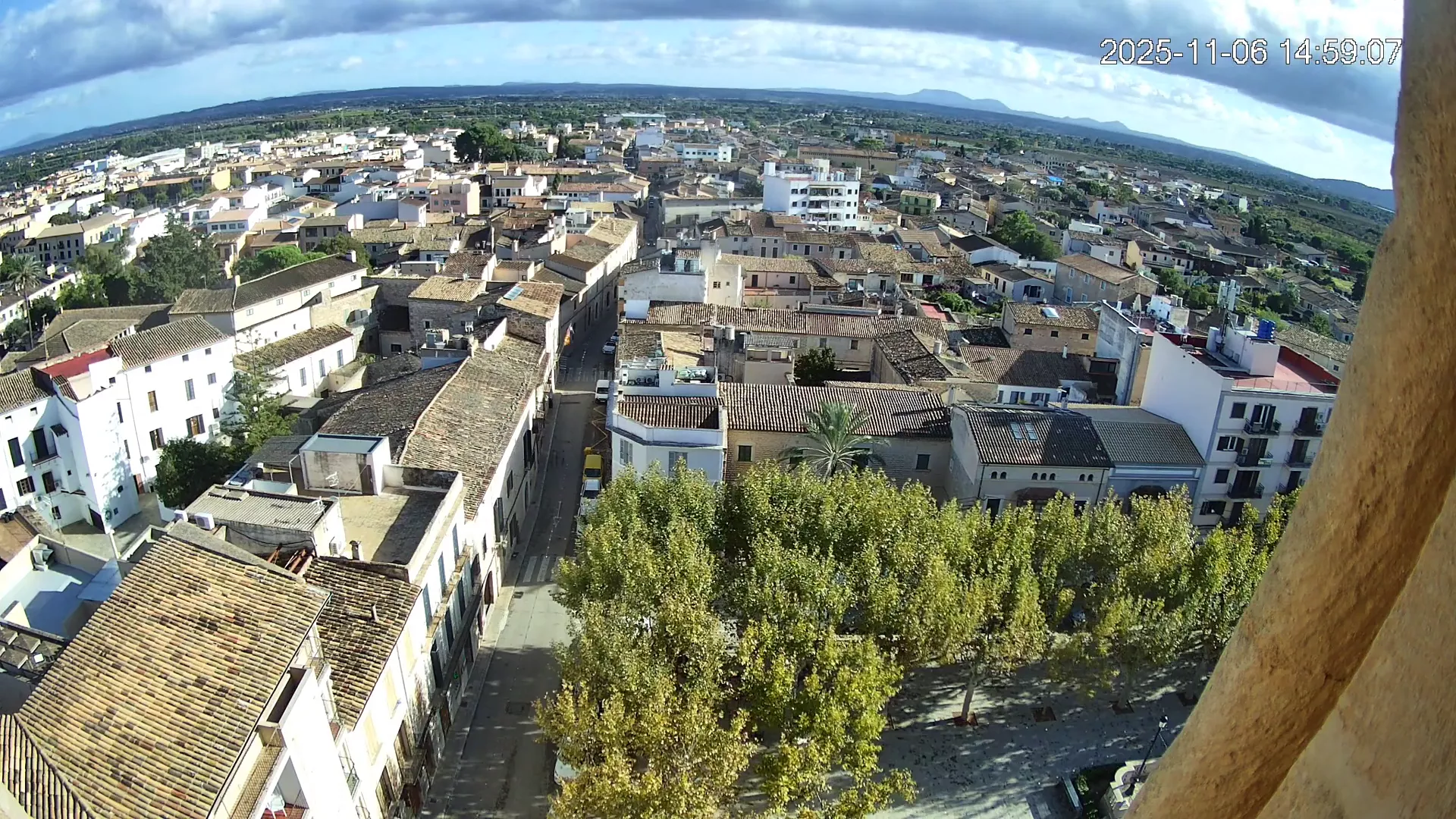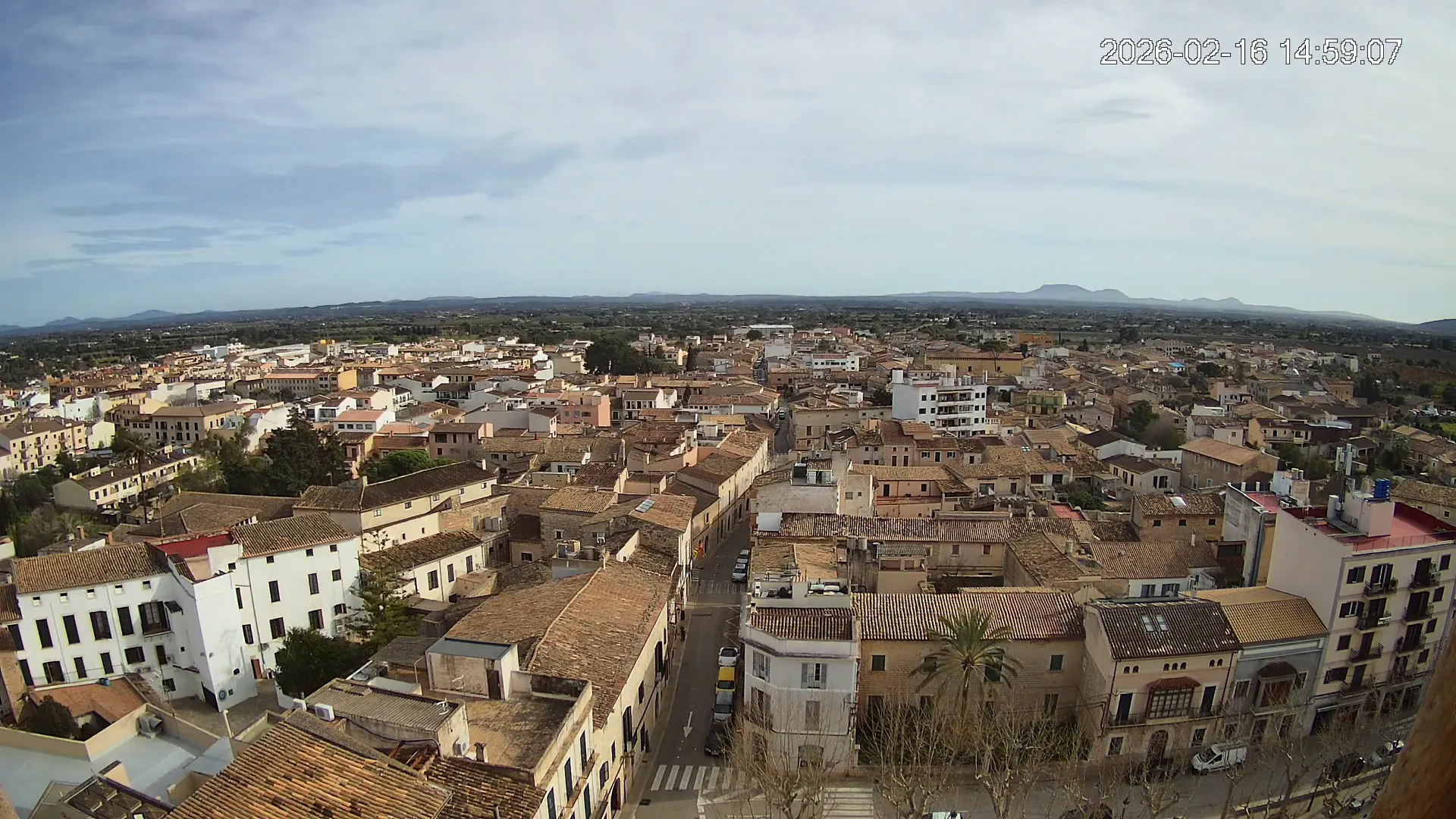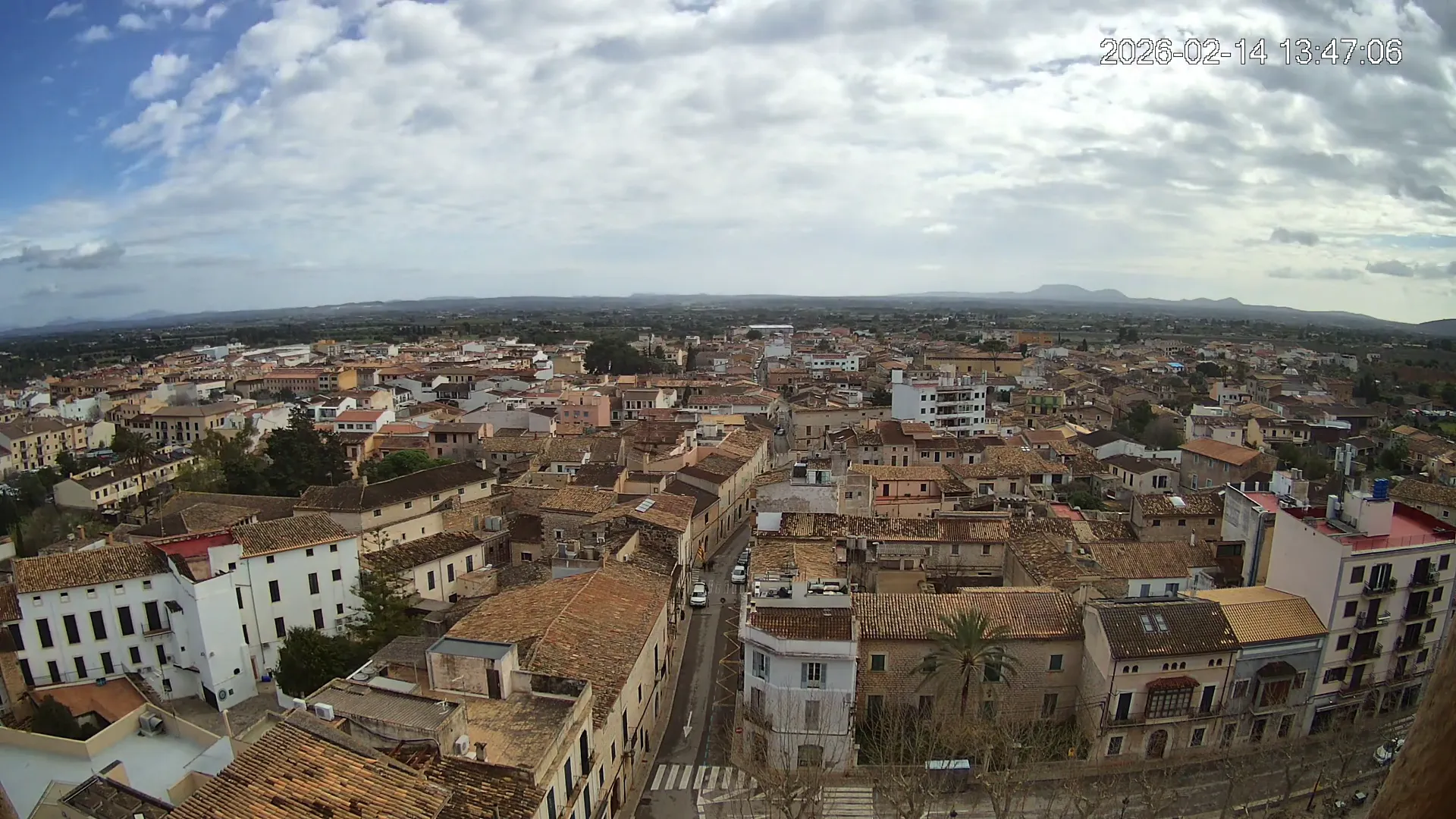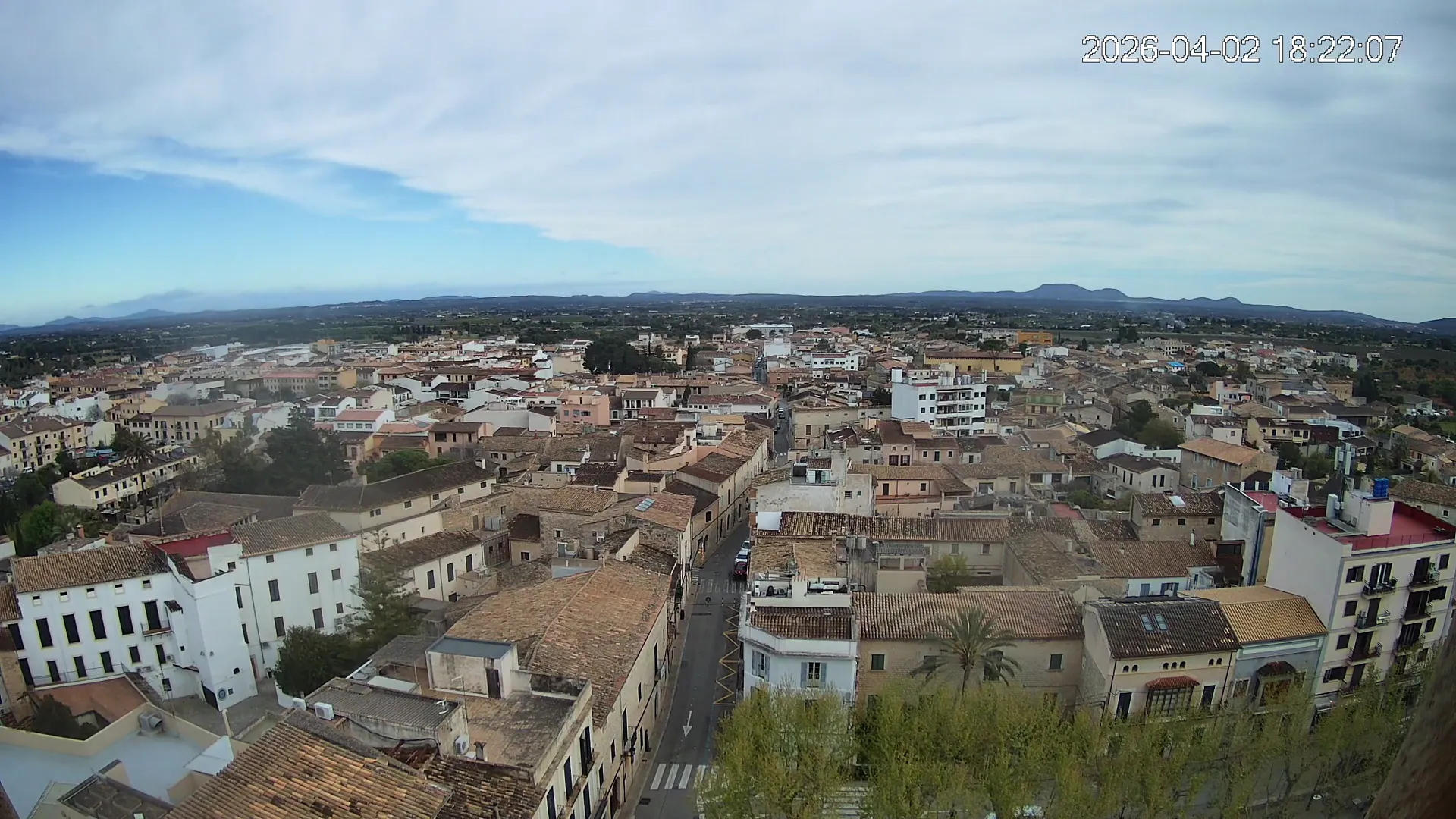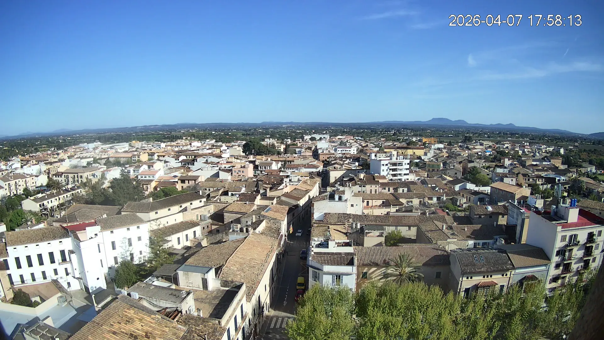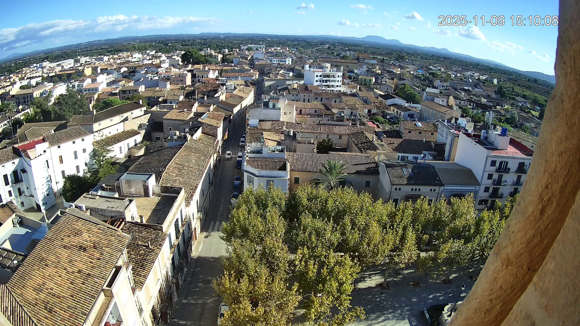 Desde lo alto del campanario de Binissalem, se ofrece una vista elevada del pueblo, donde predominan los tejados de teja árabe que se extienden entre calles estrechas, rodeados por el paisaje agrícola del Pla de Mallorca. Esta perspectiva refleja la esencia de Binissalem, un pueblo con profunda tradición vinícola y carácter auténtico mallorquín.