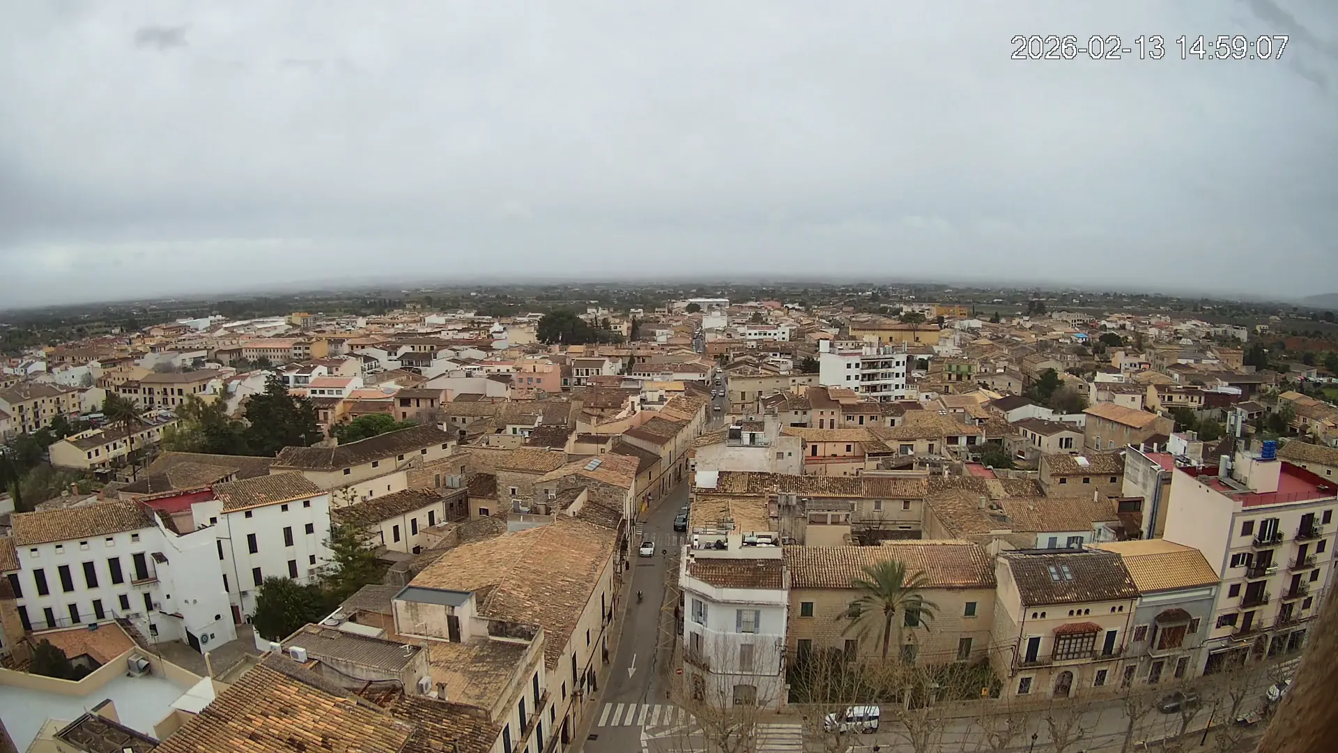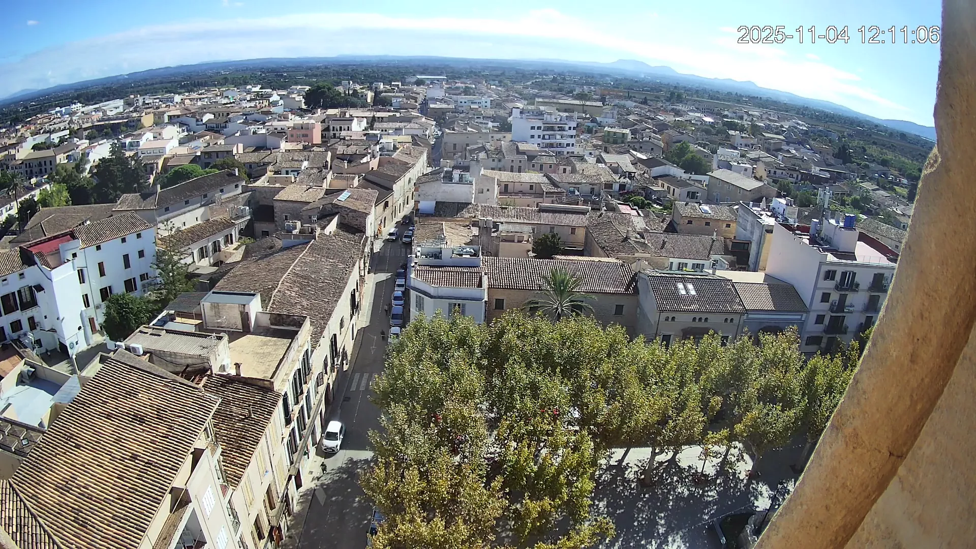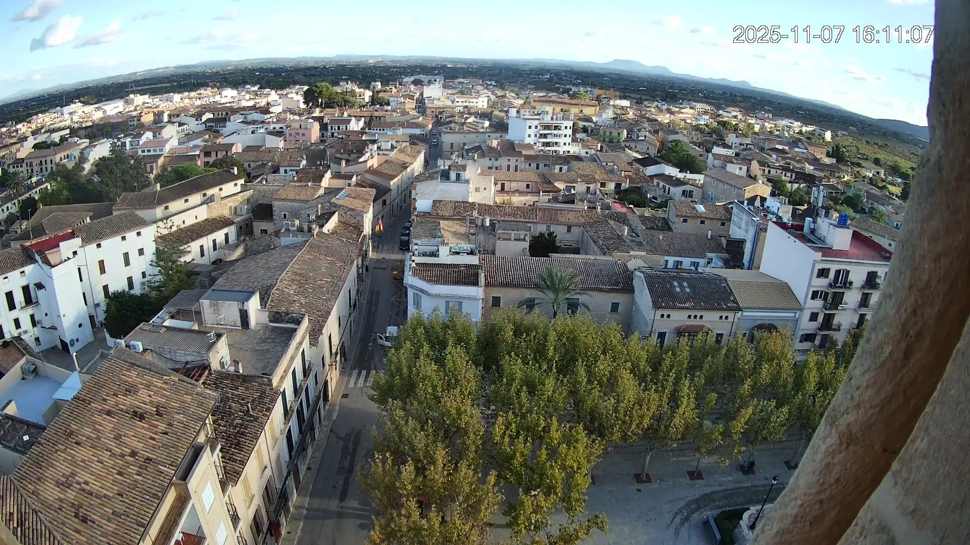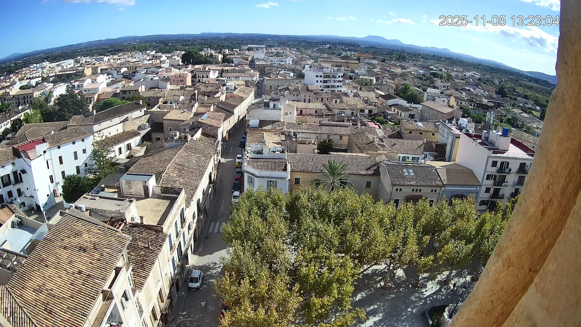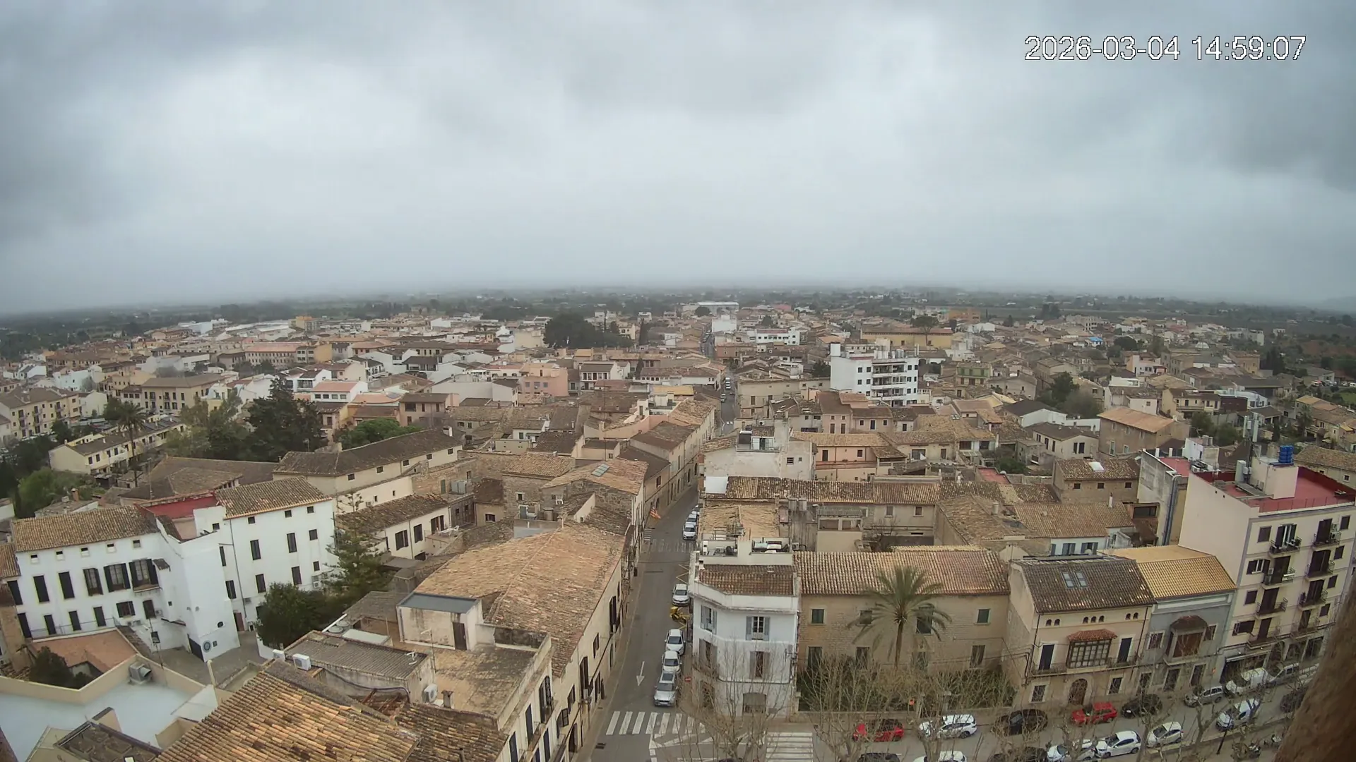 Desde lo alto del campanario de Binissalem, se ofrece una vista elevada del pueblo, donde predominan los tejados de teja árabe que se extienden entre calles estrechas, rodeados por el paisaje agrícola del Pla de Mallorca. Esta perspectiva refleja la esencia de Binissalem, un pueblo con profunda tradición vinícola y carácter auténtico mallorquín.