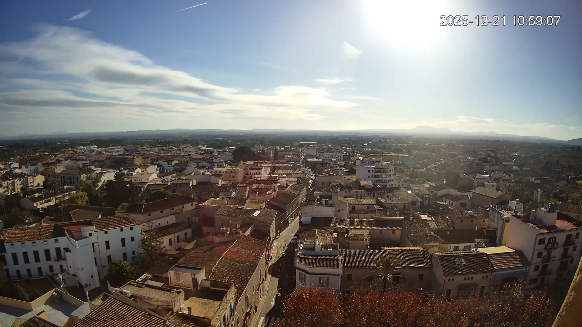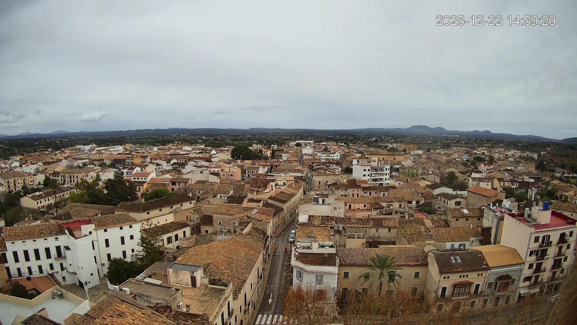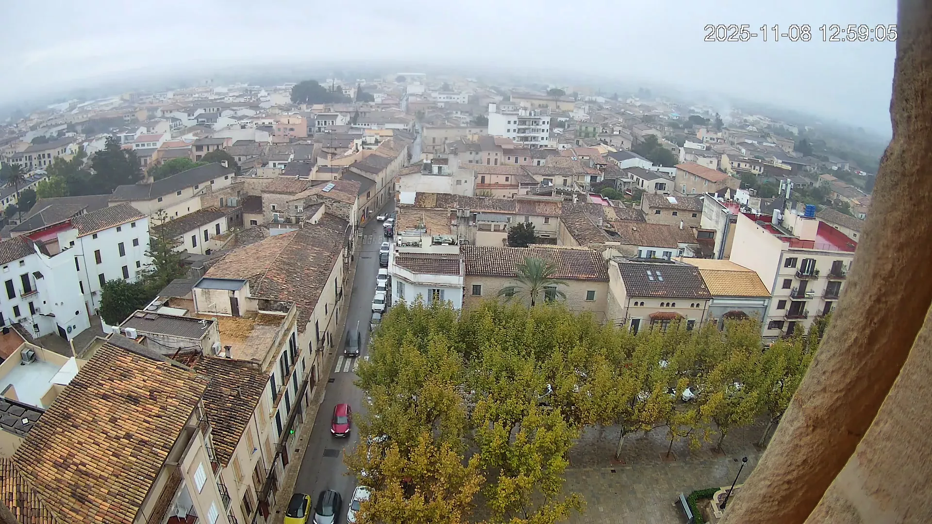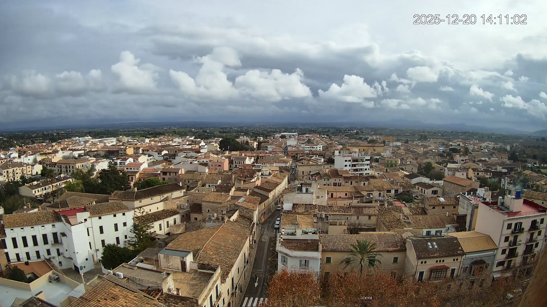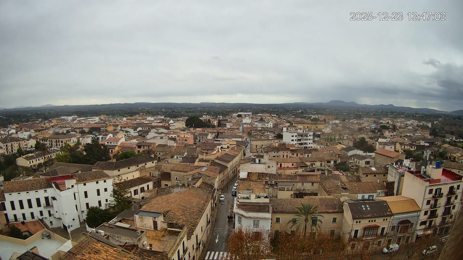 Desde lo alto del campanario de Binissalem, se ofrece una vista elevada del pueblo, donde predominan los tejados de teja árabe que se extienden entre calles estrechas, rodeados por el paisaje agrícola del Pla de Mallorca. Esta perspectiva refleja la esencia de Binissalem, un pueblo con profunda tradición vinícola y carácter auténtico mallorquín.