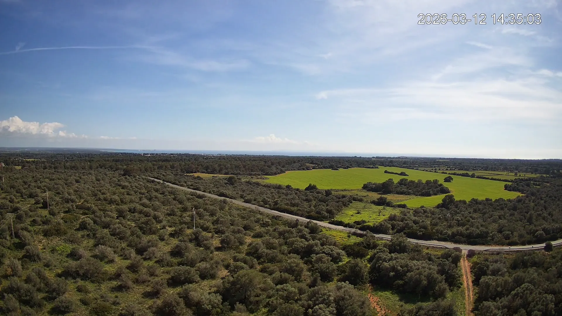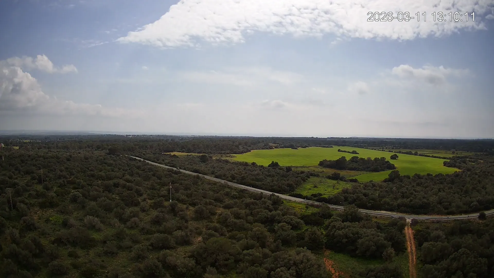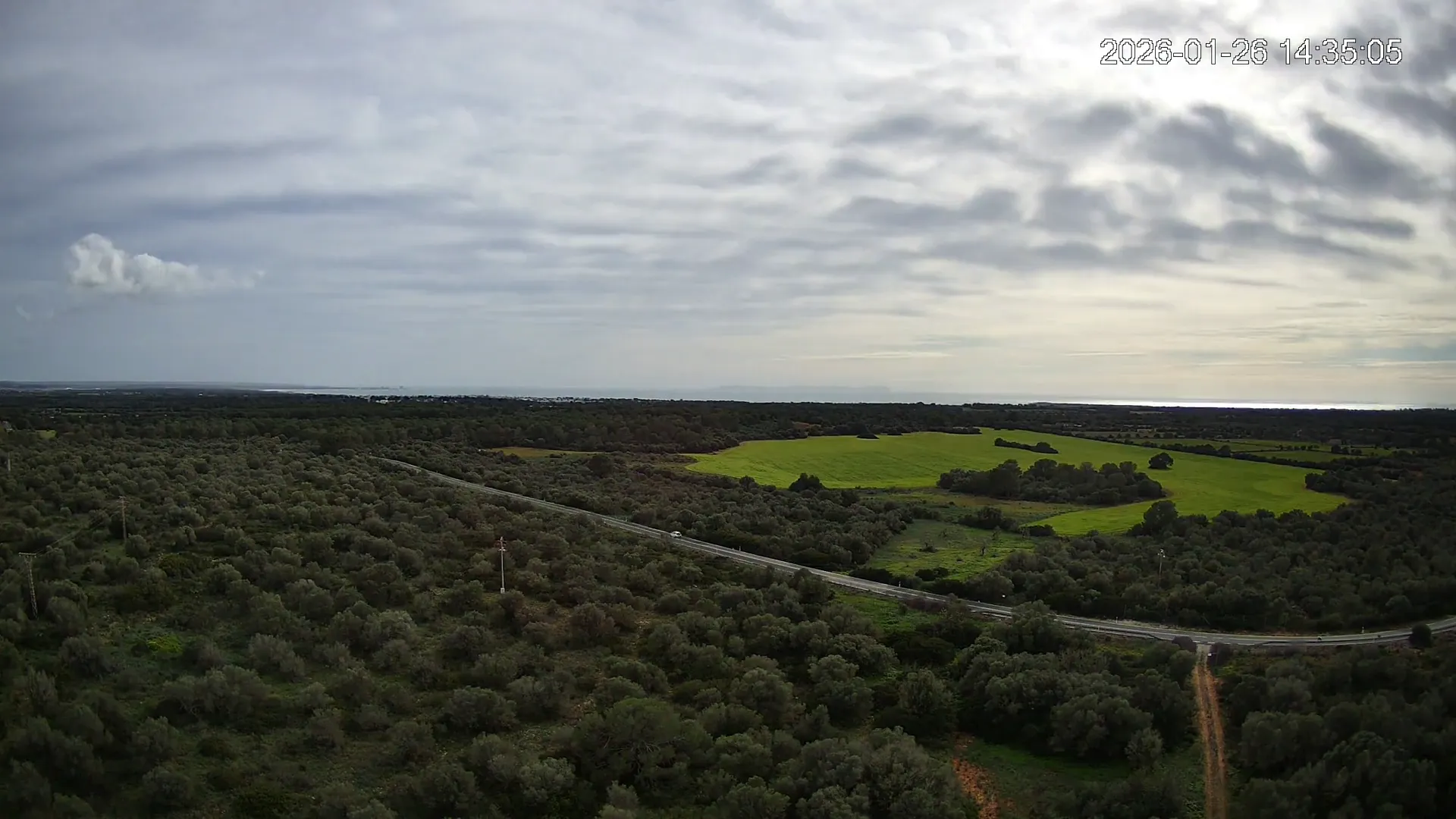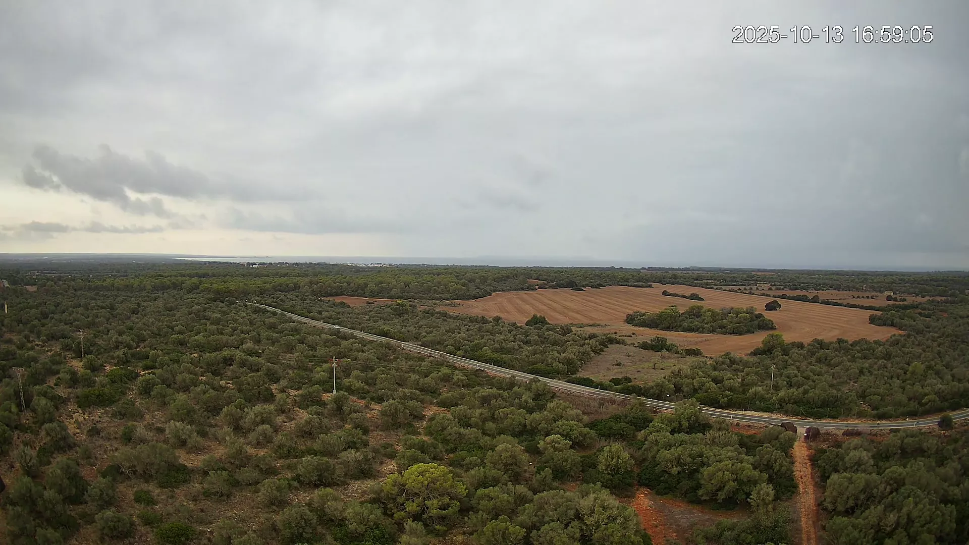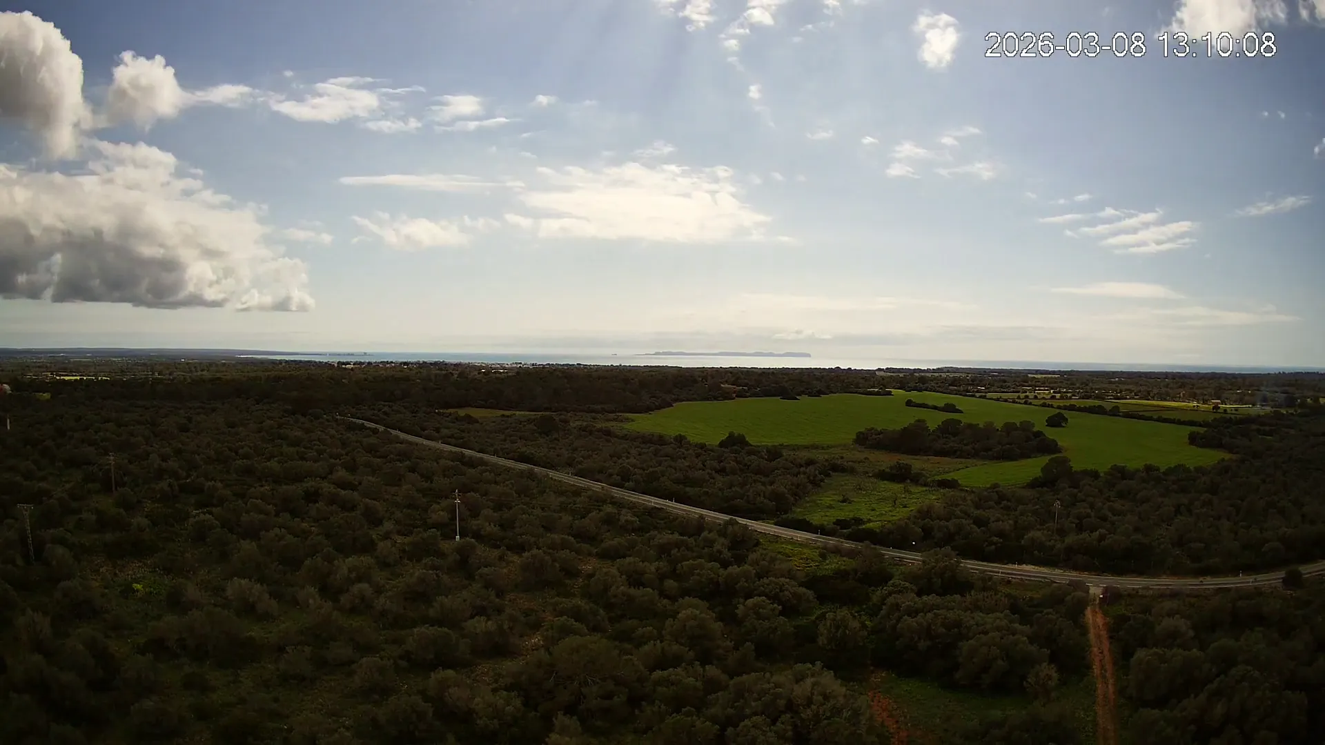 Esta cámara, ubicada en Es Llobets, dentro del término municipal de Llucmajor, ofrece una vista privilegiada hacia el sur de Mallorca. En el horizonte se puede ver la silueta de Cabrera, la emblemática isla y parque nacional, destacando sobre el mar y completando un paisaje sereno donde el entorno rural se funde con la belleza natural del Mediterráneo.