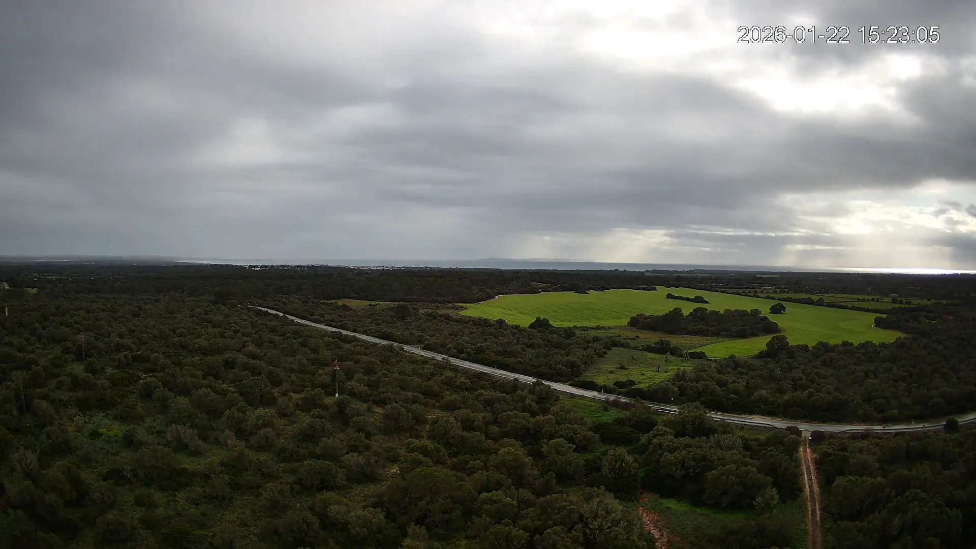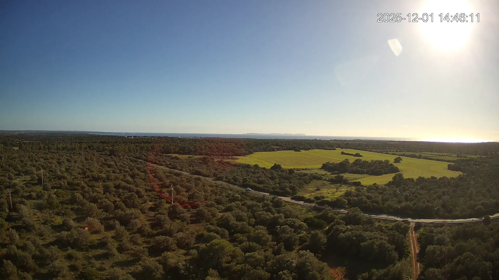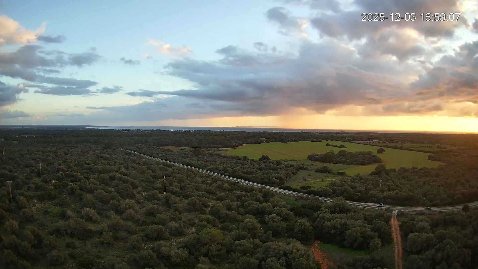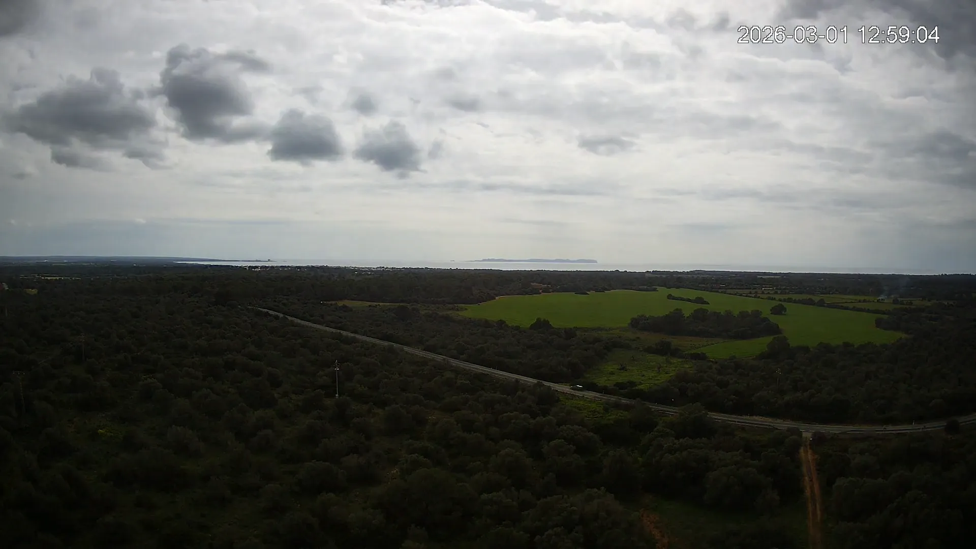 Esta cámara, ubicada en Es Llobets, dentro del término municipal de Llucmajor, ofrece una vista privilegiada hacia el sur de Mallorca. En el horizonte se puede ver la silueta de Cabrera, la emblemática isla y parque nacional, destacando sobre el mar y completando un paisaje sereno donde el entorno rural se funde con la belleza natural del Mediterráneo.