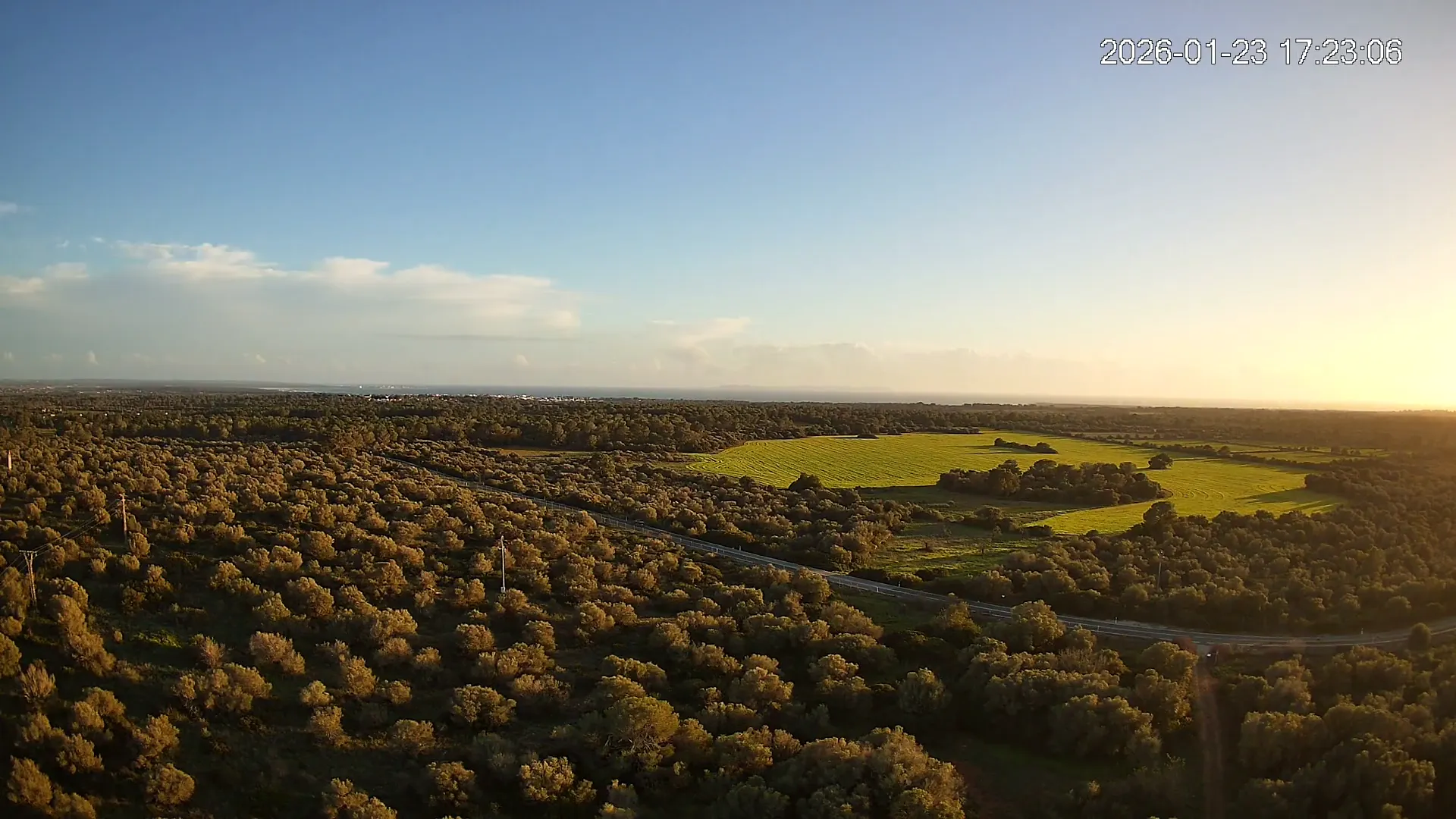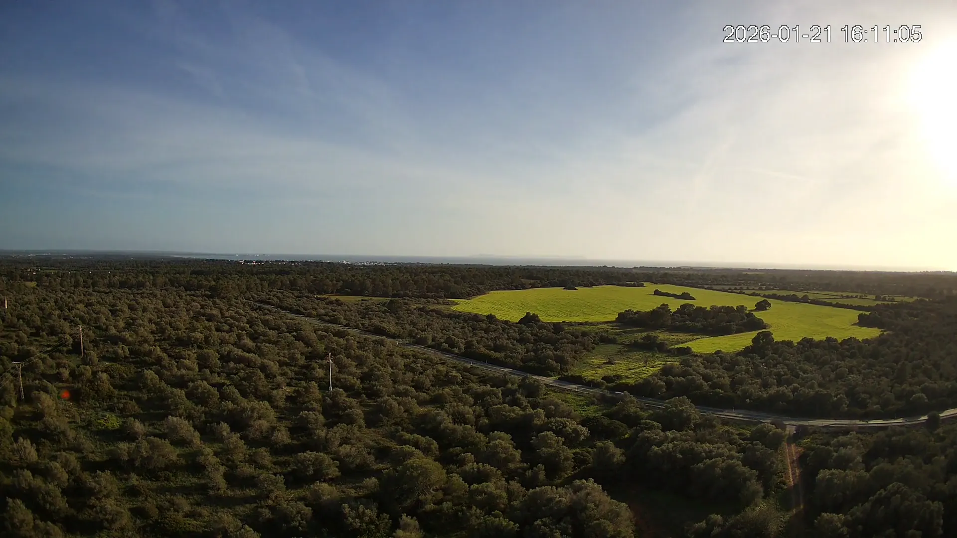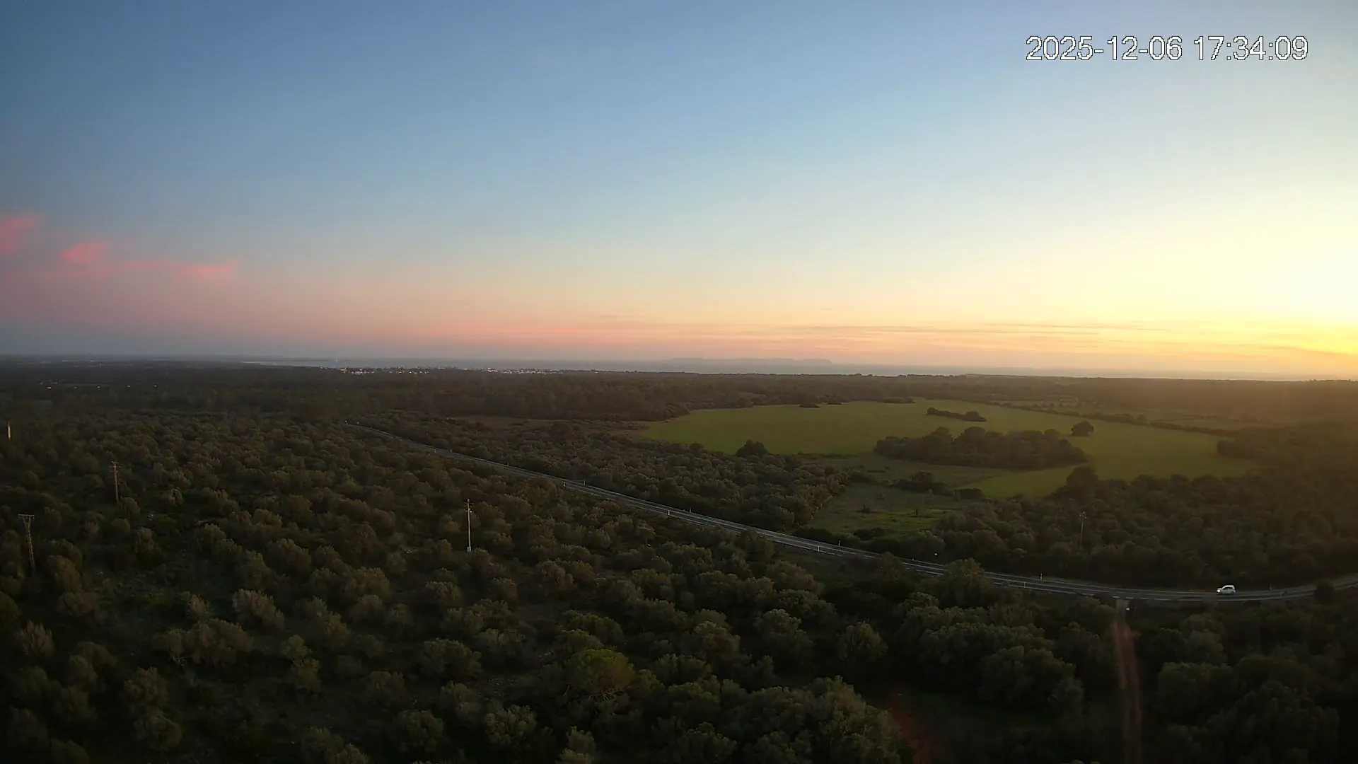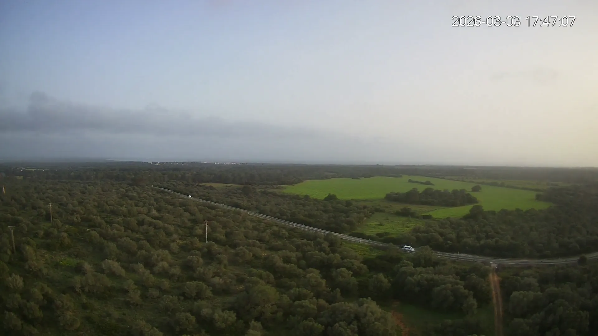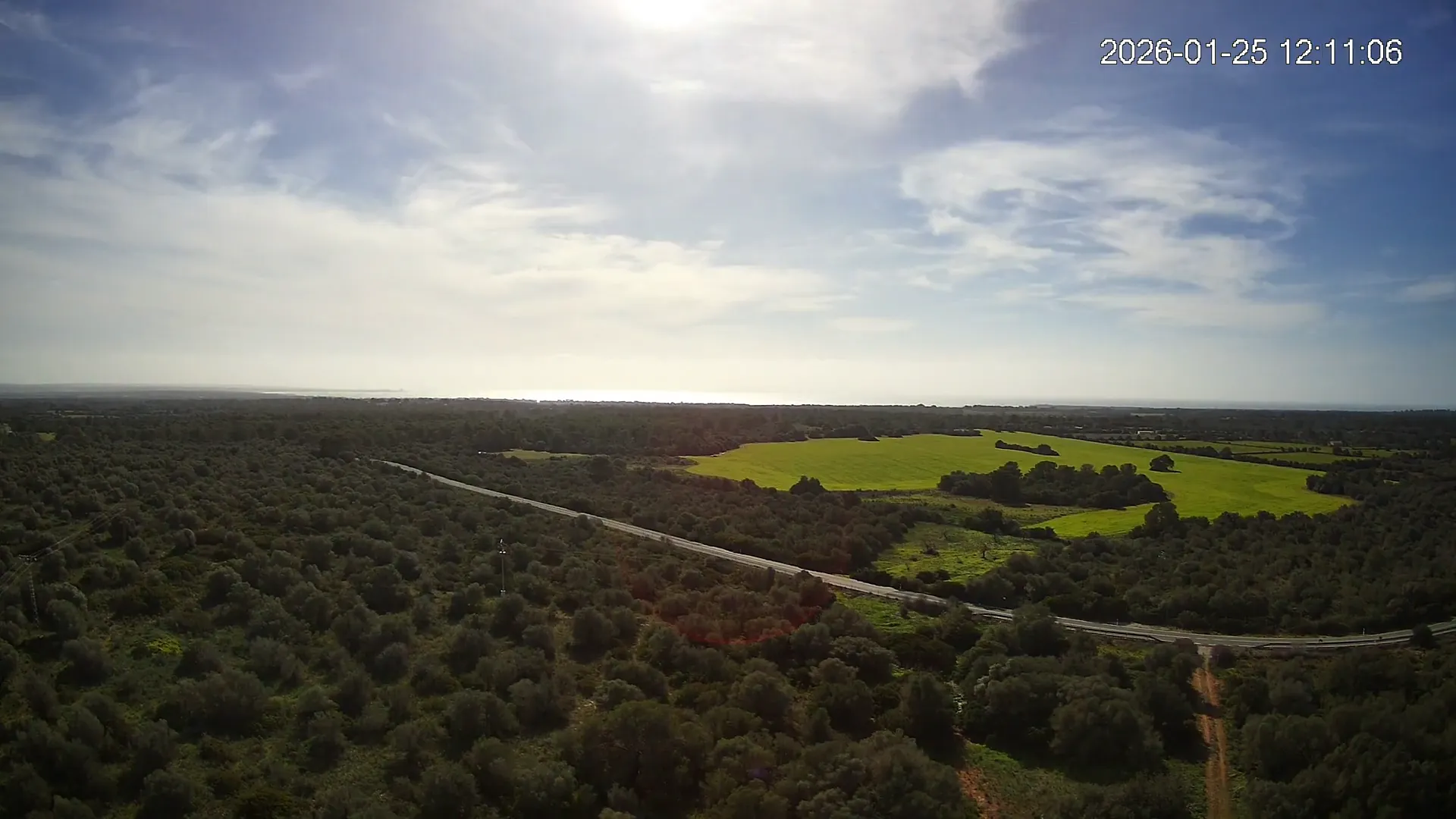Esta cámara, ubicada en Es Llobets, dentro del término municipal de Llucmajor, ofrece una vista privilegiada hacia el sur de Mallorca. En el horizonte se puede ver la silueta de Cabrera, la emblemática isla y parque nacional, destacando sobre el mar y completando un paisaje sereno donde el entorno rural se funde con la belleza natural del Mediterráneo.