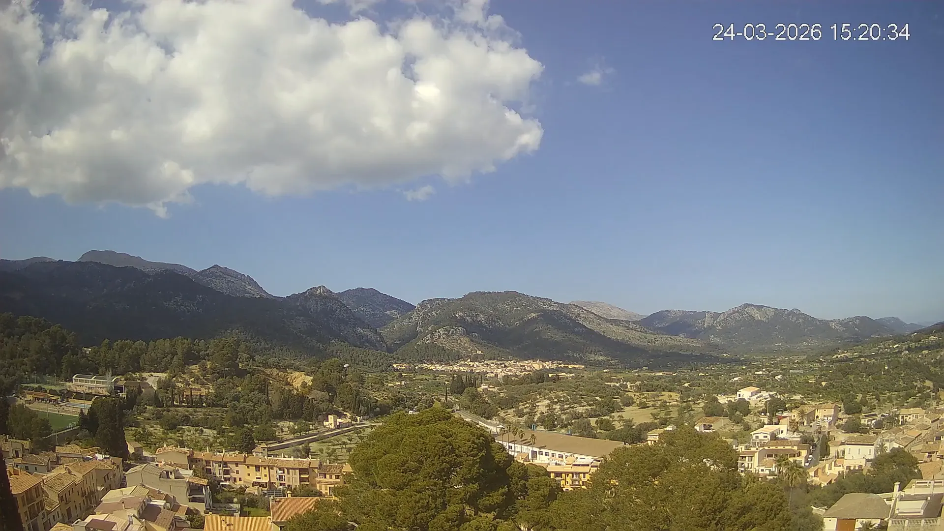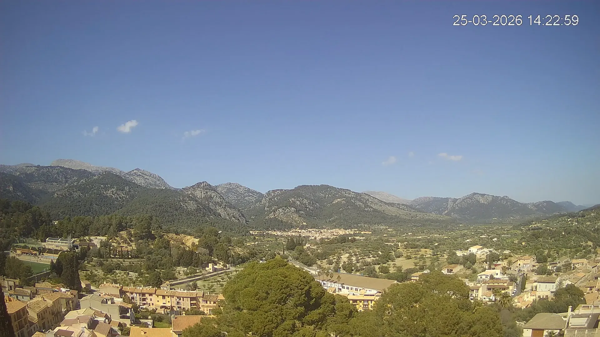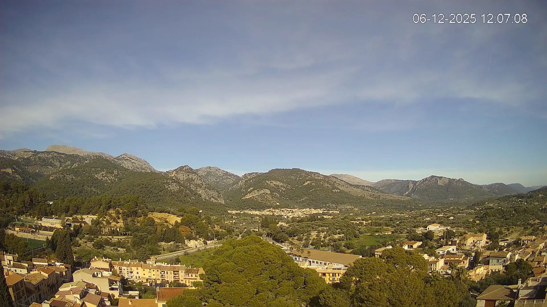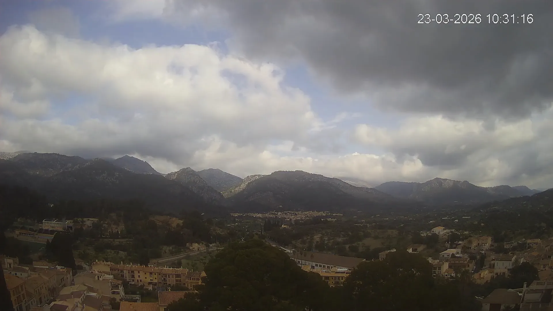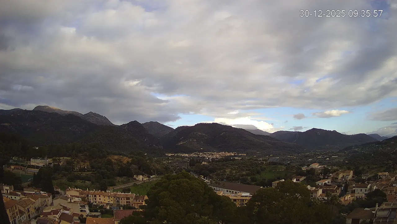 Desde esta cámara situada en la Iglesia de Selva, obtienes una vista en directo del pueblo de Caimari y su entorno, con el espectacular paisaje de la Serra de Tramuntana al fondo. La imagen muestra el núcleo urbano y la vegetación que rodea esta zona del interior de Mallorca, proporcionando información en tiempo real sobre el clima, la visibilidad y la evolución del día. Si quieres observar cómo cambia el paisaje con el paso del tiempo, accede a los timelapses de los últimos 7 días.