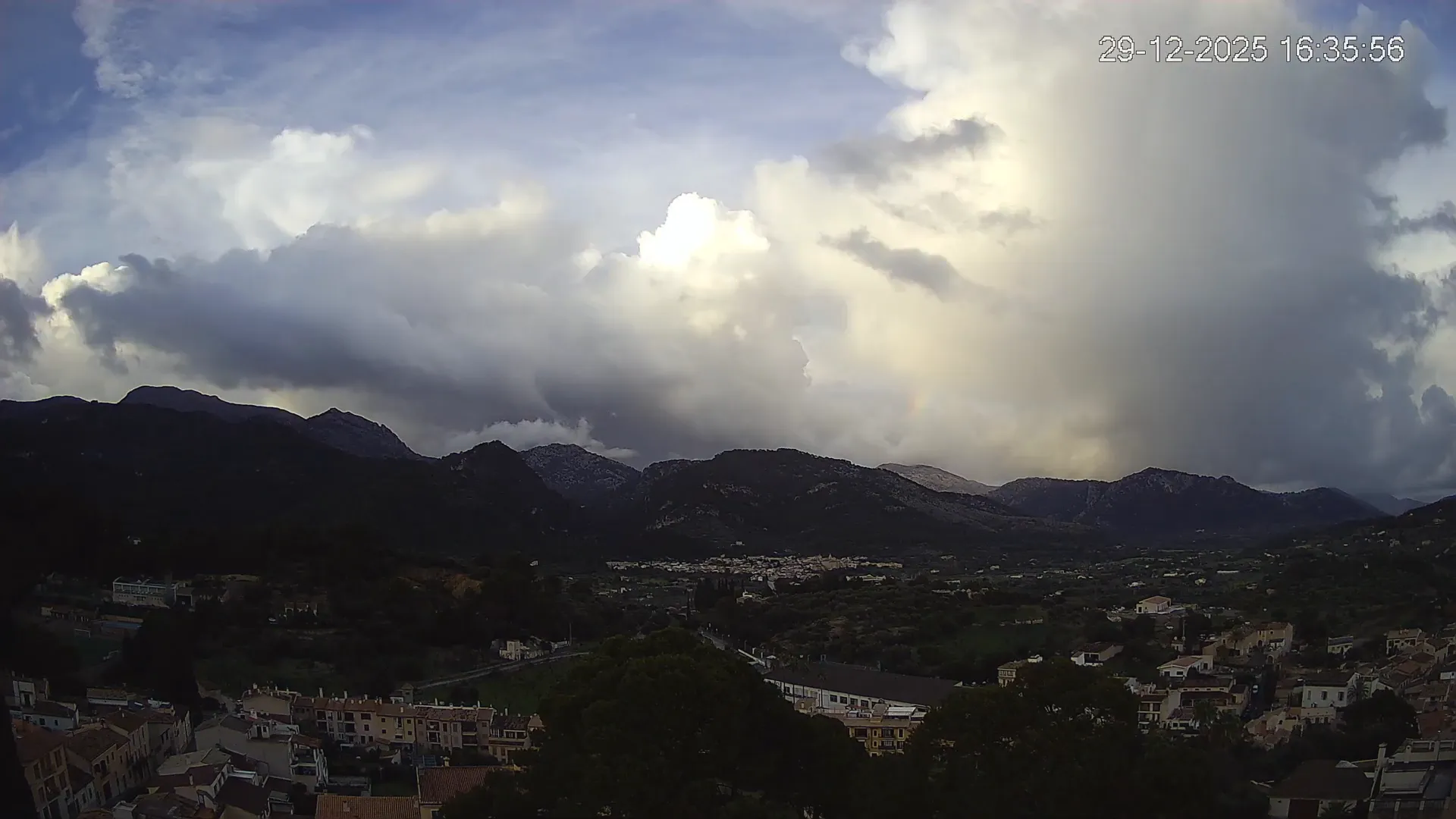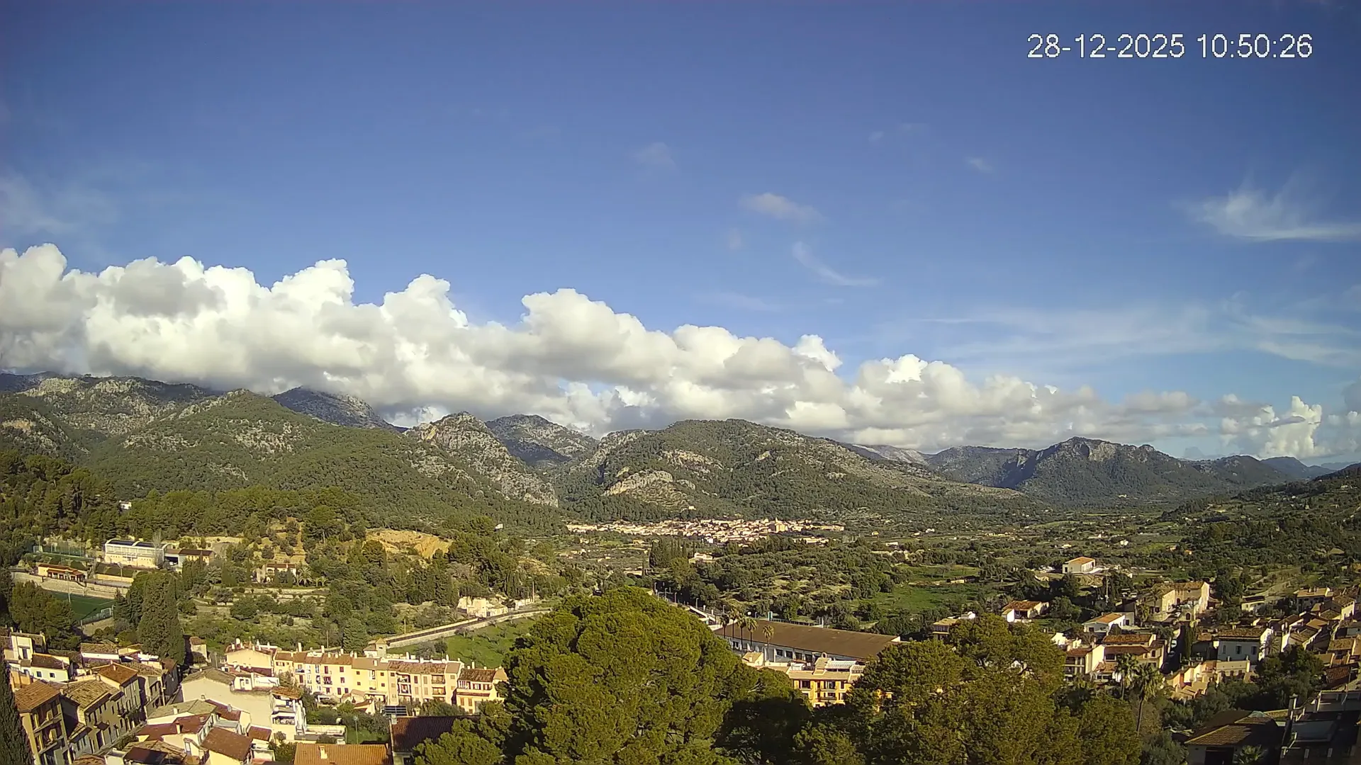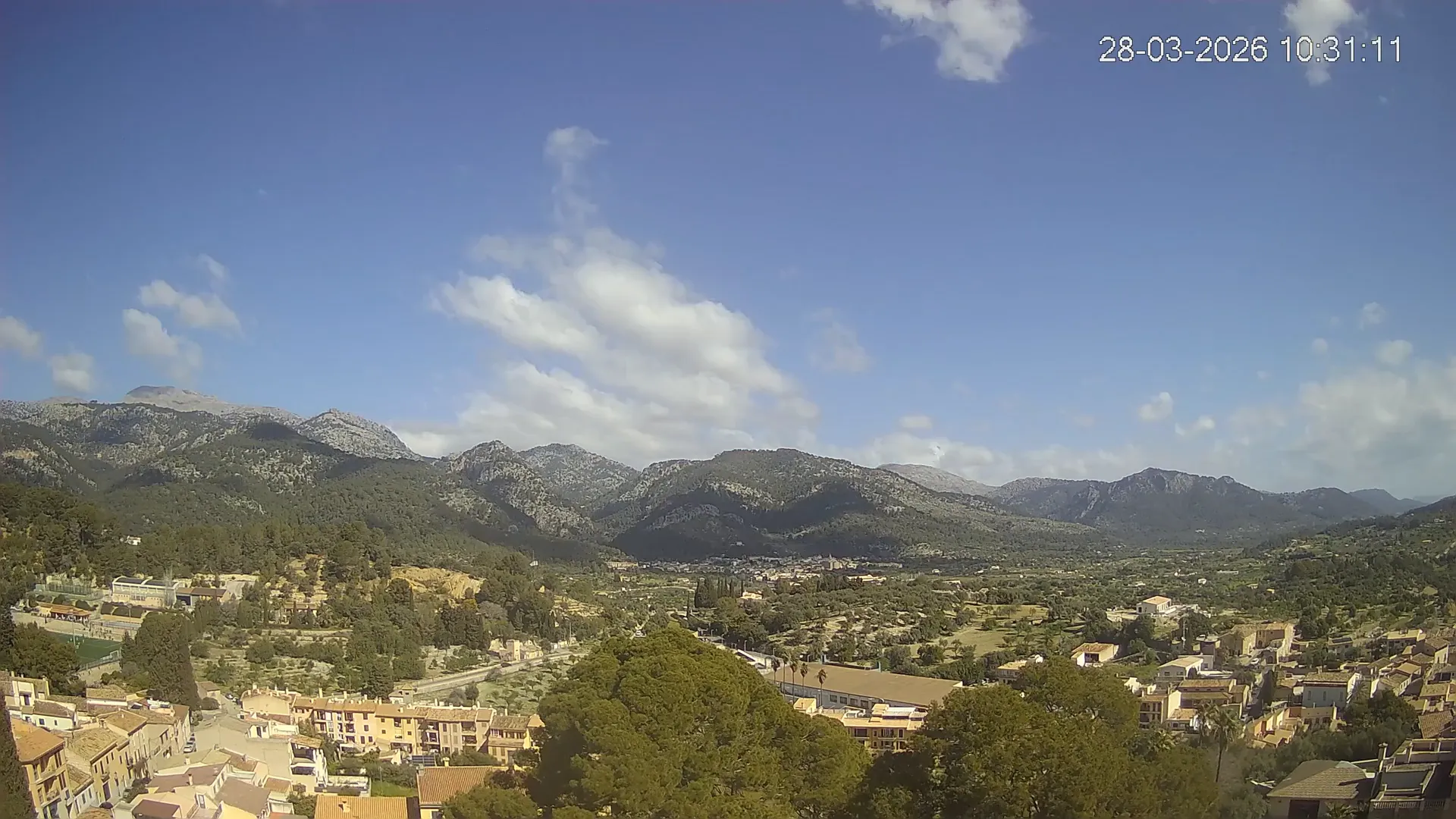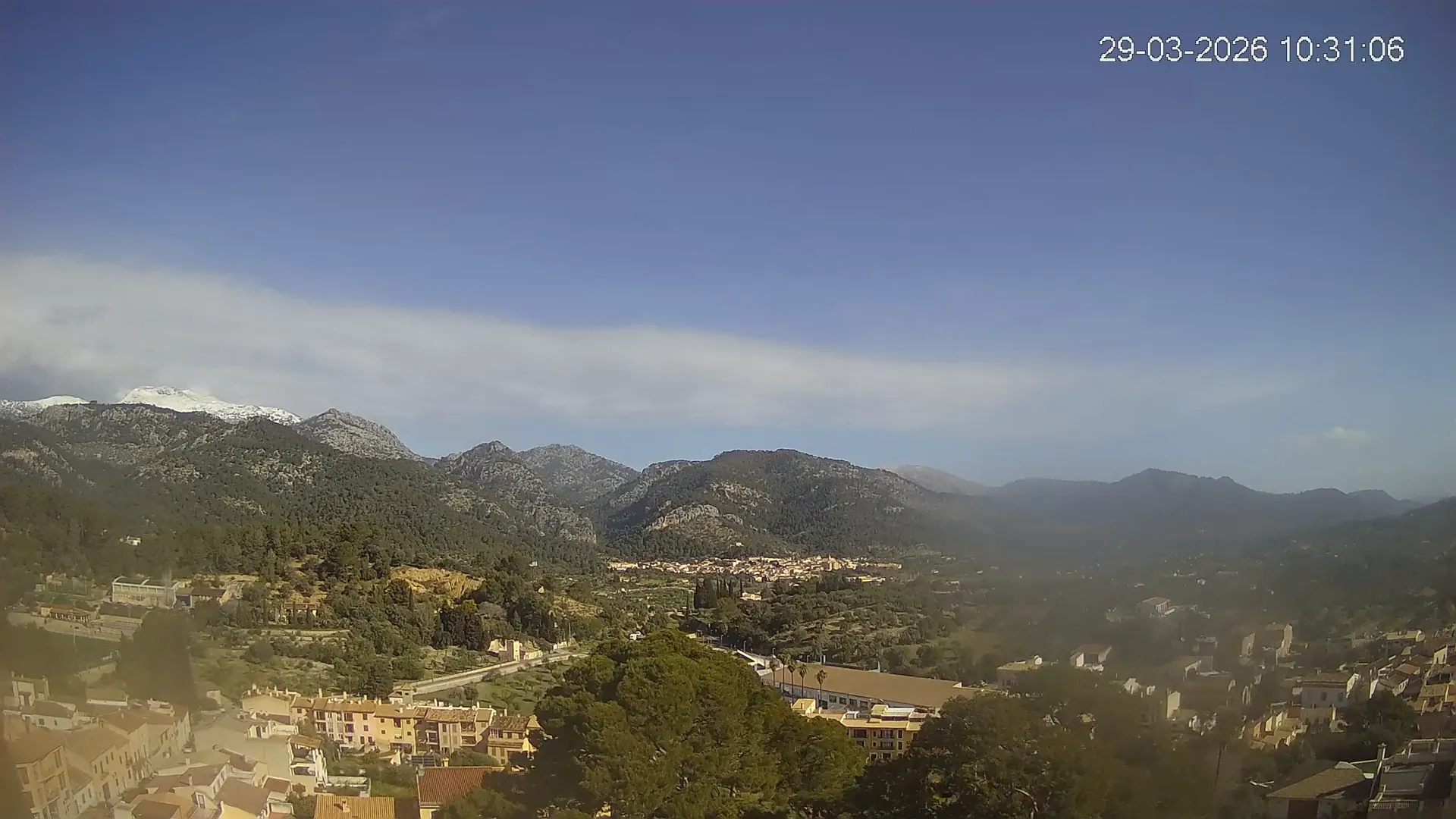 Desde esta cámara situada en la Iglesia de Selva, obtienes una vista en directo del pueblo de Caimari y su entorno, con el espectacular paisaje de la Serra de Tramuntana al fondo. La imagen muestra el núcleo urbano y la vegetación que rodea esta zona del interior de Mallorca, proporcionando información en tiempo real sobre el clima, la visibilidad y la evolución del día. Si quieres observar cómo cambia el paisaje con el paso del tiempo, accede a los timelapses de los últimos 7 días.