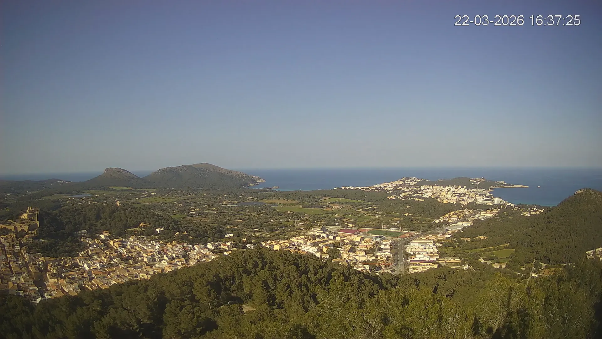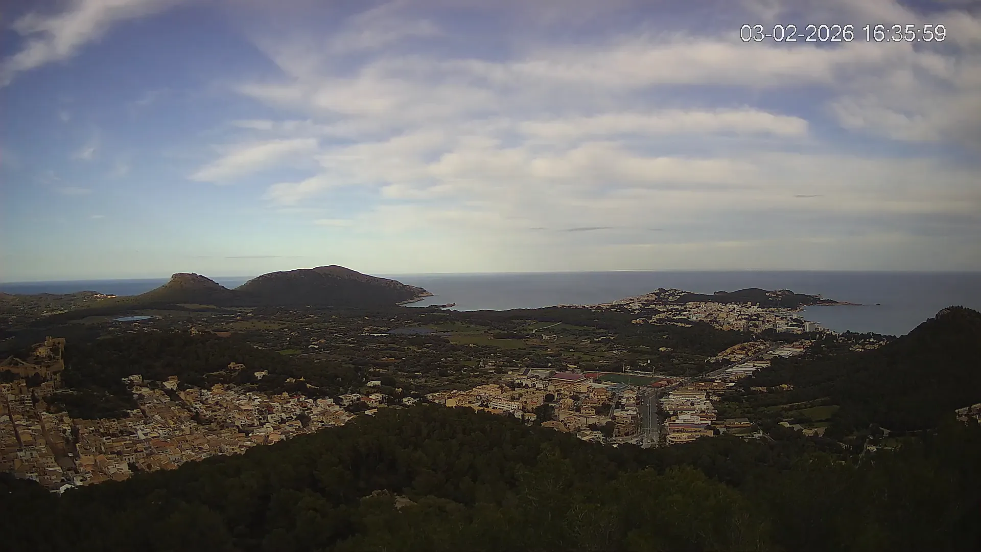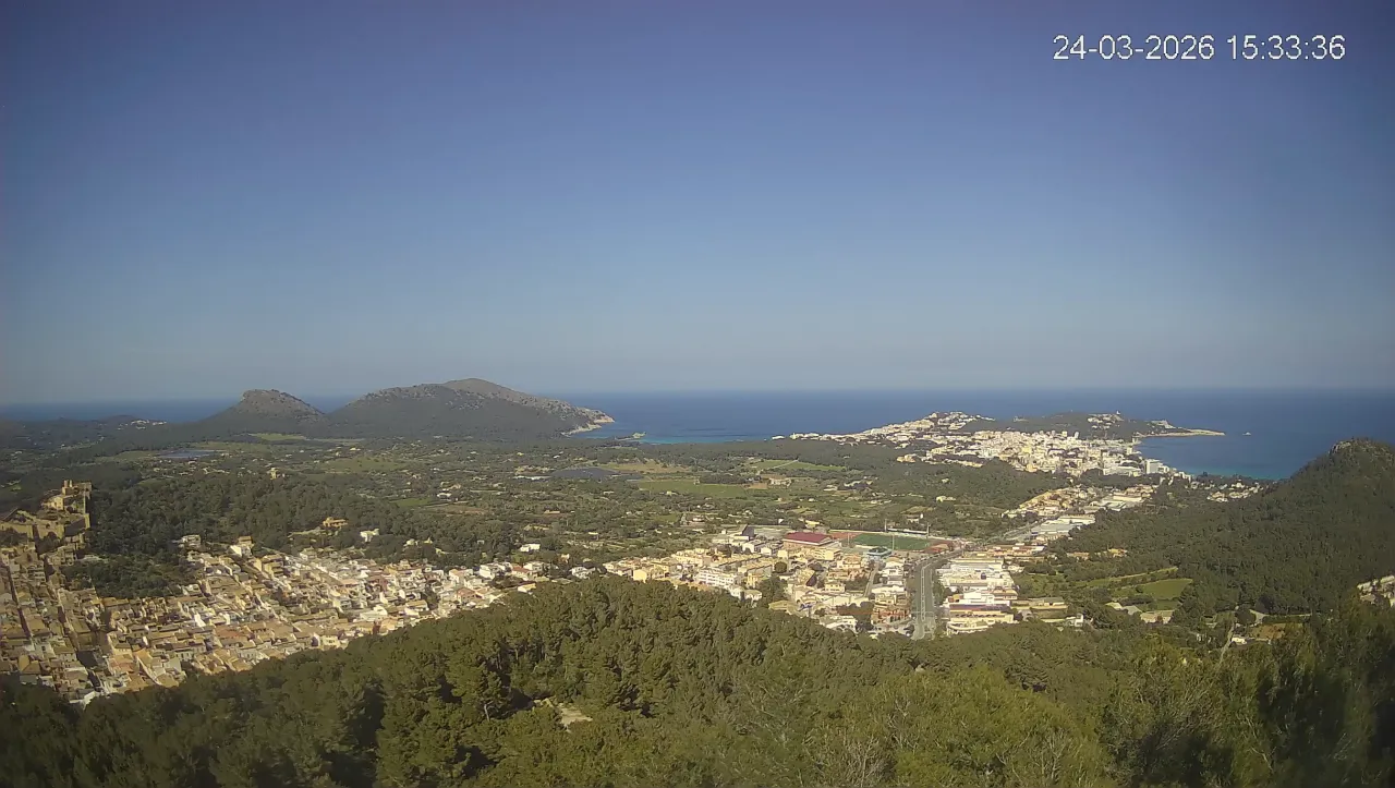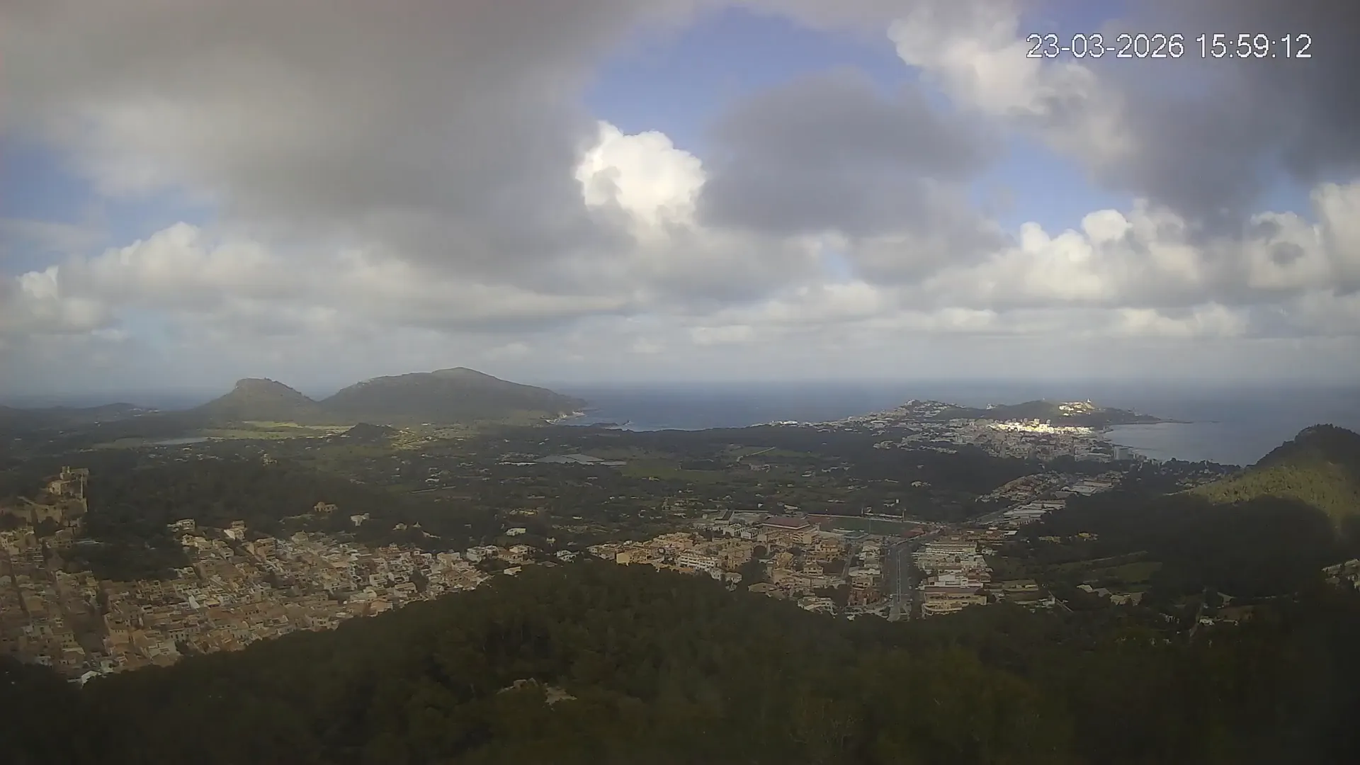 Desde el Puig de Sa Cova Negra, esta cámara ofrece una vista en directo de Capdepera, uno de los municipios más emblemáticos del noreste de Mallorca. La panorámica abarca el casco histórico con su imponente castillo medieval, las calles del pueblo y el paisaje montañoso que lo rodea, con el mar en el horizonte en días despejados. Para quienes buscan observar la evolución del entorno, los timelapses de los últimos 7 días permiten ver cómo cambia la luz a lo largo del día, desde los primeros rayos de sol hasta los atardeceres sobre la costa. Además, esta función es ideal para comprobar las condiciones meteorológicas, la visibilidad y los cambios en el cielo con el paso del tiempo.