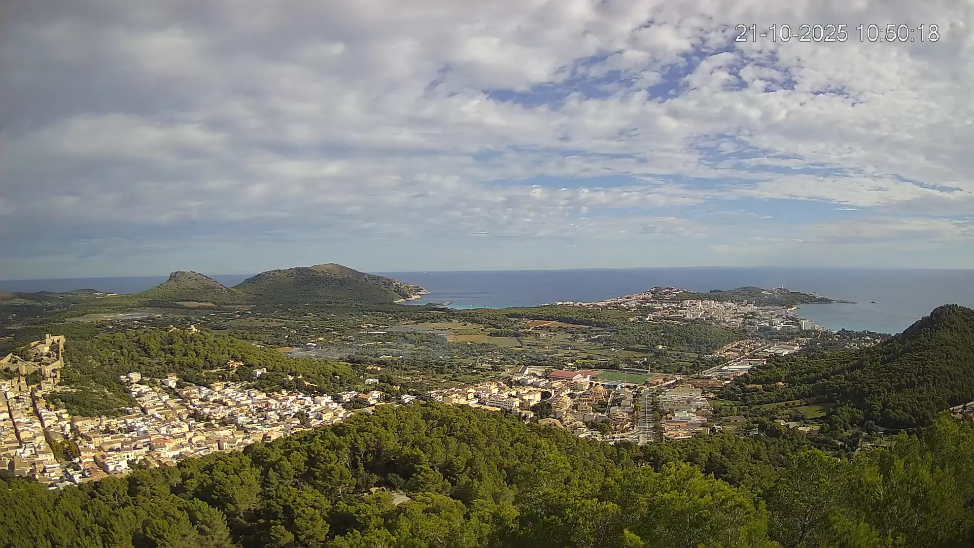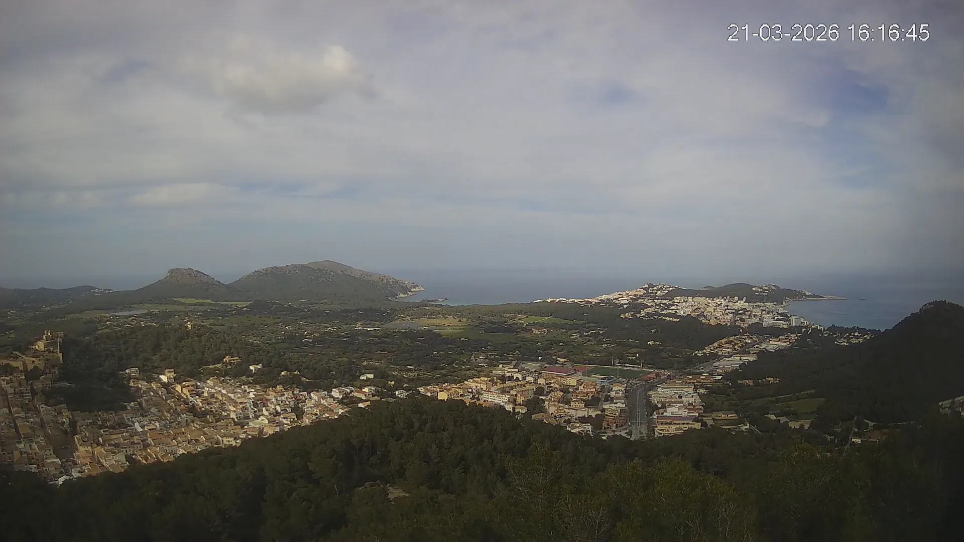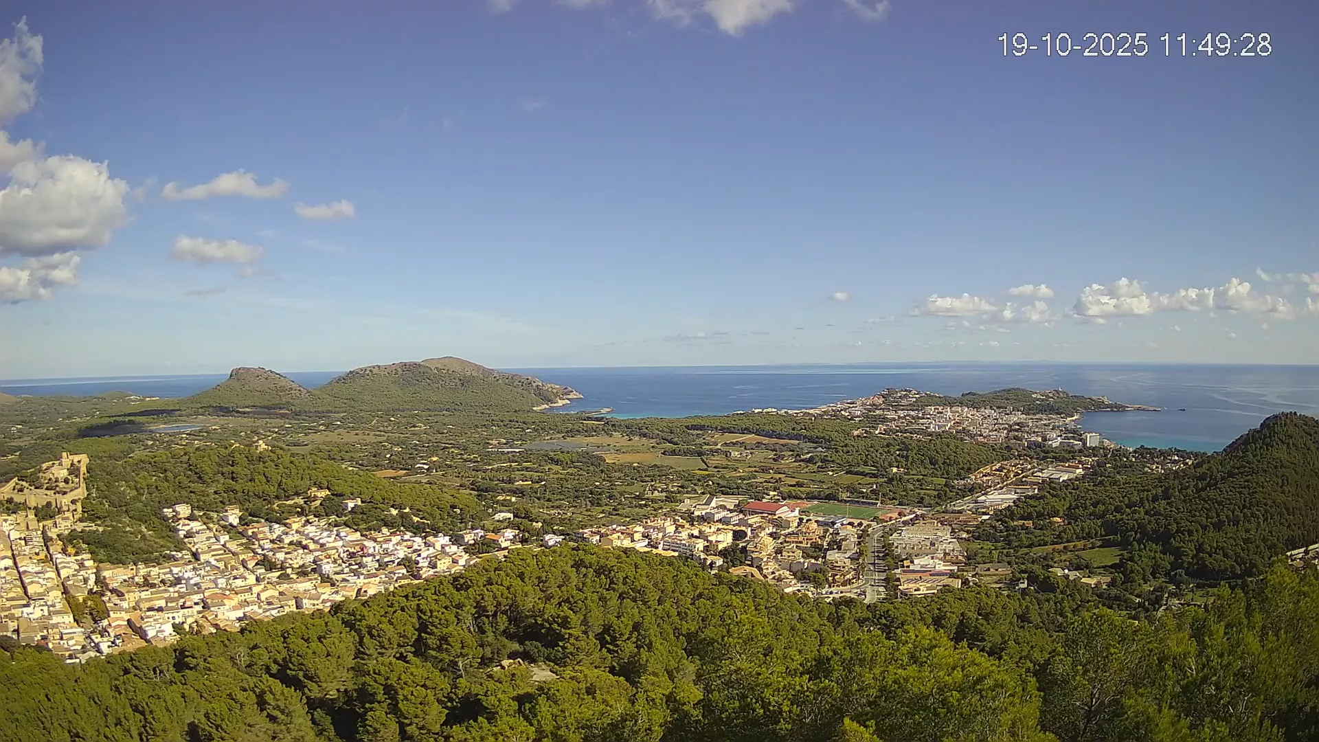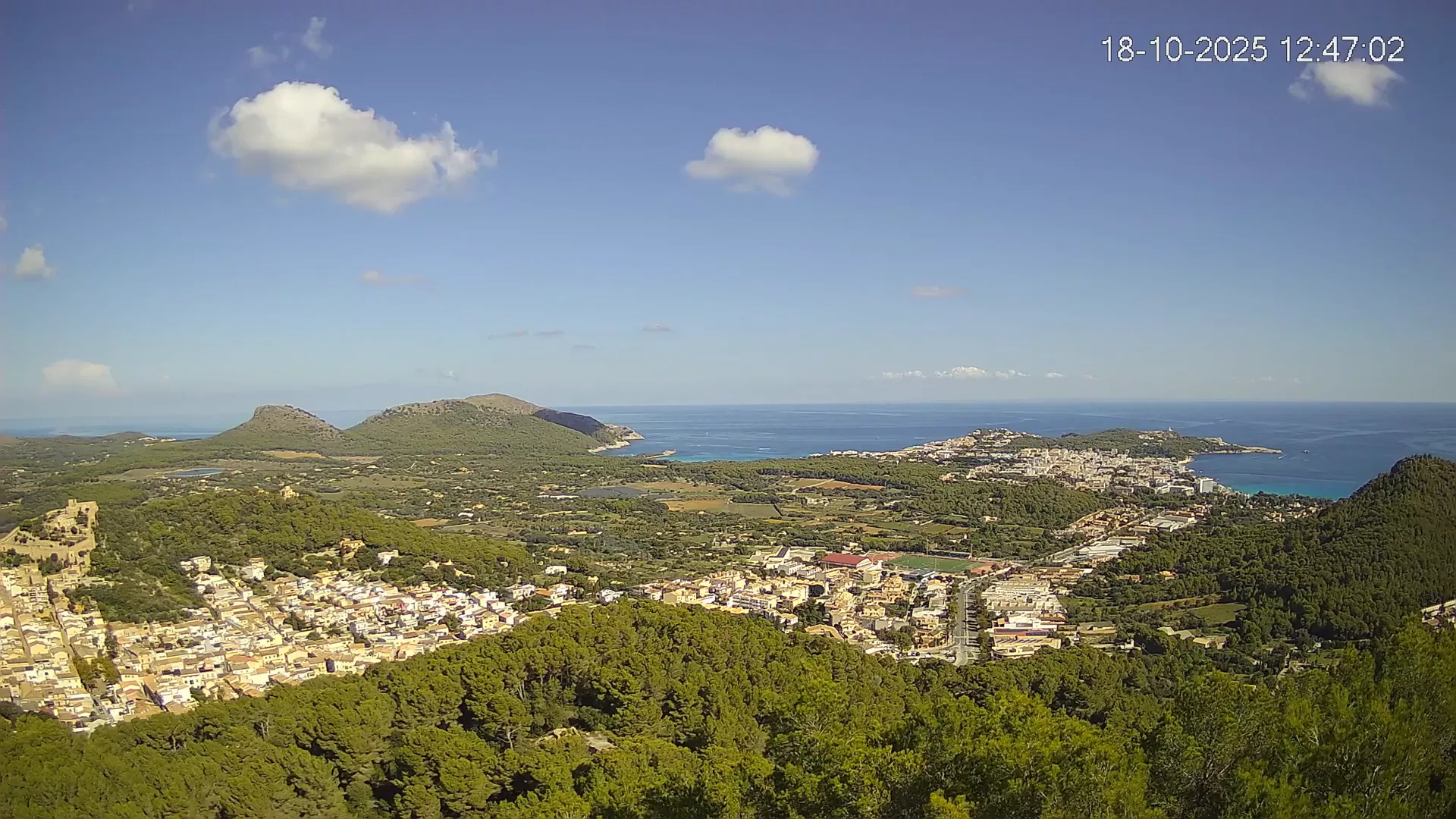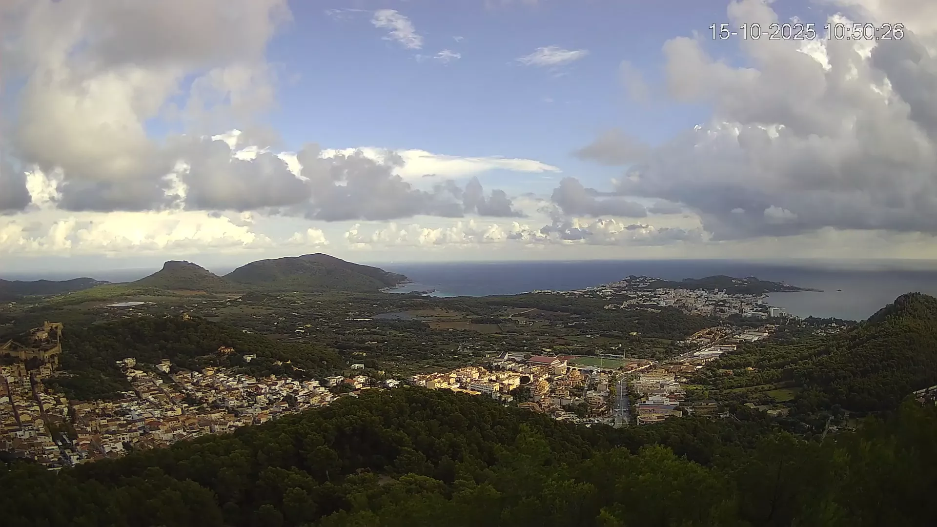 Desde el Puig de Sa Cova Negra, esta cámara ofrece una vista en directo de Capdepera, uno de los municipios más emblemáticos del noreste de Mallorca. La panorámica abarca el casco histórico con su imponente castillo medieval, las calles del pueblo y el paisaje montañoso que lo rodea, con el mar en el horizonte en días despejados. Para quienes buscan observar la evolución del entorno, los timelapses de los últimos 7 días permiten ver cómo cambia la luz a lo largo del día, desde los primeros rayos de sol hasta los atardeceres sobre la costa. Además, esta función es ideal para comprobar las condiciones meteorológicas, la visibilidad y los cambios en el cielo con el paso del tiempo.