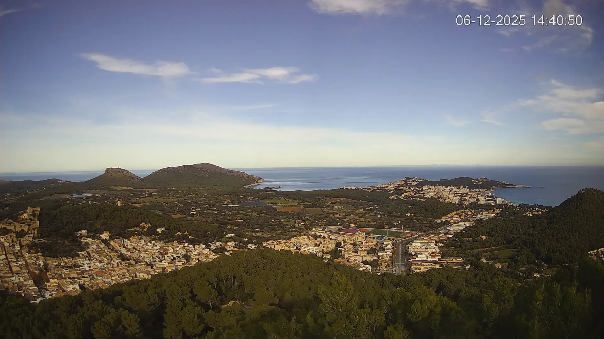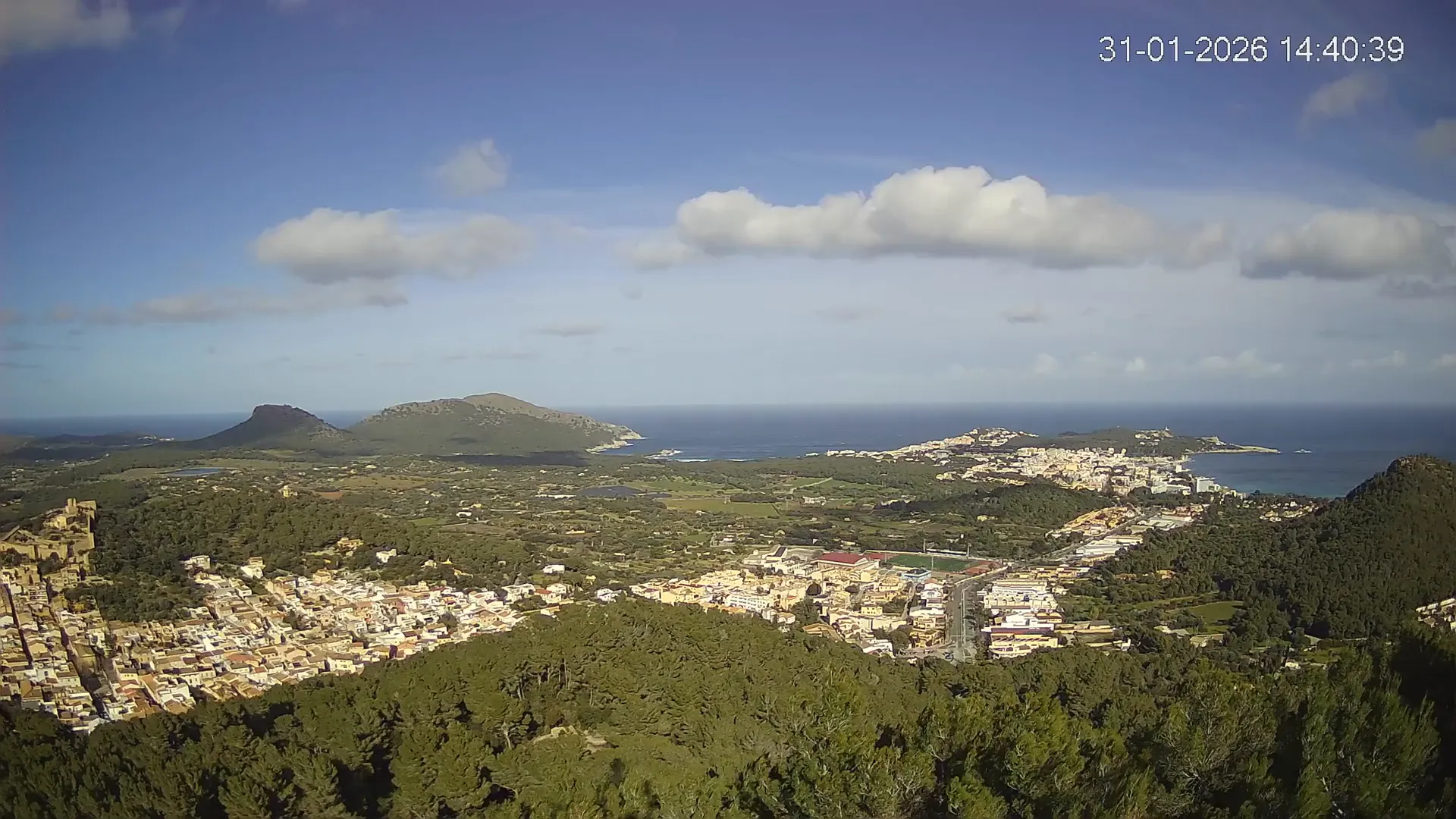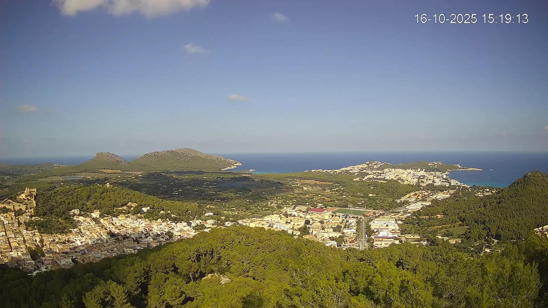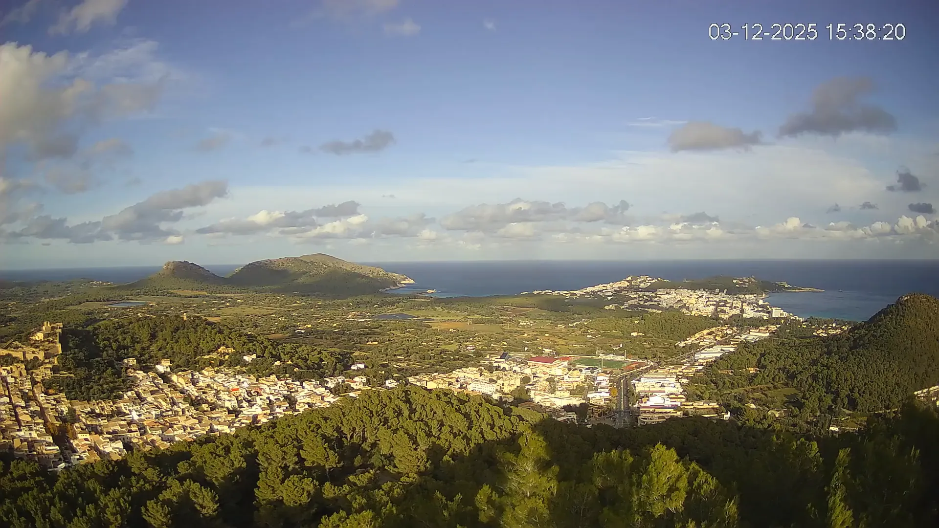 Desde el Puig de Sa Cova Negra, esta cámara ofrece una vista en directo de Capdepera, uno de los municipios más emblemáticos del noreste de Mallorca. La panorámica abarca el casco histórico con su imponente castillo medieval, las calles del pueblo y el paisaje montañoso que lo rodea, con el mar en el horizonte en días despejados. Para quienes buscan observar la evolución del entorno, los timelapses de los últimos 7 días permiten ver cómo cambia la luz a lo largo del día, desde los primeros rayos de sol hasta los atardeceres sobre la costa. Además, esta función es ideal para comprobar las condiciones meteorológicas, la visibilidad y los cambios en el cielo con el paso del tiempo.