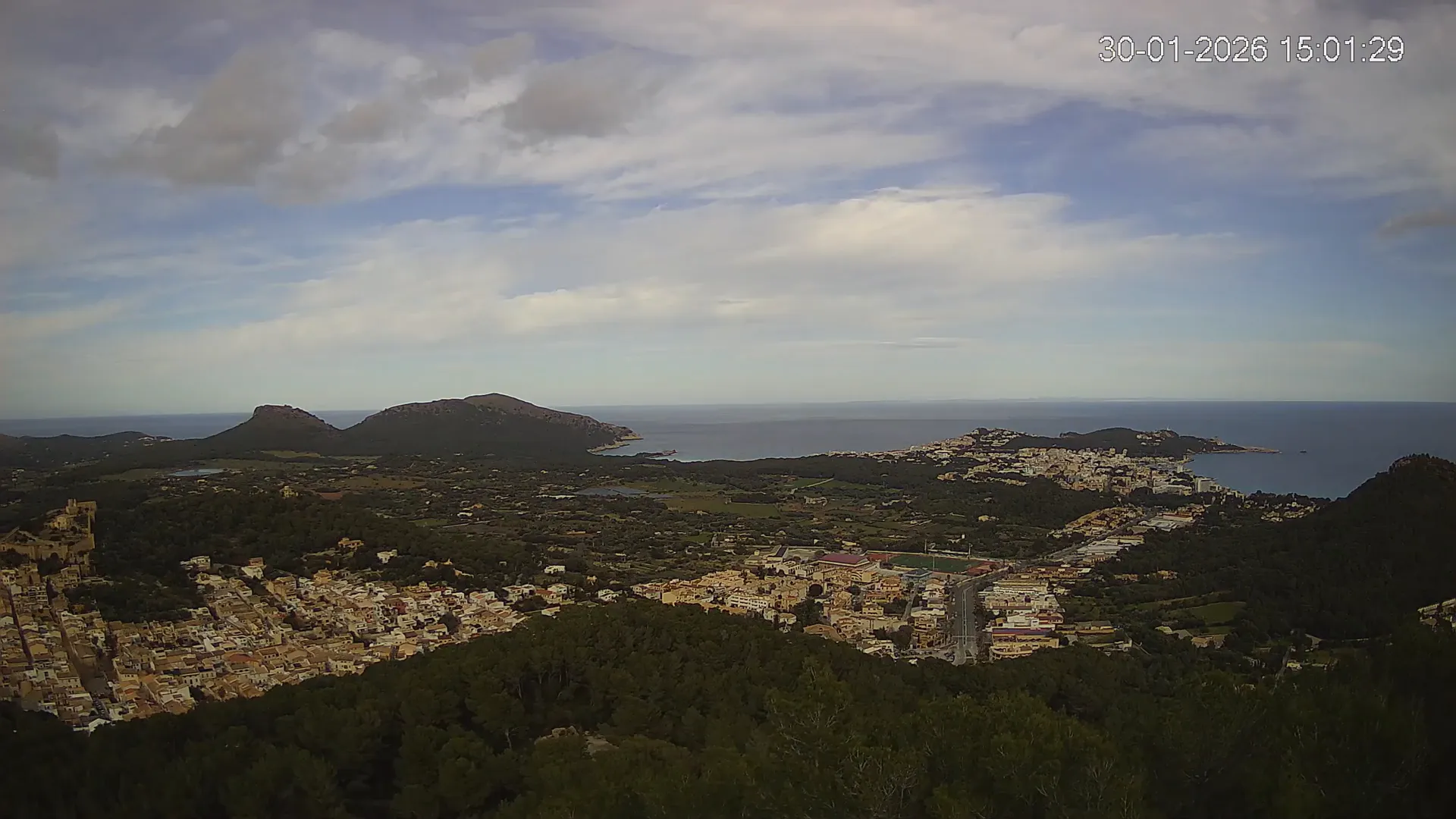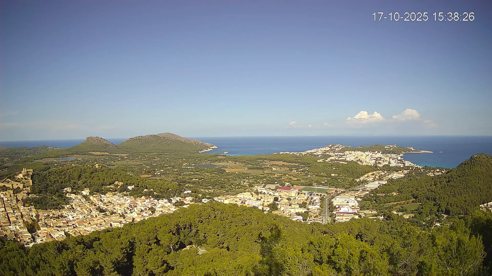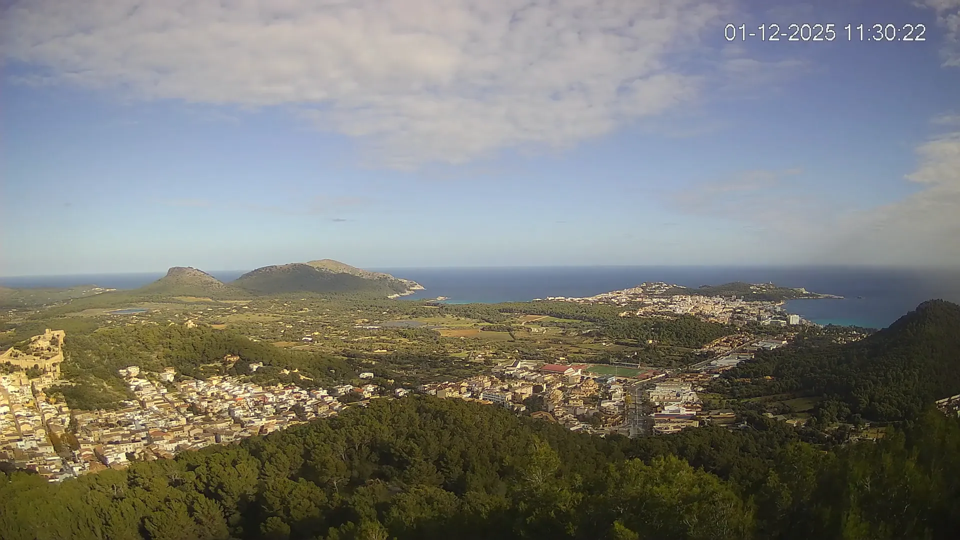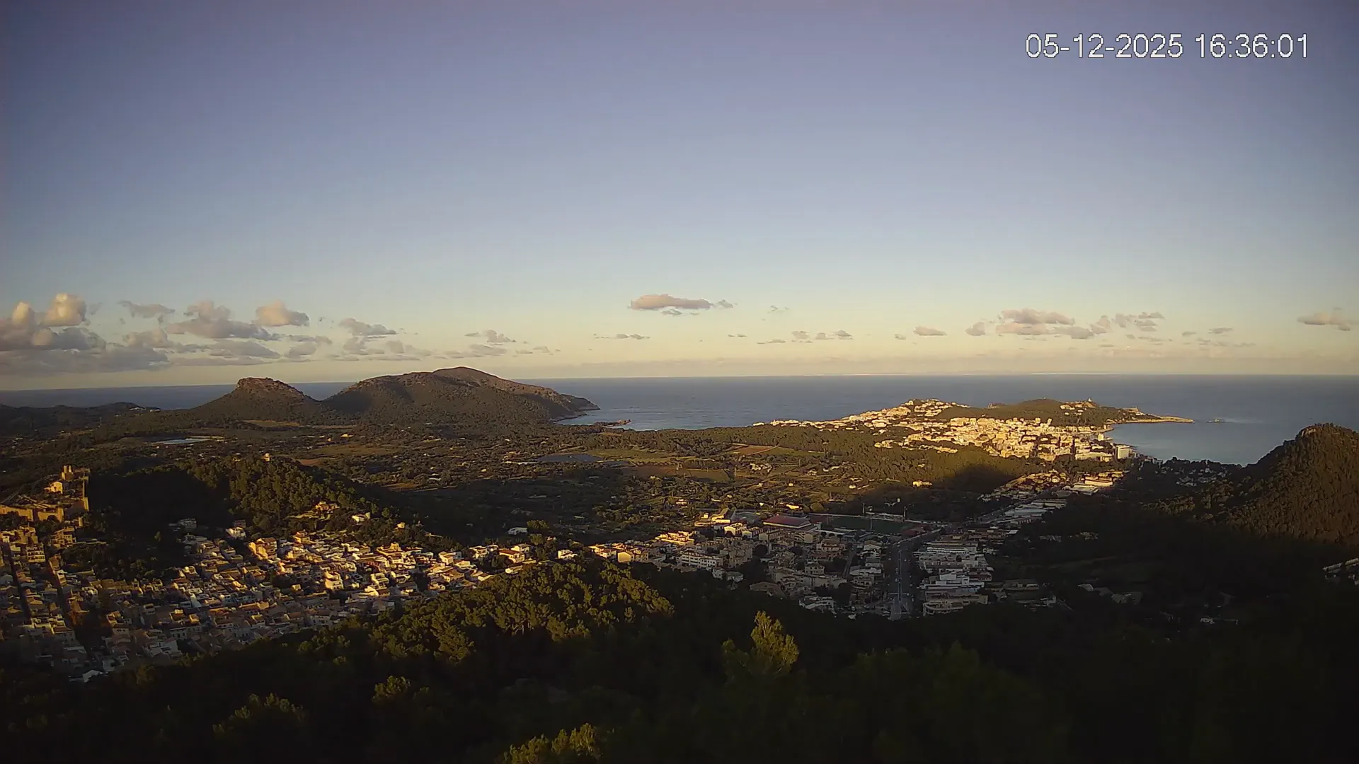 Desde el Puig de Sa Cova Negra, esta cámara ofrece una vista en directo de Capdepera, uno de los municipios más emblemáticos del noreste de Mallorca. La panorámica abarca el casco histórico con su imponente castillo medieval, las calles del pueblo y el paisaje montañoso que lo rodea, con el mar en el horizonte en días despejados. Para quienes buscan observar la evolución del entorno, los timelapses de los últimos 7 días permiten ver cómo cambia la luz a lo largo del día, desde los primeros rayos de sol hasta los atardeceres sobre la costa. Además, esta función es ideal para comprobar las condiciones meteorológicas, la visibilidad y los cambios en el cielo con el paso del tiempo.