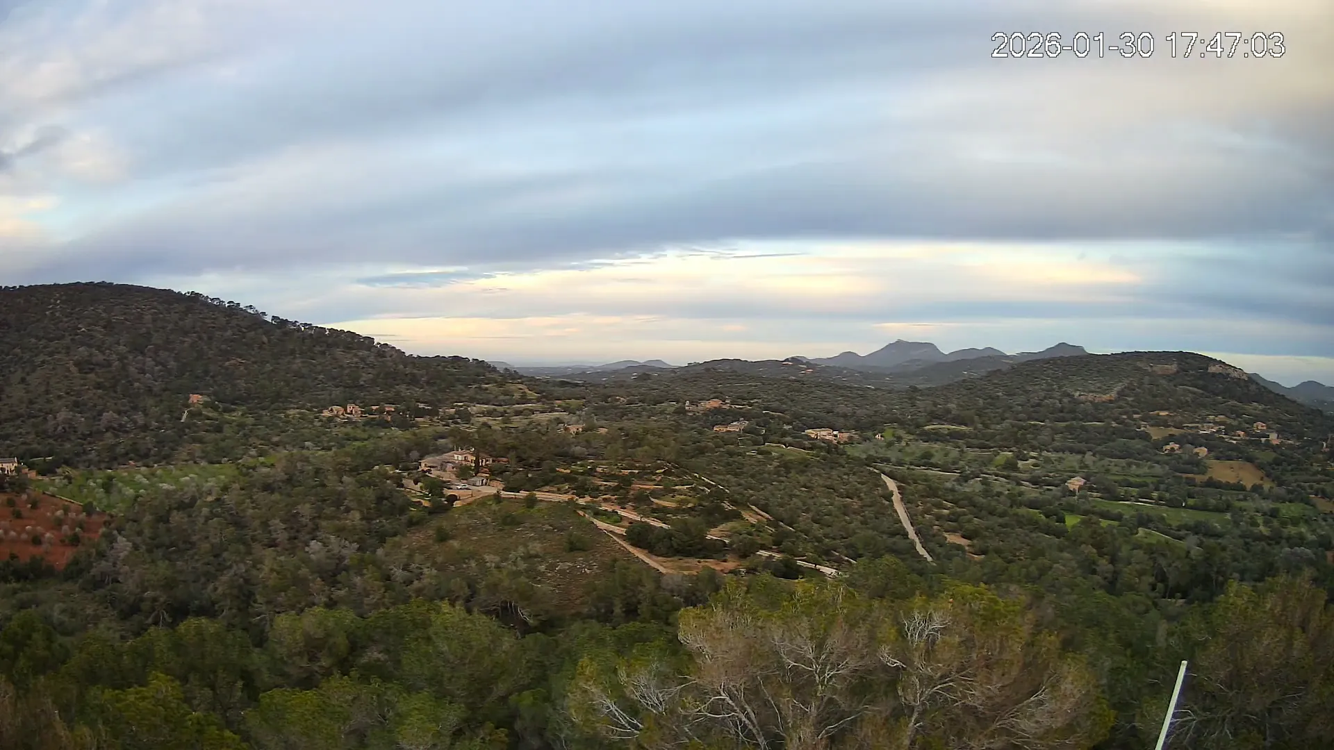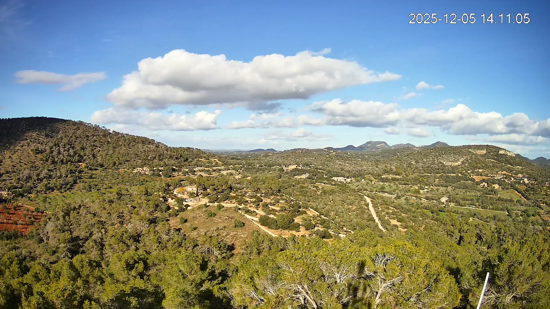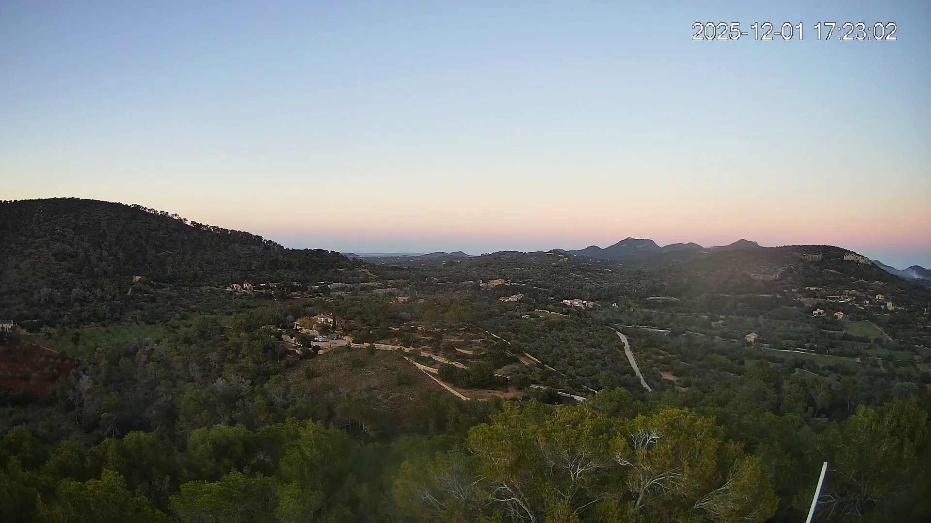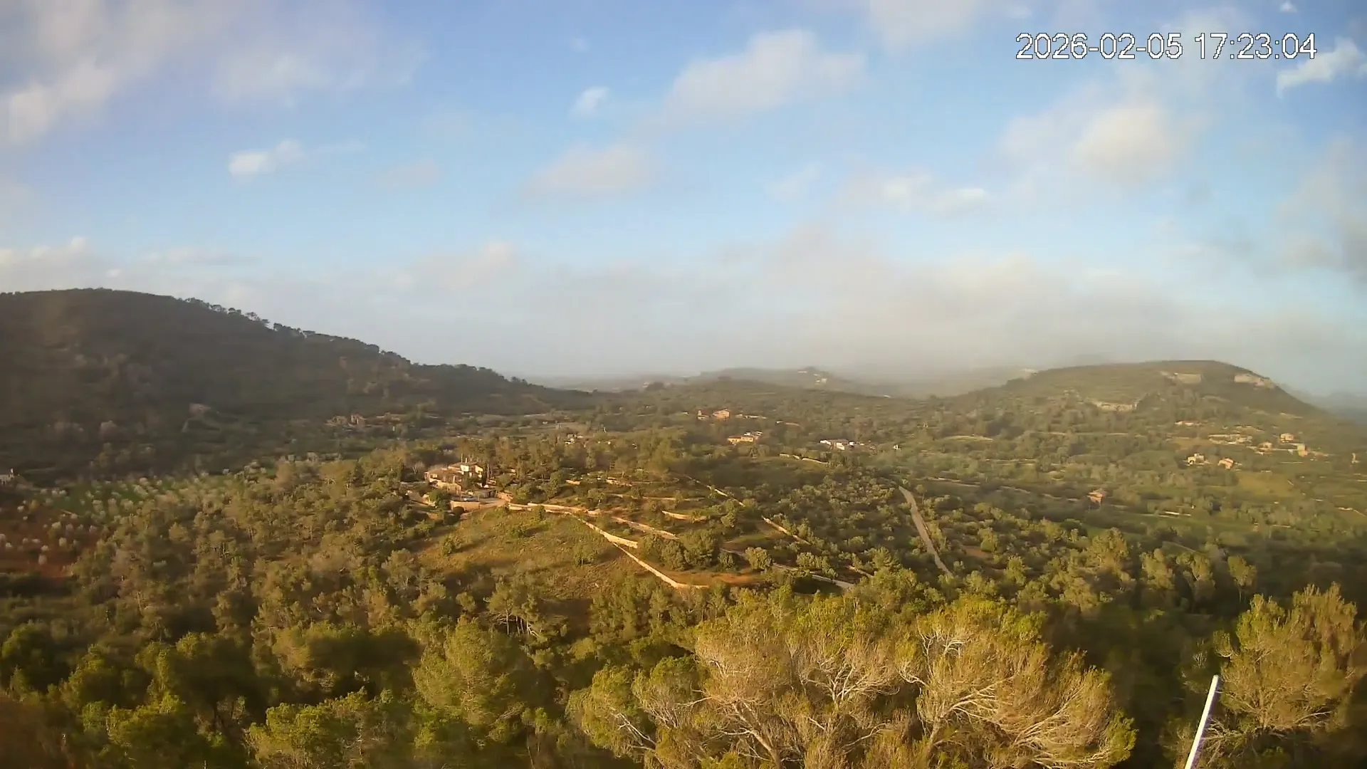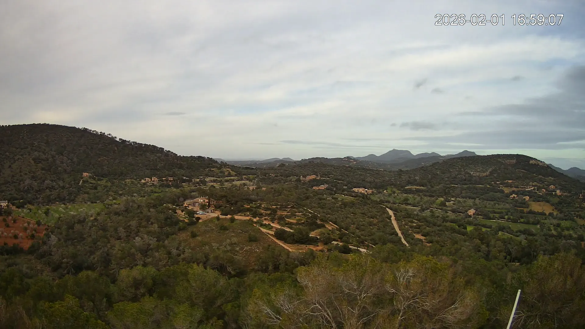 Desde la cima del Puig de Consolació, esta cámara ofrece una vista privilegiada del sureste de Mallorca. En el horizonte destacan dos de los santuarios más emblemáticos de la isla: Sant Salvador y Santueri, ambos coronando sus respectivas montañas. En los días claros, al fondo, se perfila la Serra de Llevant, completando una panorámica que une espiritualidad, paisaje y profundidad geográfica.