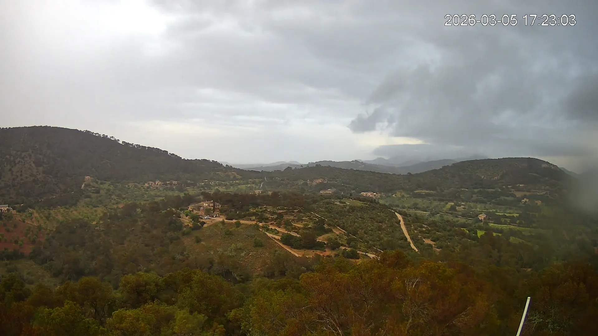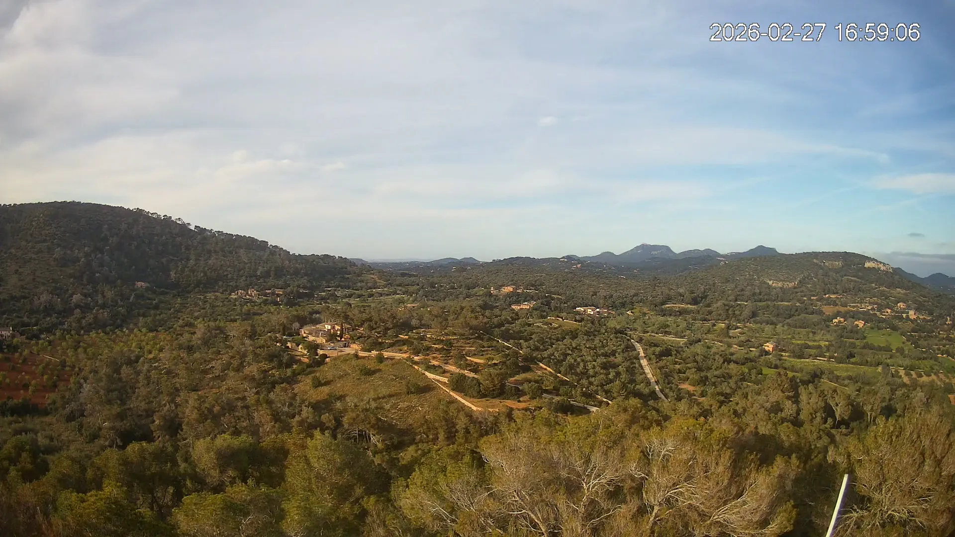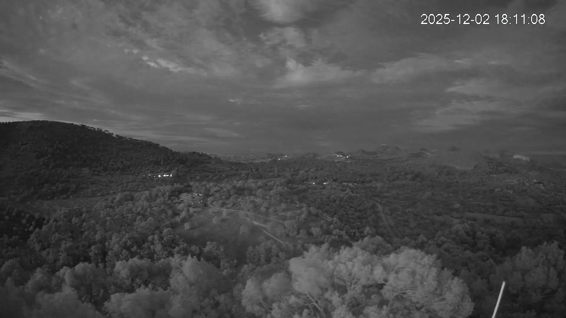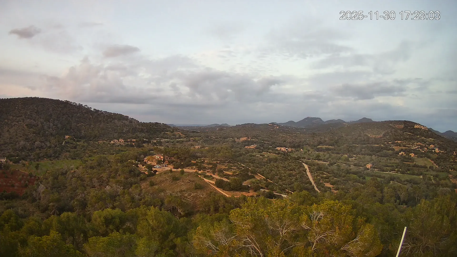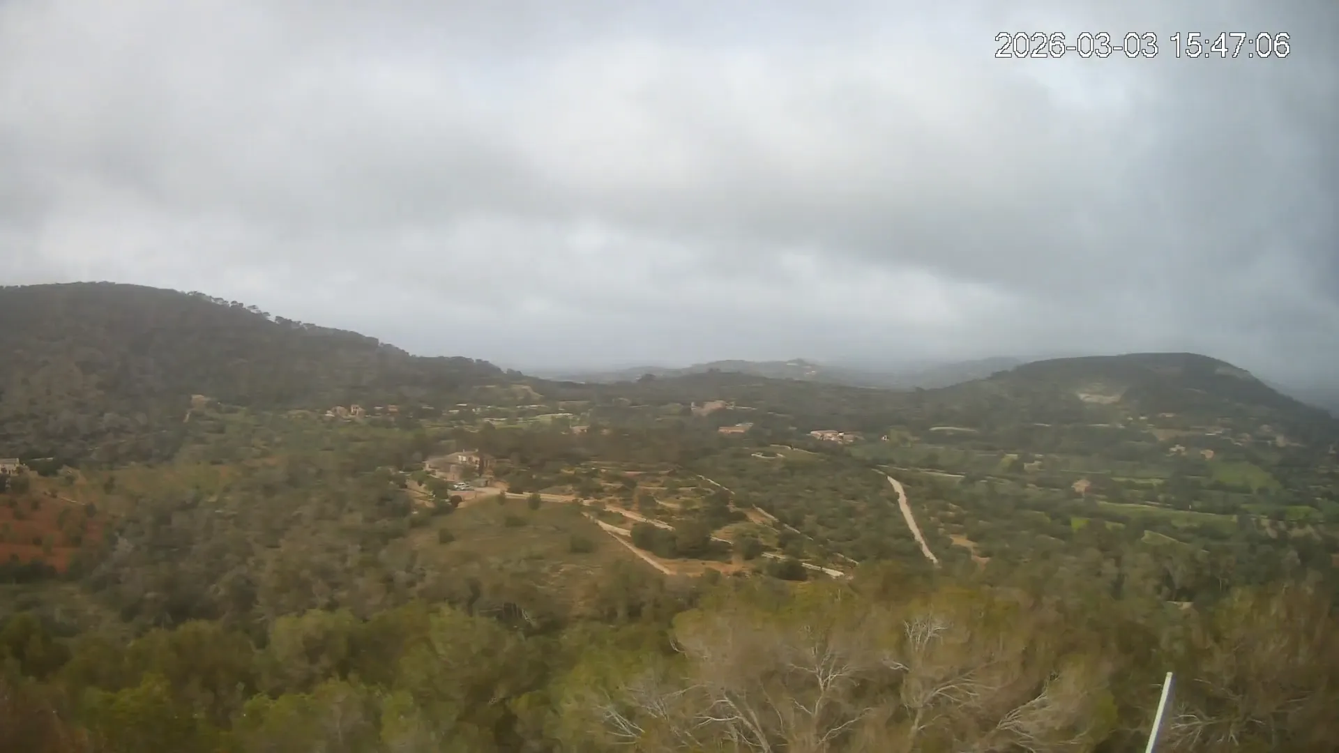Desde la cima del Puig de Consolació, esta cámara ofrece una vista privilegiada del sureste de Mallorca. En el horizonte destacan dos de los santuarios más emblemáticos de la isla: Sant Salvador y Santueri, ambos coronando sus respectivas montañas. En los días claros, al fondo, se perfila la Serra de Llevant, completando una panorámica que une espiritualidad, paisaje y profundidad geográfica.