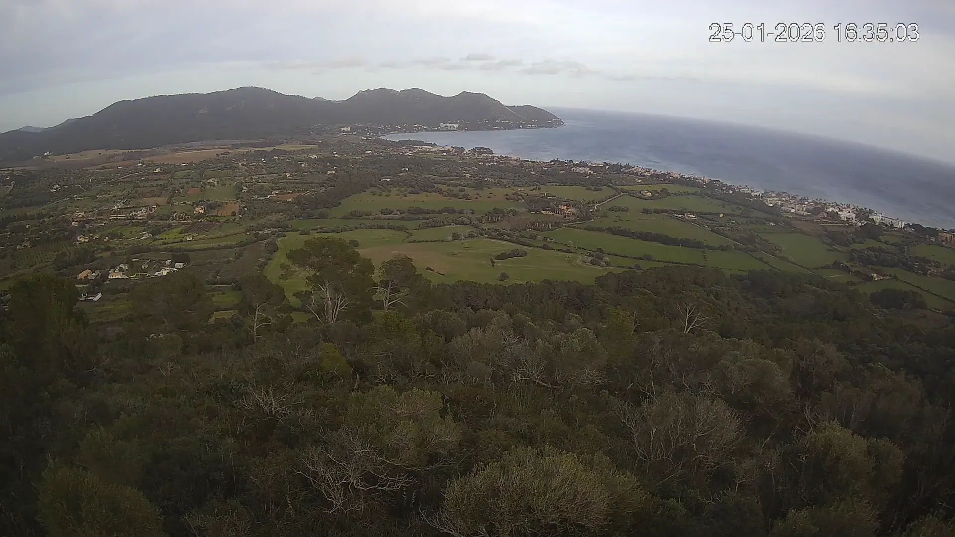Ubicada en Puig de Son Corb, esta cámara ofrece una perspectiva privilegiada de la Costa dels Pins, una de las zonas más exclusivas del noreste de Mallorca. Desde este punto elevado, puedes observar en tiempo real el azul intenso del Mediterráneo, el relieve montañoso que rodea la costa y la evolución del clima a lo largo del día. ¿Quieres ver cómo ha cambiado el paisaje en la última semana? Accede a los timelapses de los últimos 7 días y revive los amaneceres despejando el horizonte, los cambios en la nubosidad y los atardeceres sobre el mar. Esta herramienta es ideal para comprobar el estado del tiempo antes de salir a navegar, practicar senderismo o simplemente disfrutar de una vista espectacular desde cualquier parte del mundo.
