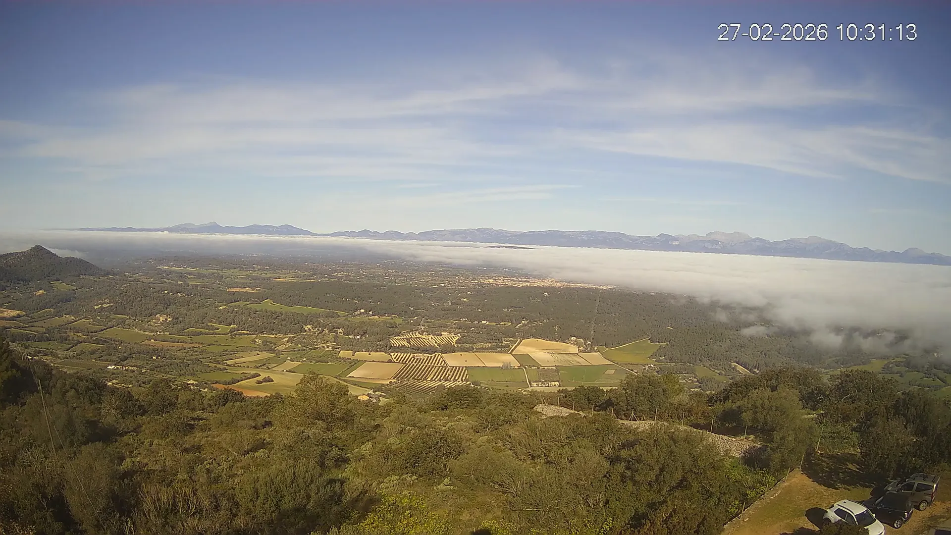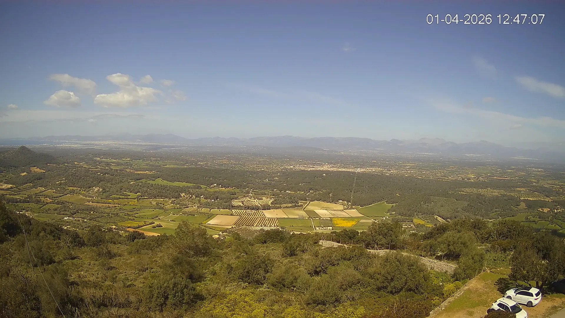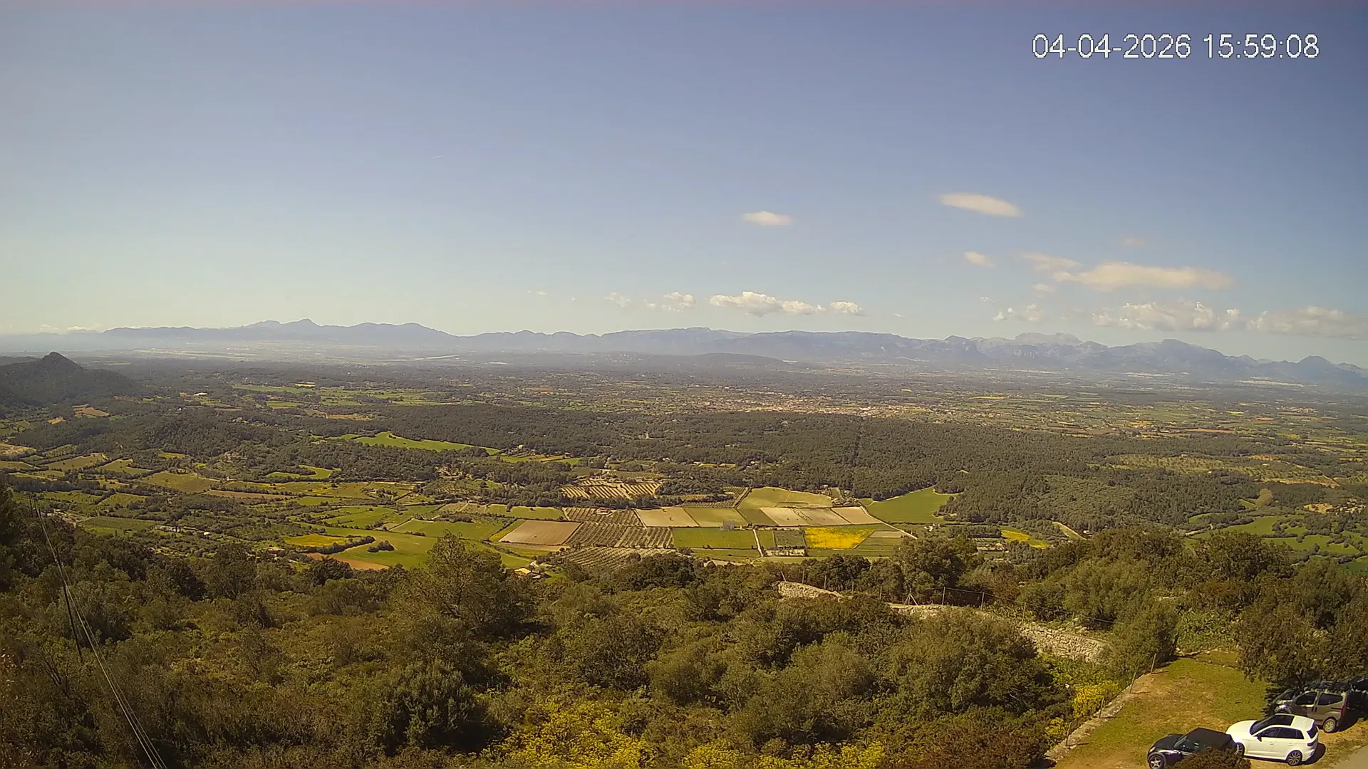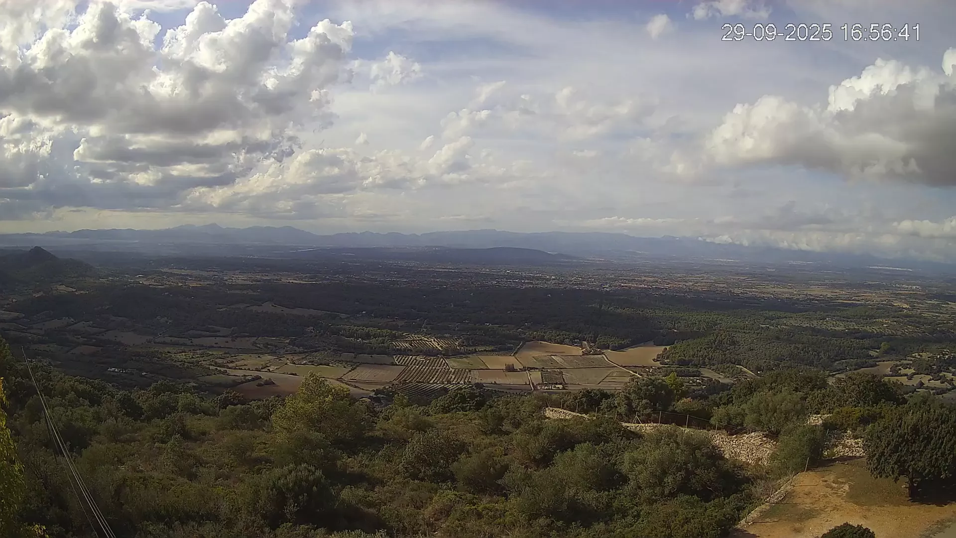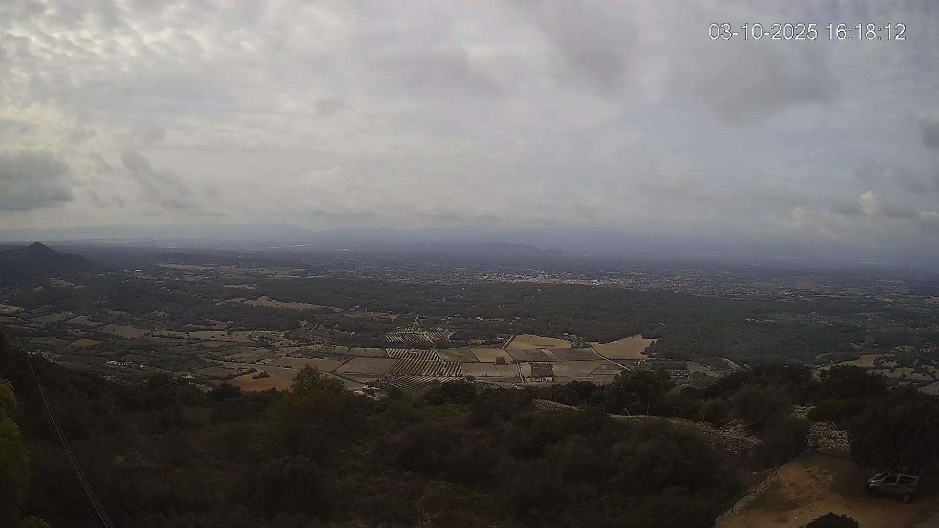 Conéctate en tiempo real a las vistas desde el Puig de Randa, uno de los miradores más destacados del centro de Mallorca. Esta cámara situada en el área del Santuari de Cura ofrece una perspectiva amplia del paisaje rural del municipio de Algaida y sus alrededores. Desde la cima, se extienden campos de cultivo, pequeñas poblaciones y, en días despejados, la línea de costa en el horizonte. Accede a los timelapses de los últimos 7 días y observa cómo se transforman los campos, los cambios de nubosidad y los colores del atardecer reflejándose sobre la llanura mallorquina. Ideal para excursionistas, fotógrafos o amantes de las vistas panorámicas.