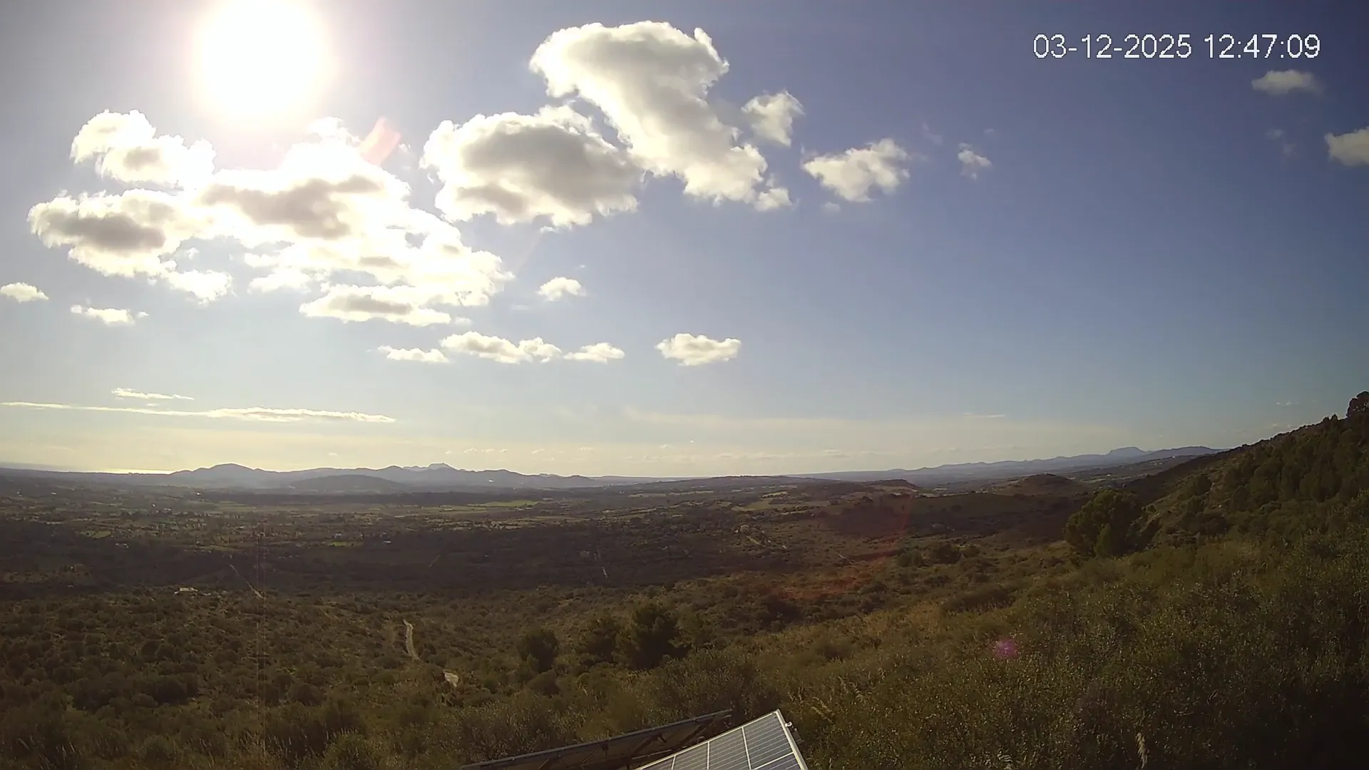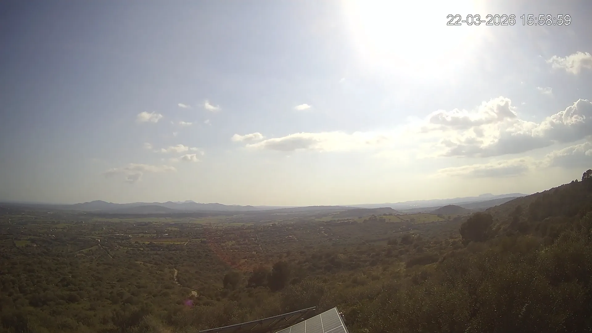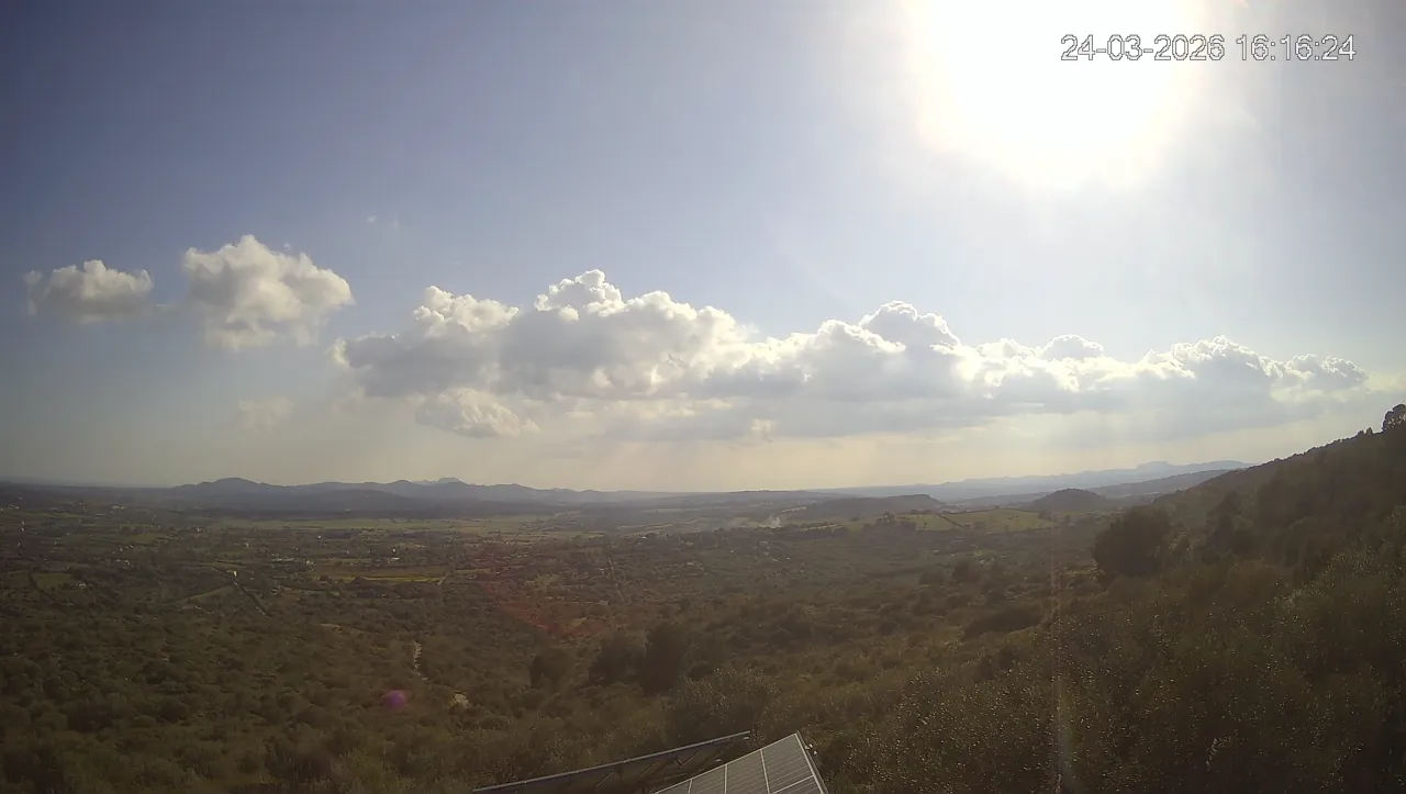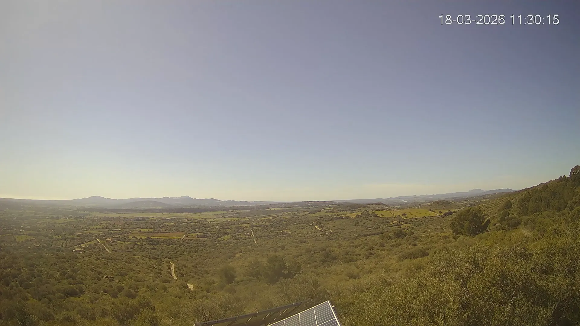 Ubicada en el Puig del Telègraf, esta cámara ofrece una imagen en directo de un entorno natural rodeado de colinas y vegetación mediterránea. Desde este punto elevado, se pueden observar los cambios en la luz y el clima a lo largo del día, con una vista despejada del paisaje rural. La transmisión en tiempo real permite conocer las condiciones meteorológicas y la visibilidad en la zona, siendo una referencia útil para senderistas, ciclistas o cualquier persona interesada en el estado del tiempo. Además, los timelapses de los últimos 7 días muestran la evolución del paisaje, desde el amanecer iluminando las colinas hasta el atardecer cubriendo el entorno con tonos cálidos.