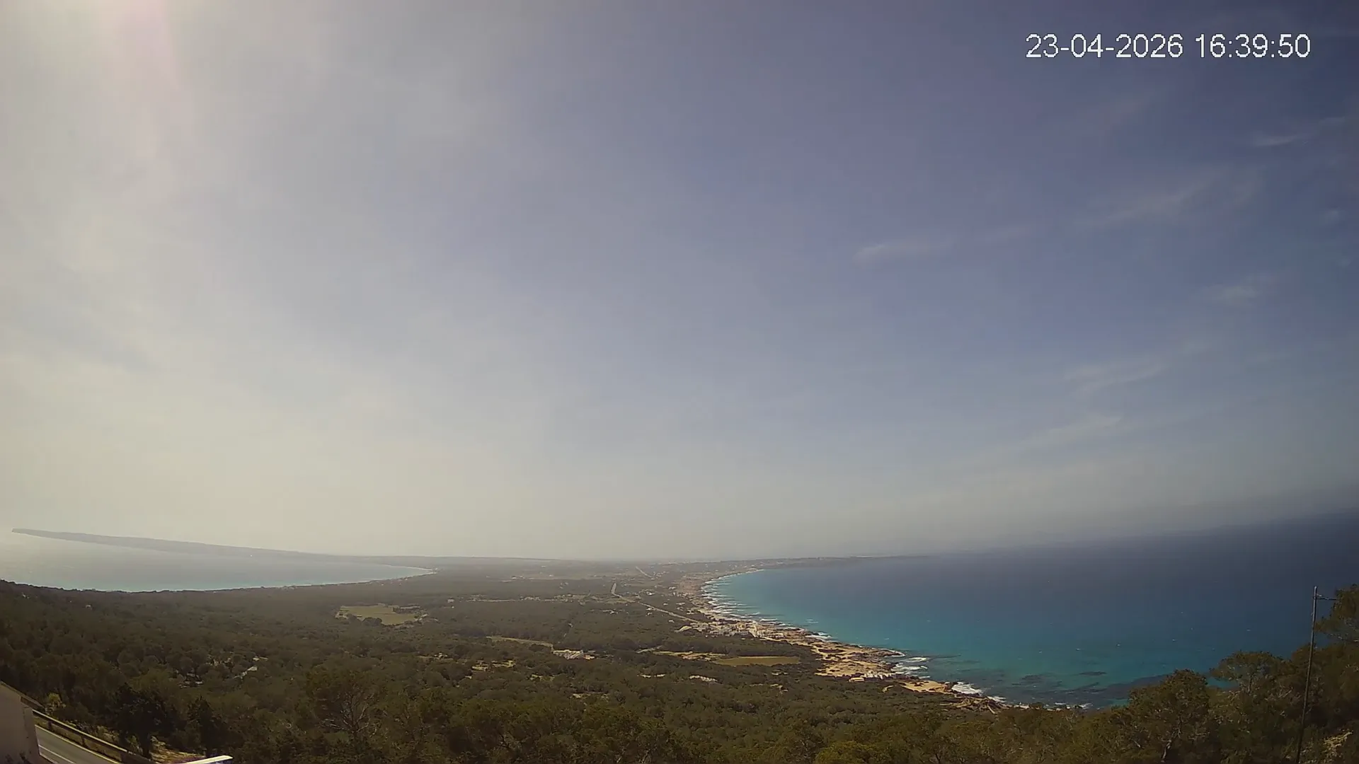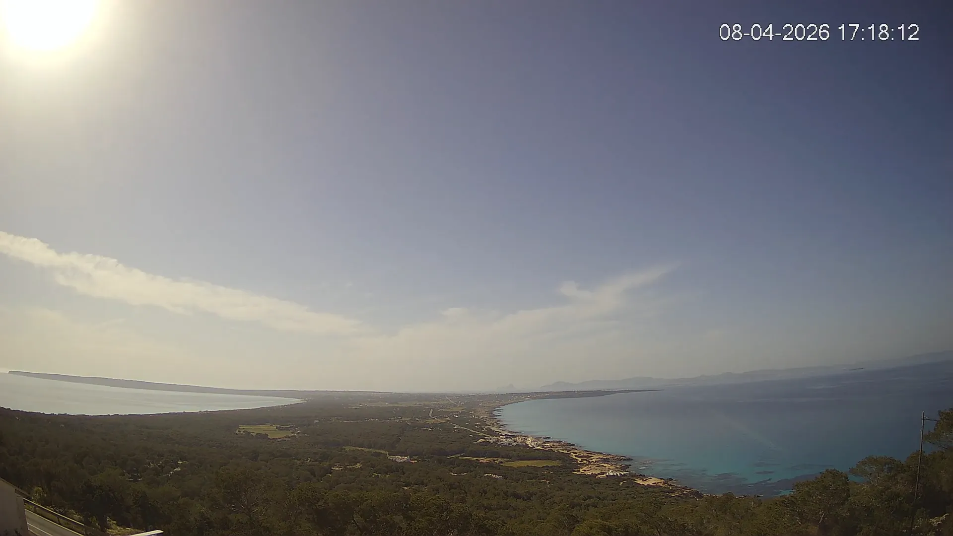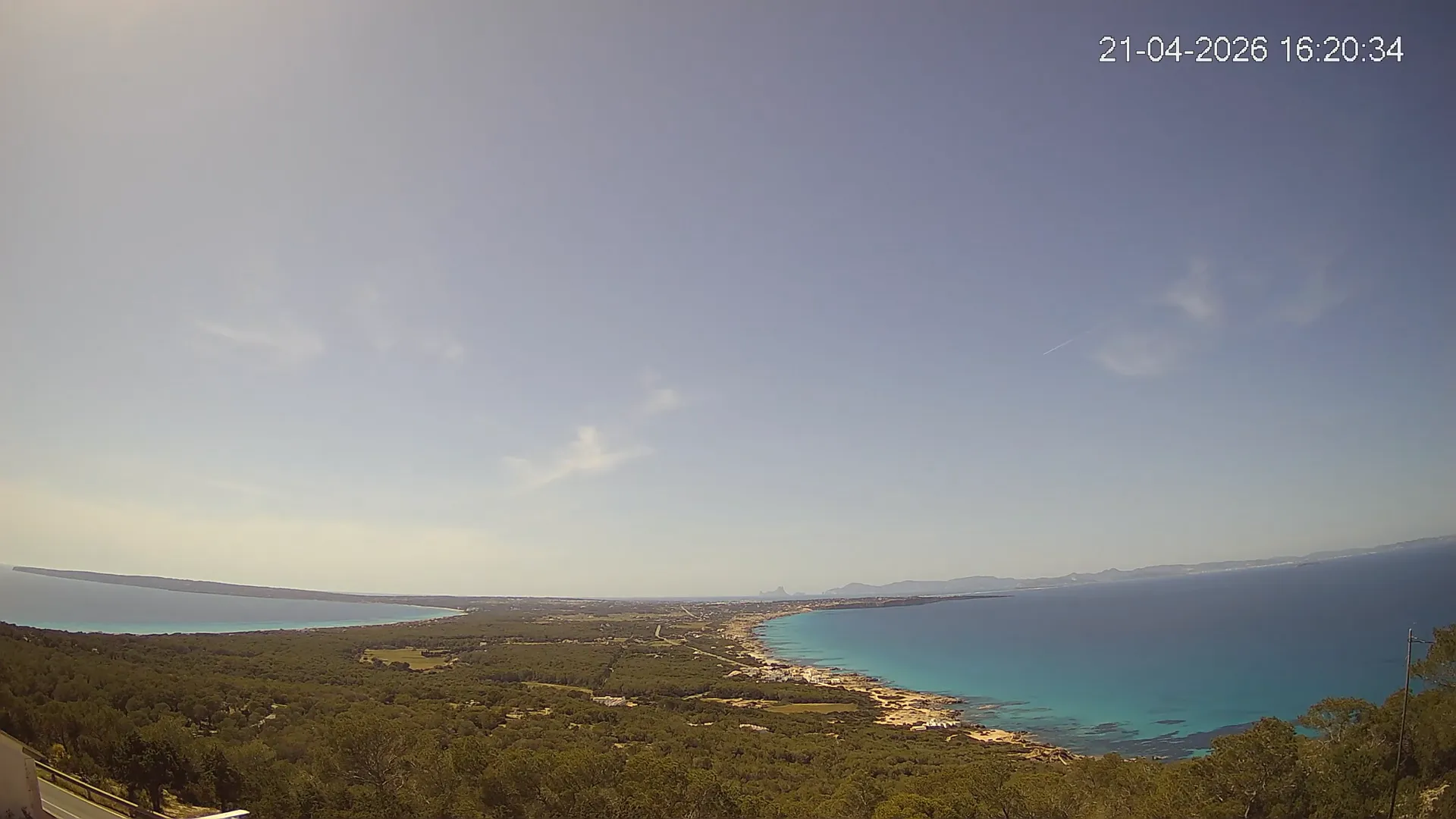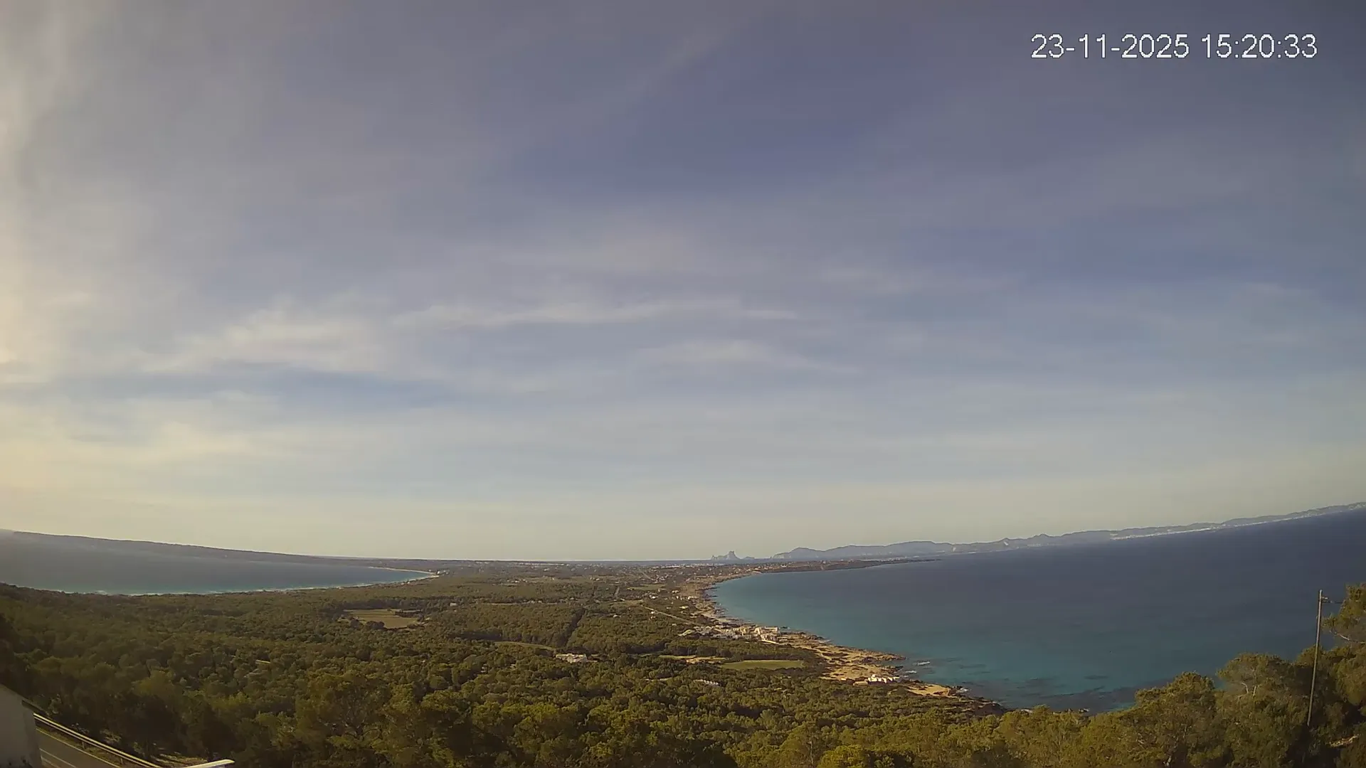 Ubicada en Es Mirador, una de las zonas más elevadas de Formentera, esta cámara ofrece una vista en directo de la isla con una panorámica privilegiada. Desde este punto estratégico, se puede observar el relieve característico de Formentera, con sus contrastes entre el mar, la vegetación mediterránea y las extensas llanuras que definen el paisaje. La imagen permite conocer en tiempo real las condiciones meteorológicas, la visibilidad y el estado del mar, facilitando información útil tanto para residentes como para visitantes. Además del streaming en vivo, puedes consultar los timelapses de los últimos 7 días, donde se muestra la evolución del paisaje desde el amanecer hasta el anochecer. Consulta esta cámara en cualquier momento para obtener información actualizada sobre el tiempo o simplemente para disfrutar de una vista panorámica única de la isla.