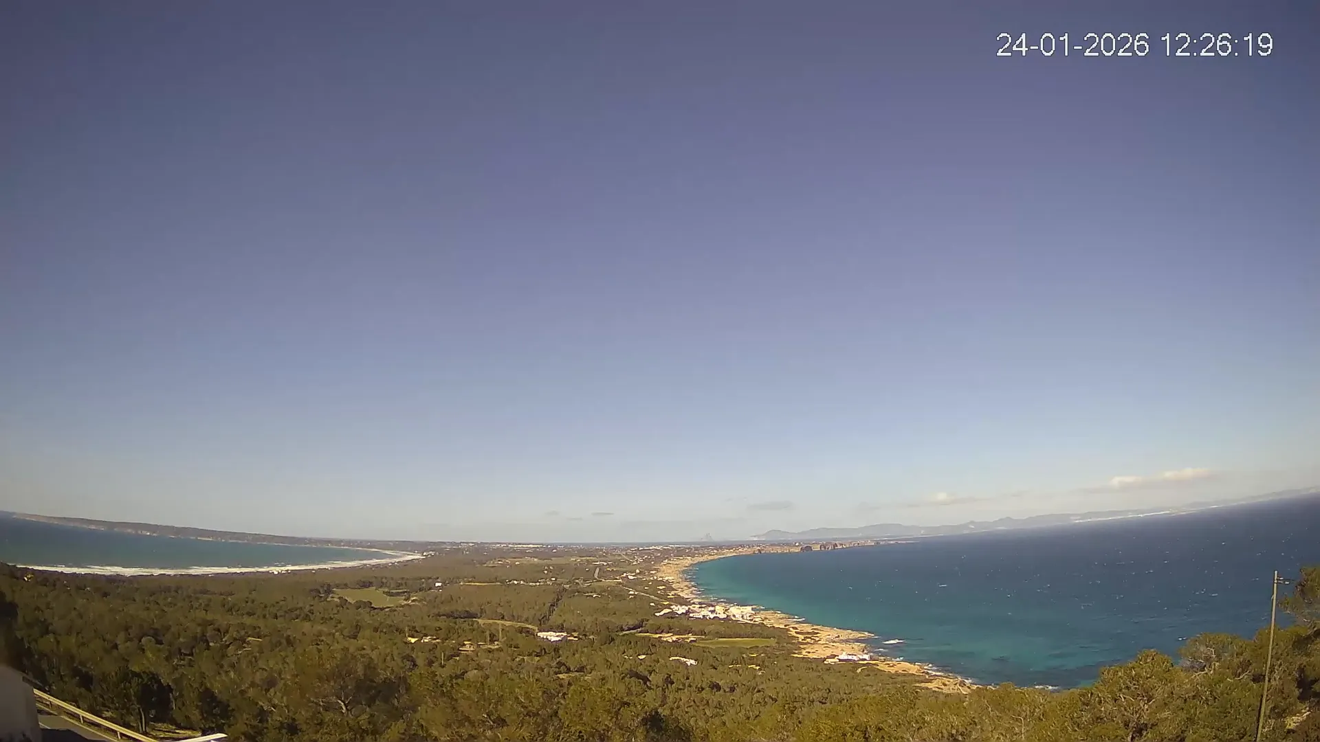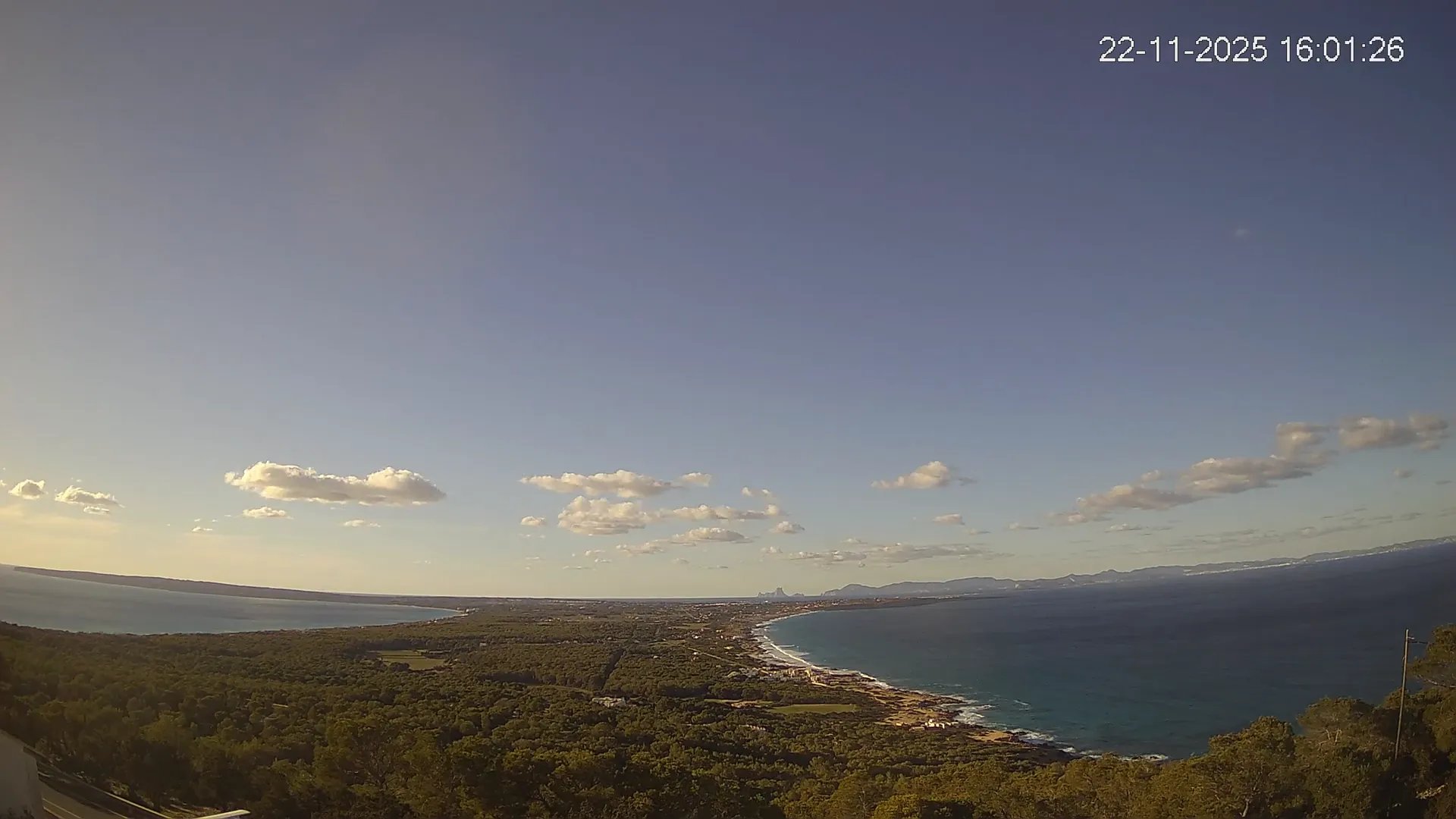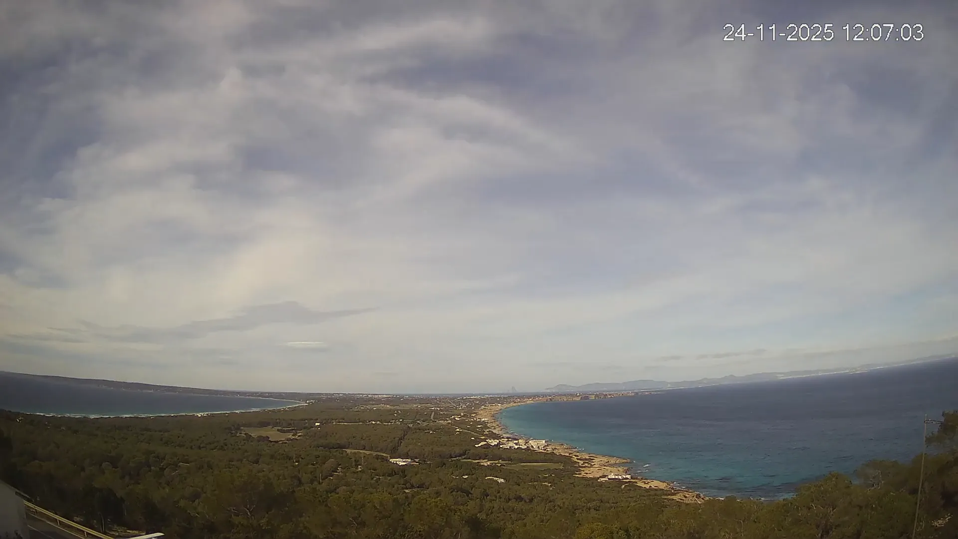 Ubicada en Es Mirador, una de las zonas más elevadas de Formentera, esta cámara ofrece una vista en directo de la isla con una panorámica privilegiada. Desde este punto estratégico, se puede observar el relieve característico de Formentera, con sus contrastes entre el mar, la vegetación mediterránea y las extensas llanuras que definen el paisaje. La imagen permite conocer en tiempo real las condiciones meteorológicas, la visibilidad y el estado del mar, facilitando información útil tanto para residentes como para visitantes. Además del streaming en vivo, puedes consultar los timelapses de los últimos 7 días, donde se muestra la evolución del paisaje desde el amanecer hasta el anochecer. Consulta esta cámara en cualquier momento para obtener información actualizada sobre el tiempo o simplemente para disfrutar de una vista panorámica única de la isla.