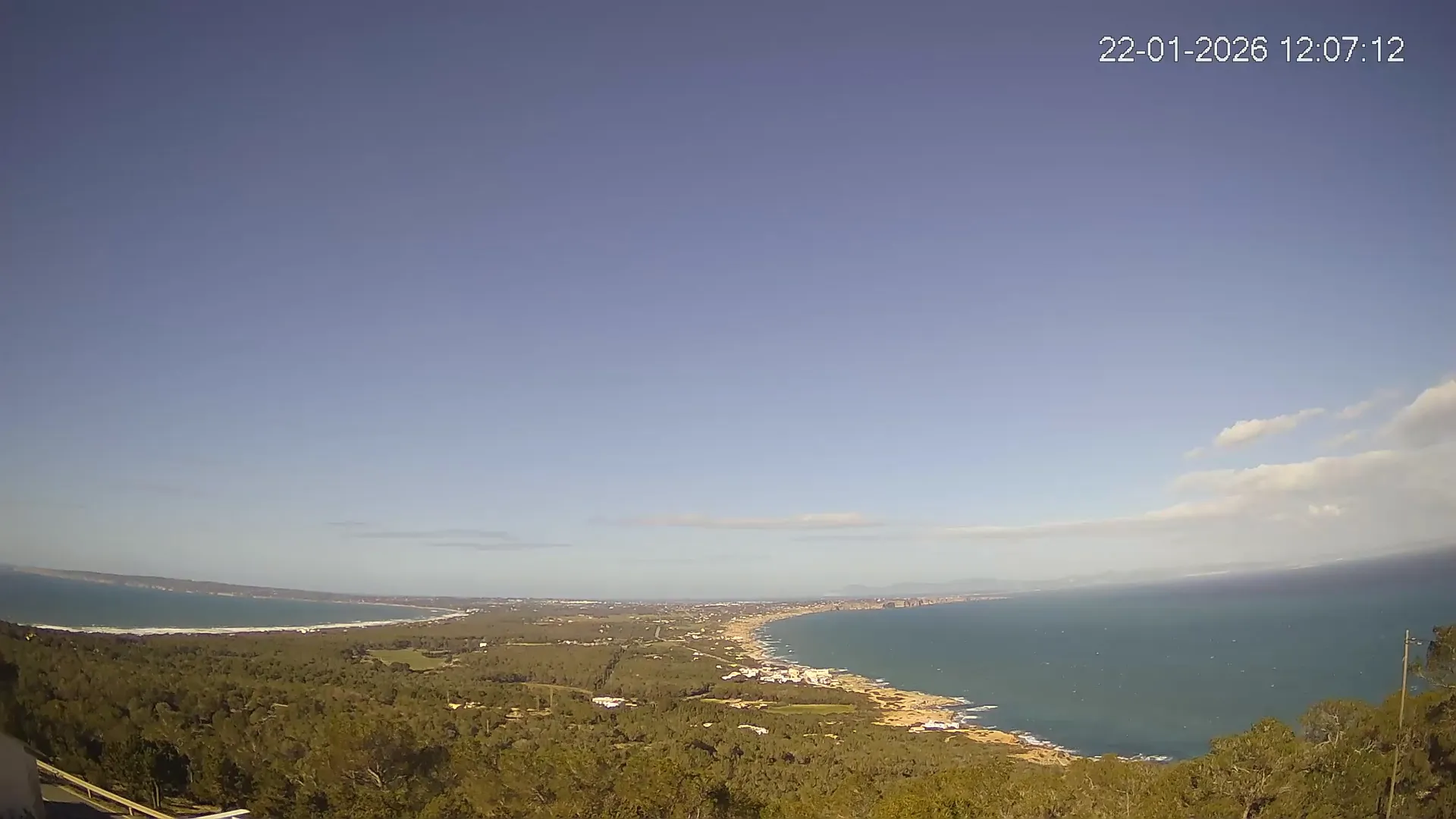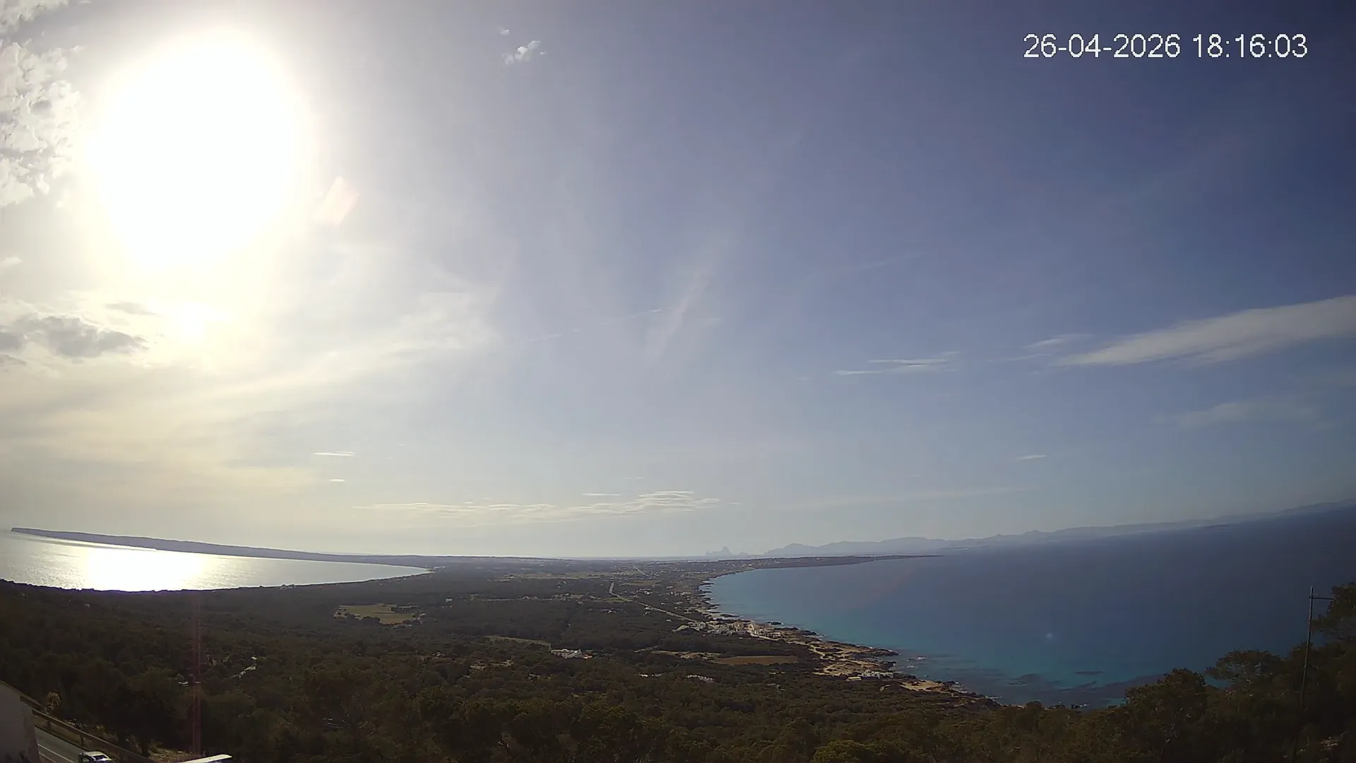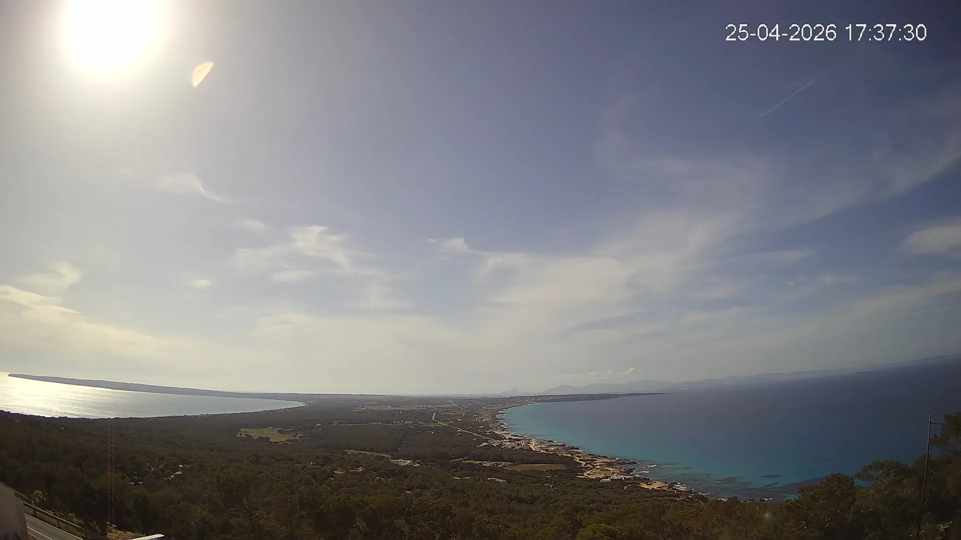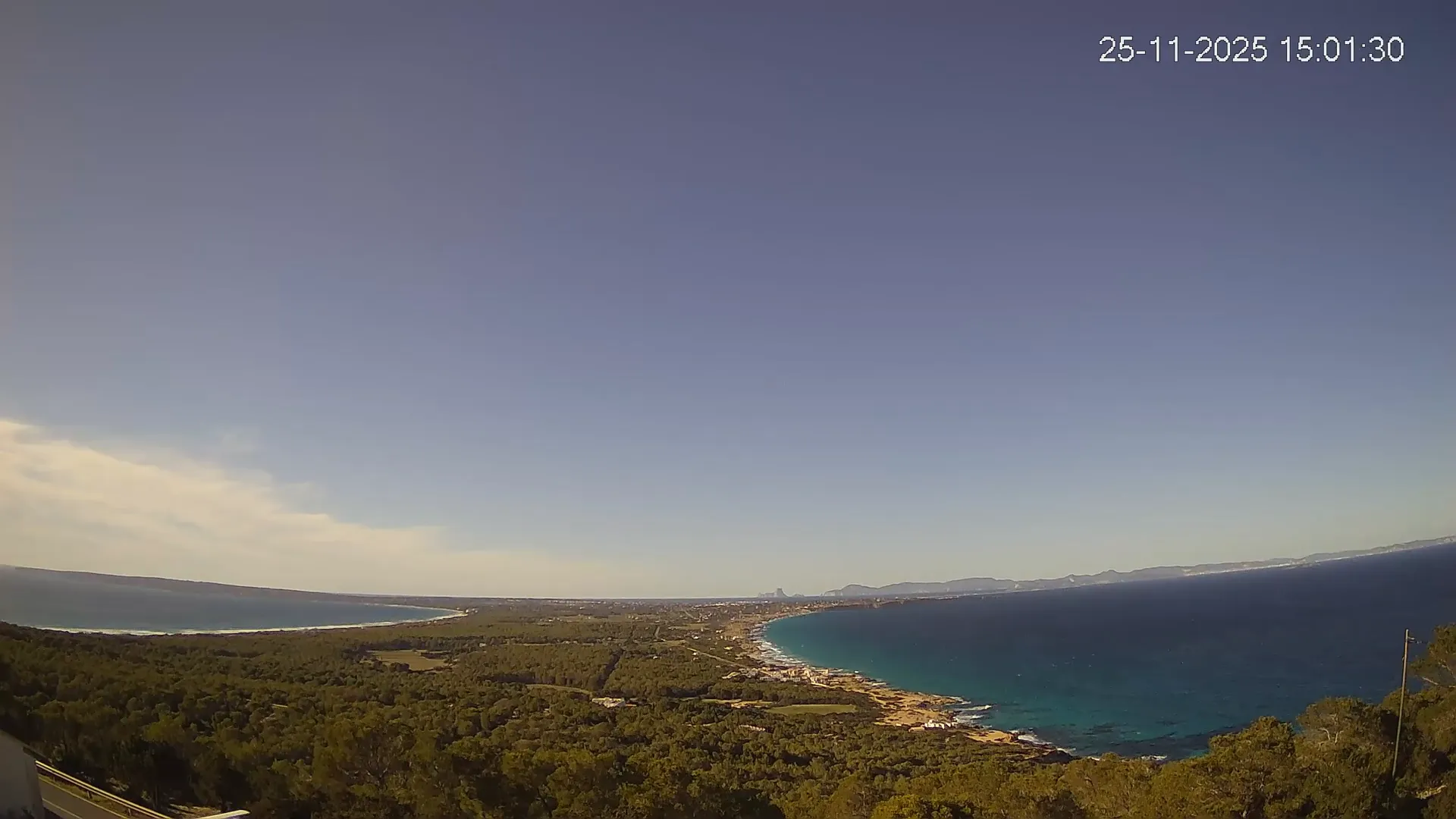 Ubicada en Es Mirador, una de las zonas más elevadas de Formentera, esta cámara ofrece una vista en directo de la isla con una panorámica privilegiada. Desde este punto estratégico, se puede observar el relieve característico de Formentera, con sus contrastes entre el mar, la vegetación mediterránea y las extensas llanuras que definen el paisaje. La imagen permite conocer en tiempo real las condiciones meteorológicas, la visibilidad y el estado del mar, facilitando información útil tanto para residentes como para visitantes. Además del streaming en vivo, puedes consultar los timelapses de los últimos 7 días, donde se muestra la evolución del paisaje desde el amanecer hasta el anochecer. Consulta esta cámara en cualquier momento para obtener información actualizada sobre el tiempo o simplemente para disfrutar de una vista panorámica única de la isla.