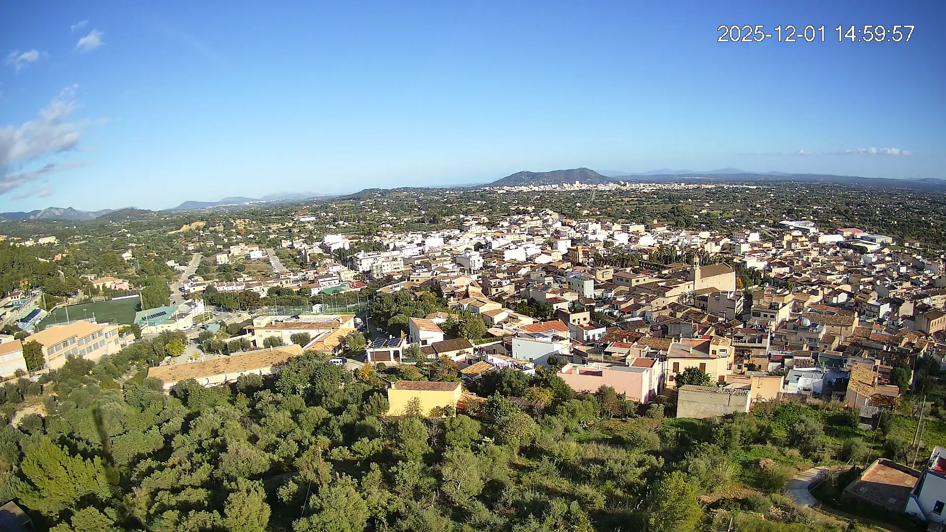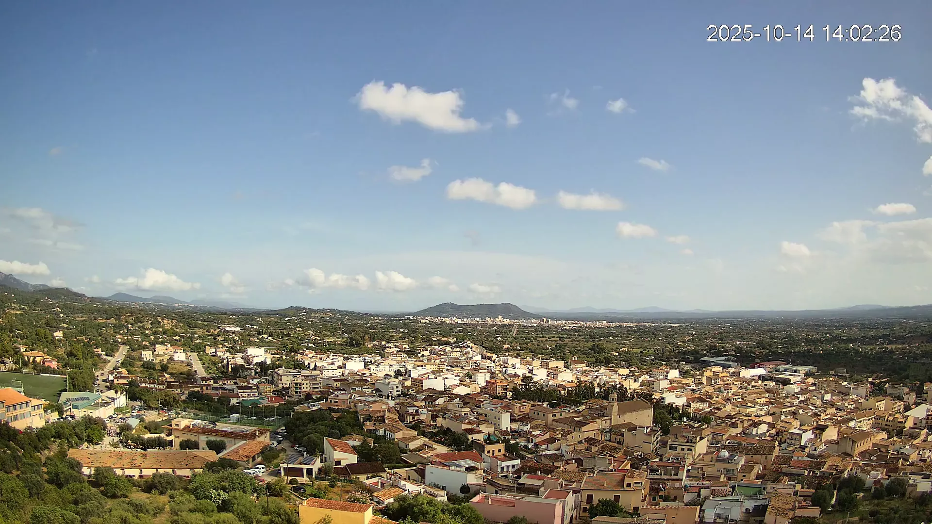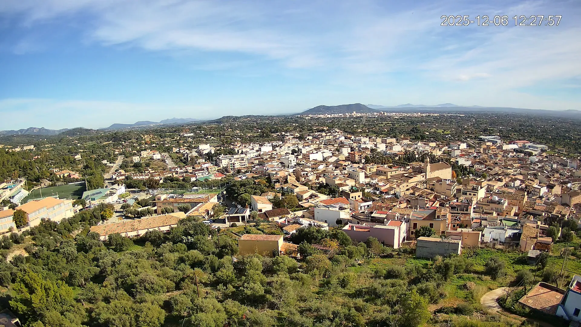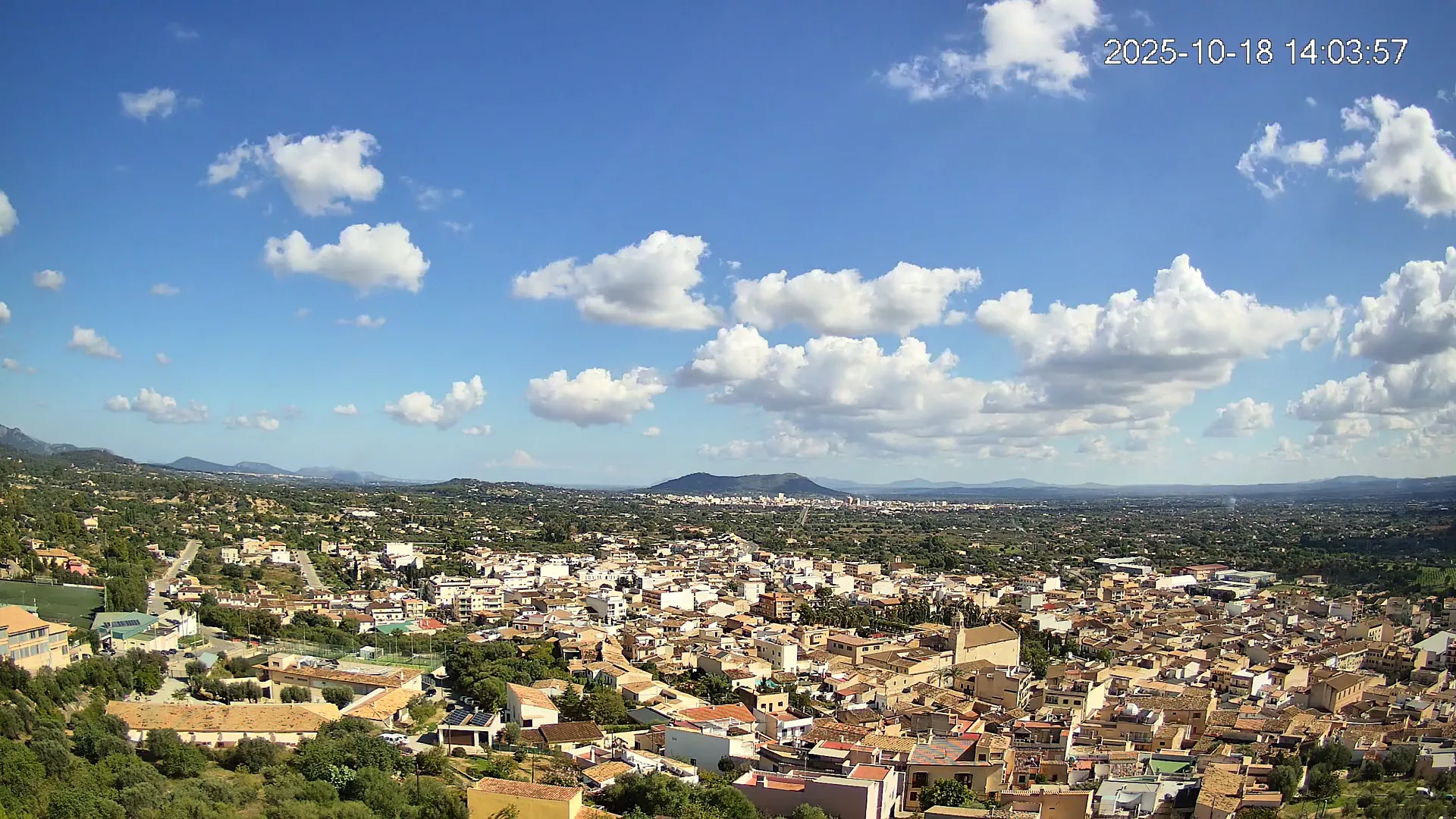 Ubicada en la parte alta del pueblo de Lloseta, esta cámara ofrece una vista panorámica del corazón de Mallorca, donde se aprecian las calles y tejados de Lloseta, la ciudad de Inca al fondo y, dominando el horizonte, el Puig de Santa Magdalena con su emblemática ermita en la cima, todo enmarcado por la belleza de la Mallorca interior