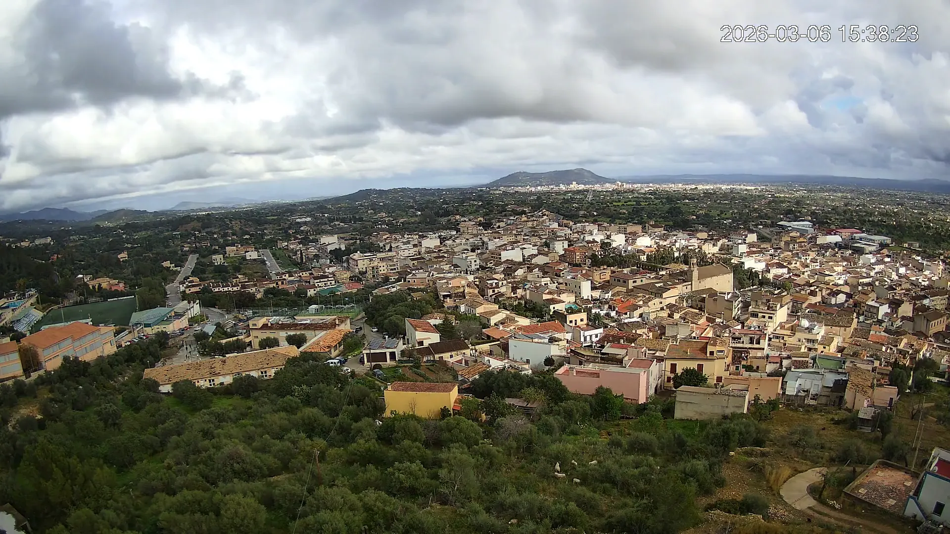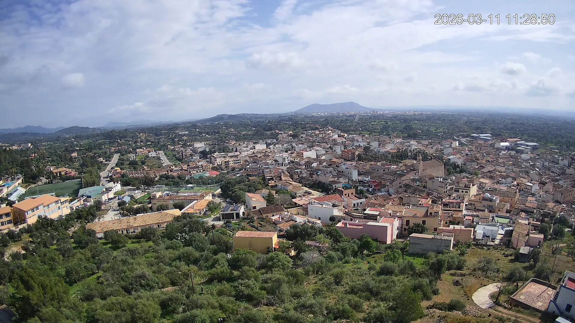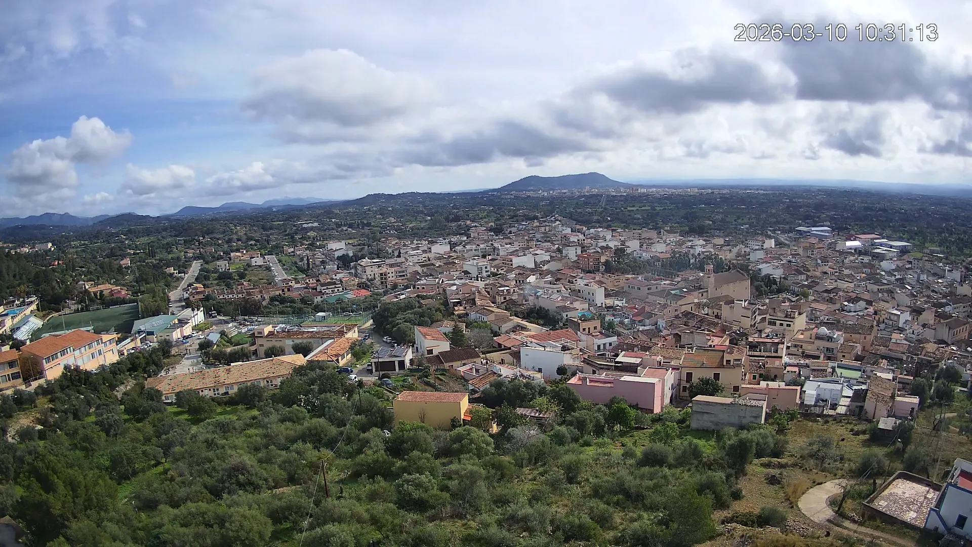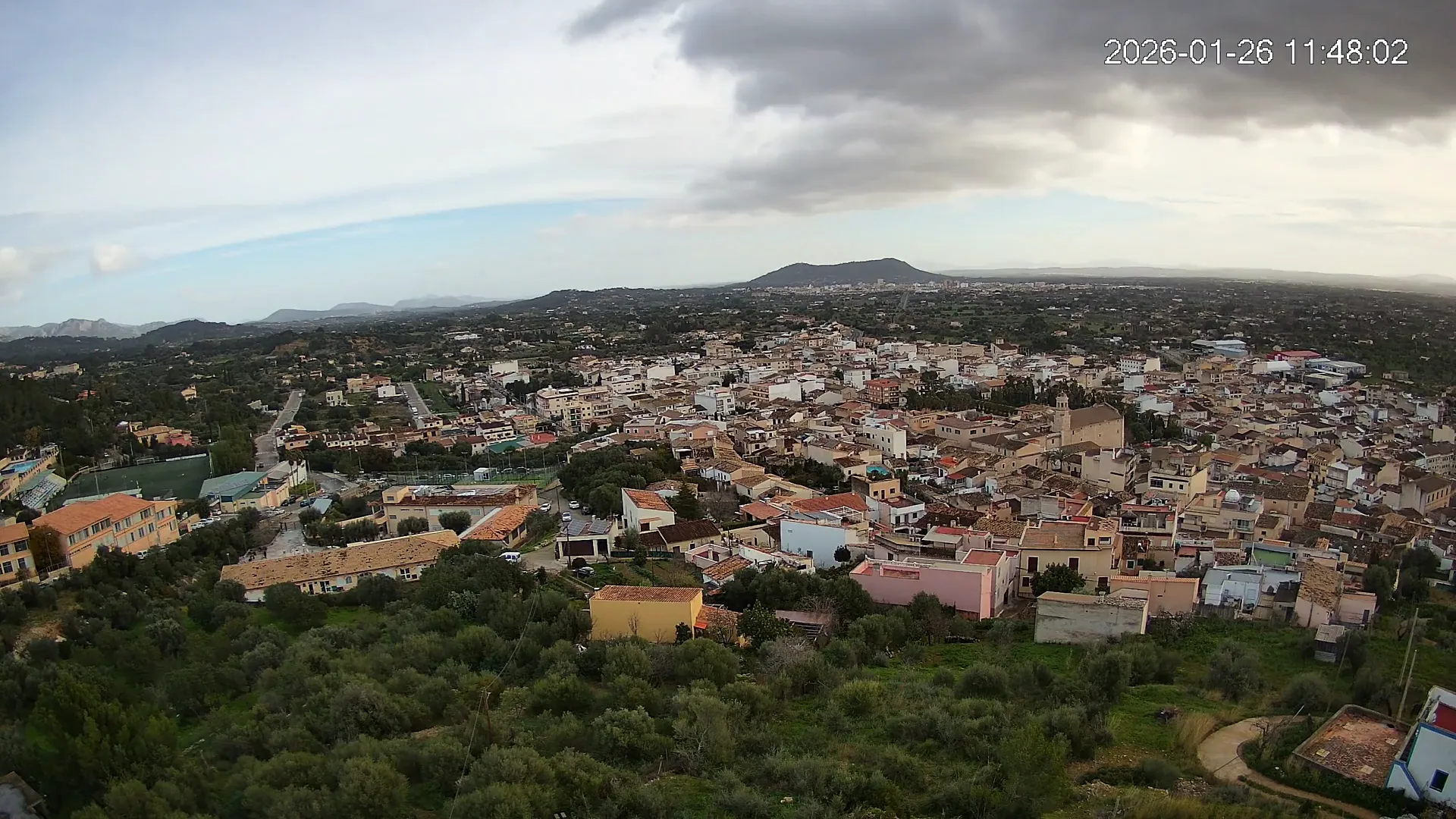 Ubicada en la parte alta del pueblo de Lloseta, esta cámara ofrece una vista panorámica del corazón de Mallorca, donde se aprecian las calles y tejados de Lloseta, la ciudad de Inca al fondo y, dominando el horizonte, el Puig de Santa Magdalena con su emblemática ermita en la cima, todo enmarcado por la belleza de la Mallorca interior