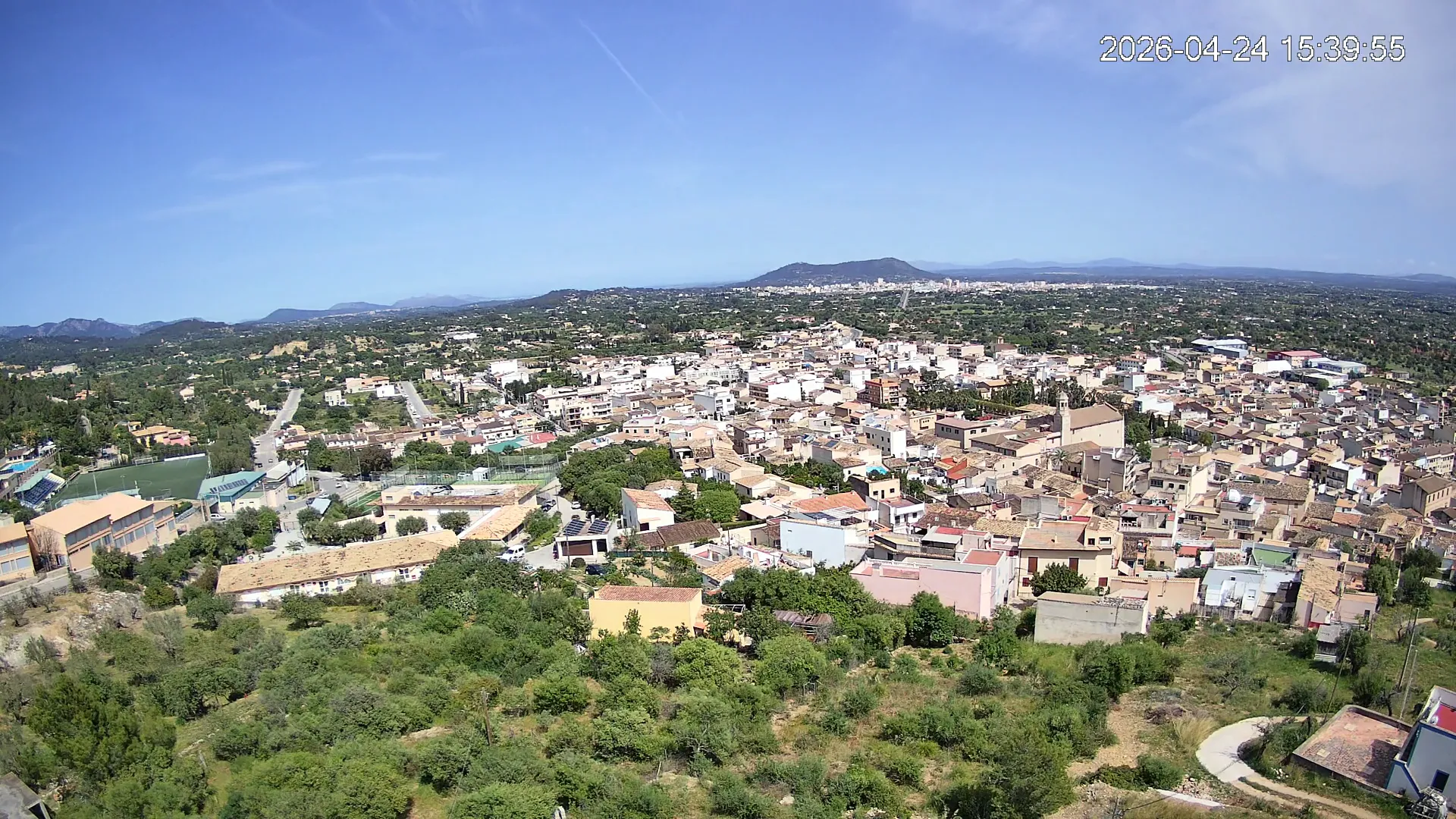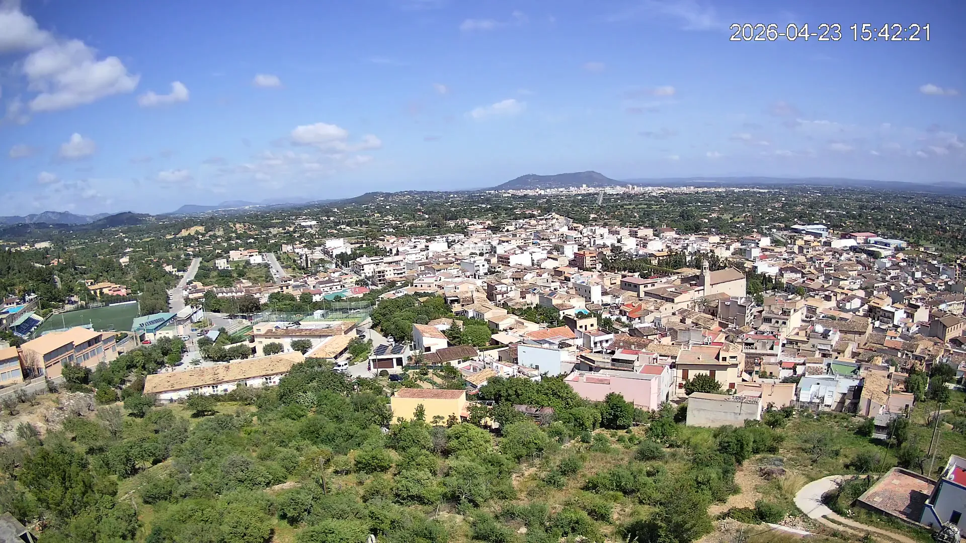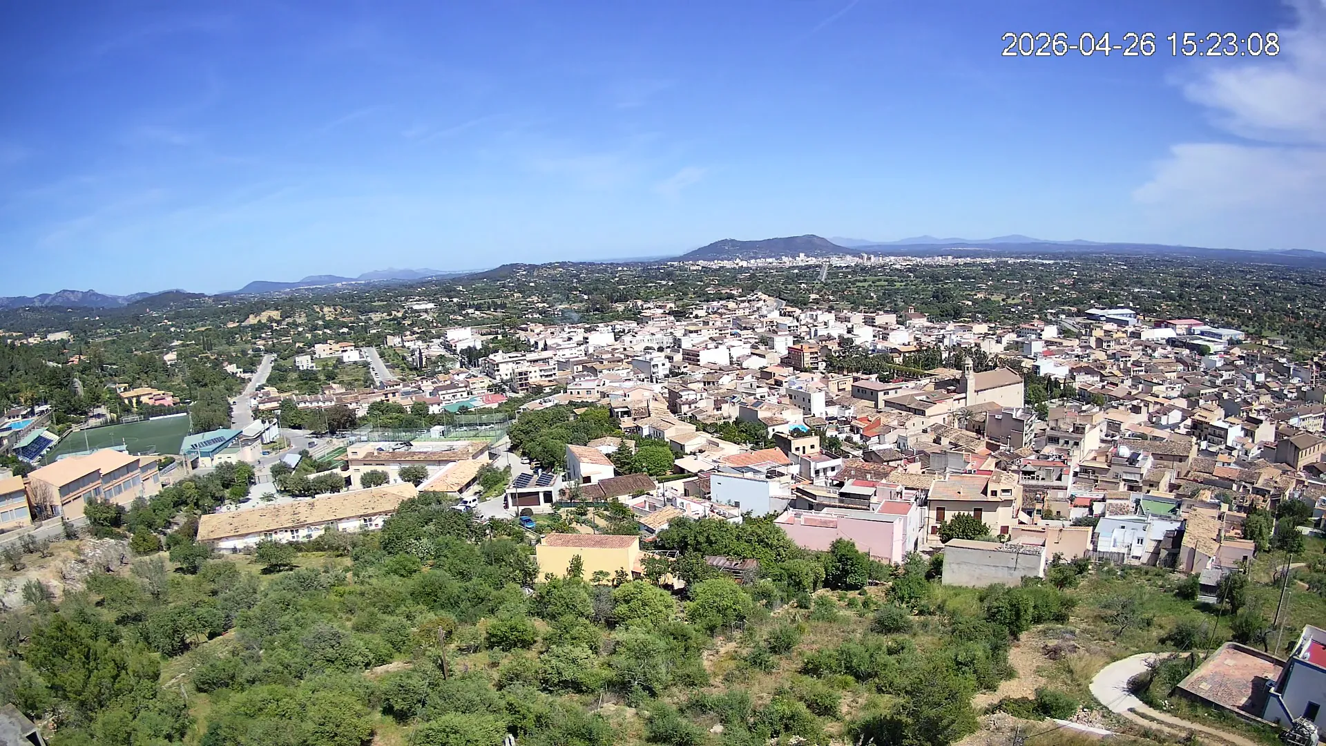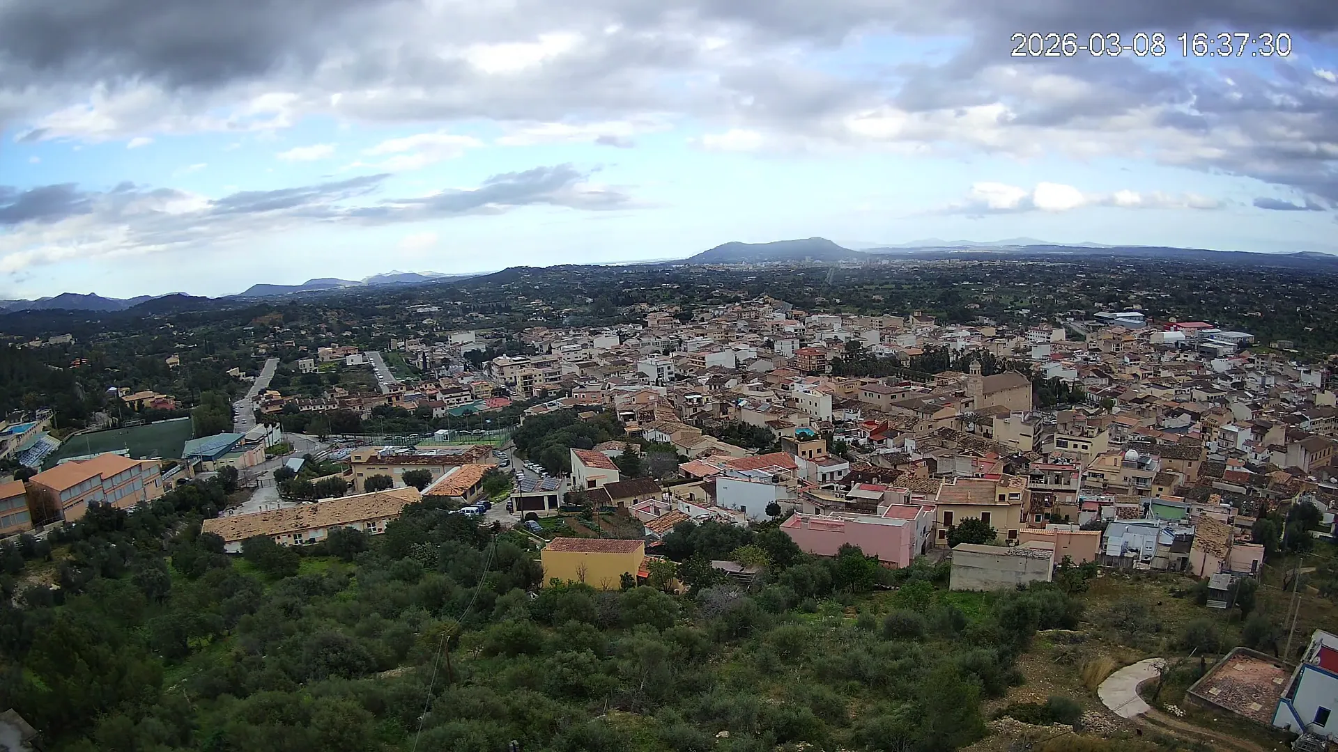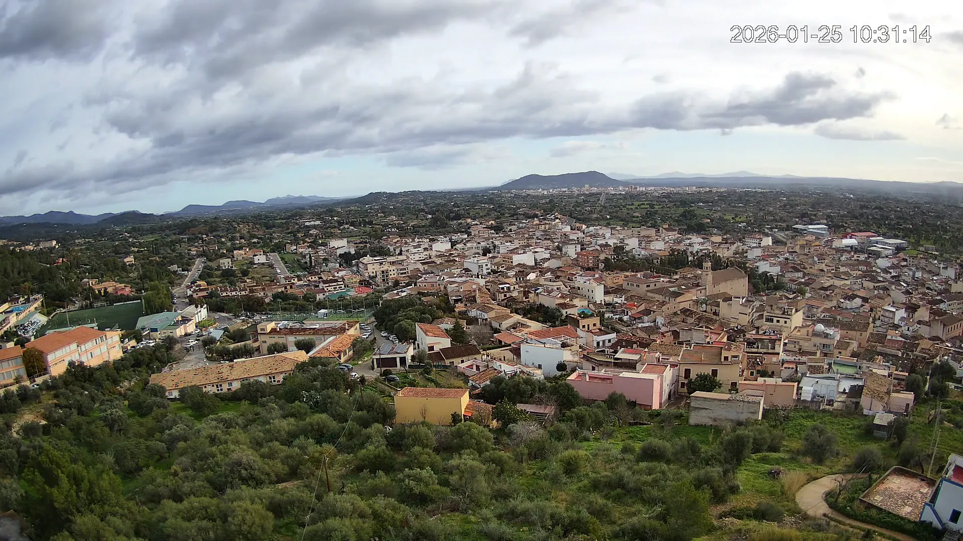 Ubicada en la parte alta del pueblo de Lloseta, esta cámara ofrece una vista panorámica del corazón de Mallorca, donde se aprecian las calles y tejados de Lloseta, la ciudad de Inca al fondo y, dominando el horizonte, el Puig de Santa Magdalena con su emblemática ermita en la cima, todo enmarcado por la belleza de la Mallorca interior