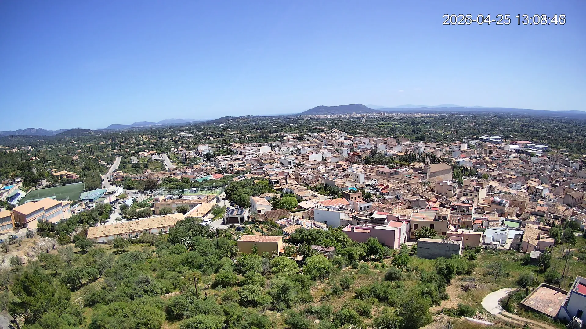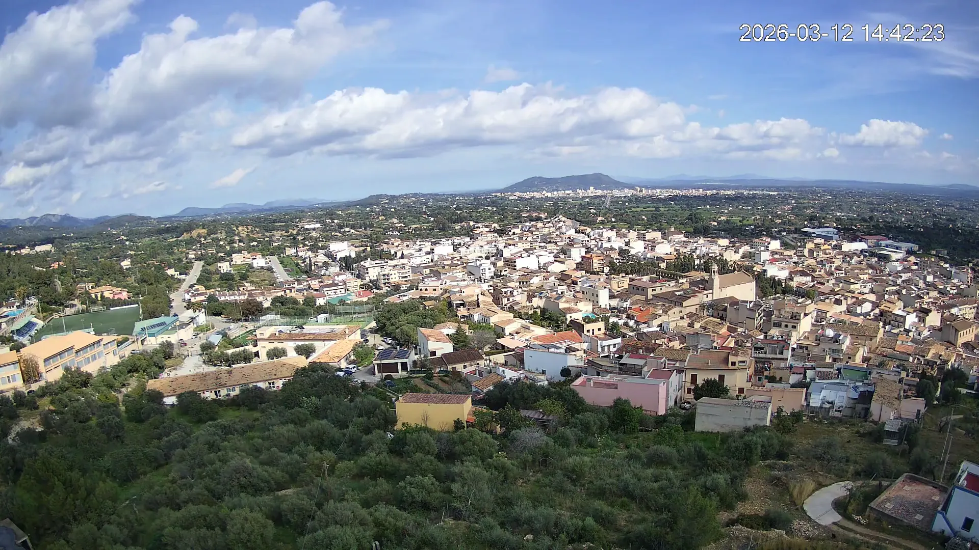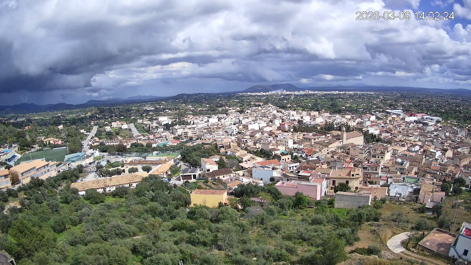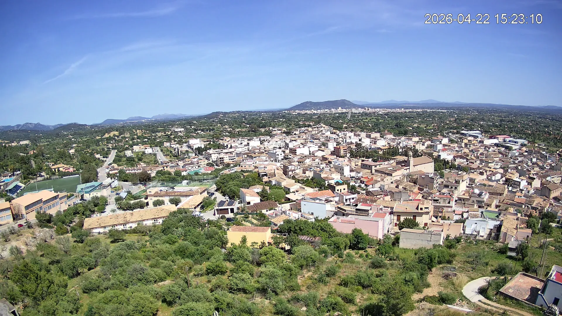 Ubicada en la parte alta del pueblo de Lloseta, esta cámara ofrece una vista panorámica del corazón de Mallorca, donde se aprecian las calles y tejados de Lloseta, la ciudad de Inca al fondo y, dominando el horizonte, el Puig de Santa Magdalena con su emblemática ermita en la cima, todo enmarcado por la belleza de la Mallorca interior