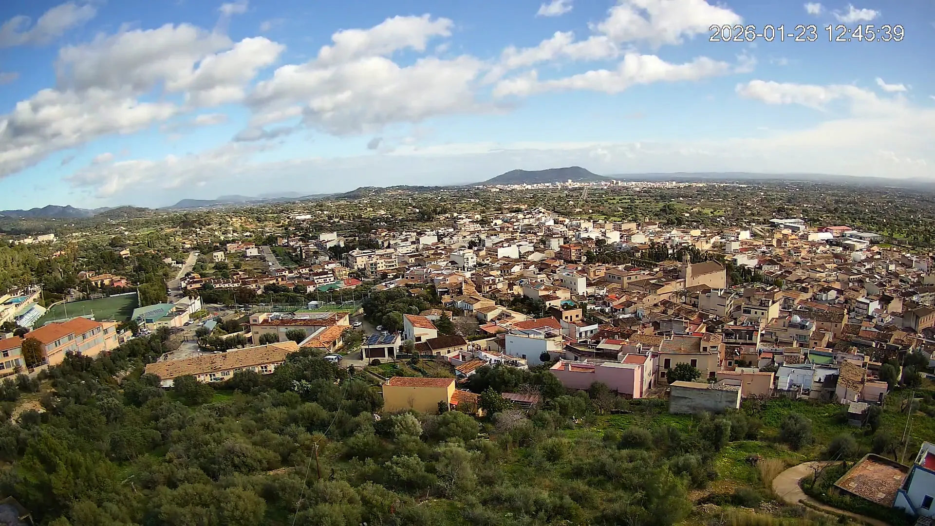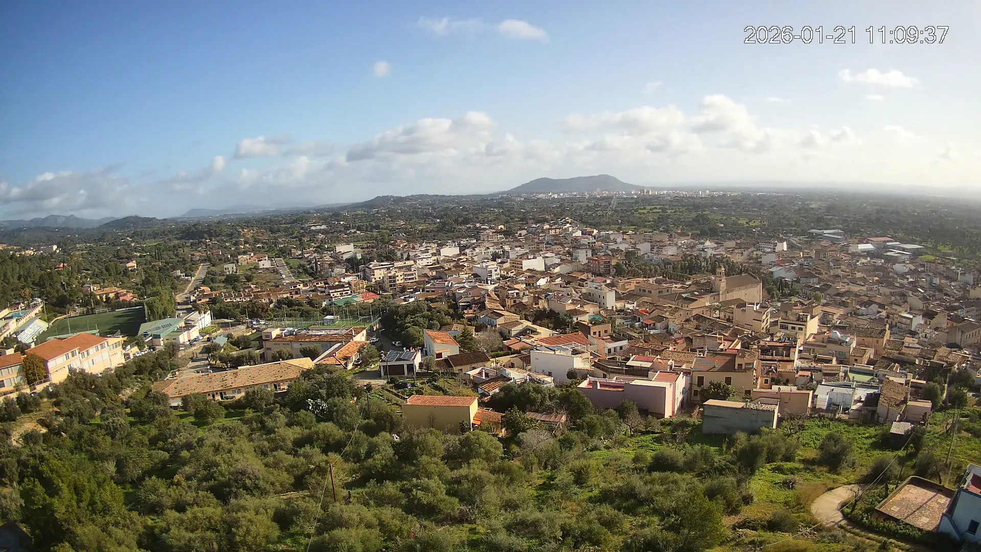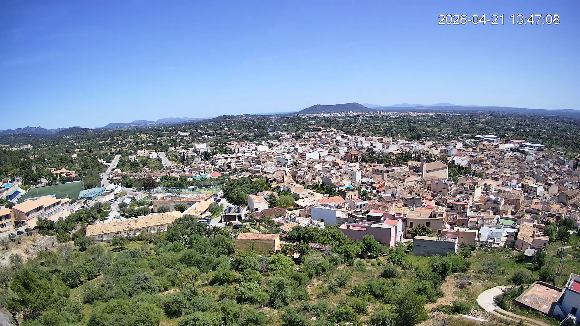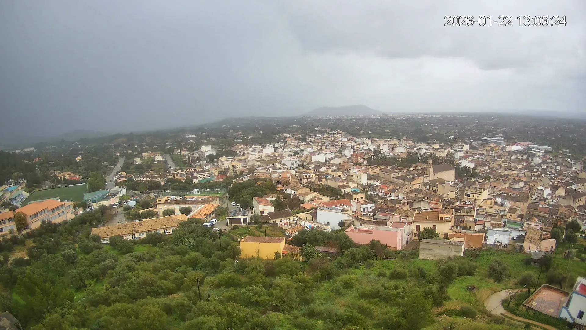 Ubicada en la parte alta del pueblo de Lloseta, esta cámara ofrece una vista panorámica del corazón de Mallorca, donde se aprecian las calles y tejados de Lloseta, la ciudad de Inca al fondo y, dominando el horizonte, el Puig de Santa Magdalena con su emblemática ermita en la cima, todo enmarcado por la belleza de la Mallorca interior