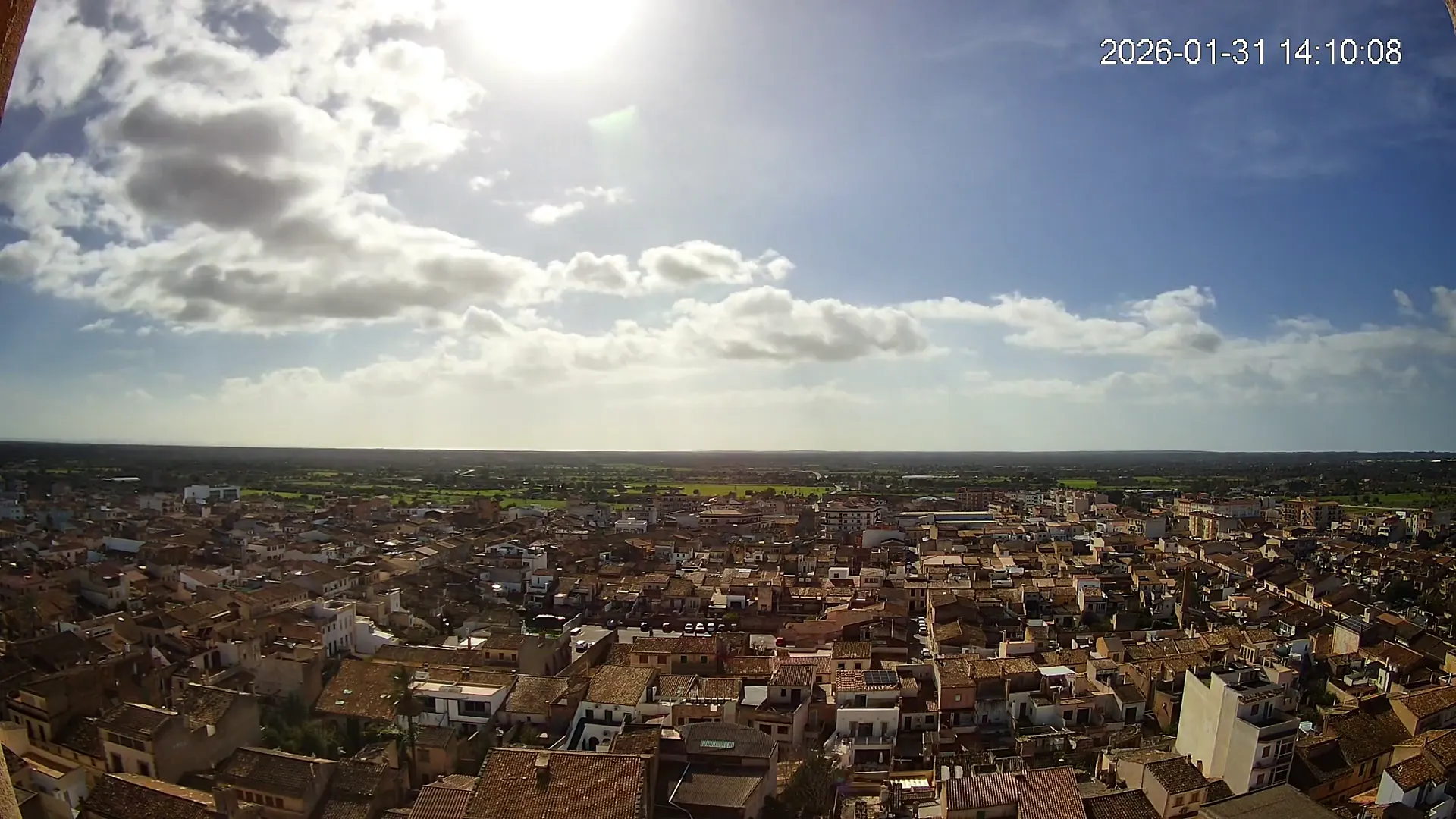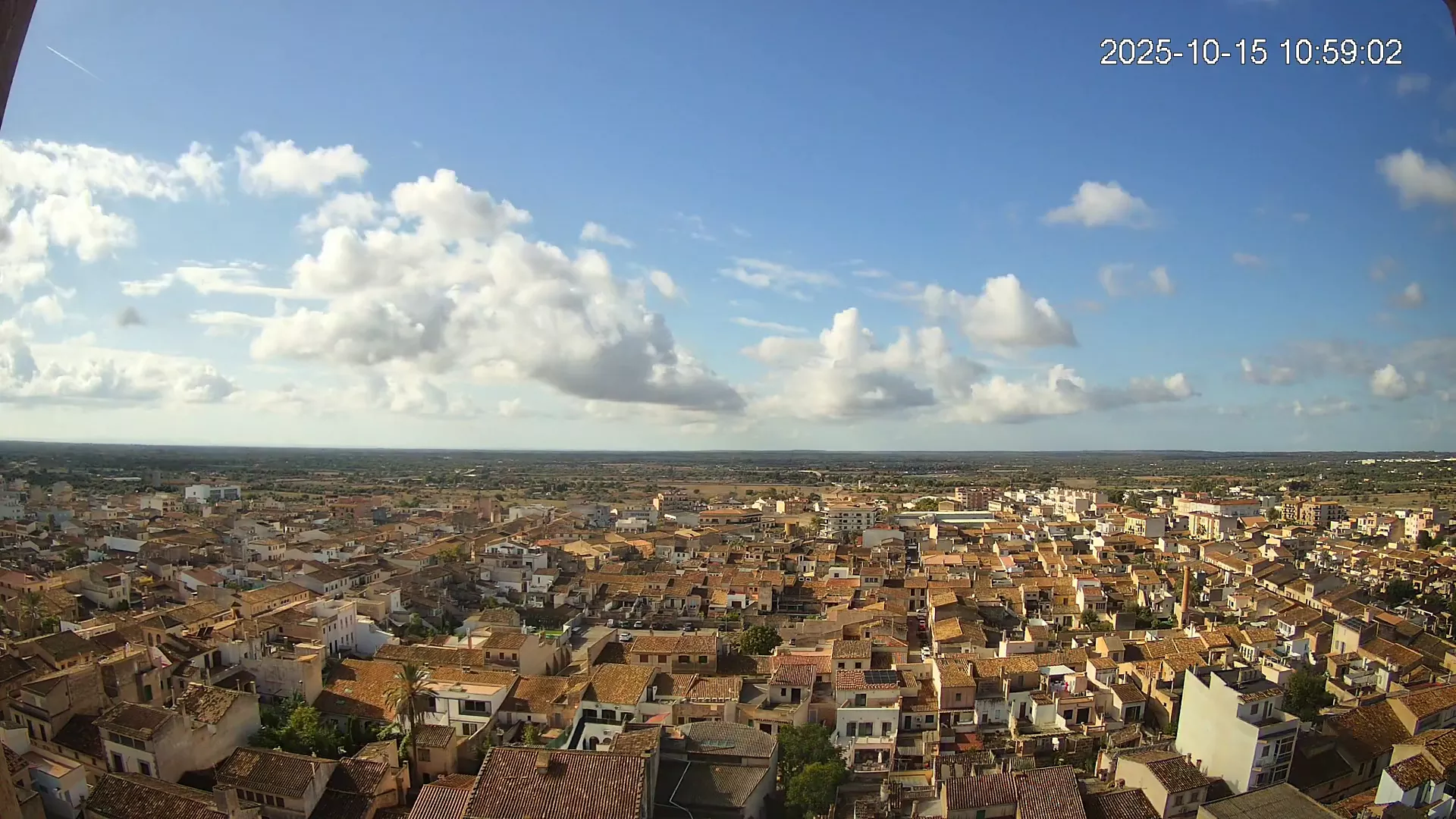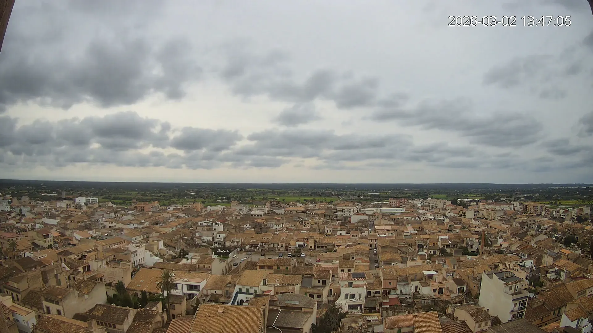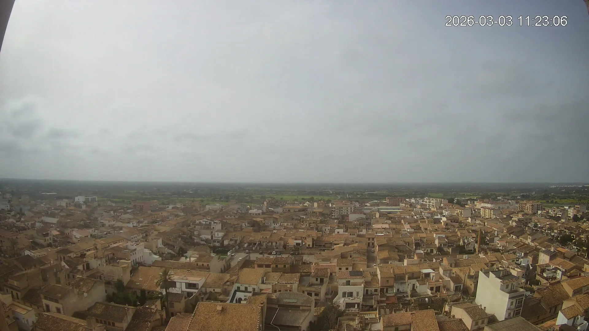 Vista panorámica desde la iglesia de Llucmajor, ofreciendo una perspectiva única del encantador pueblo mallorquín. Desde este punto elevado, se puede apreciar la belleza de las calles y edificios tradicionales, rodeados por el paisaje natural de la isla. La cámara captura la esencia de Llucmajor, permitiendo a quienes la miran disfrutar de la tranquilidad y el carácter histórico de este lugar, todo en tiempo real.