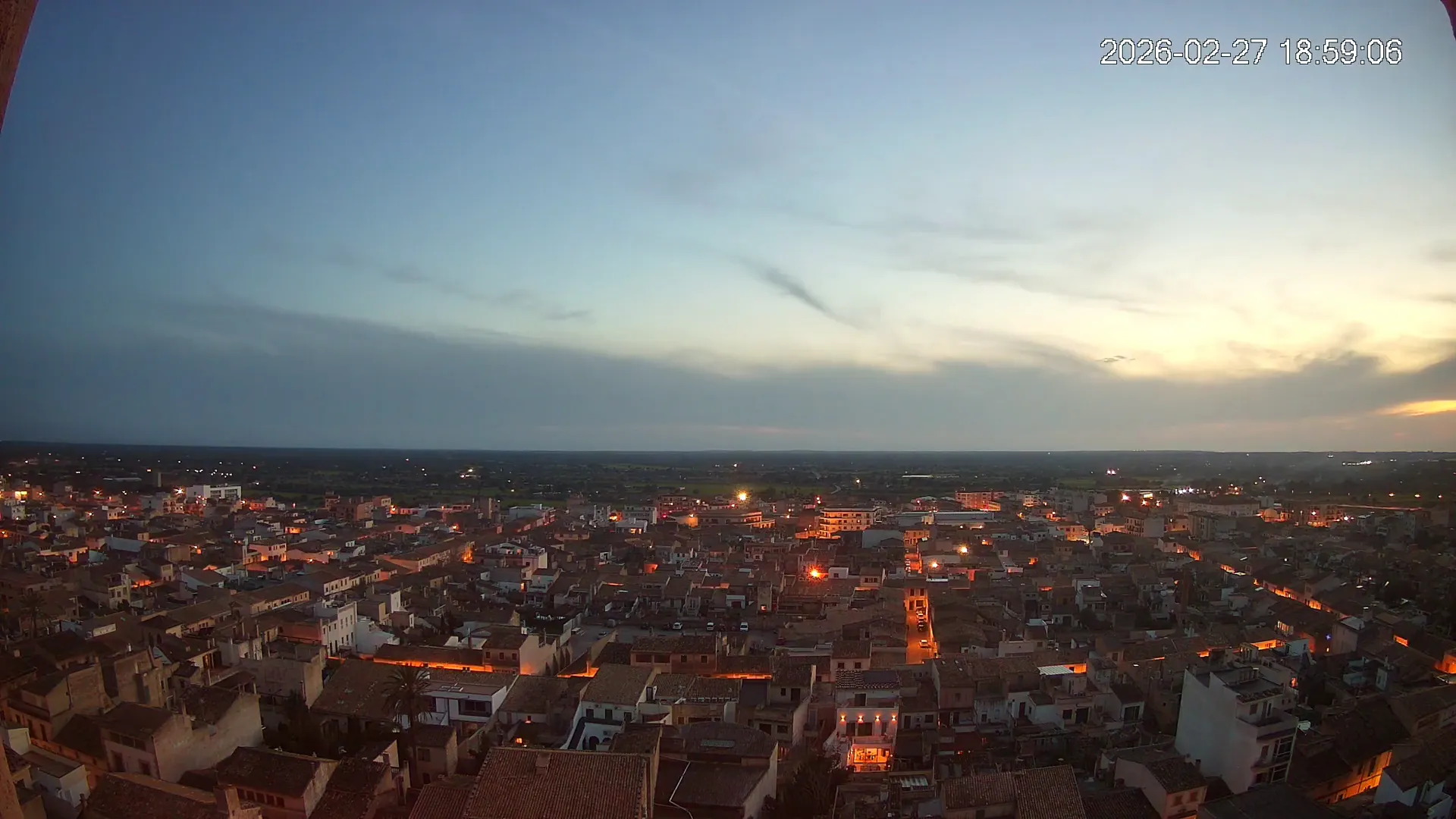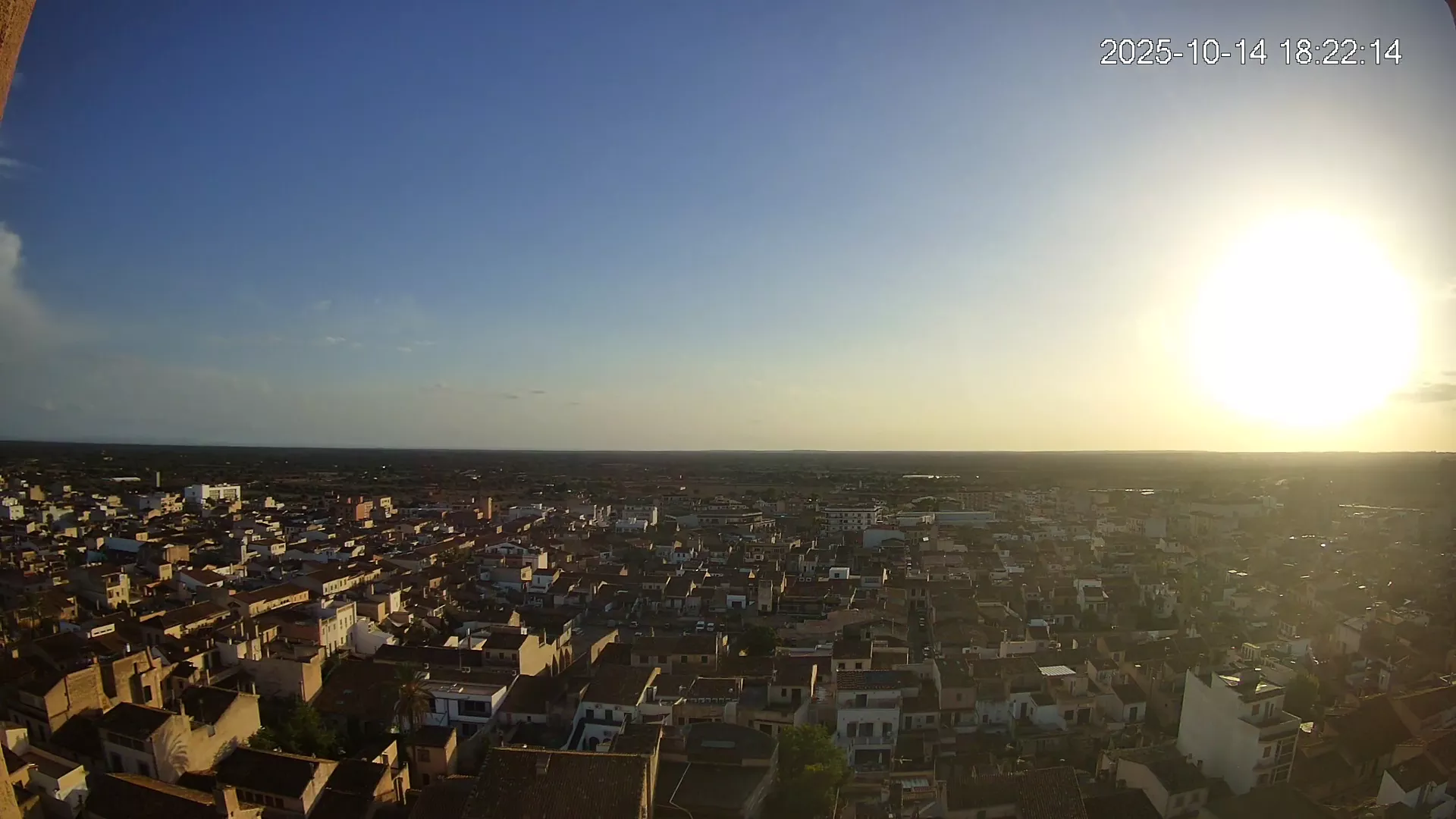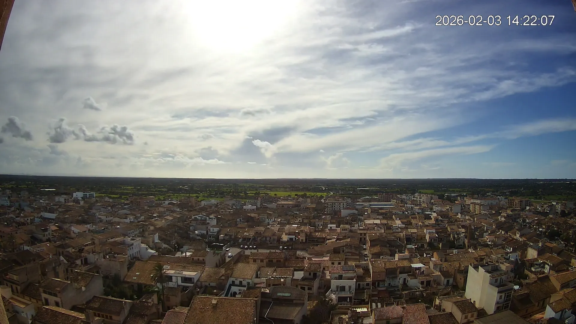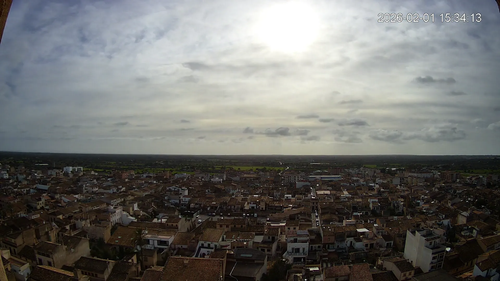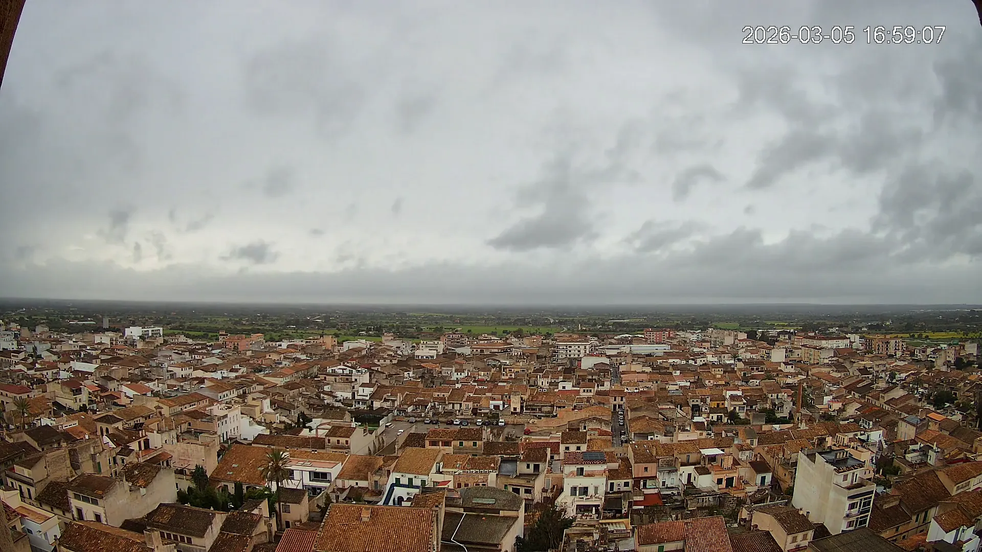 Vista panorámica desde la iglesia de Llucmajor, ofreciendo una perspectiva única del encantador pueblo mallorquín. Desde este punto elevado, se puede apreciar la belleza de las calles y edificios tradicionales, rodeados por el paisaje natural de la isla. La cámara captura la esencia de Llucmajor, permitiendo a quienes la miran disfrutar de la tranquilidad y el carácter histórico de este lugar, todo en tiempo real.