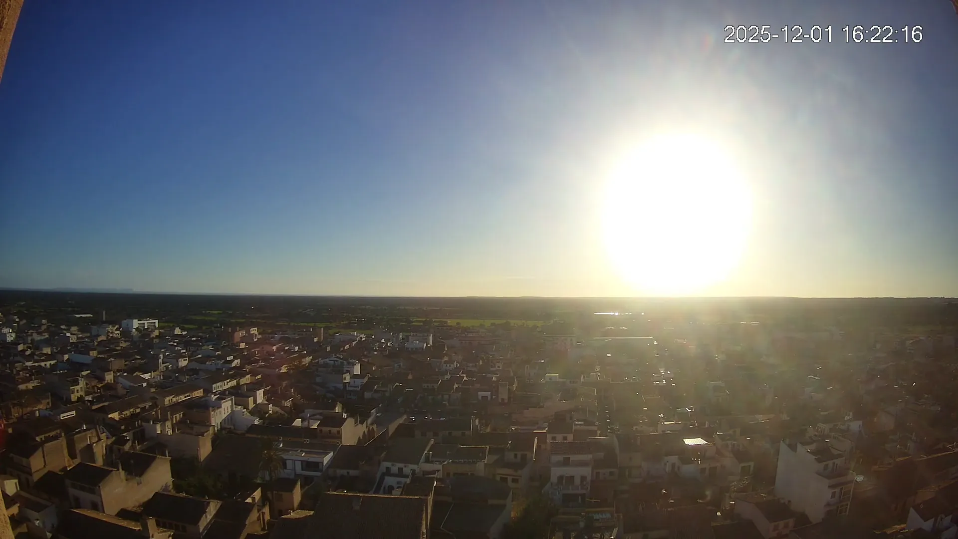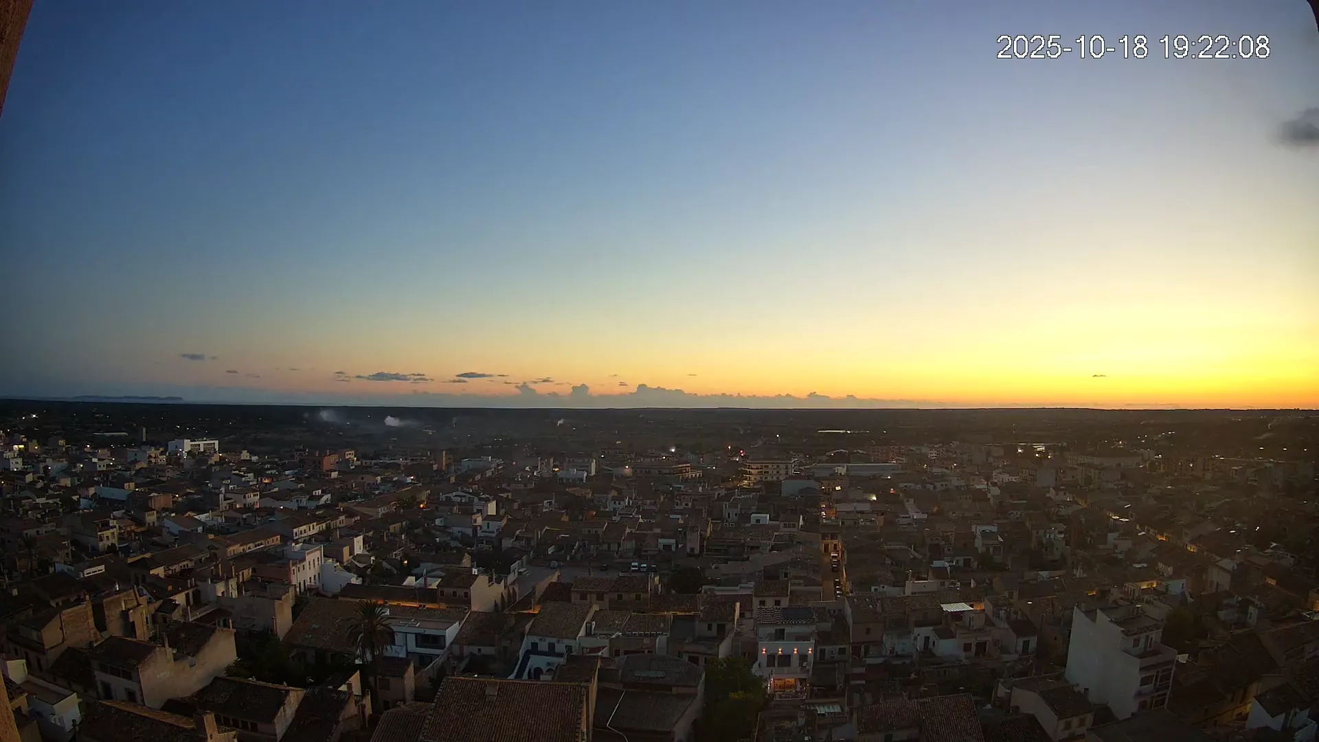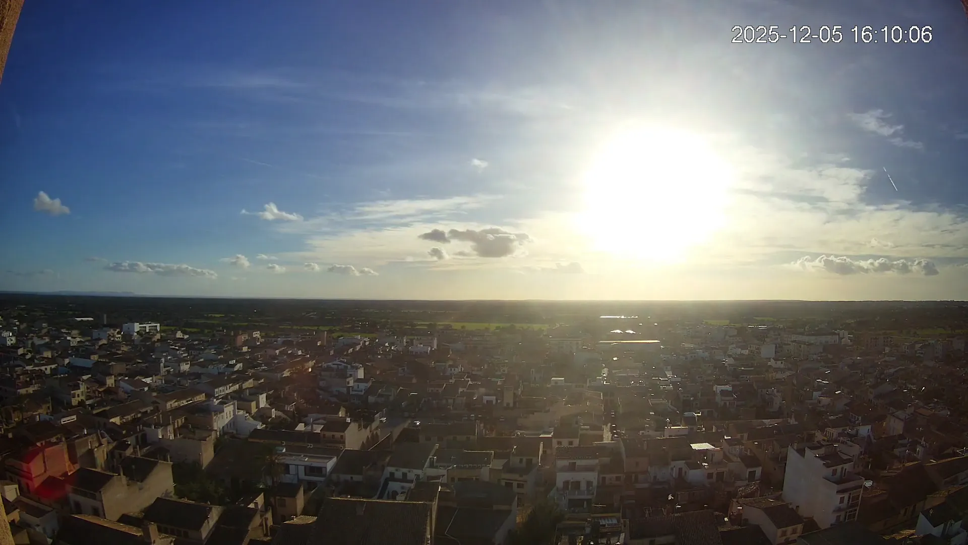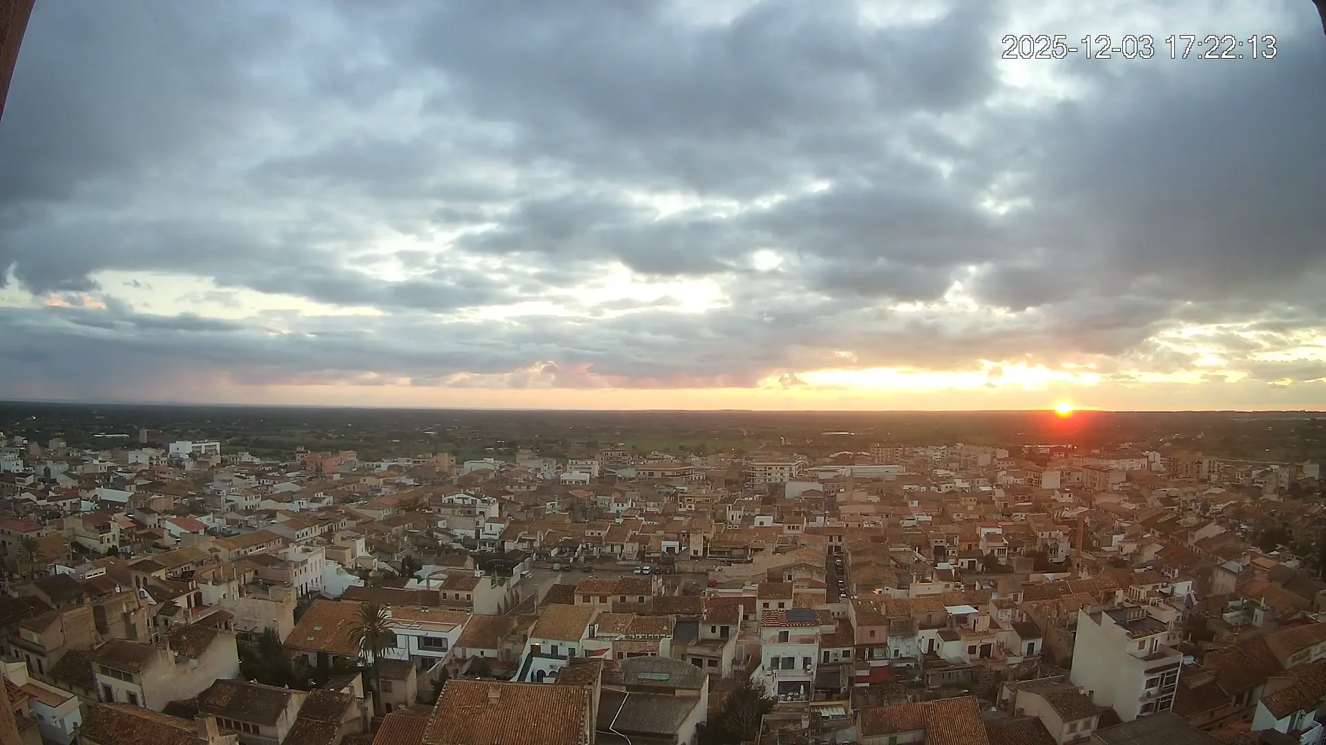 Vista panorámica desde la iglesia de Llucmajor, ofreciendo una perspectiva única del encantador pueblo mallorquín. Desde este punto elevado, se puede apreciar la belleza de las calles y edificios tradicionales, rodeados por el paisaje natural de la isla. La cámara captura la esencia de Llucmajor, permitiendo a quienes la miran disfrutar de la tranquilidad y el carácter histórico de este lugar, todo en tiempo real.