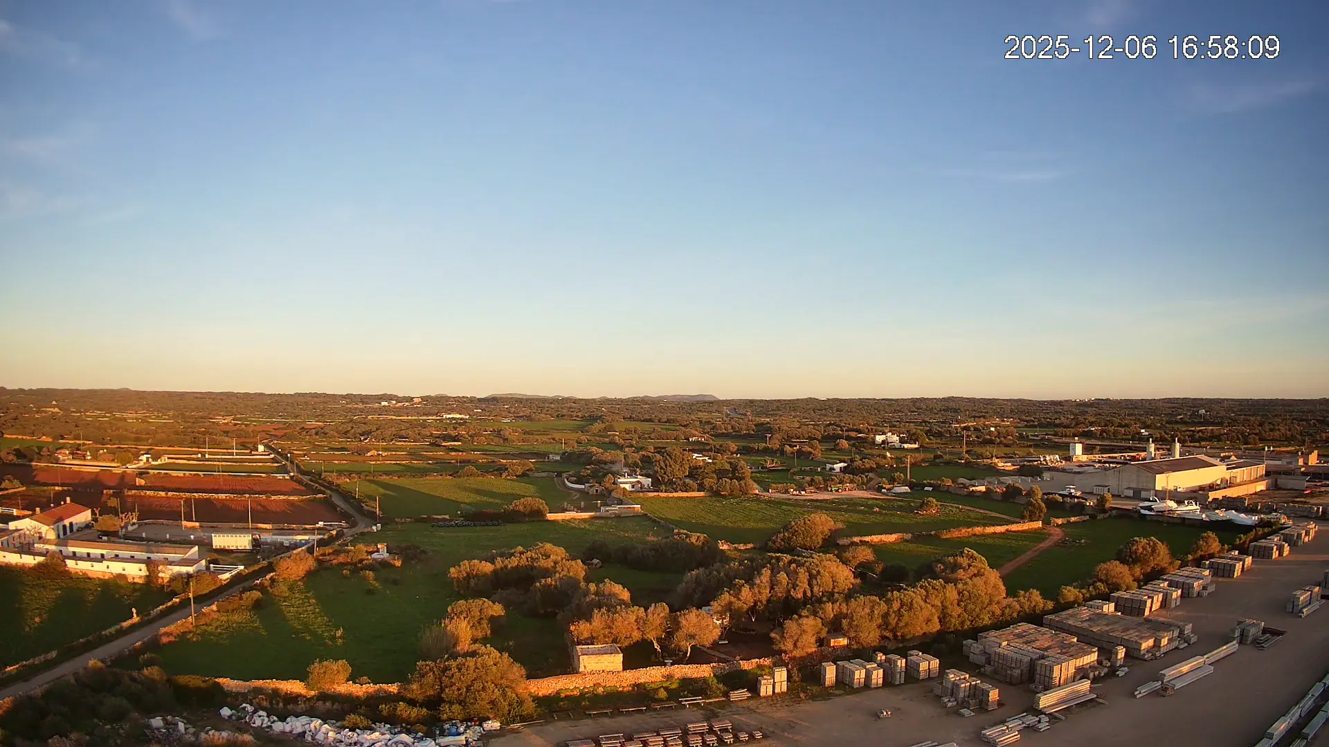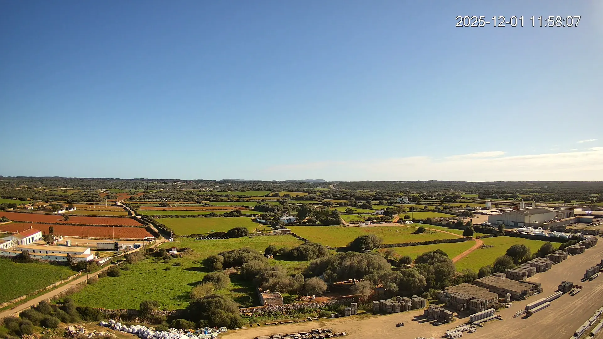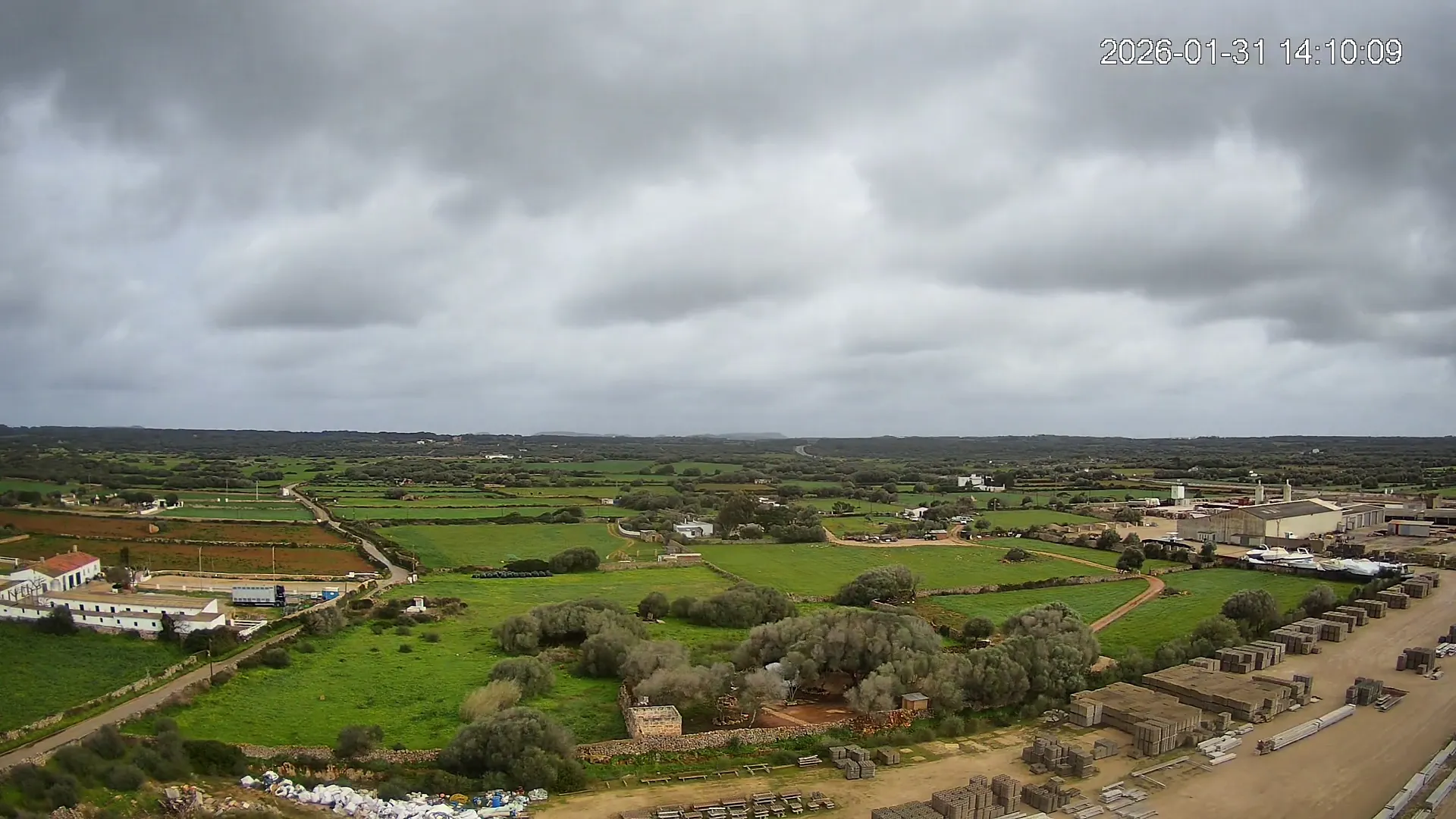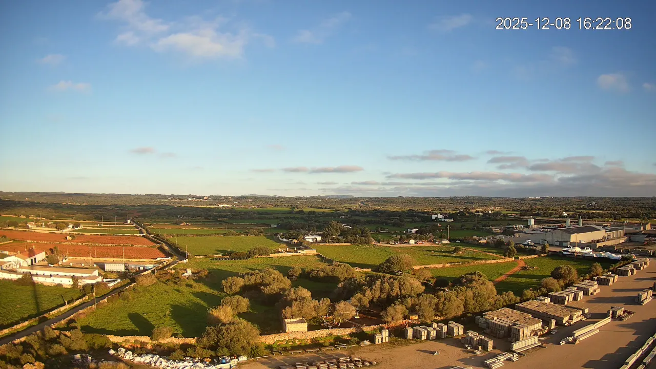 Desde Ciutadella, esta cámara se orienta hacia el este, ofreciendo una vista profunda del interior de Menorca. En el horizonte, se alza el Monte Toro, la cima más alta de la isla, destacando sobre el relieve suave del Pla. Una imagen que une el carácter urbano de Ciutadella con el corazón geográfico y simbólico de Menorca.
