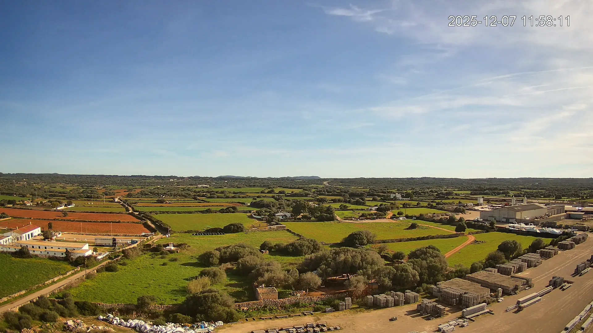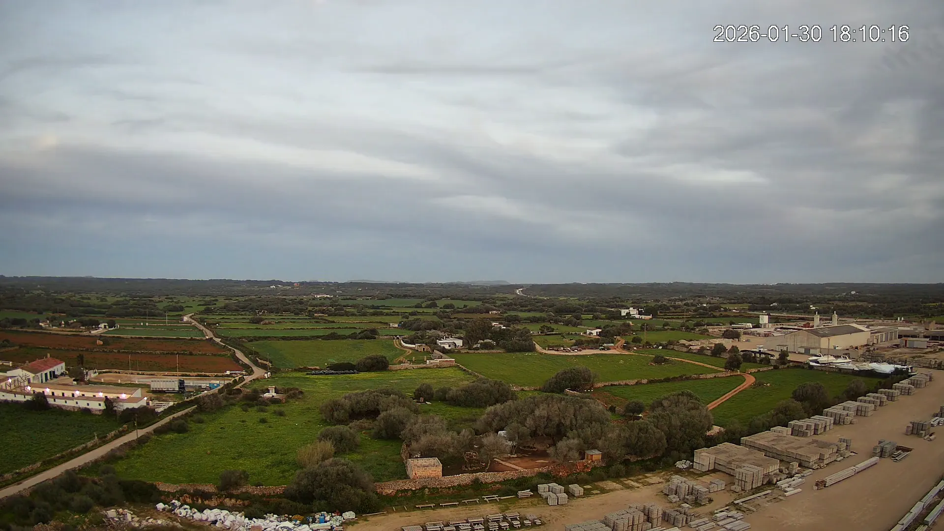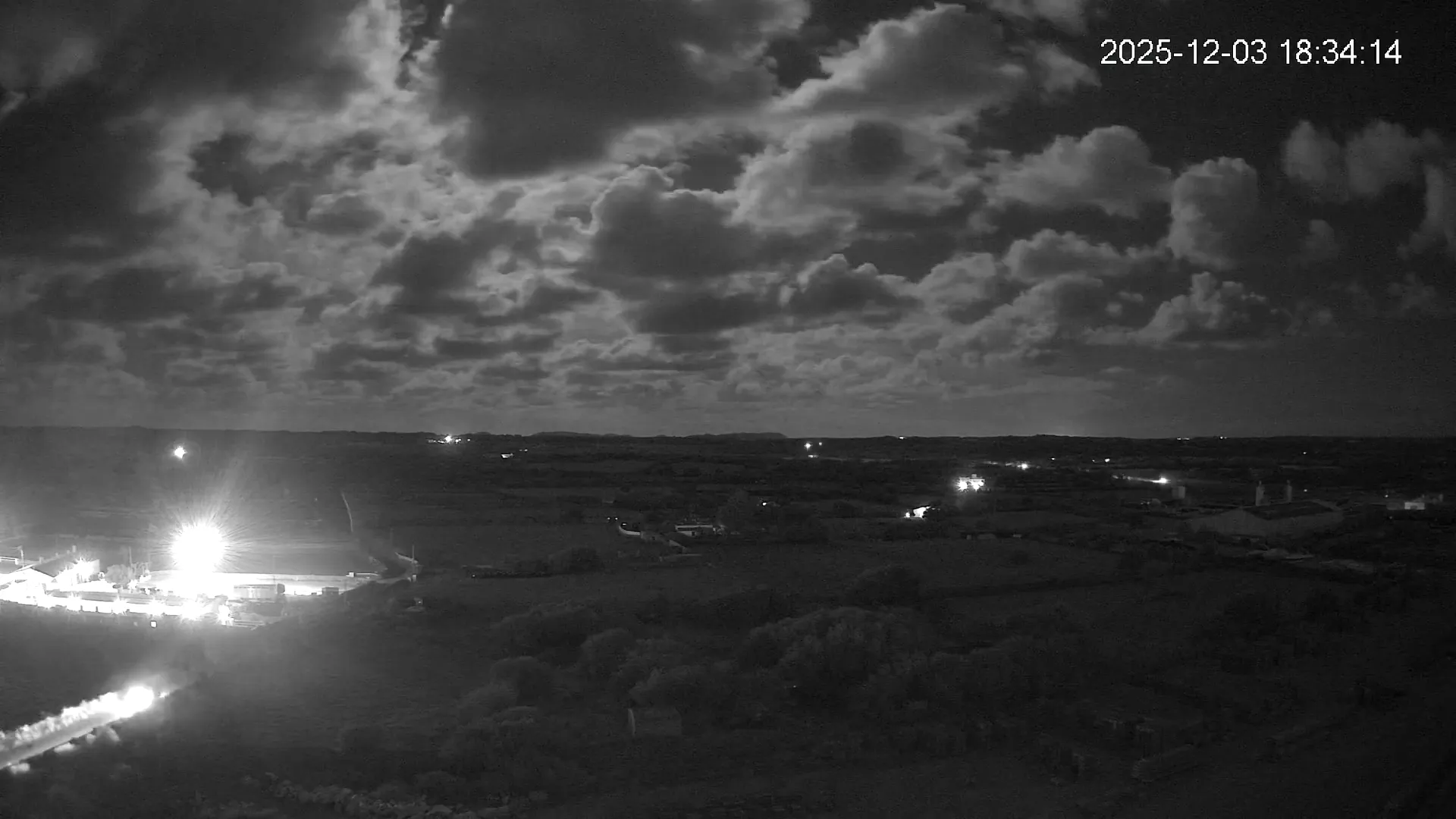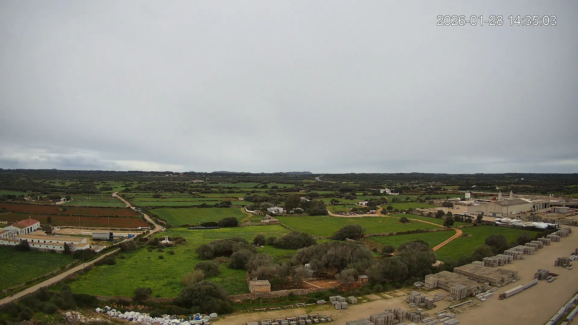 Desde Ciutadella, esta cámara se orienta hacia el este, ofreciendo una vista profunda del interior de Menorca. En el horizonte, se alza el Monte Toro, la cima más alta de la isla, destacando sobre el relieve suave del Pla. Una imagen que une el carácter urbano de Ciutadella con el corazón geográfico y simbólico de Menorca.