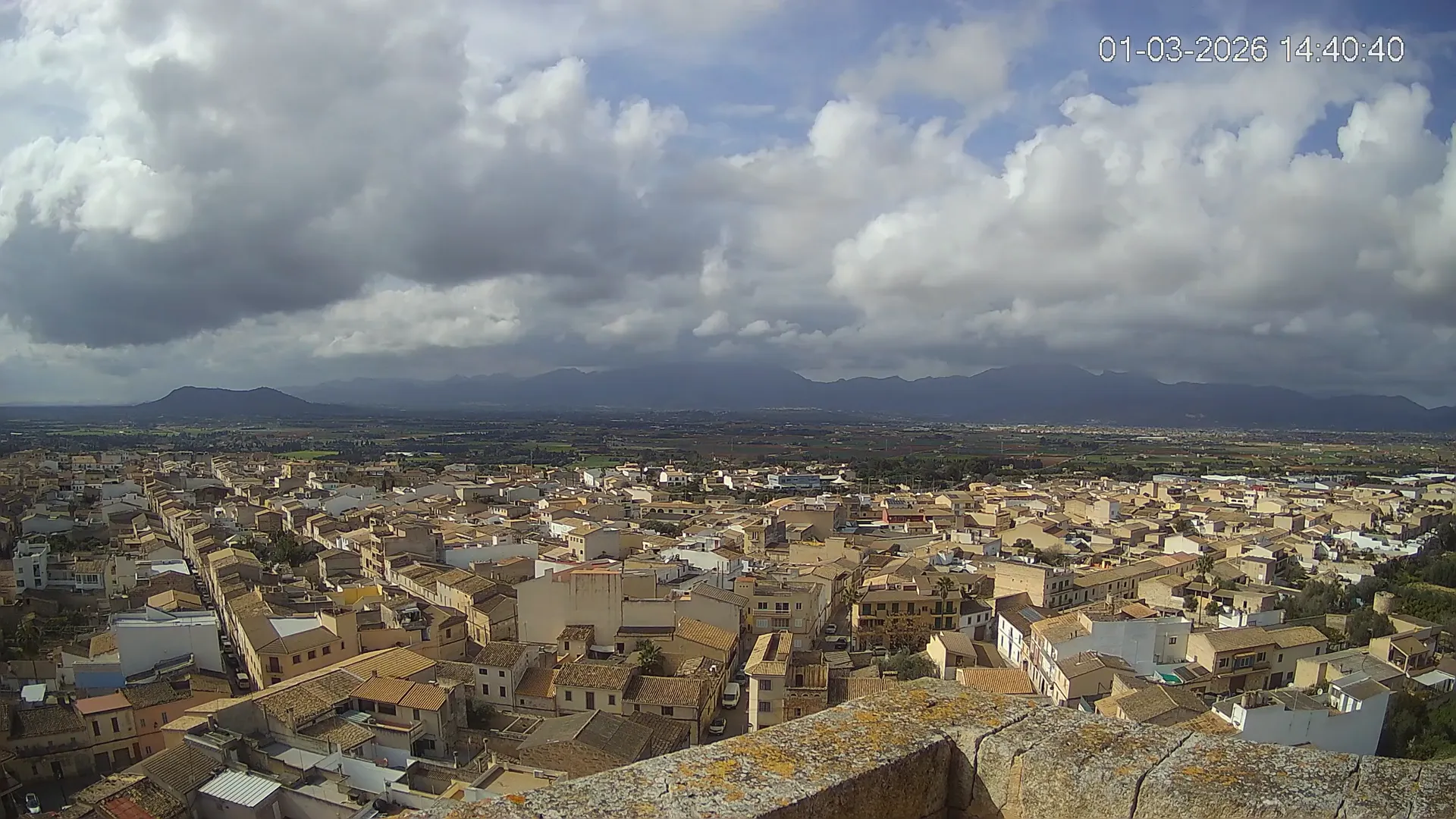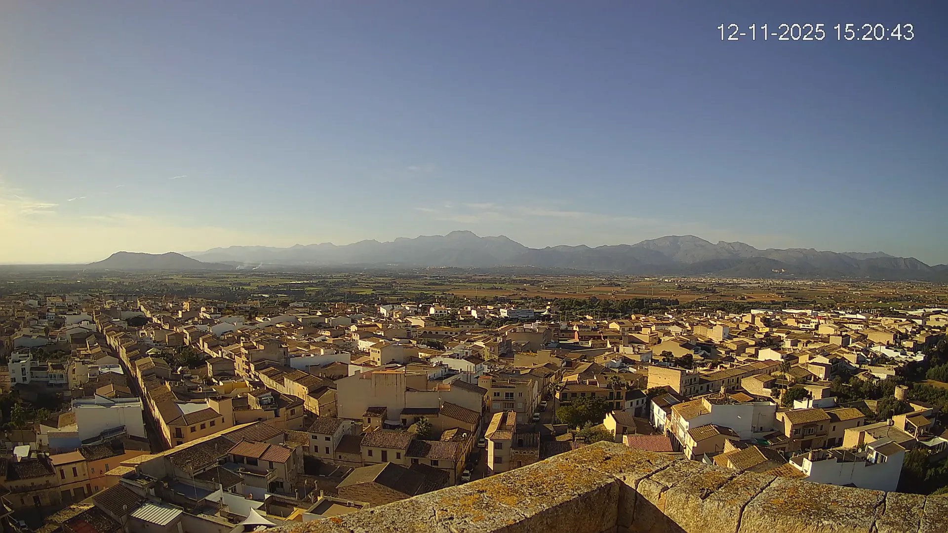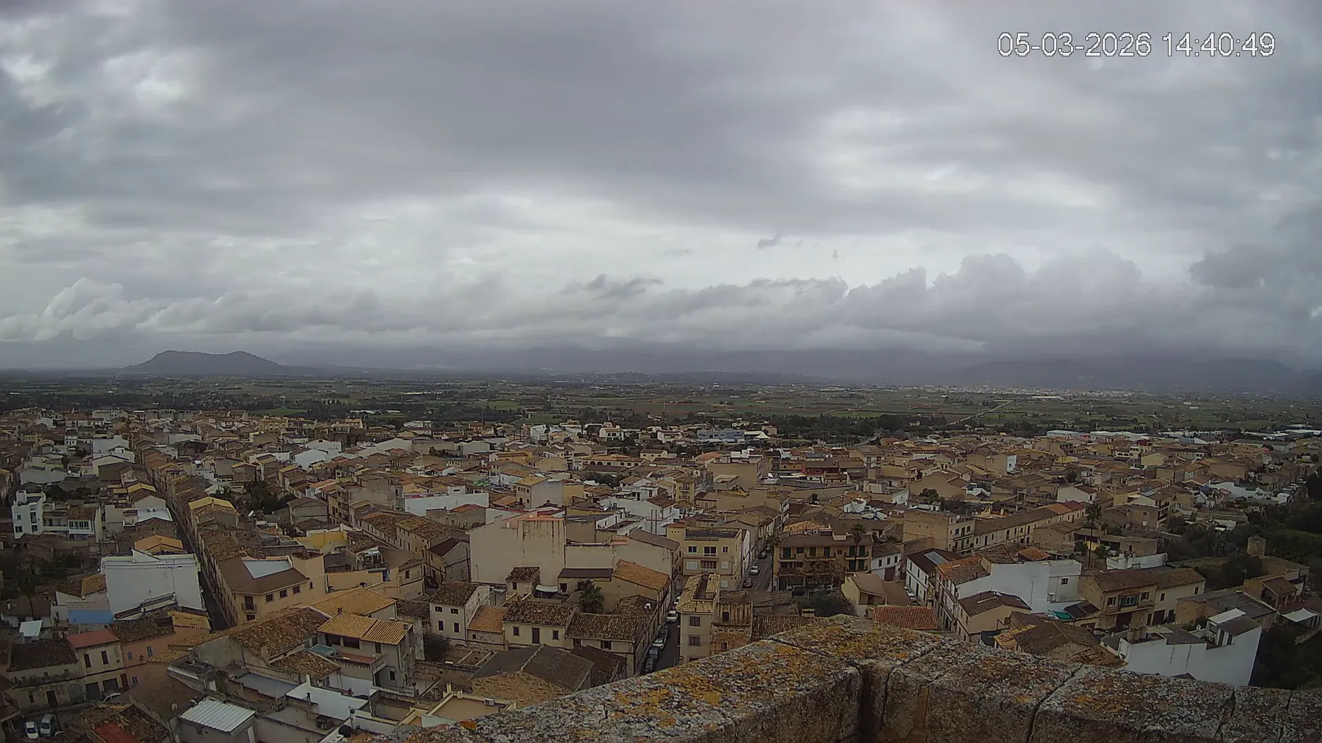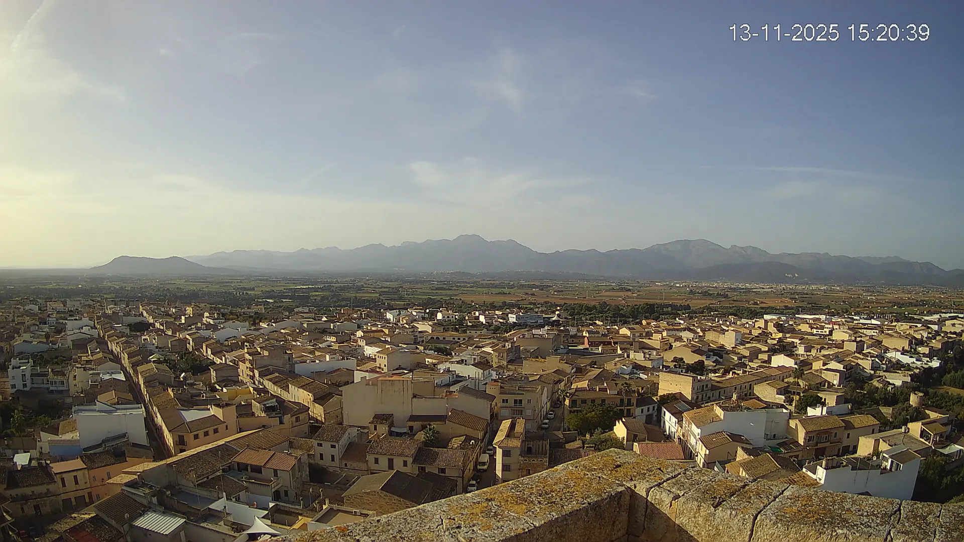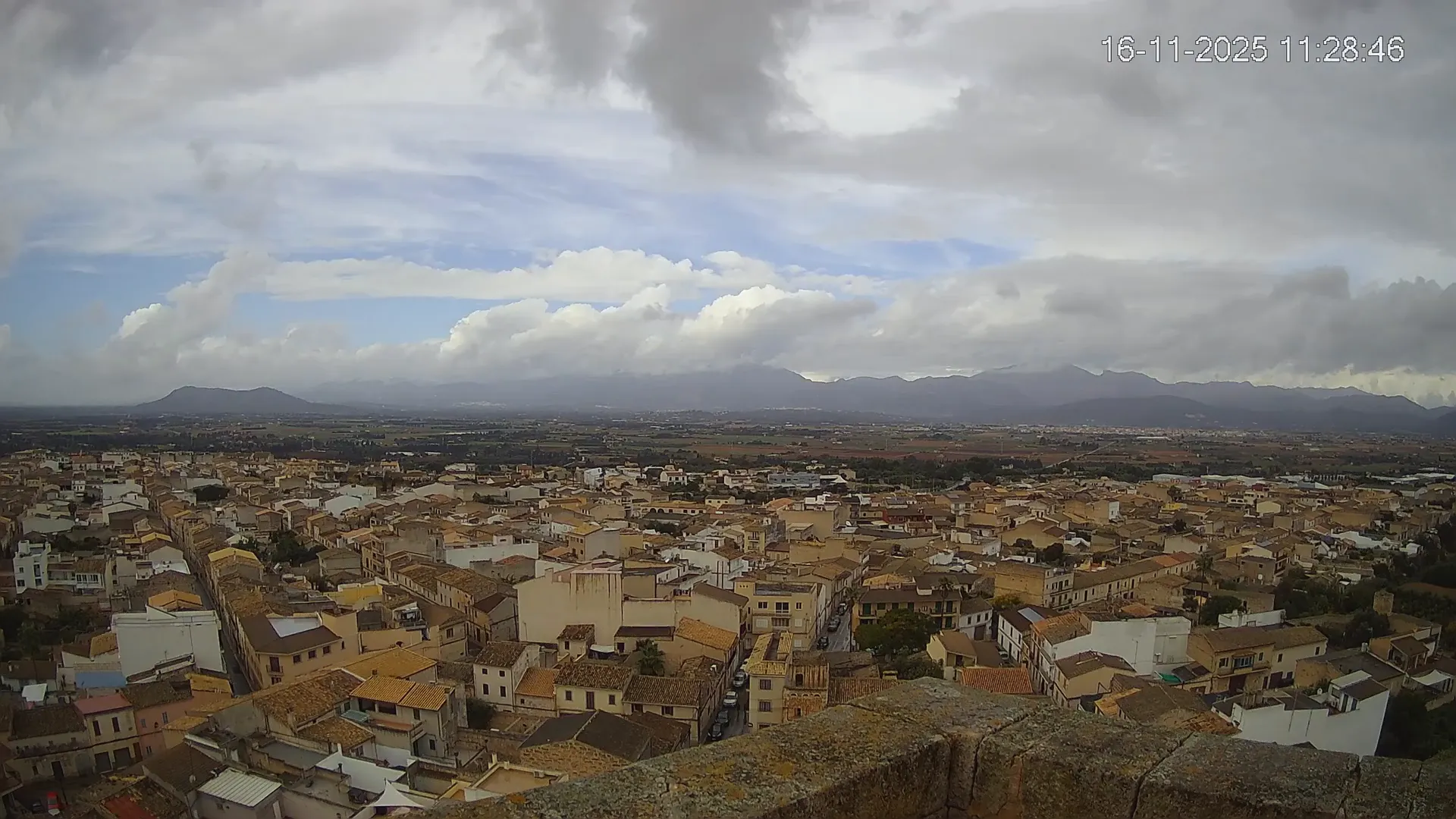 Conéctate en tiempo real y explora el municipio de Muro desde esta cámara ubicada en el corazón del pueblo. La imagen combina el núcleo urbano tradicional con sus calles y tejados, y al fondo, el paisaje agrícola típico del Pla de Mallorca, con amplios campos abiertos que se extienden hasta el horizonte. ¿Quieres ver cómo ha cambiado el entorno durante la semana? Accede a los timelapses de los últimos 7 días y descubre los amaneceres sobre los campos, los atardeceres dorando el horizonte y las variaciones meteorológicas que marcan el día a día. Ya sea para planificar una actividad al aire libre, conocer el estado del tiempo o simplemente disfrutar de las vistas de este pueblo mallorquín, esta cámara ofrece una mirada directa al corazón de Muro.