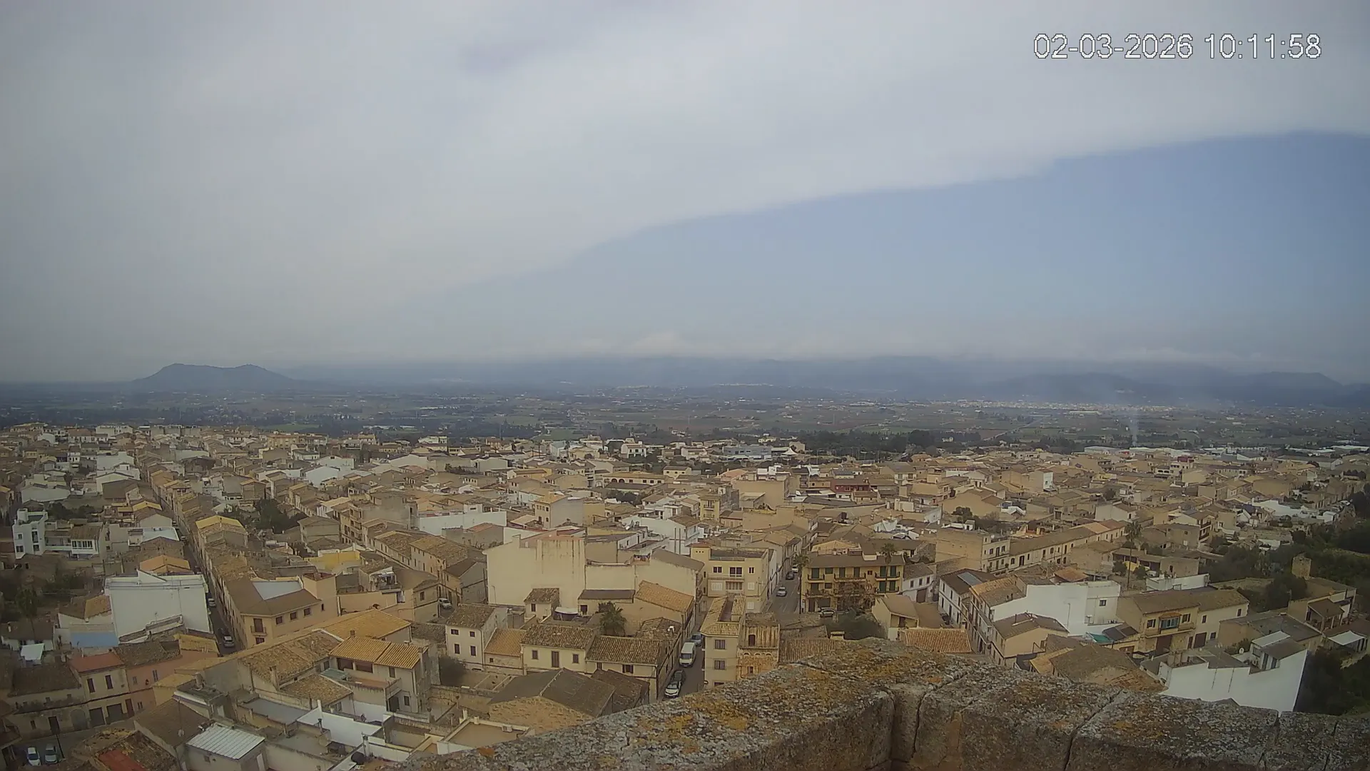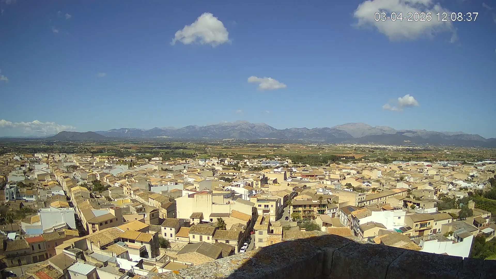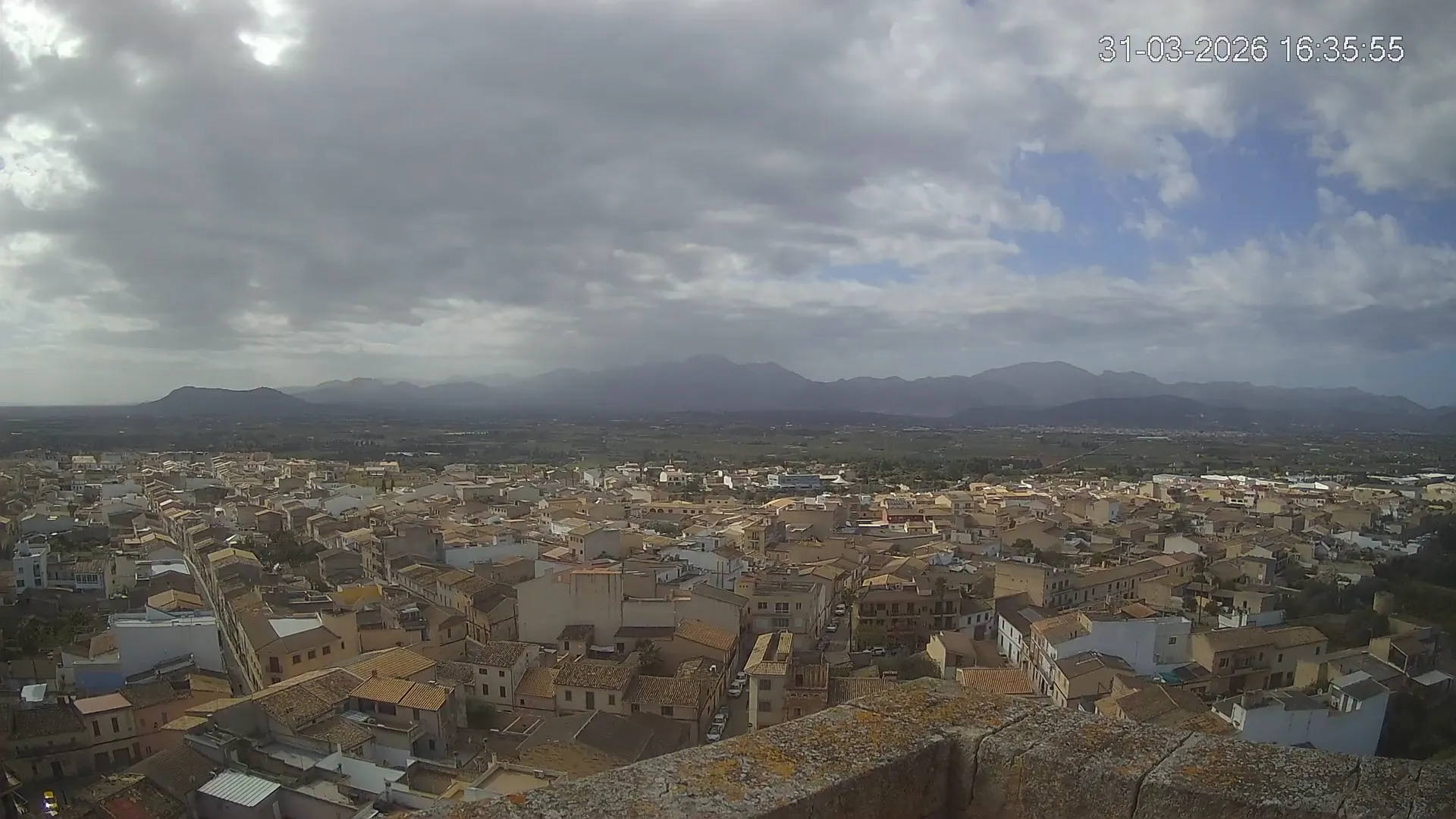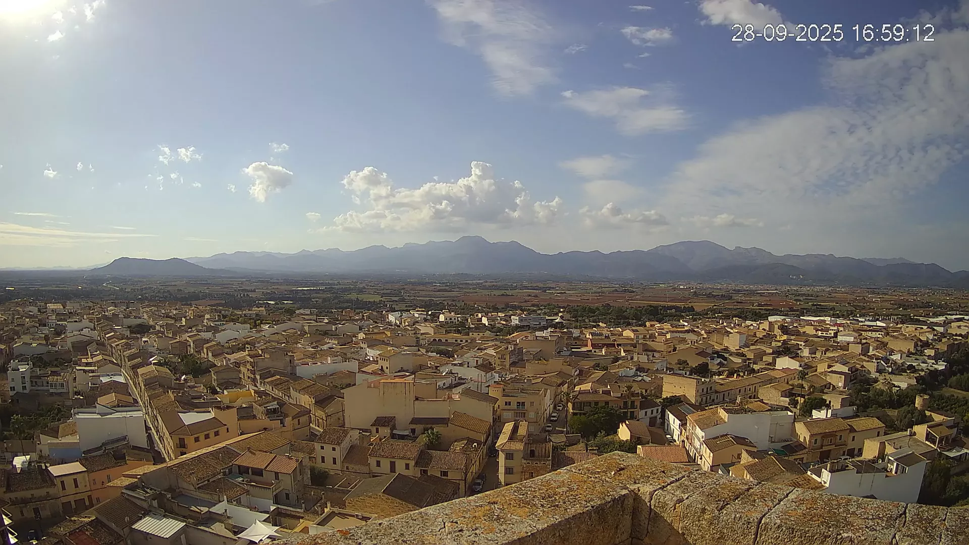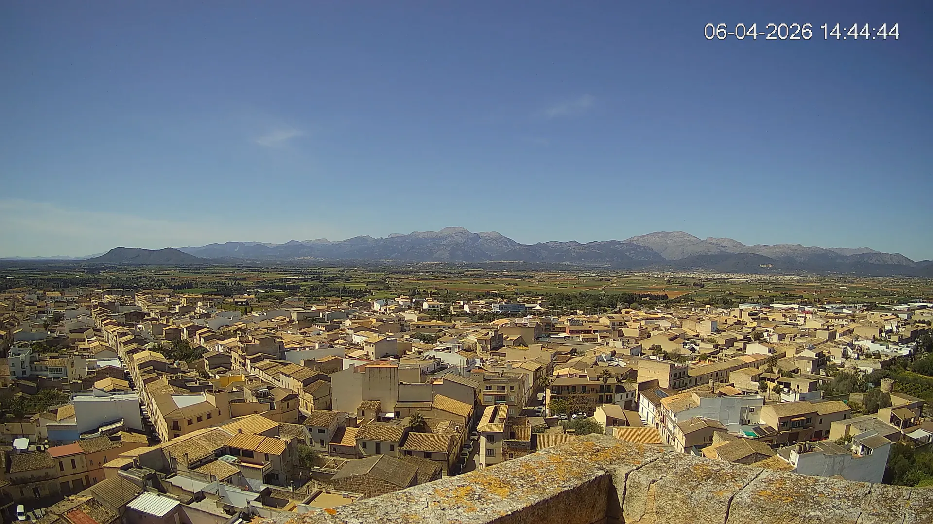Conéctate en tiempo real y explora el municipio de Muro desde esta cámara ubicada en el corazón del pueblo. La imagen combina el núcleo urbano tradicional con sus calles y tejados, y al fondo, el paisaje agrícola típico del Pla de Mallorca, con amplios campos abiertos que se extienden hasta el horizonte. ¿Quieres ver cómo ha cambiado el entorno durante la semana? Accede a los timelapses de los últimos 7 días y descubre los amaneceres sobre los campos, los atardeceres dorando el horizonte y las variaciones meteorológicas que marcan el día a día. Ya sea para planificar una actividad al aire libre, conocer el estado del tiempo o simplemente disfrutar de las vistas de este pueblo mallorquín, esta cámara ofrece una mirada directa al corazón de Muro.