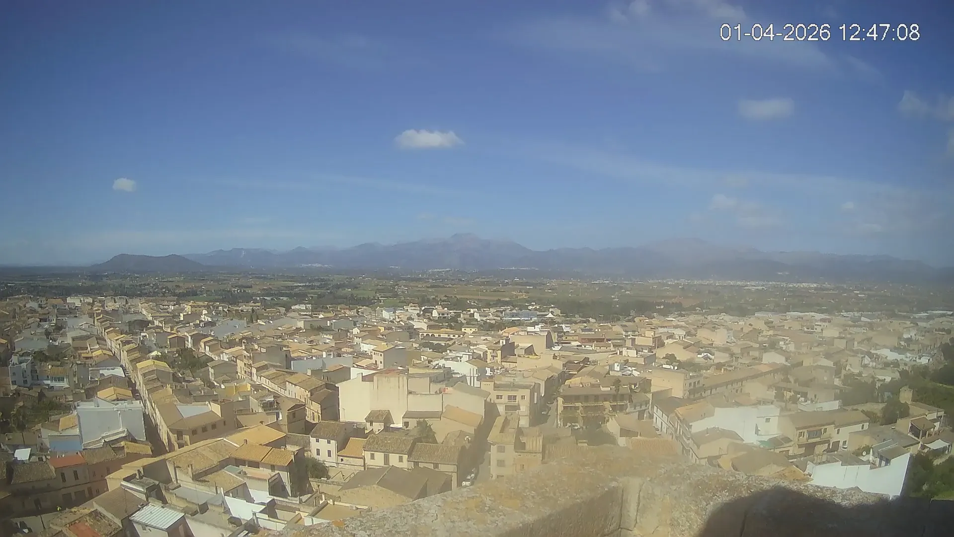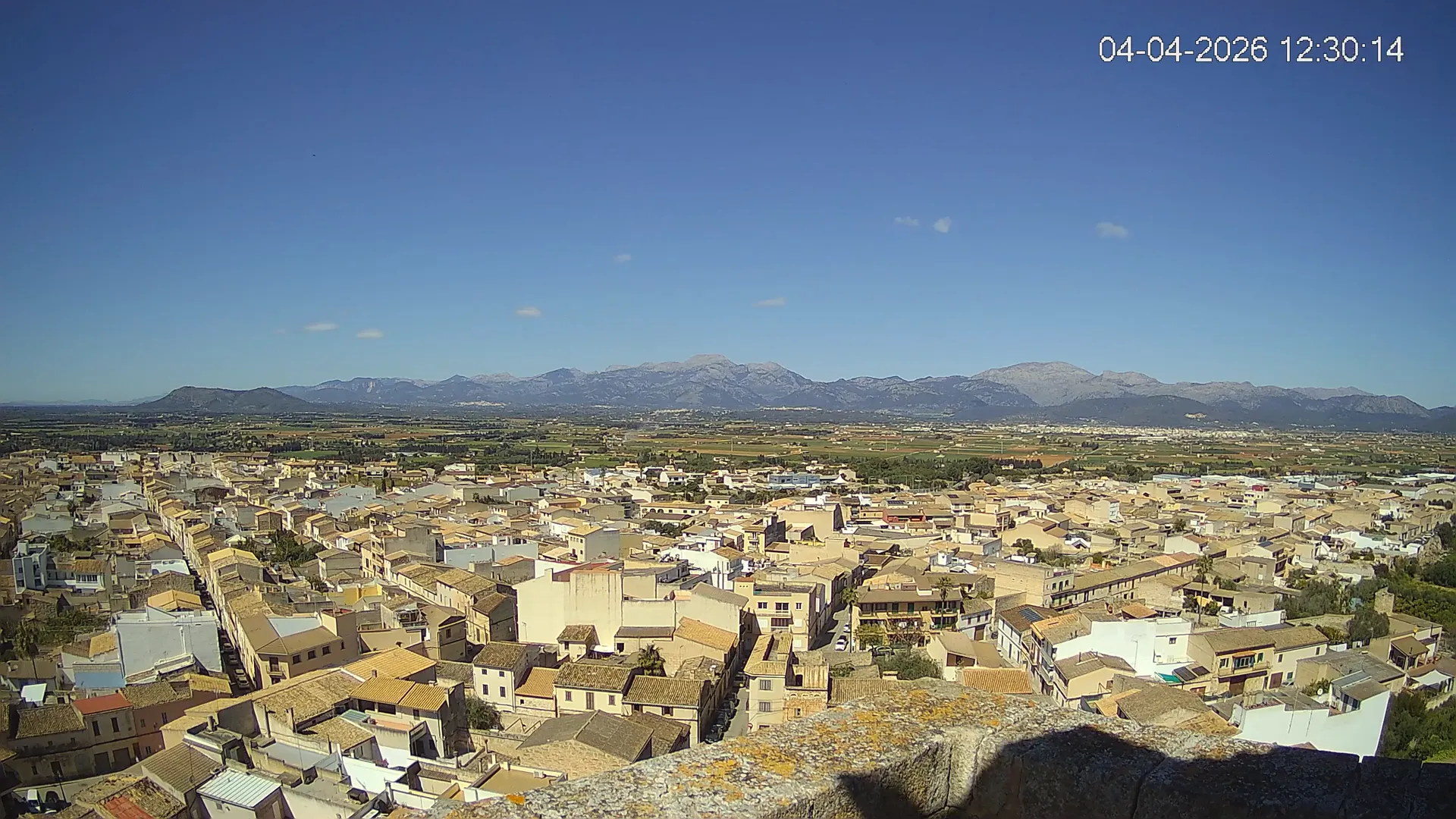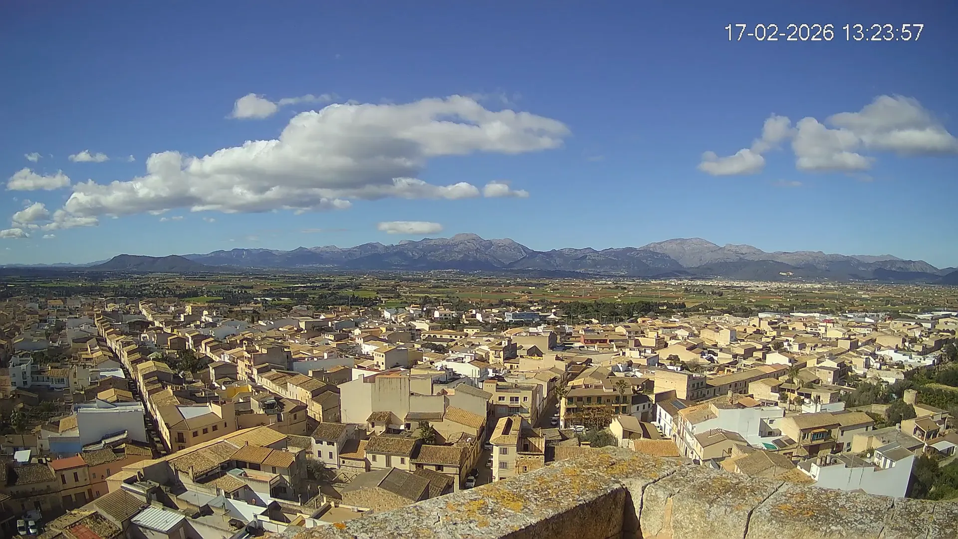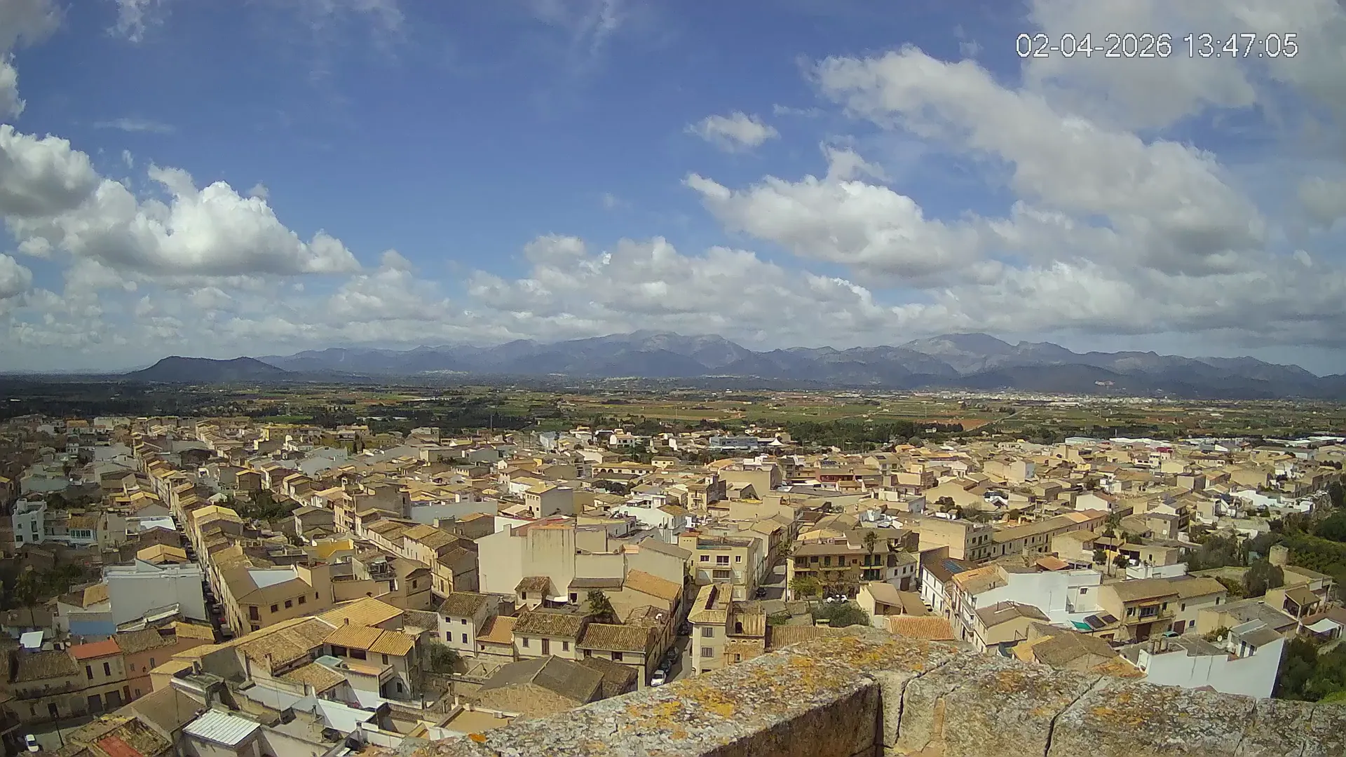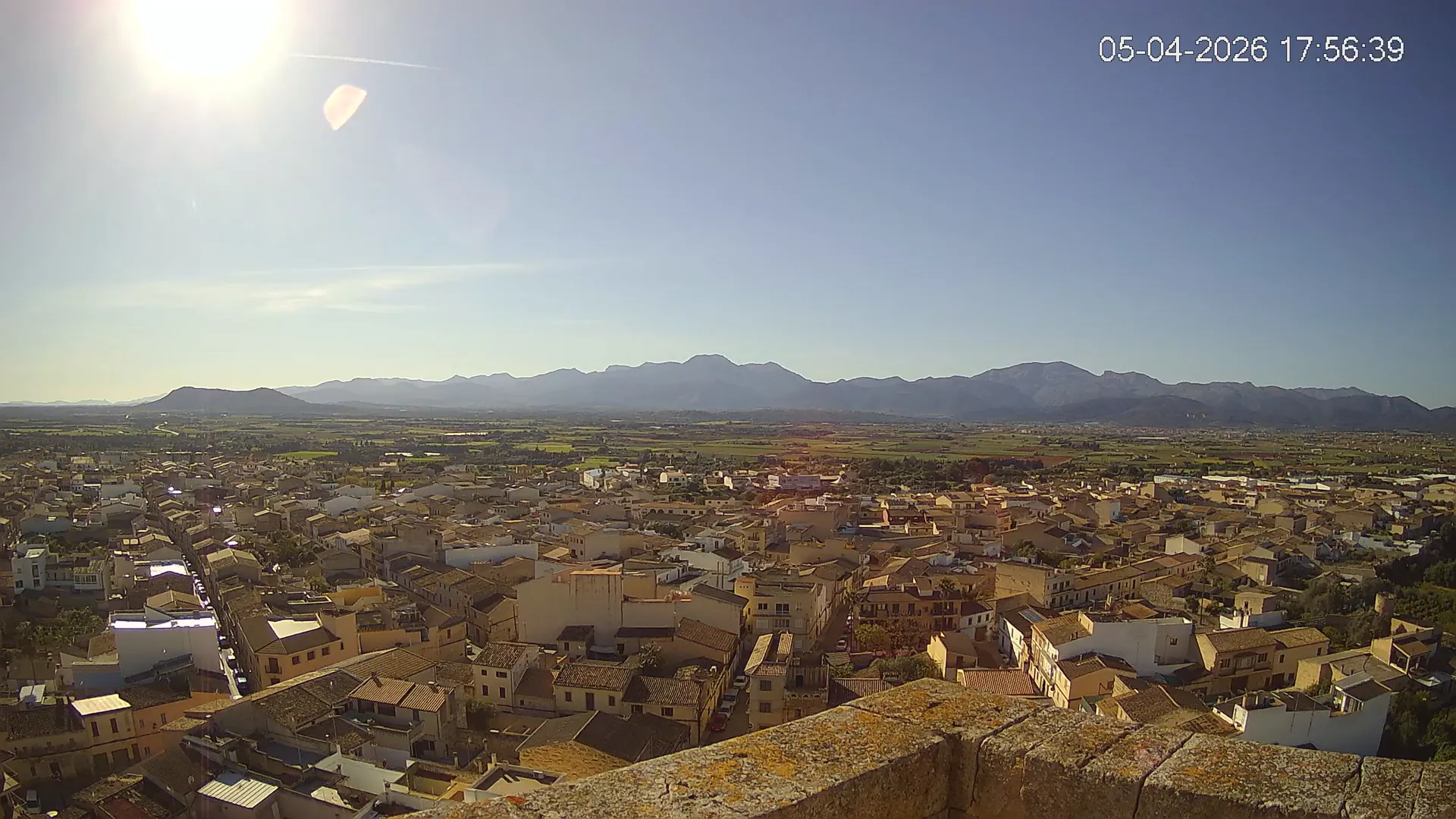 Conéctate en tiempo real y explora el municipio de Muro desde esta cámara ubicada en el corazón del pueblo. La imagen combina el núcleo urbano tradicional con sus calles y tejados, y al fondo, el paisaje agrícola típico del Pla de Mallorca, con amplios campos abiertos que se extienden hasta el horizonte. ¿Quieres ver cómo ha cambiado el entorno durante la semana? Accede a los timelapses de los últimos 7 días y descubre los amaneceres sobre los campos, los atardeceres dorando el horizonte y las variaciones meteorológicas que marcan el día a día. Ya sea para planificar una actividad al aire libre, conocer el estado del tiempo o simplemente disfrutar de las vistas de este pueblo mallorquín, esta cámara ofrece una mirada directa al corazón de Muro.