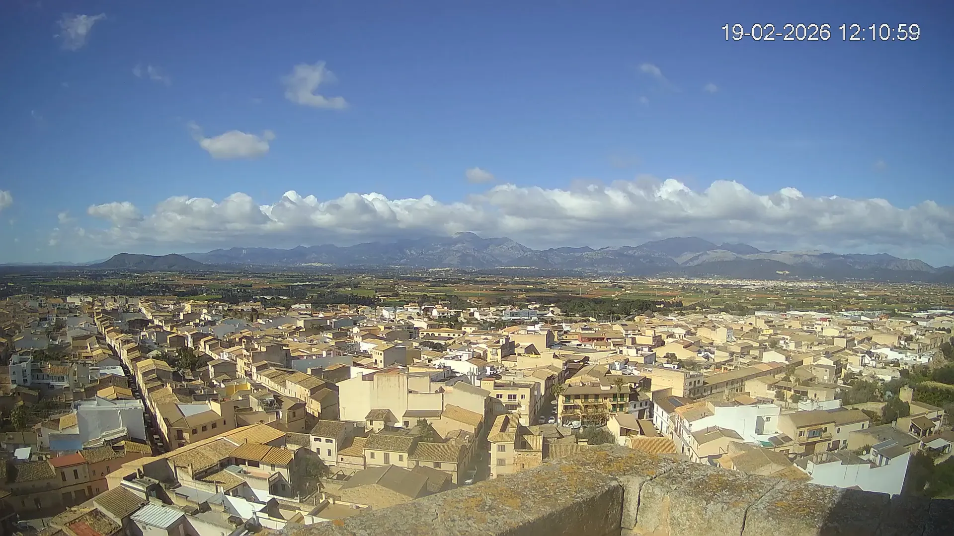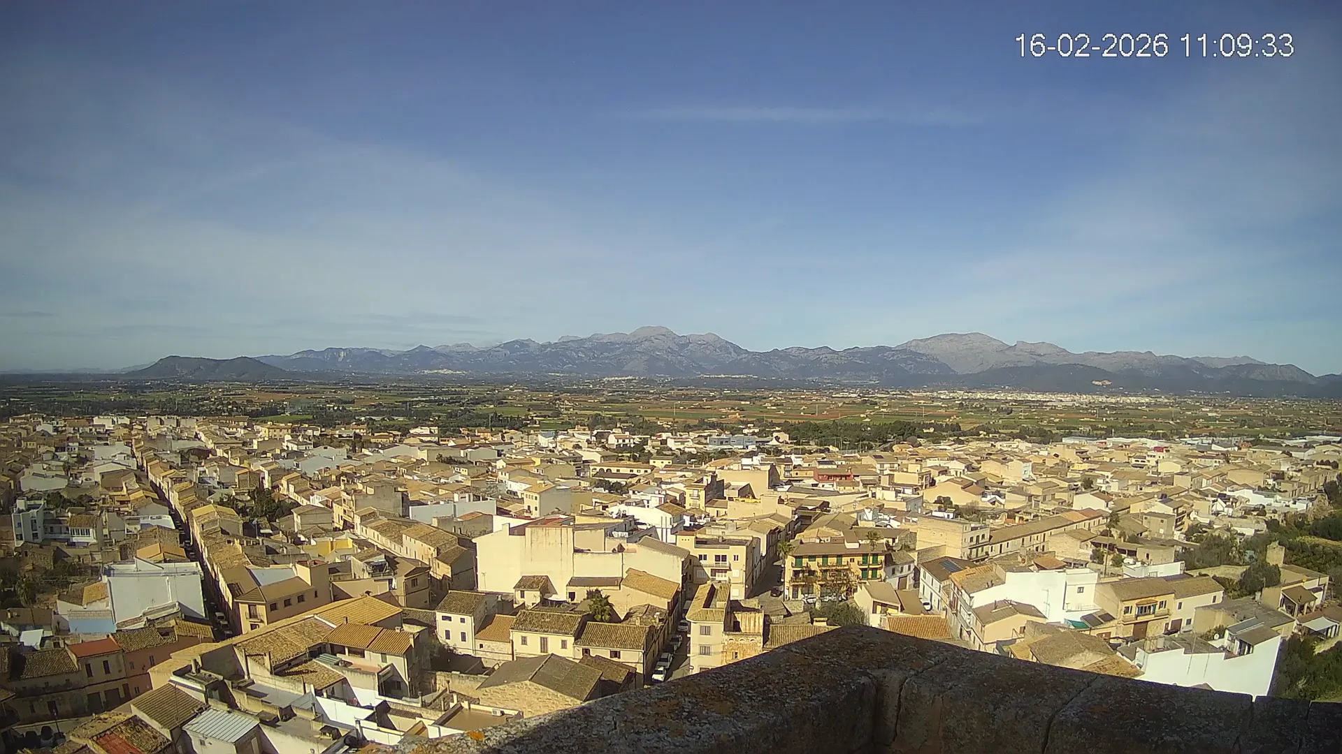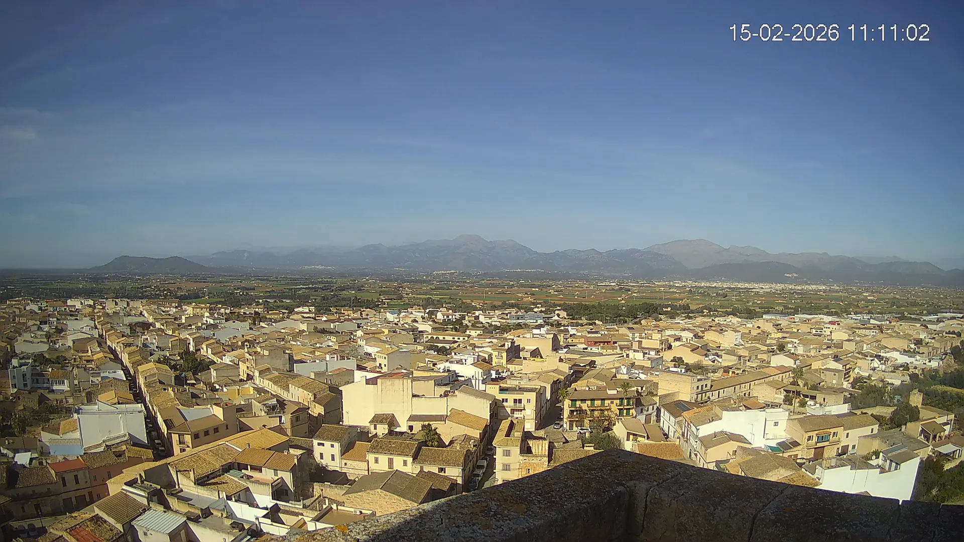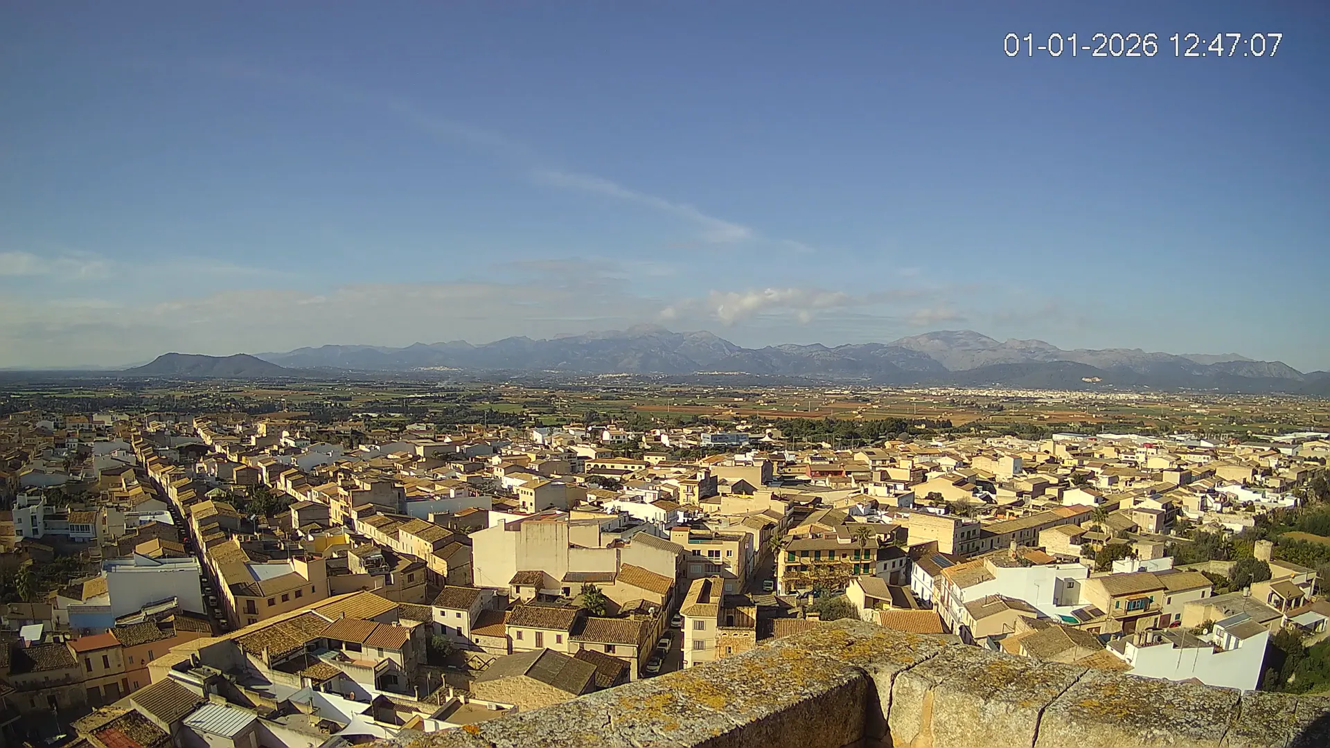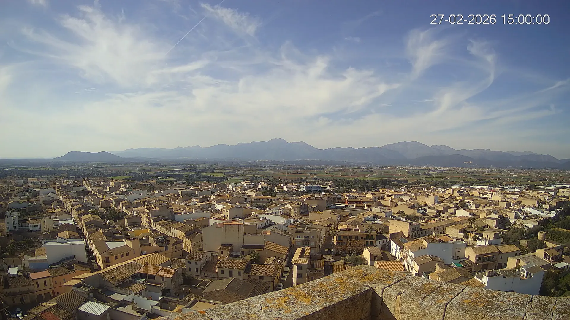 Conéctate en tiempo real y explora el municipio de Muro desde esta cámara ubicada en el corazón del pueblo. La imagen combina el núcleo urbano tradicional con sus calles y tejados, y al fondo, el paisaje agrícola típico del Pla de Mallorca, con amplios campos abiertos que se extienden hasta el horizonte. ¿Quieres ver cómo ha cambiado el entorno durante la semana? Accede a los timelapses de los últimos 7 días y descubre los amaneceres sobre los campos, los atardeceres dorando el horizonte y las variaciones meteorológicas que marcan el día a día. Ya sea para planificar una actividad al aire libre, conocer el estado del tiempo o simplemente disfrutar de las vistas de este pueblo mallorquín, esta cámara ofrece una mirada directa al corazón de Muro.