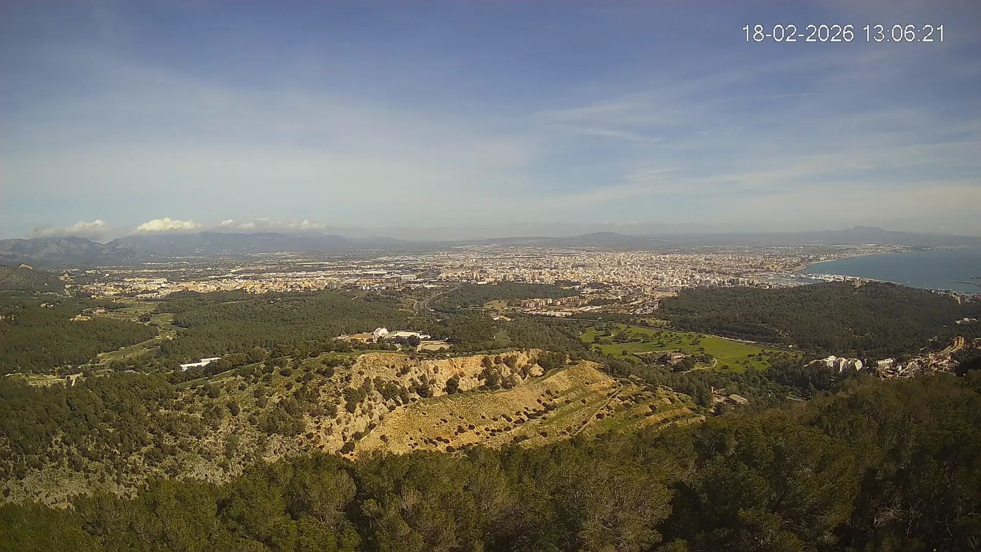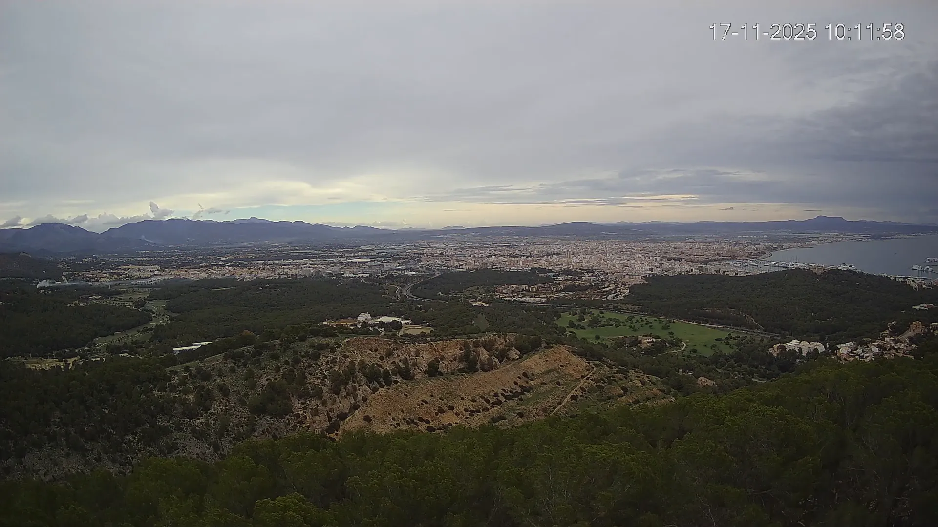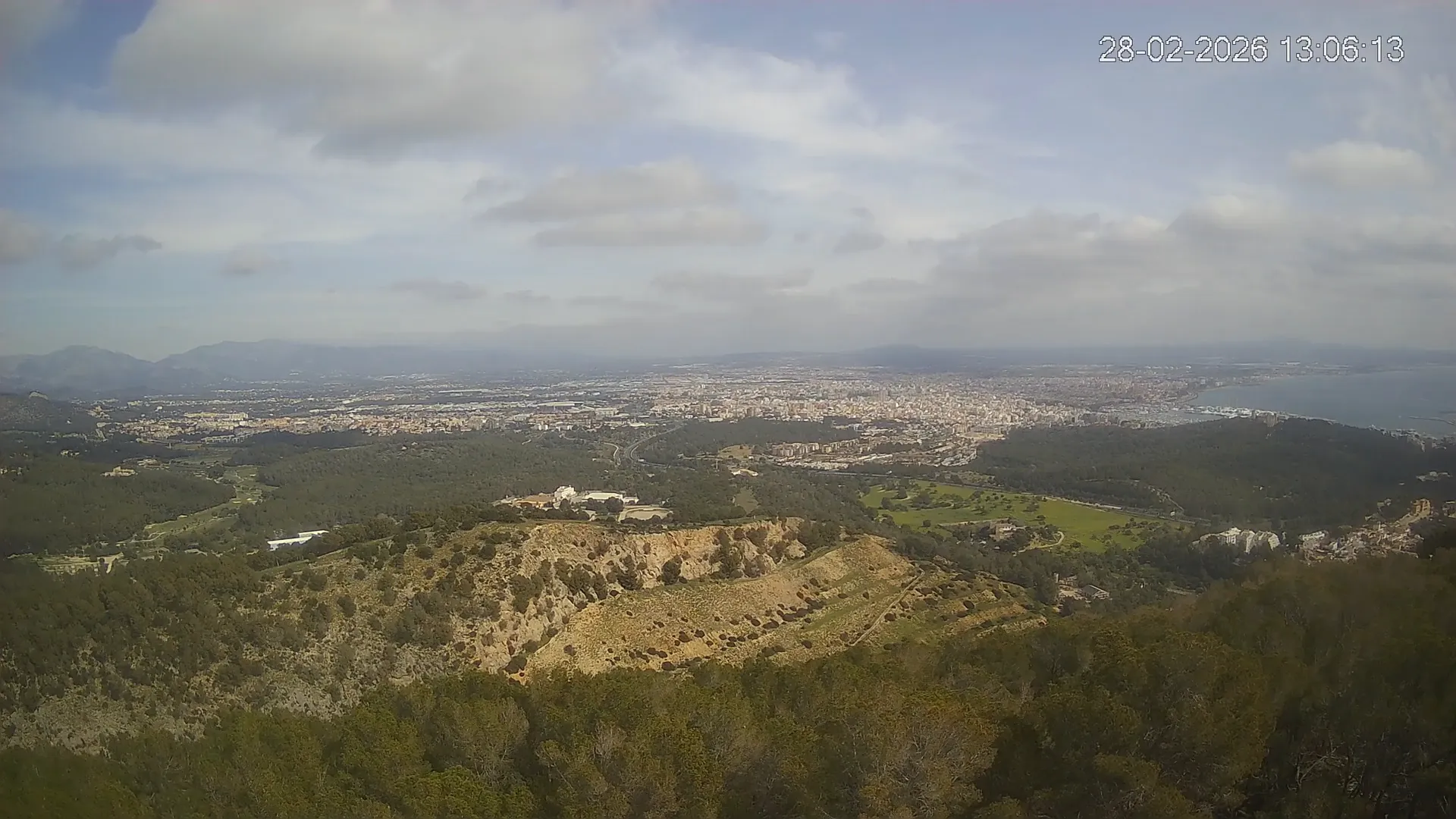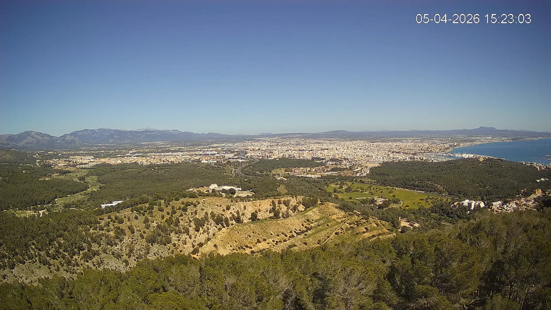 Desde esta cámara ubicada en Na Burguesa, puedes disfrutar de una vista panorámica en tiempo real de Palma de Mallorca, con la ciudad al frente, la Bahía de Palma y las montañas en el horizonte. Observa el estado del tiempo, la visibilidad y la evolución del día desde cualquier dispositivo. Además del streaming en vivo, accede a los timelapses de la última semana, donde puedes ver cómo cambia la ciudad desde el amanecer hasta el anochecer. Observa la luz del sol reflejándose en la bahía, los cambios meteorológicos y el encendido progresivo de la iluminación urbana al caer la noche.