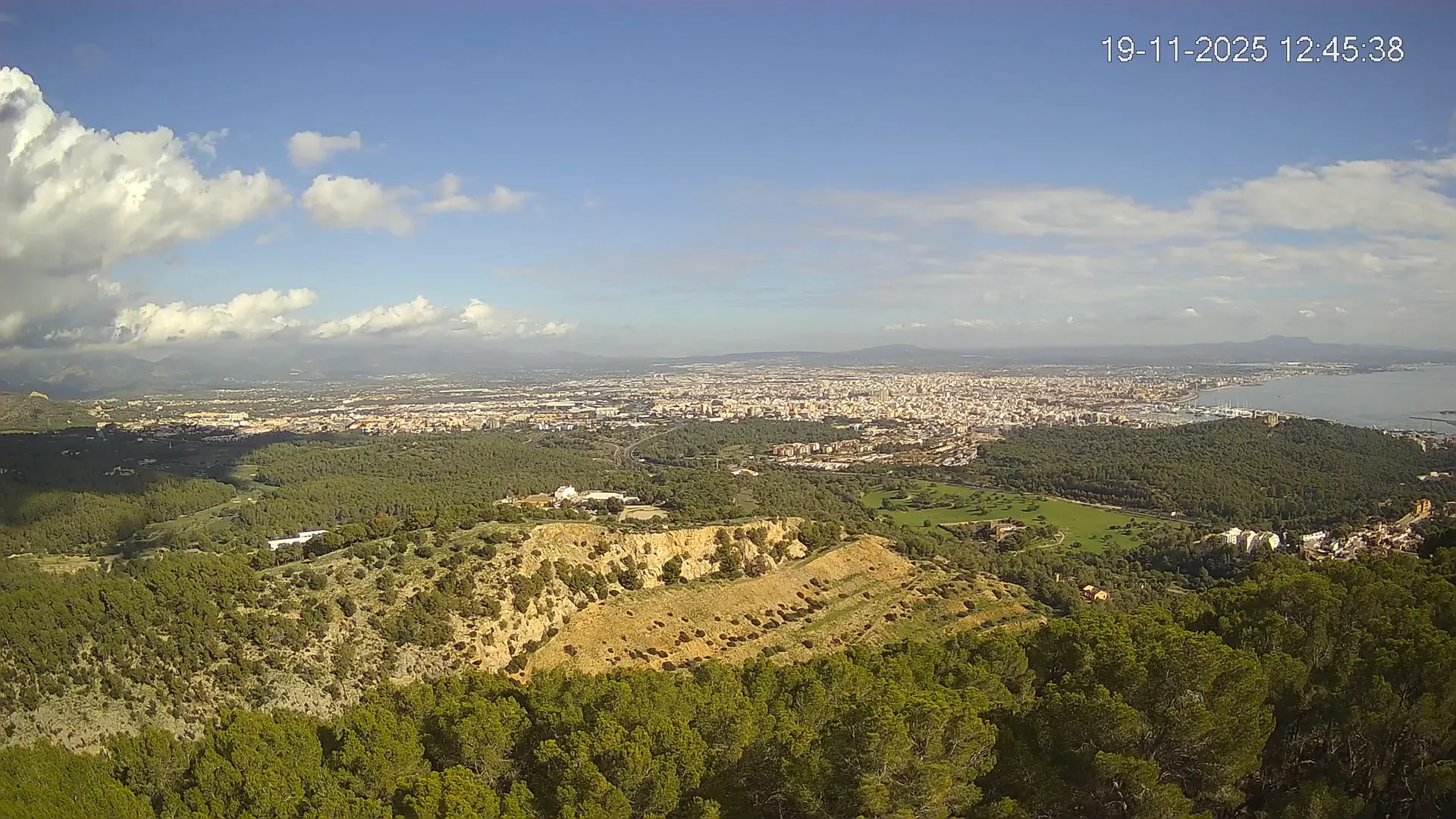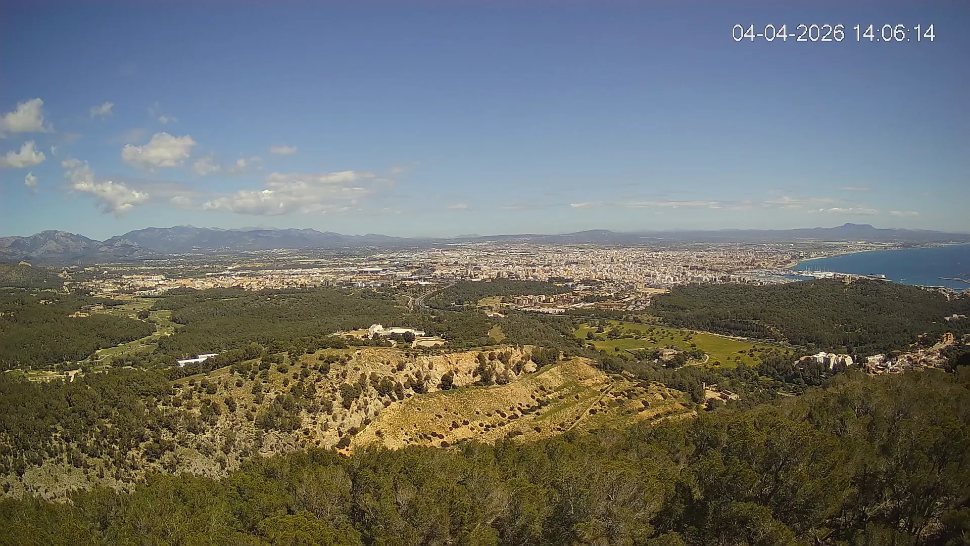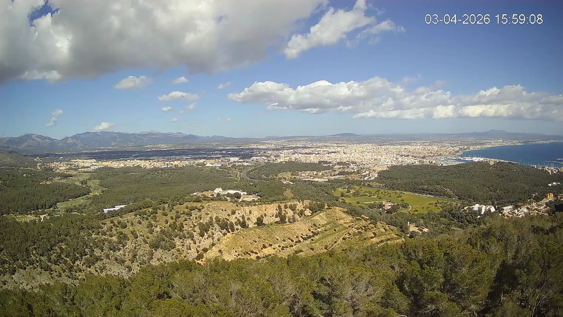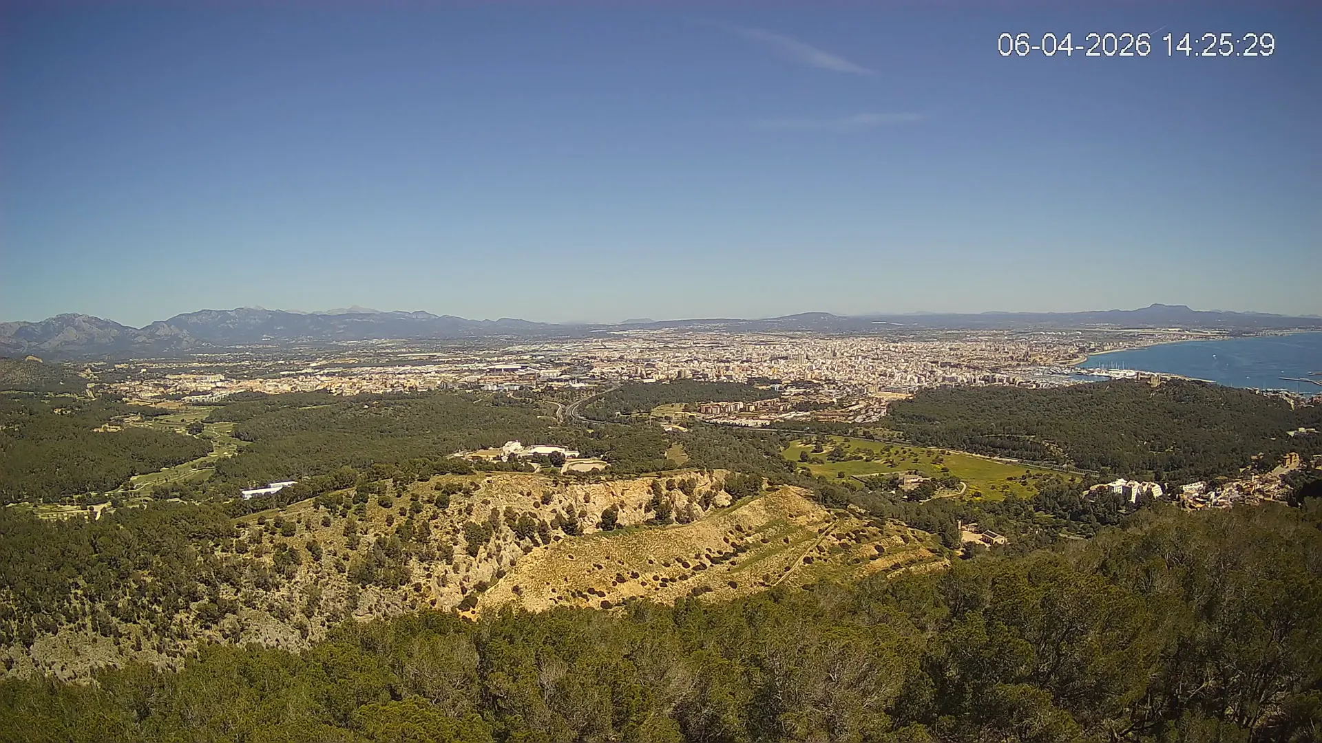 Desde esta cámara ubicada en Na Burguesa, puedes disfrutar de una vista panorámica en tiempo real de Palma de Mallorca, con la ciudad al frente, la Bahía de Palma y las montañas en el horizonte. Observa el estado del tiempo, la visibilidad y la evolución del día desde cualquier dispositivo. Además del streaming en vivo, accede a los timelapses de la última semana, donde puedes ver cómo cambia la ciudad desde el amanecer hasta el anochecer. Observa la luz del sol reflejándose en la bahía, los cambios meteorológicos y el encendido progresivo de la iluminación urbana al caer la noche.