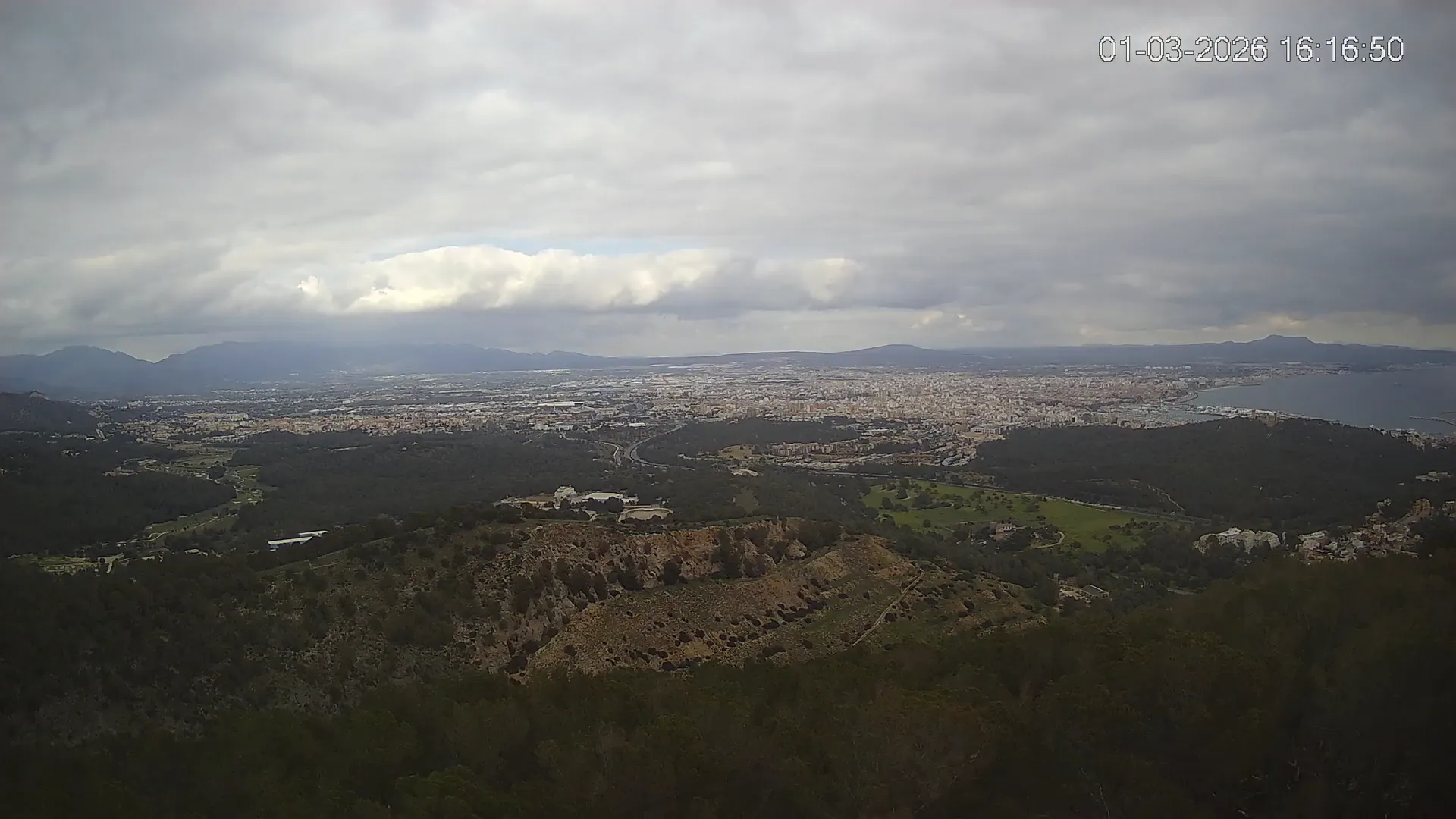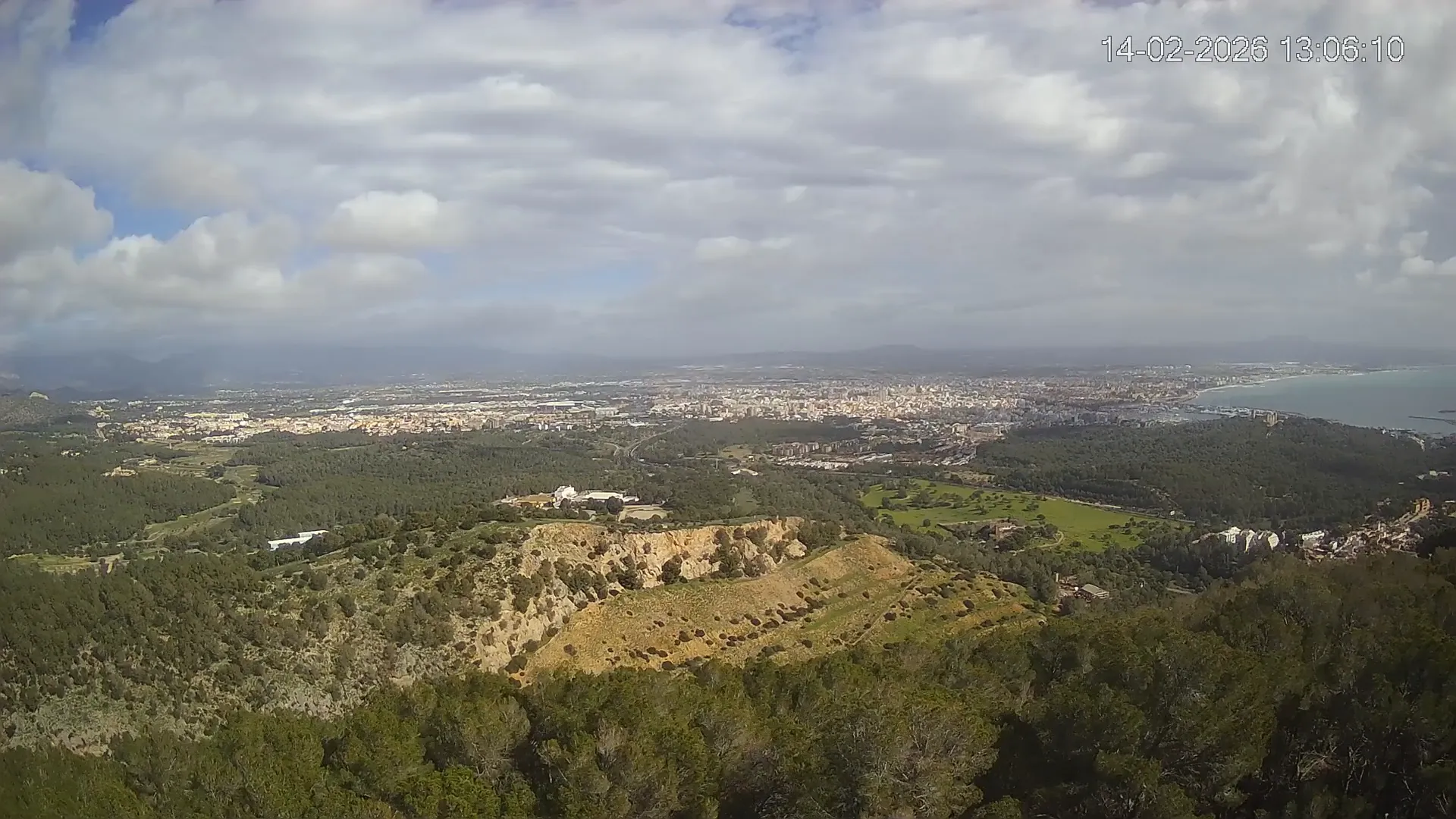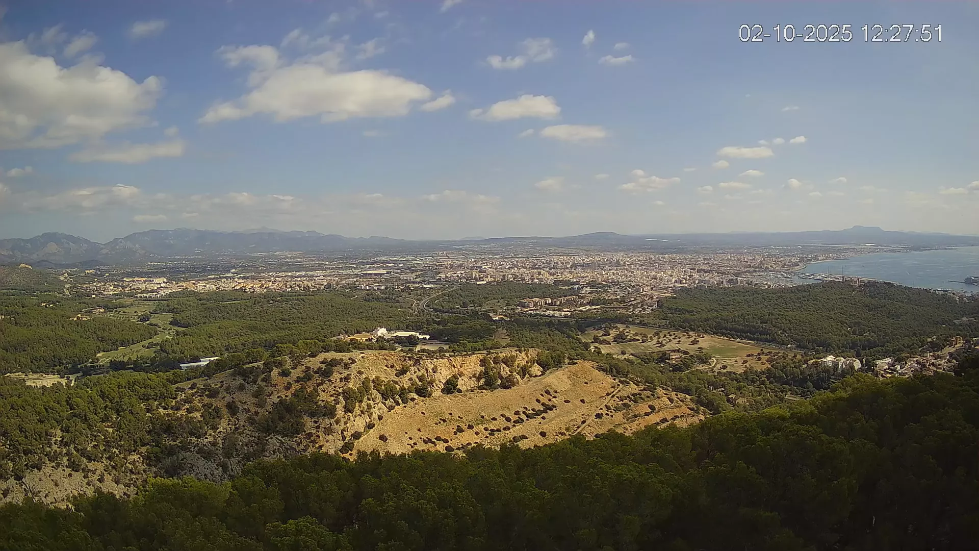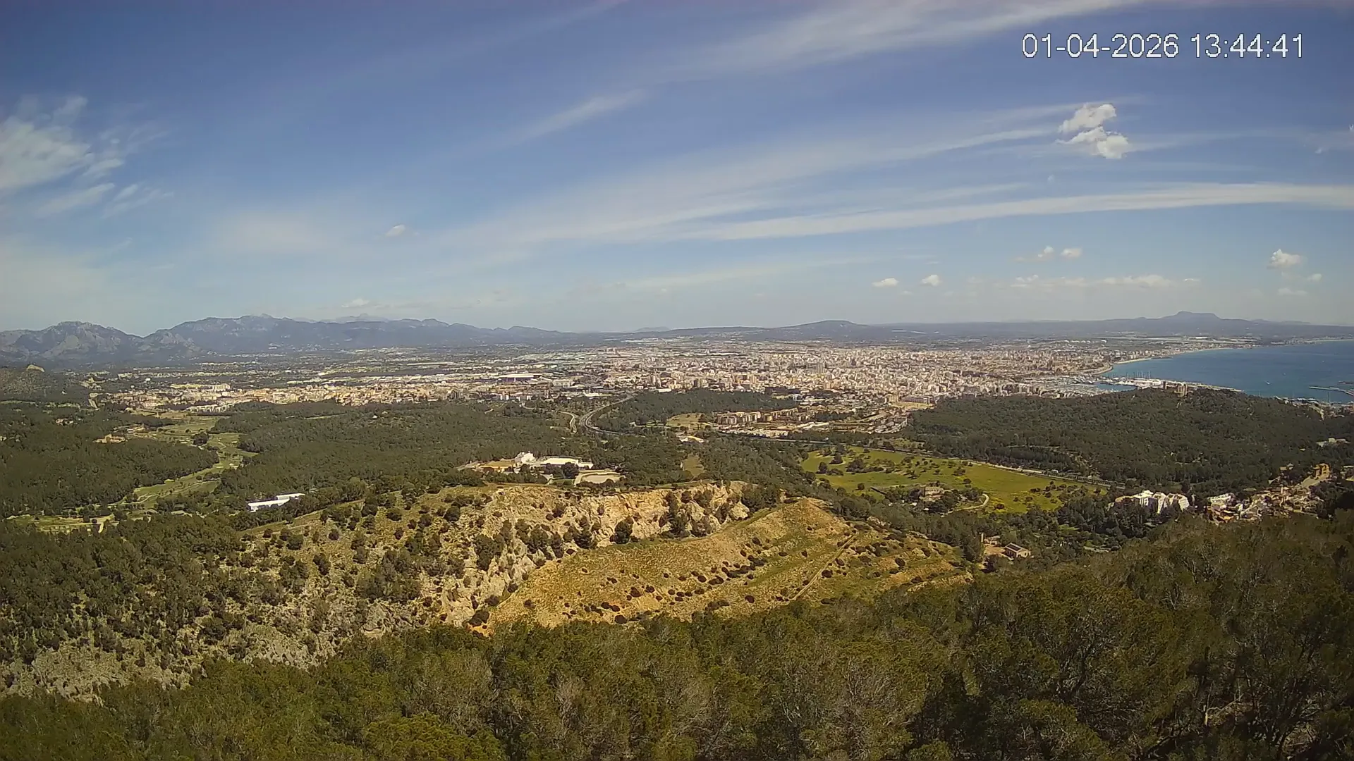 Desde esta cámara ubicada en Na Burguesa, puedes disfrutar de una vista panorámica en tiempo real de Palma de Mallorca, con la ciudad al frente, la Bahía de Palma y las montañas en el horizonte. Observa el estado del tiempo, la visibilidad y la evolución del día desde cualquier dispositivo. Además del streaming en vivo, accede a los timelapses de la última semana, donde puedes ver cómo cambia la ciudad desde el amanecer hasta el anochecer. Observa la luz del sol reflejándose en la bahía, los cambios meteorológicos y el encendido progresivo de la iluminación urbana al caer la noche.