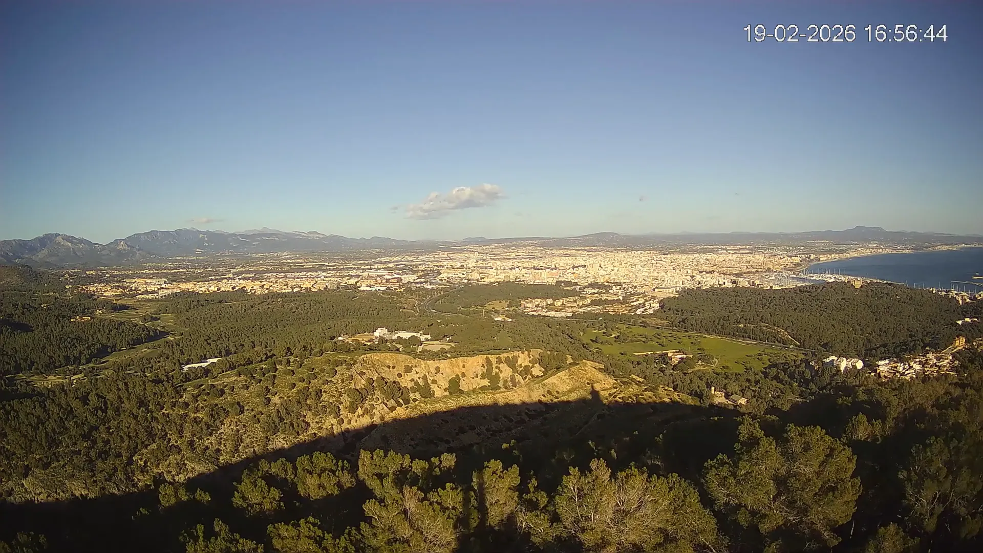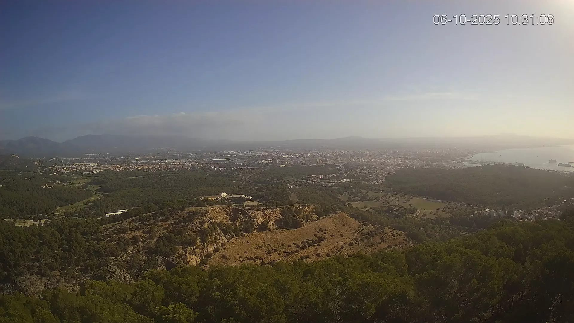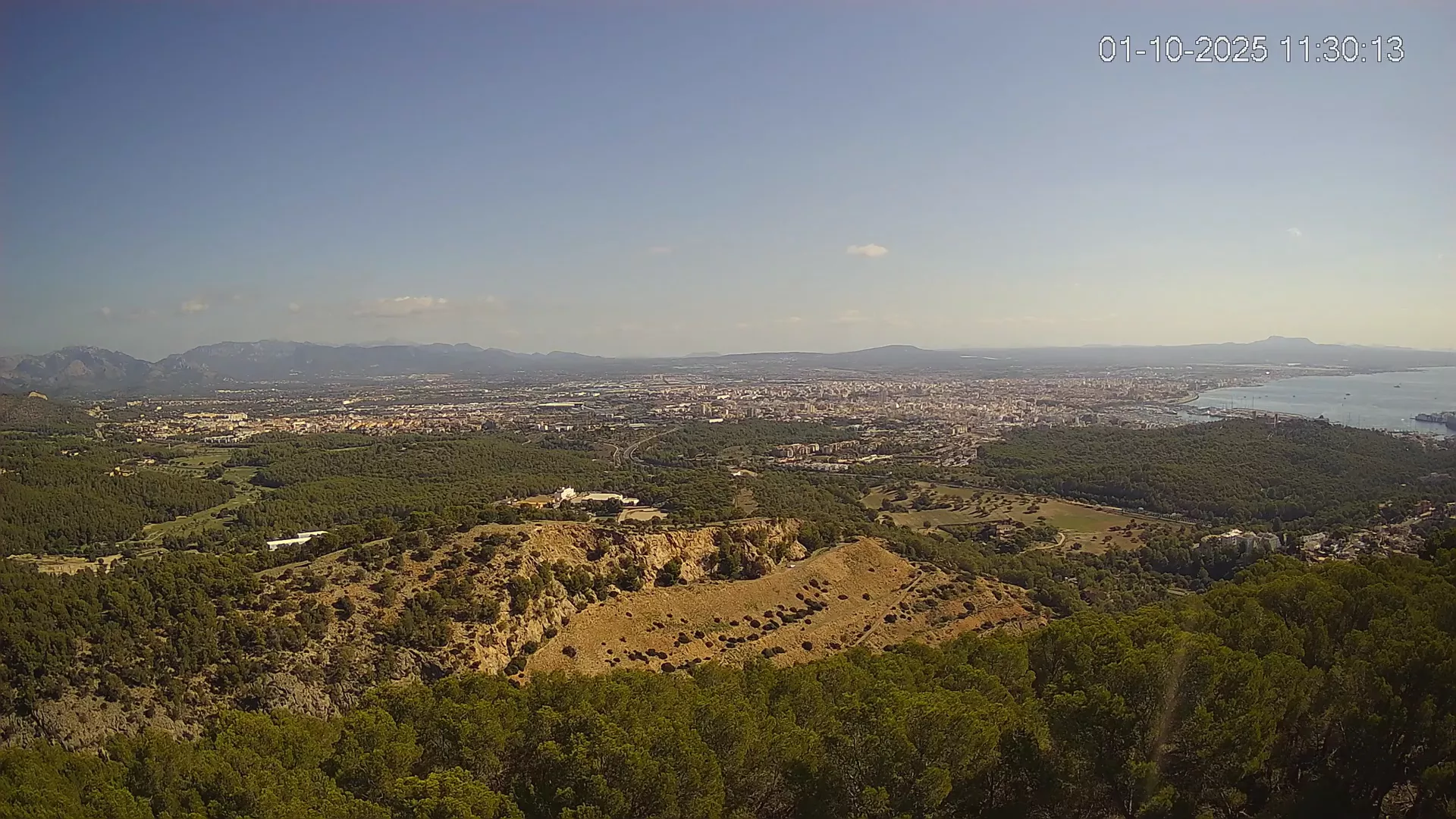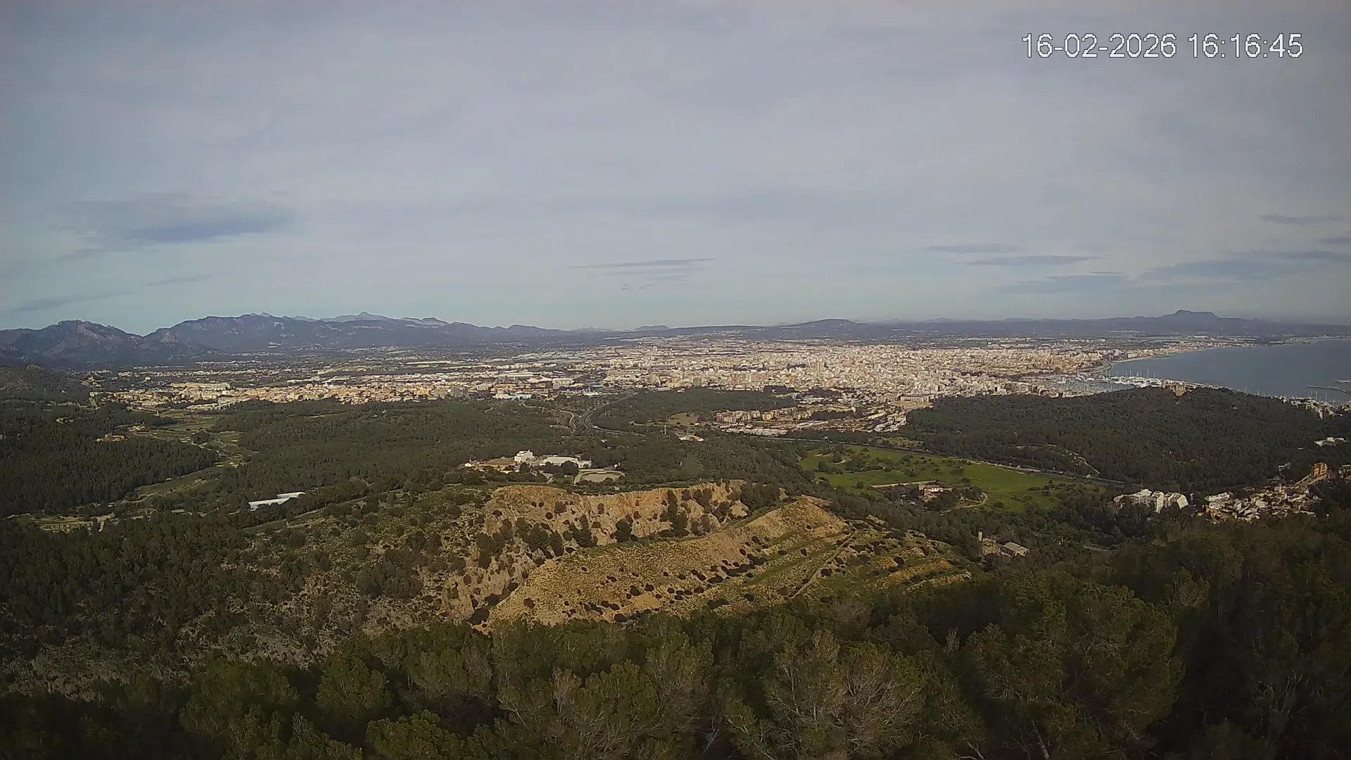 Desde esta cámara ubicada en Na Burguesa, puedes disfrutar de una vista panorámica en tiempo real de Palma de Mallorca, con la ciudad al frente, la Bahía de Palma y las montañas en el horizonte. Observa el estado del tiempo, la visibilidad y la evolución del día desde cualquier dispositivo. Además del streaming en vivo, accede a los timelapses de la última semana, donde puedes ver cómo cambia la ciudad desde el amanecer hasta el anochecer. Observa la luz del sol reflejándose en la bahía, los cambios meteorológicos y el encendido progresivo de la iluminación urbana al caer la noche.