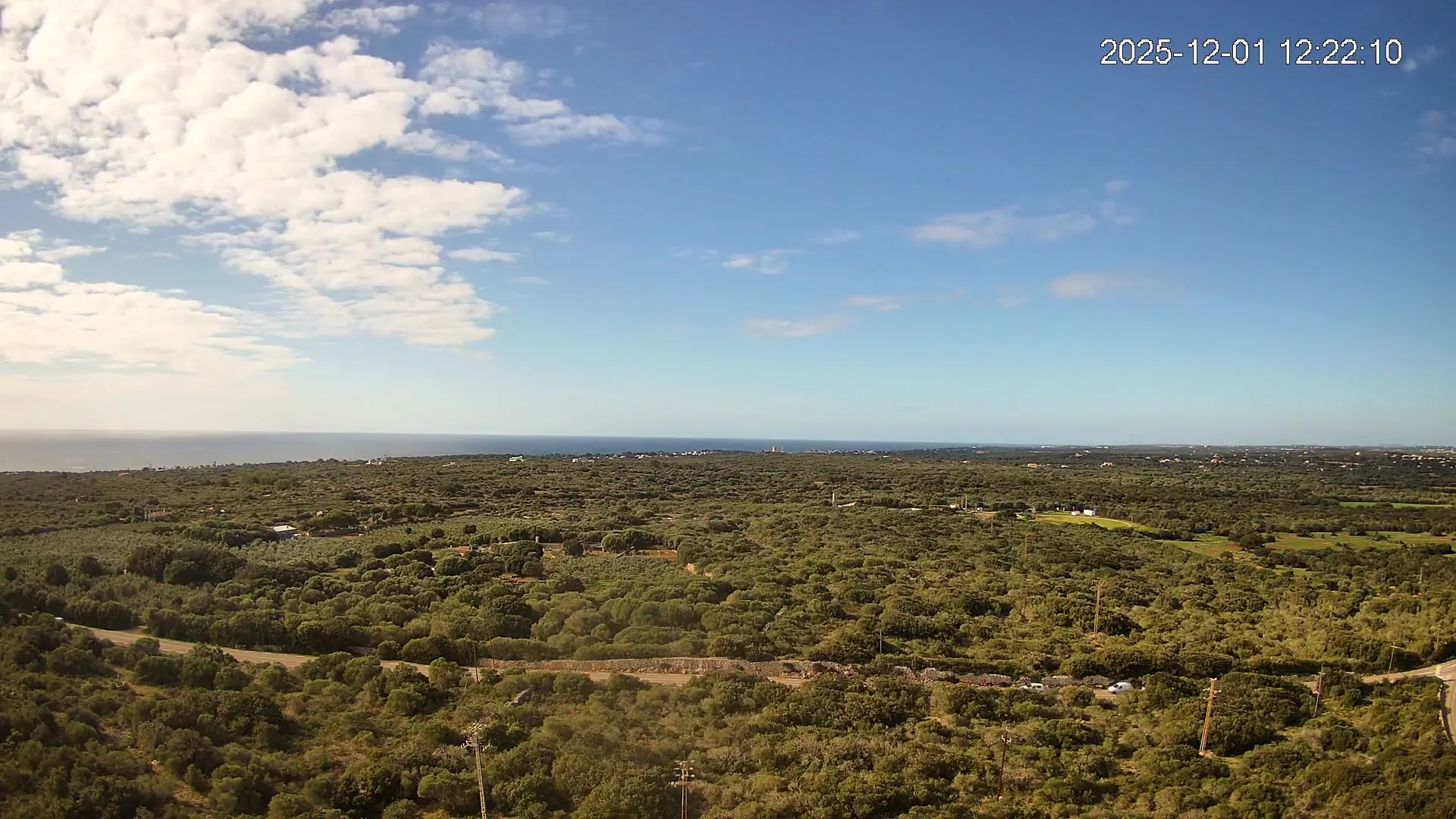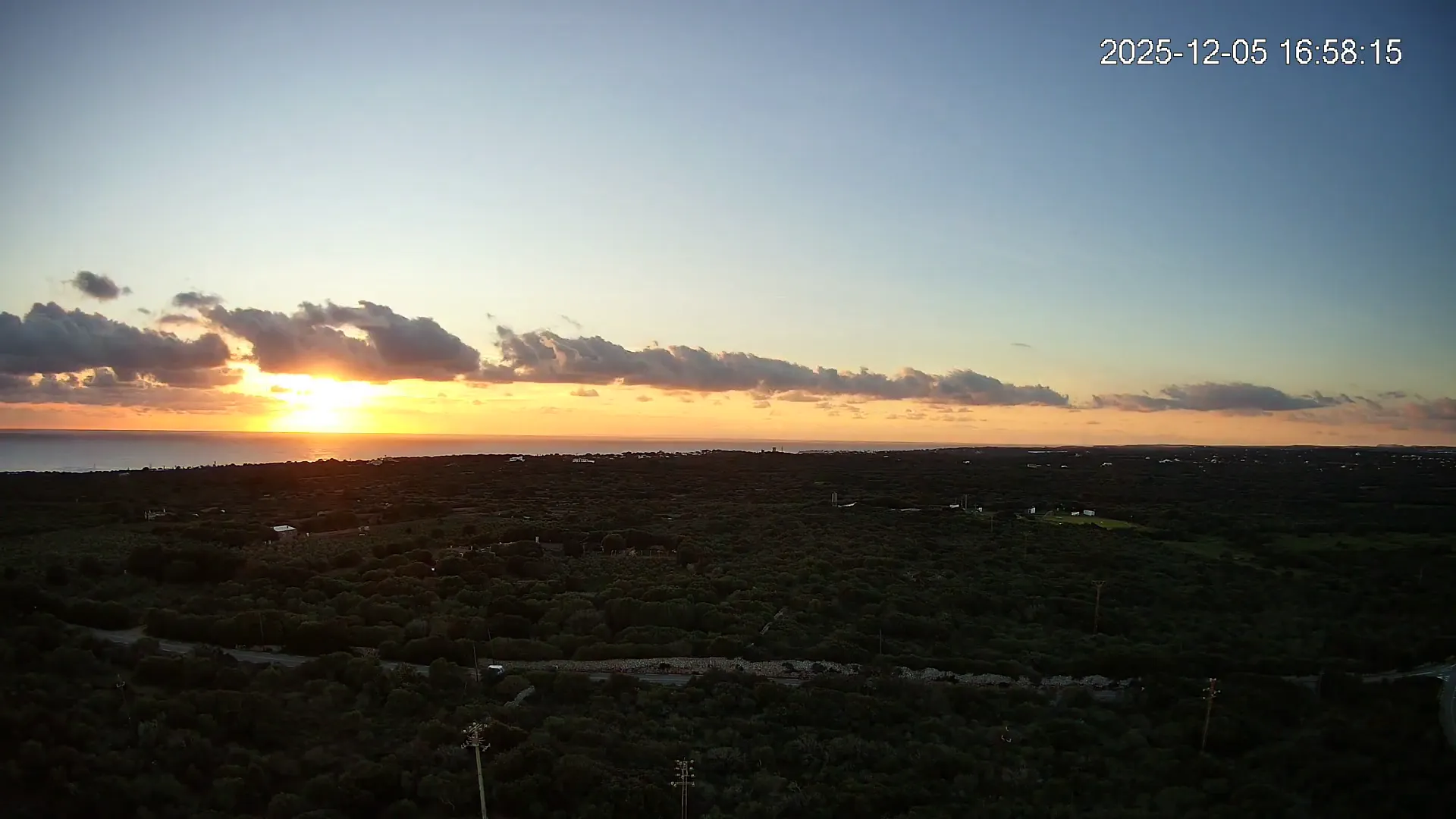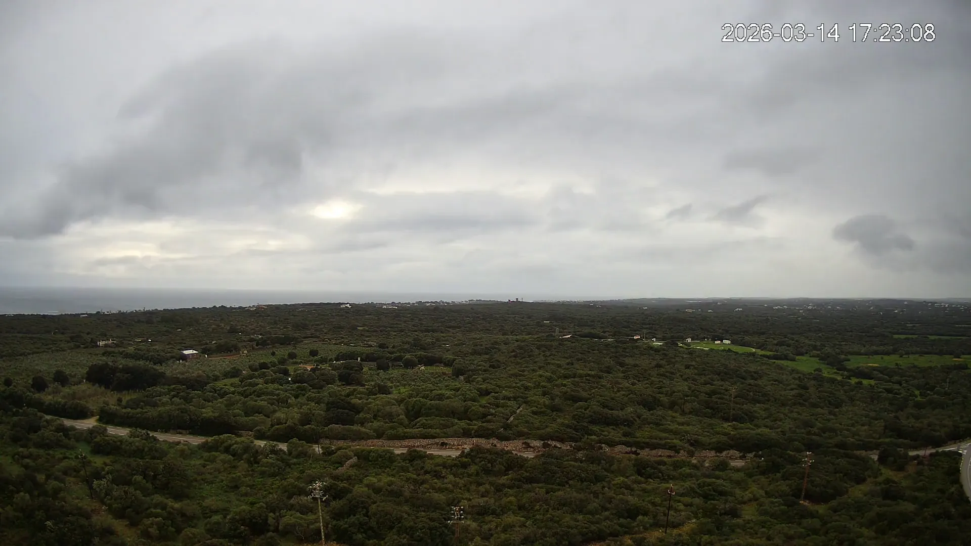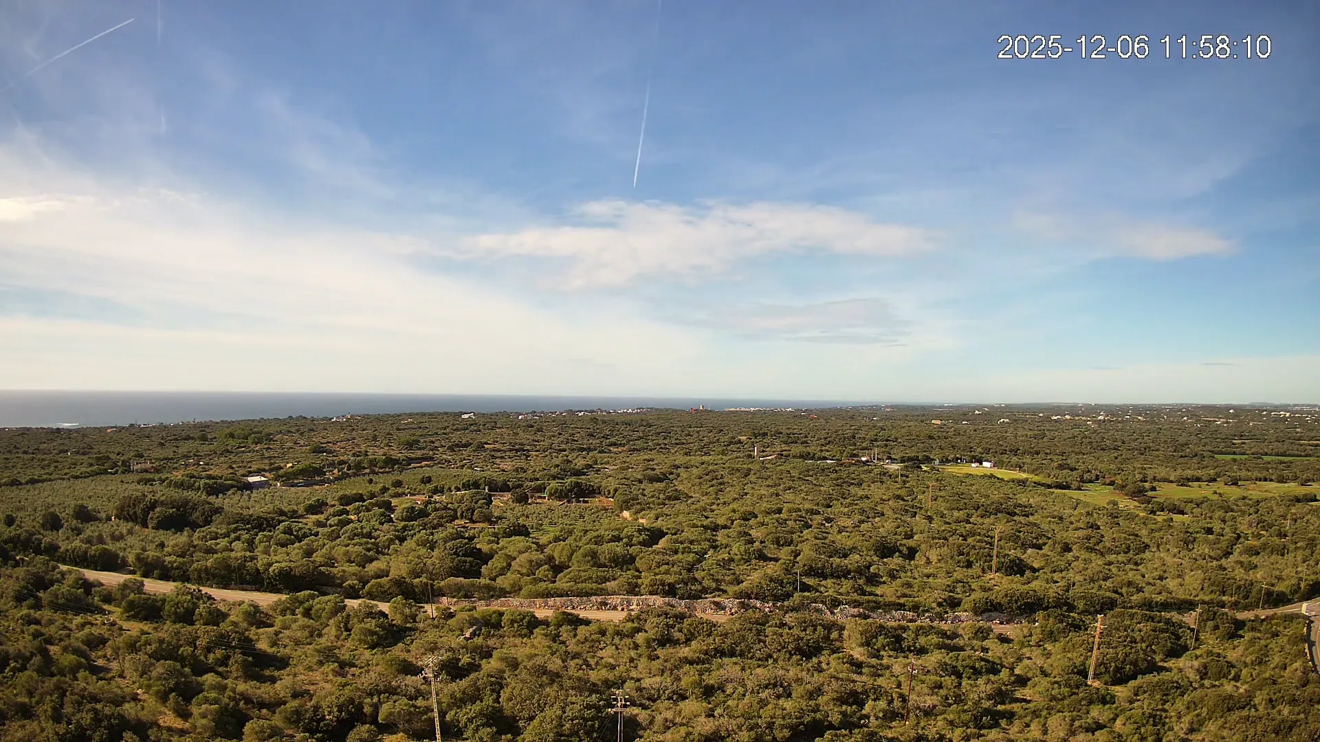 Desde Biniancolla, esta cámara se orienta hacia el interior, ofreciendo una vista abierta del Pla de Binibèquer, una zona tranquila del sur de Menorca. El paisaje combina construcciones bajas, caminos rurales y el horizonte despejado que caracteriza esta parte de la isla, donde la calma y la luz mediterránea dibujan una escena de serenidad y amplitud.