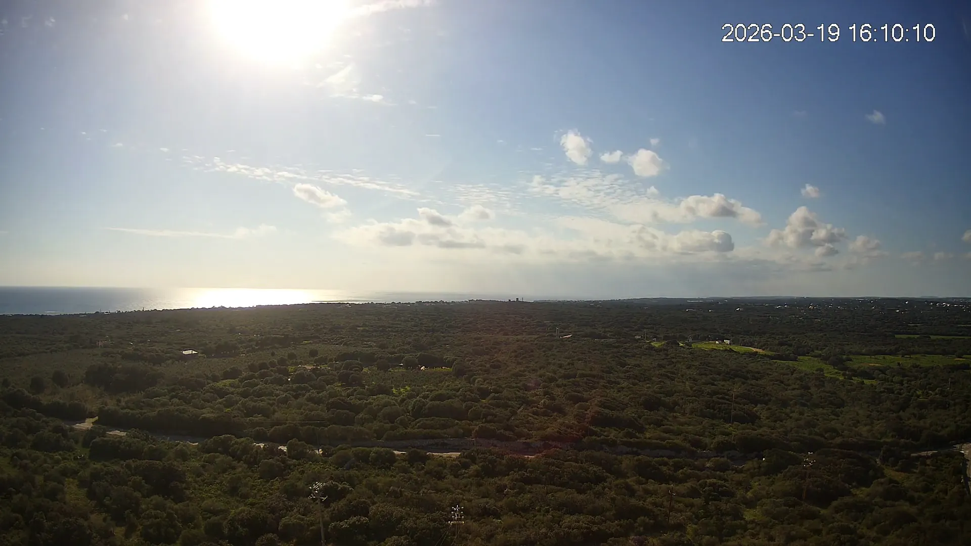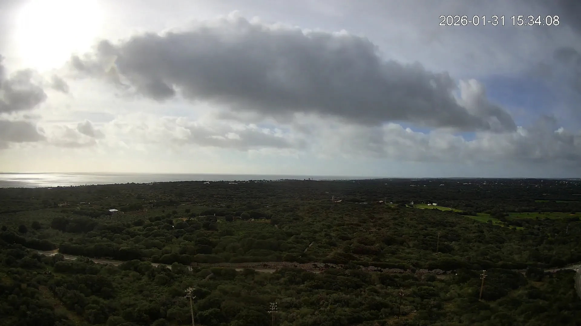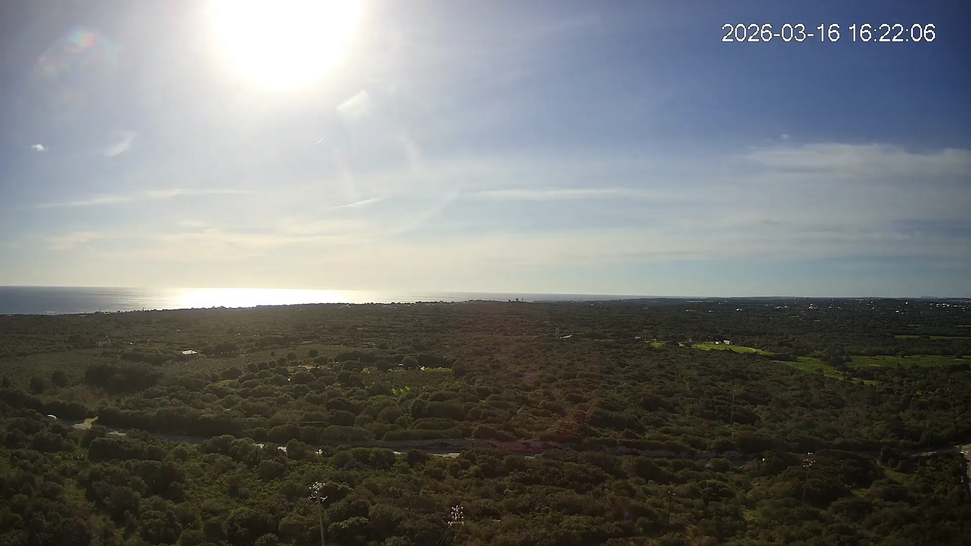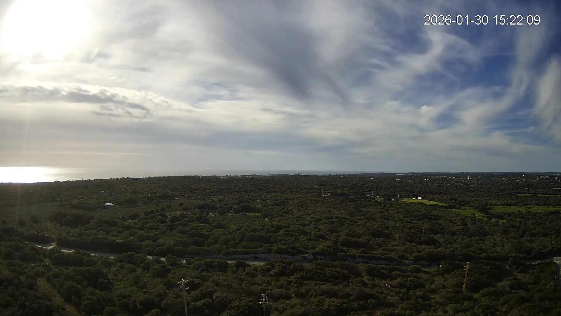 Desde Biniancolla, esta cámara se orienta hacia el interior, ofreciendo una vista abierta del Pla de Binibèquer, una zona tranquila del sur de Menorca. El paisaje combina construcciones bajas, caminos rurales y el horizonte despejado que caracteriza esta parte de la isla, donde la calma y la luz mediterránea dibujan una escena de serenidad y amplitud.